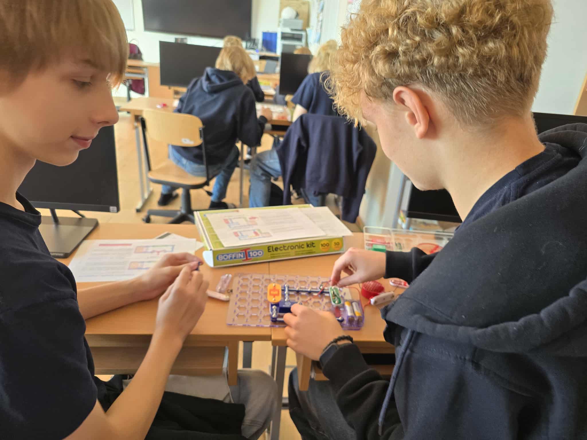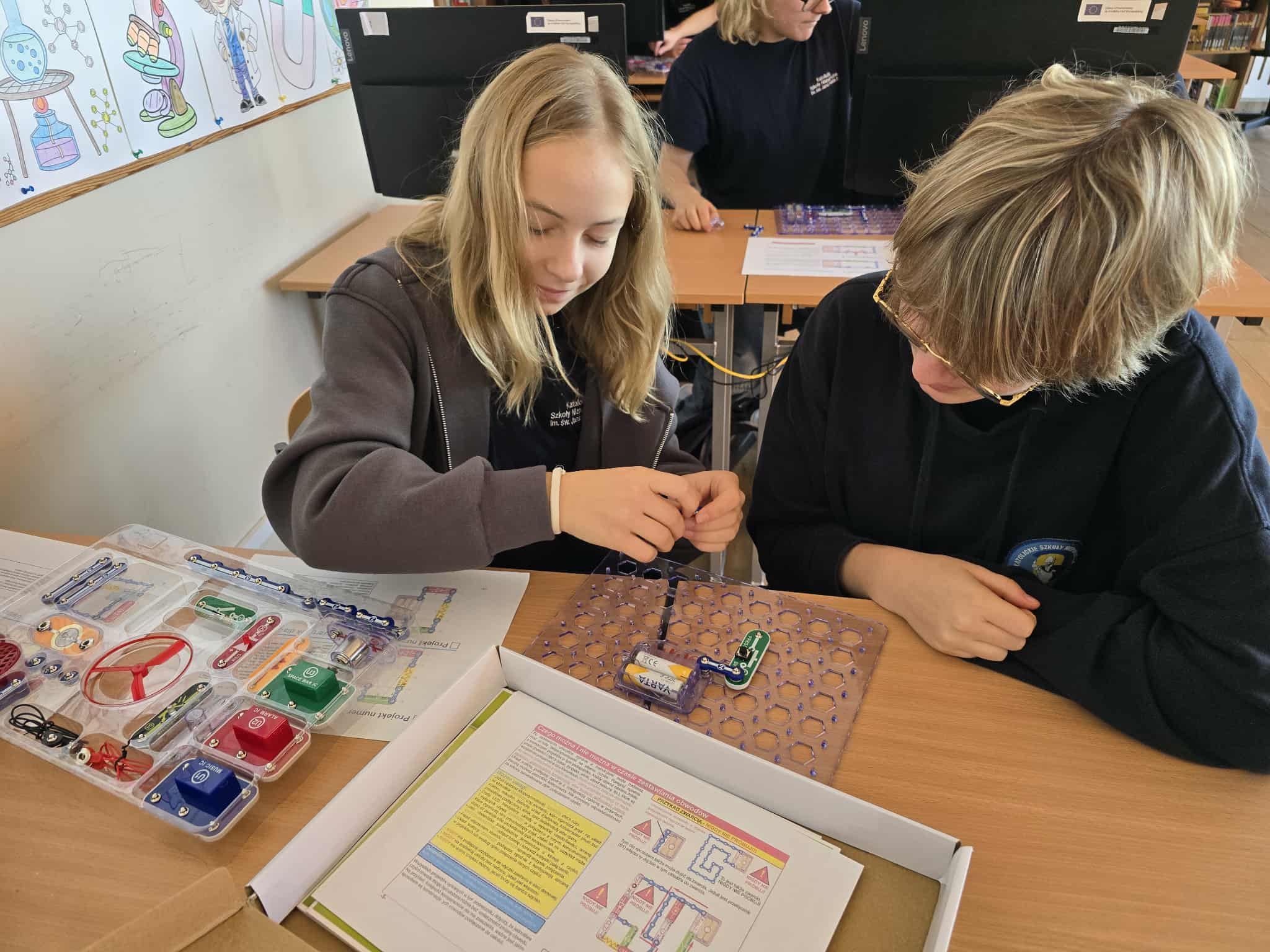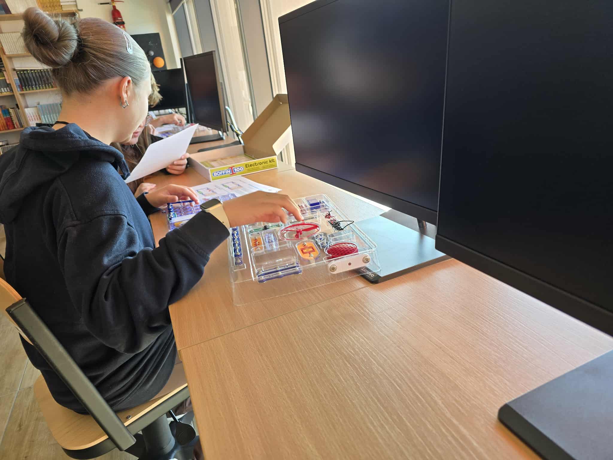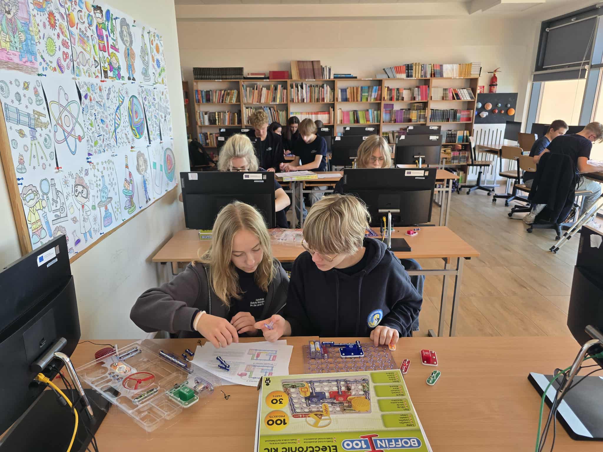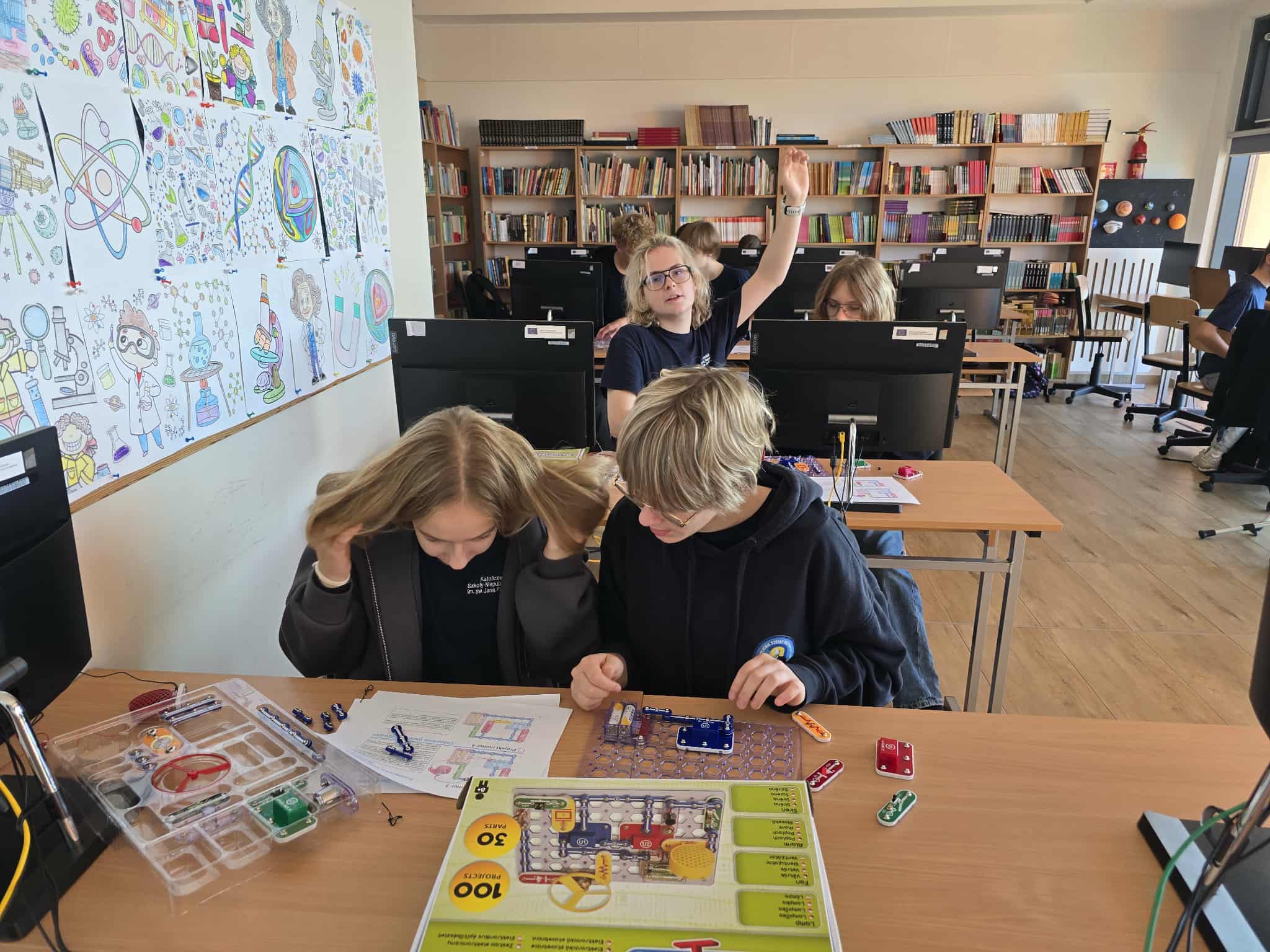 Dziś na zajęciach z fizyki uczniowie klasy 8 przenieśli się w fascynujący świat elektroniki! Uzbrojeni w zestawy "Małego Elektronika", młodzi adepci wiedzy zgłębiali tajniki prądu elektrycznego, budując własne obwody i eksperymentując z różnymi układami.