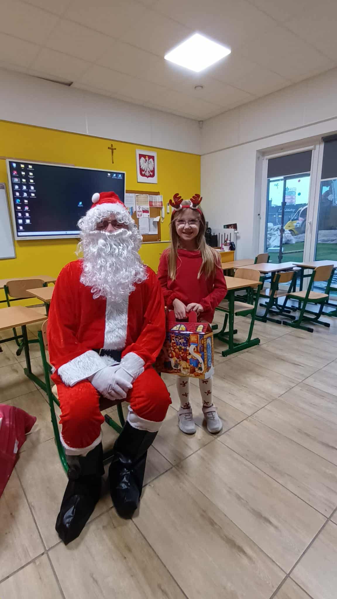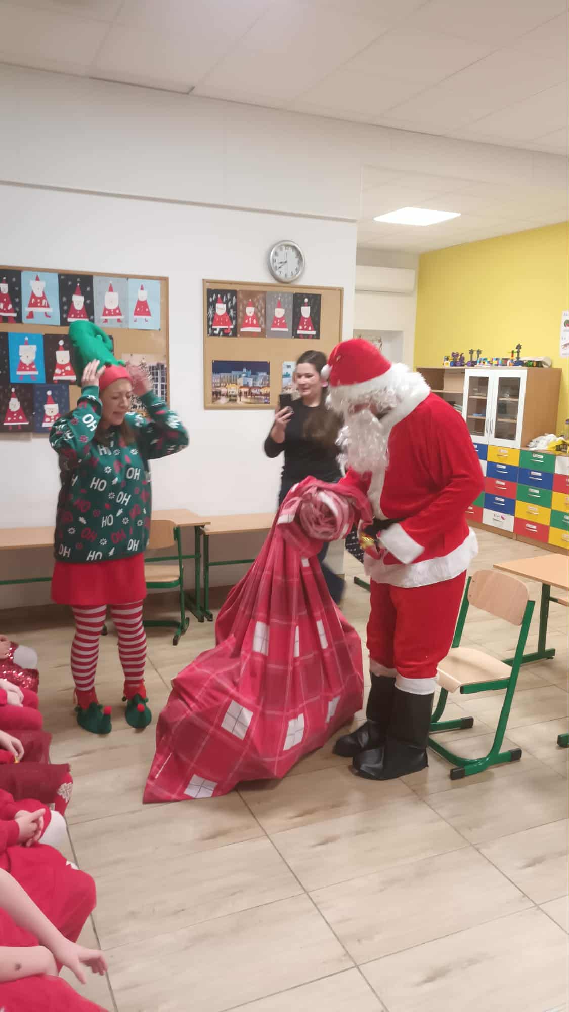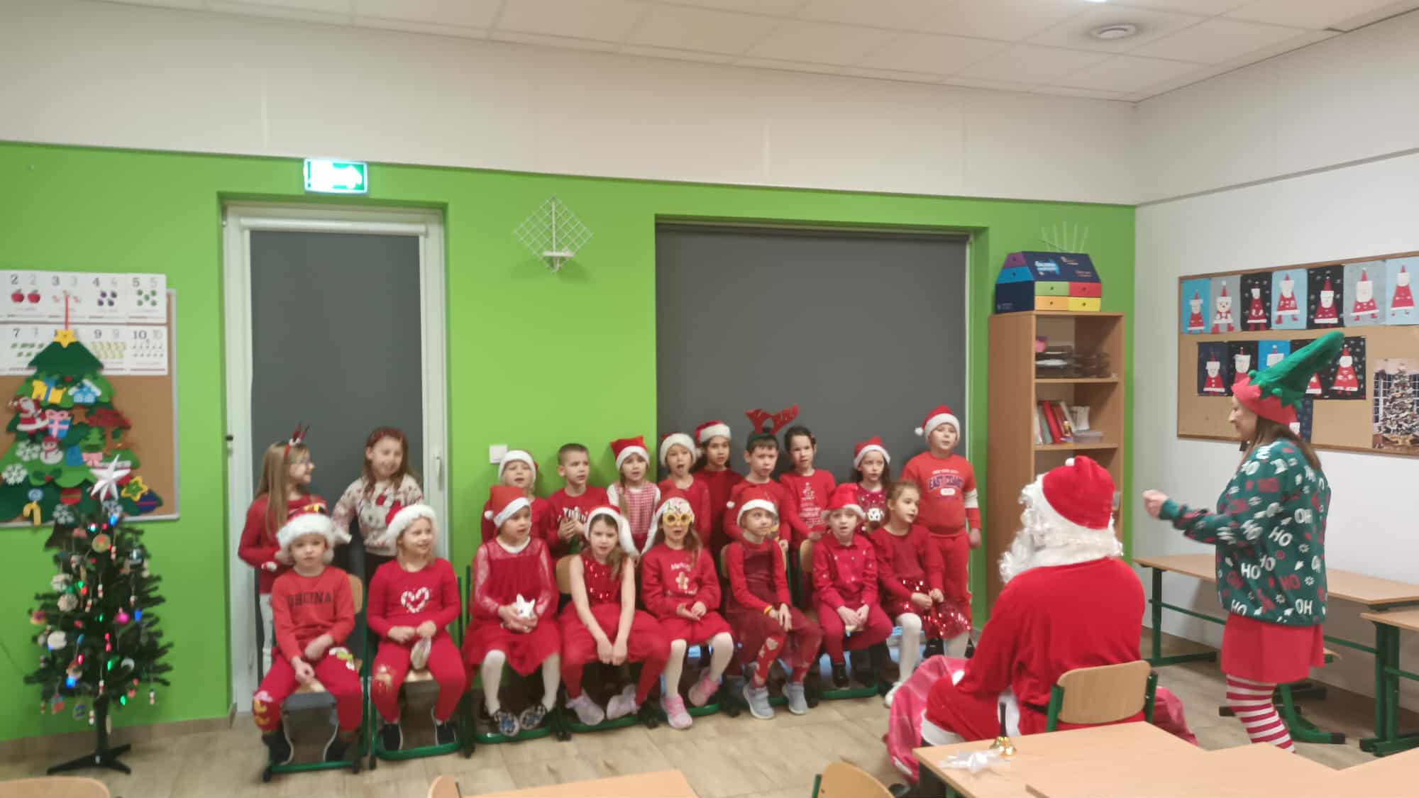 Wreszcie nadszedł ten długo wyczekiwany moment! Drzwi do klasy otworzyły się, a w progu stanął... Święty Mikołaj! Radość i podekscytowanie zapanowały w całym pomieszczeniu. Dzieci z uśmiechami na twarzach recytowały wiersze i śpiewały kolędy, a Mikołaj z uwagą słuchał i nagradzał je upominkami.