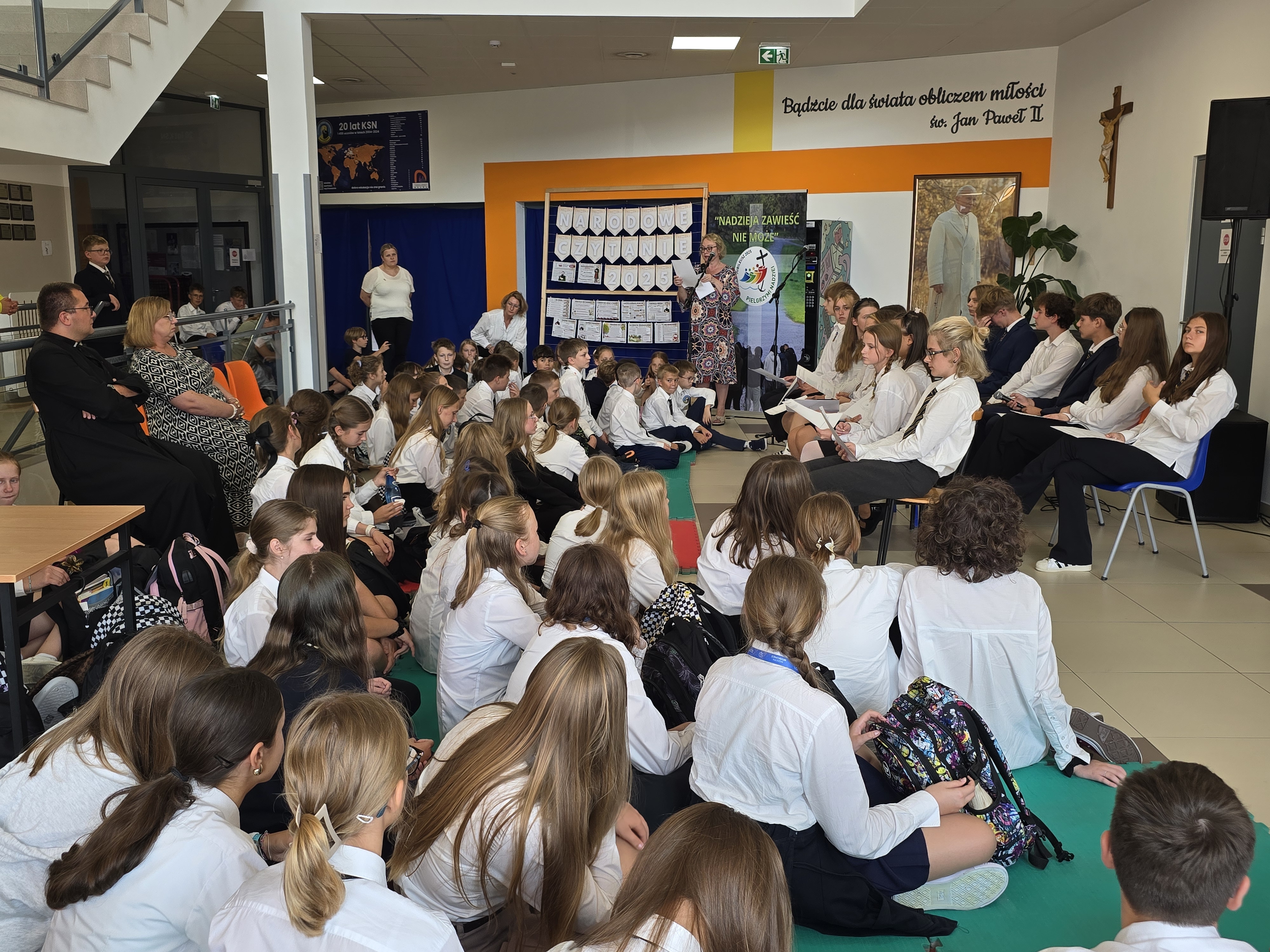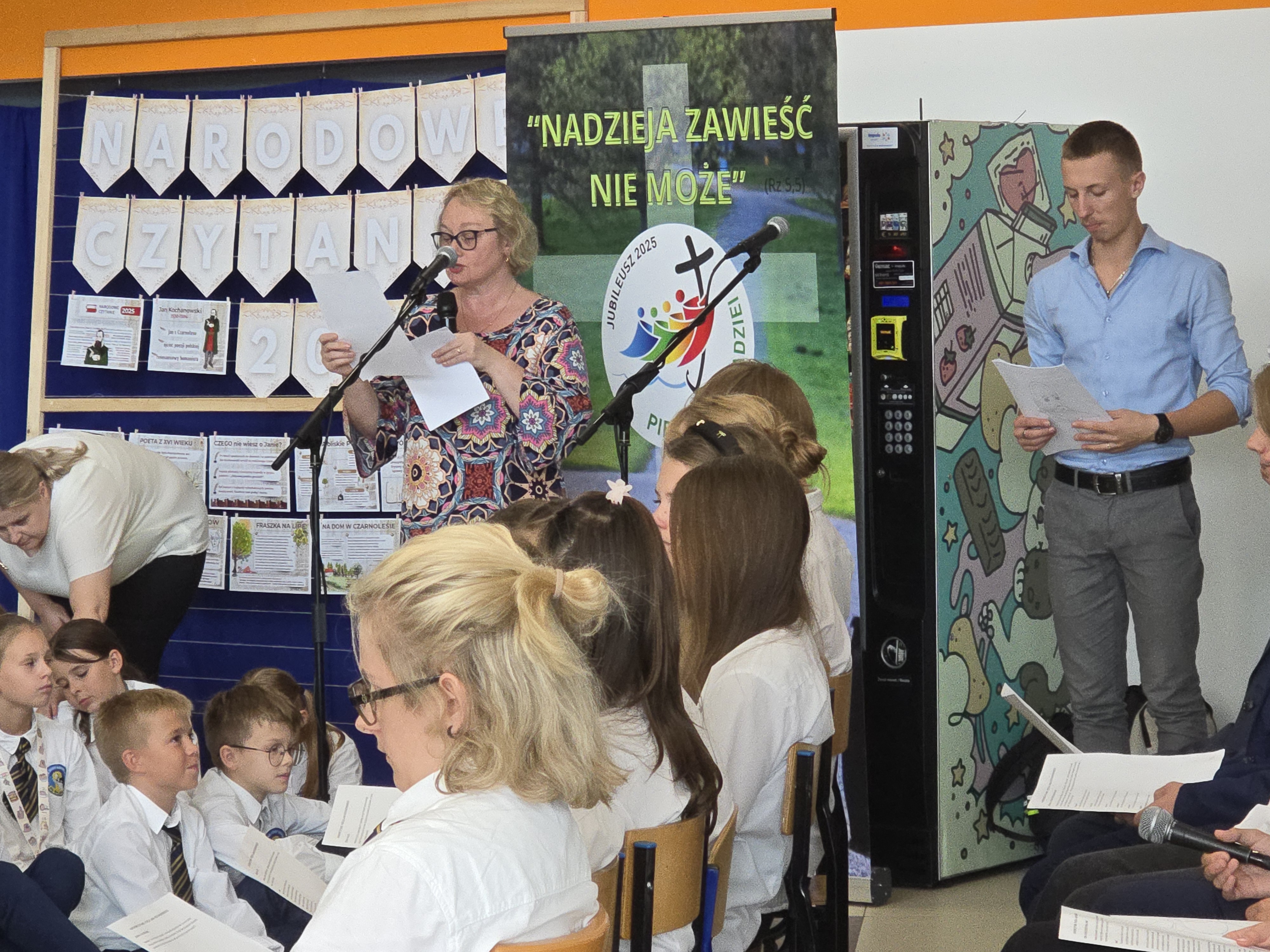 Uroczystość rozpoczęła się od przywitania zgromadzonych uczniów i przypomnienia idei tego wyjątkowego wydarzenia, które łączy Polaków w całym kraju. Następnie scena należała do czytających.