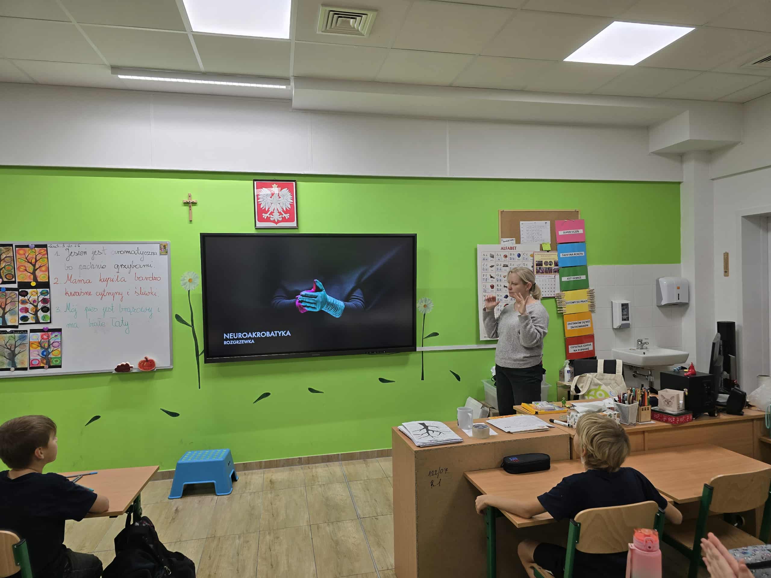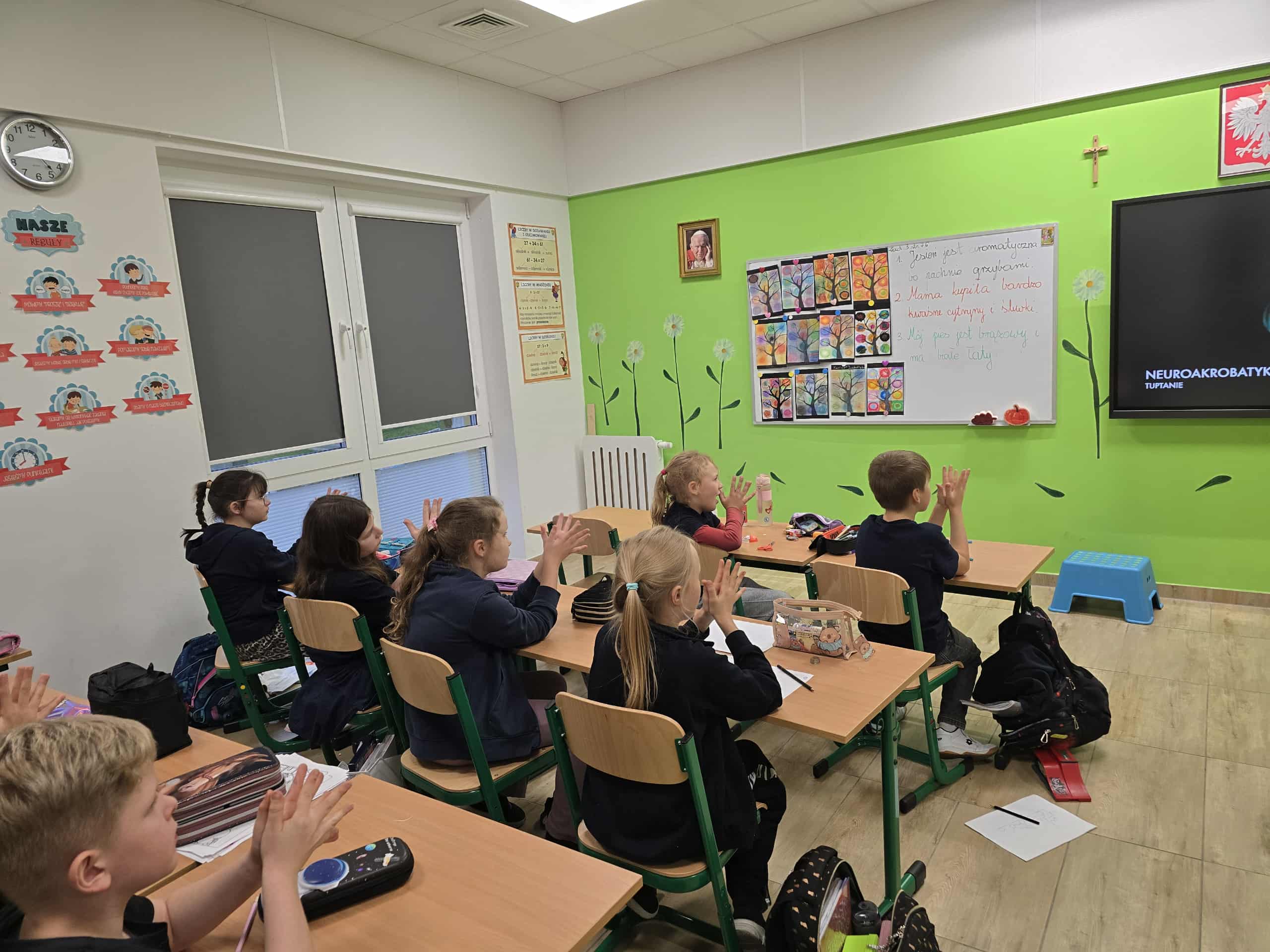 Uczniowie klasy 3 w ramach matematyki kreatywnej zgłębiali fascynujący świat neuroakrobatyki palców, łącząc naukę z zabawą i rozwijając swoje umiejętności manualne. Podczas zajęć nauczyli się, jak różnorodne ćwiczenia na palcach mogą wpływać na funkcjonowanie mózgu, poprawiając koncentrację, koordynację ruchową oraz zdolności poznawcze. Uczniowie praktykowali różnorodne układy i figury, które wymagały od nich precyzji, cierpliwości i skupienia. Dzięki temu rozwijali nie tylko swoje zdolności manualne, ale także wyobraźnię i kreatywność, tworząc własne unikalne układy i sekwencje ruchów. Zajęcia te okazały się być nie tylko ciekawą formą nauki, ale także skutecznym narzędziem wspierającym rozwój umysłowy i manualny młodych uczniów. Uczniowie z entuzjazmem uczestniczyli w ćwiczeniach, zauważając, że dzięki neuroakrobatyce palców są w stanie lepiej radzić sobie z trudniejszymi zadaniami matematycznymi, a także poprawić swoją zręczność i wytrwałość. Dla nich była to nie tylko świetna zabawa, ale także ważny element rozwijania umiejętności, które będą przydatne w dalszej nauce i codziennym życiu.
