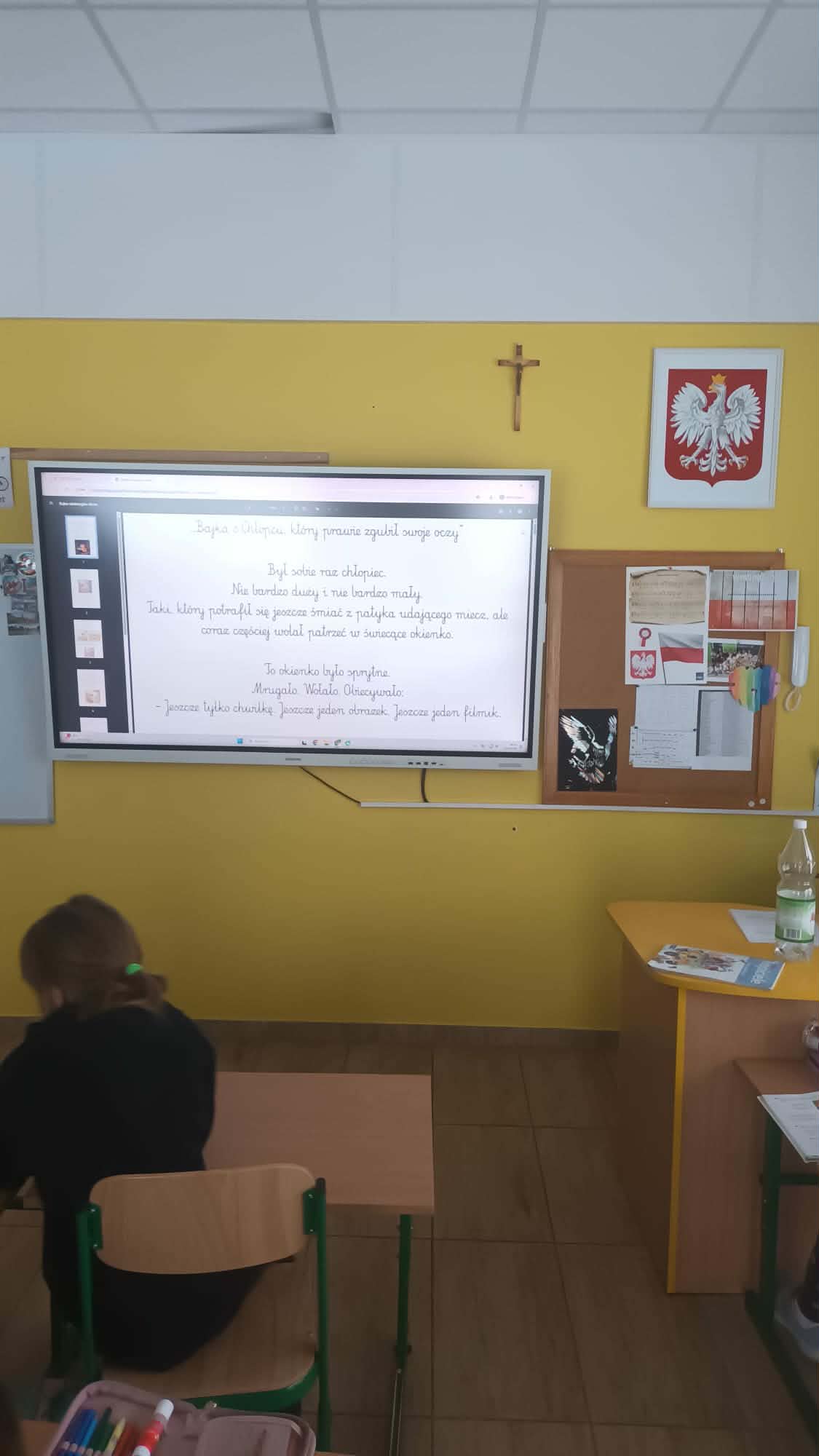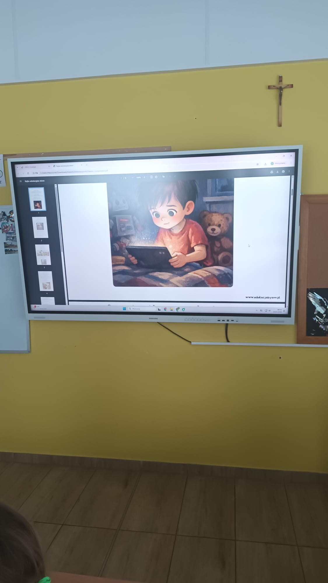 Po wysłuchaniu bajki, przyszedł czas na ożywioną dyskusję. Pierwszoklasiści z wielkim zaangażowaniem dzielili się swoimi spostrzeżeniami, zadawali pytania i opowiadali o swoich doświadczeniach z urządzeniami multimedialnymi. Dzieci dowiedziały się, jak ważne jest robienie przerw od ekranu, jak chronić swoje oczy i dlaczego warto spędzać czas w sieci w towarzystwie rodziców lub opiekunów.