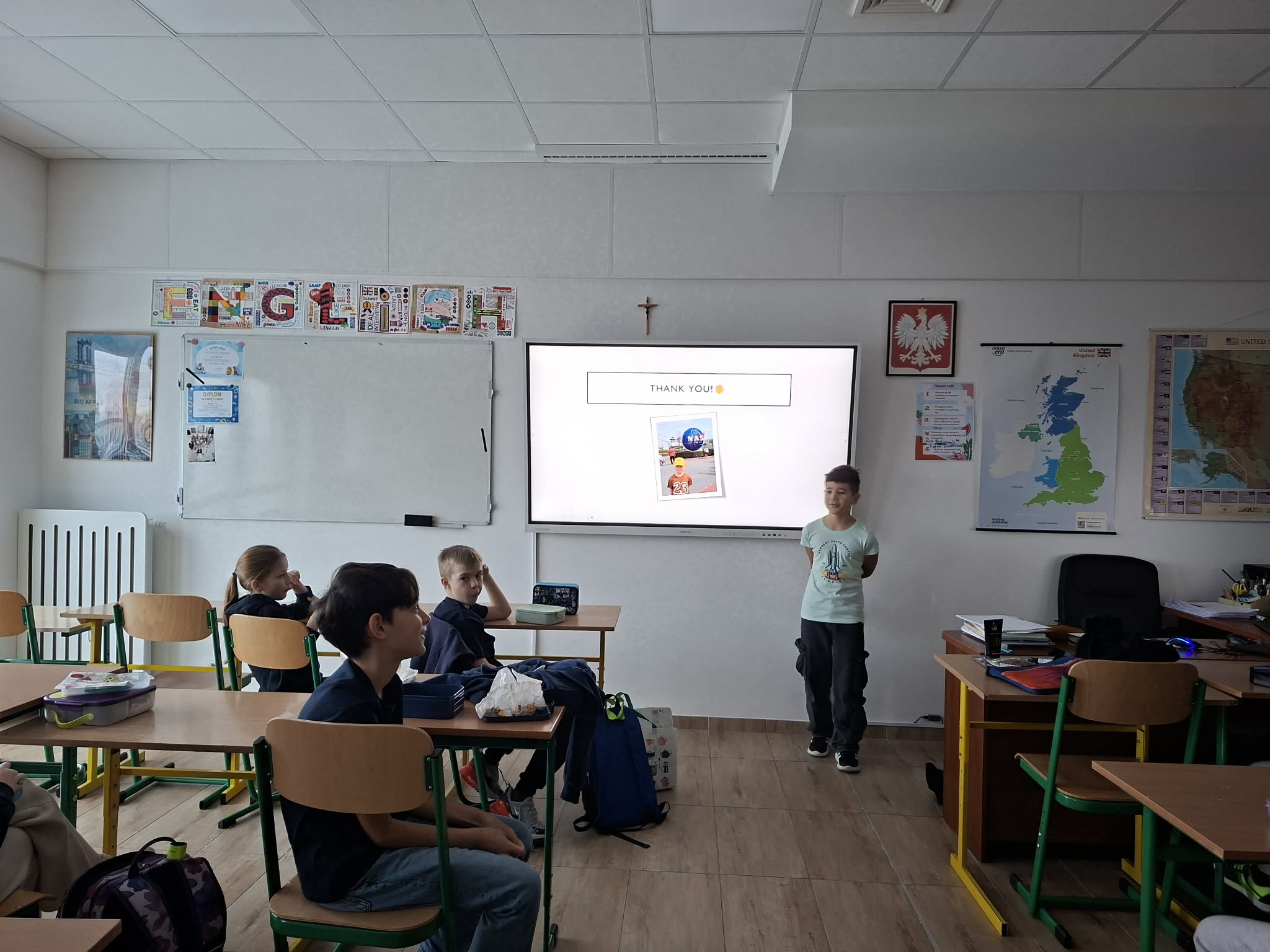 Dzieci z zapartym tchem śledziły opowieść Olka, zadając pytania i z zaciekawieniem słuchając odpowiedzi. Atmosfera w klasie była niesamowita! Olek, mimo tremy, poradził sobie znakomicie, udowadniając, że ma ogromny potencjał i pasję do dzielenia się swoją wiedzą.