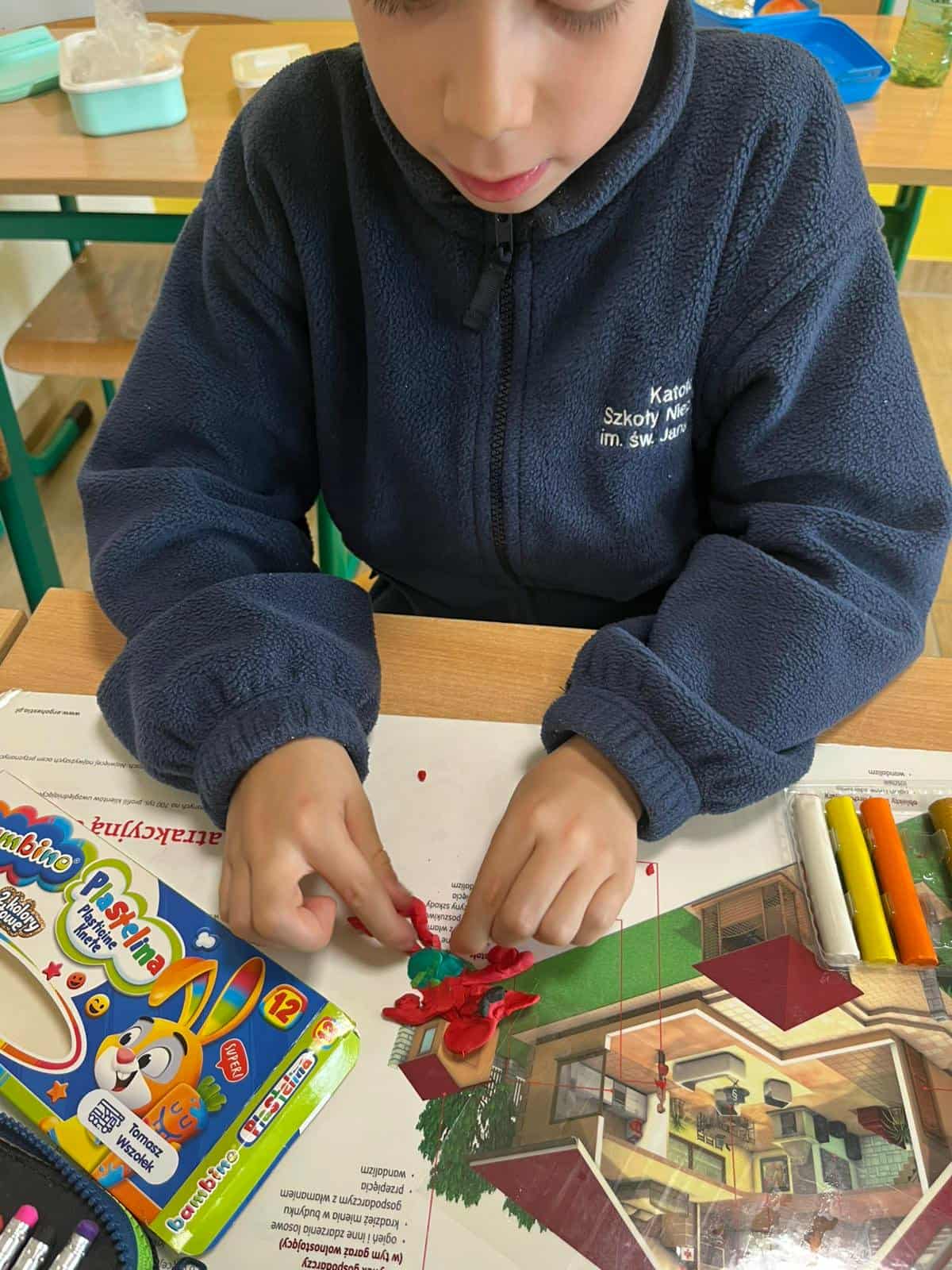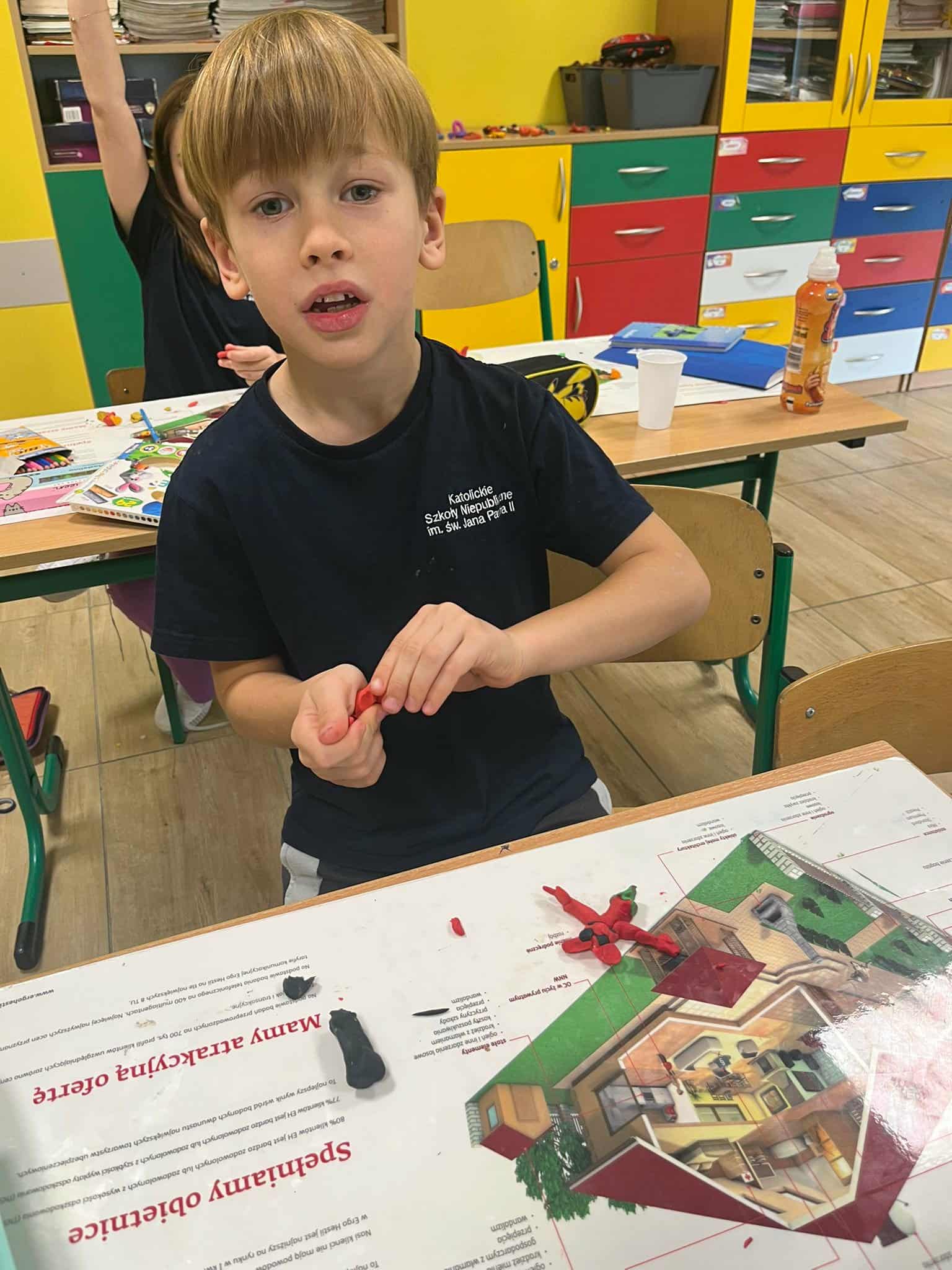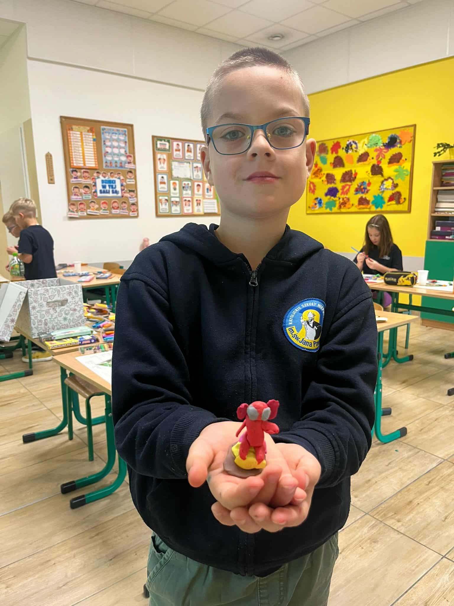 Klasa 1a rozpoczęła omawianie swojej pierwszej lektury – „Plastusiowy pamiętnik” Marii Kownackiej. Uczniowie poznali przygody sympatycznego ludzika z plasteliny – Plastusia, który mieszka w piórniku Tosi i przeżywa wiele ciekawych przygód. Aby jeszcze lepiej wczuć się w świat lektury, dzieci wykonały z plasteliny własne figurki Plastusia. W ten sposób połączyły czytanie z twórczą zabawą i rozwijaniem zdolności manualnych.