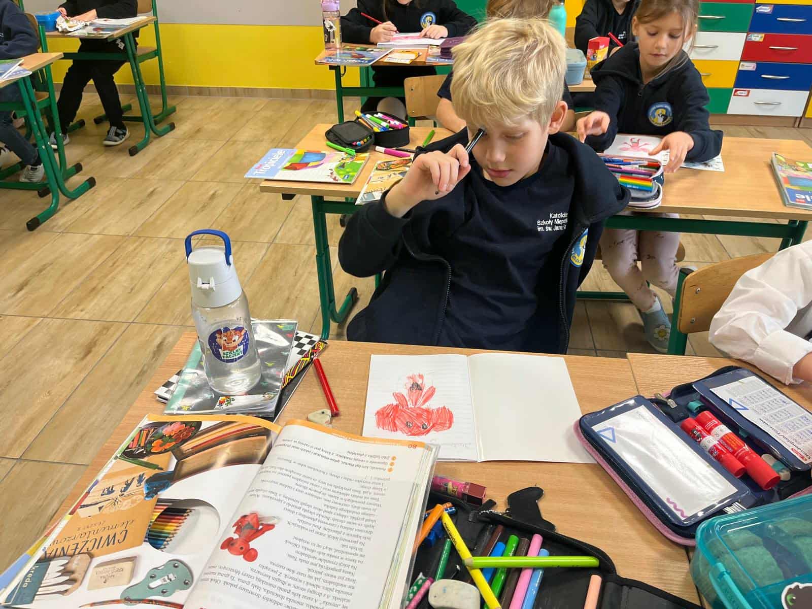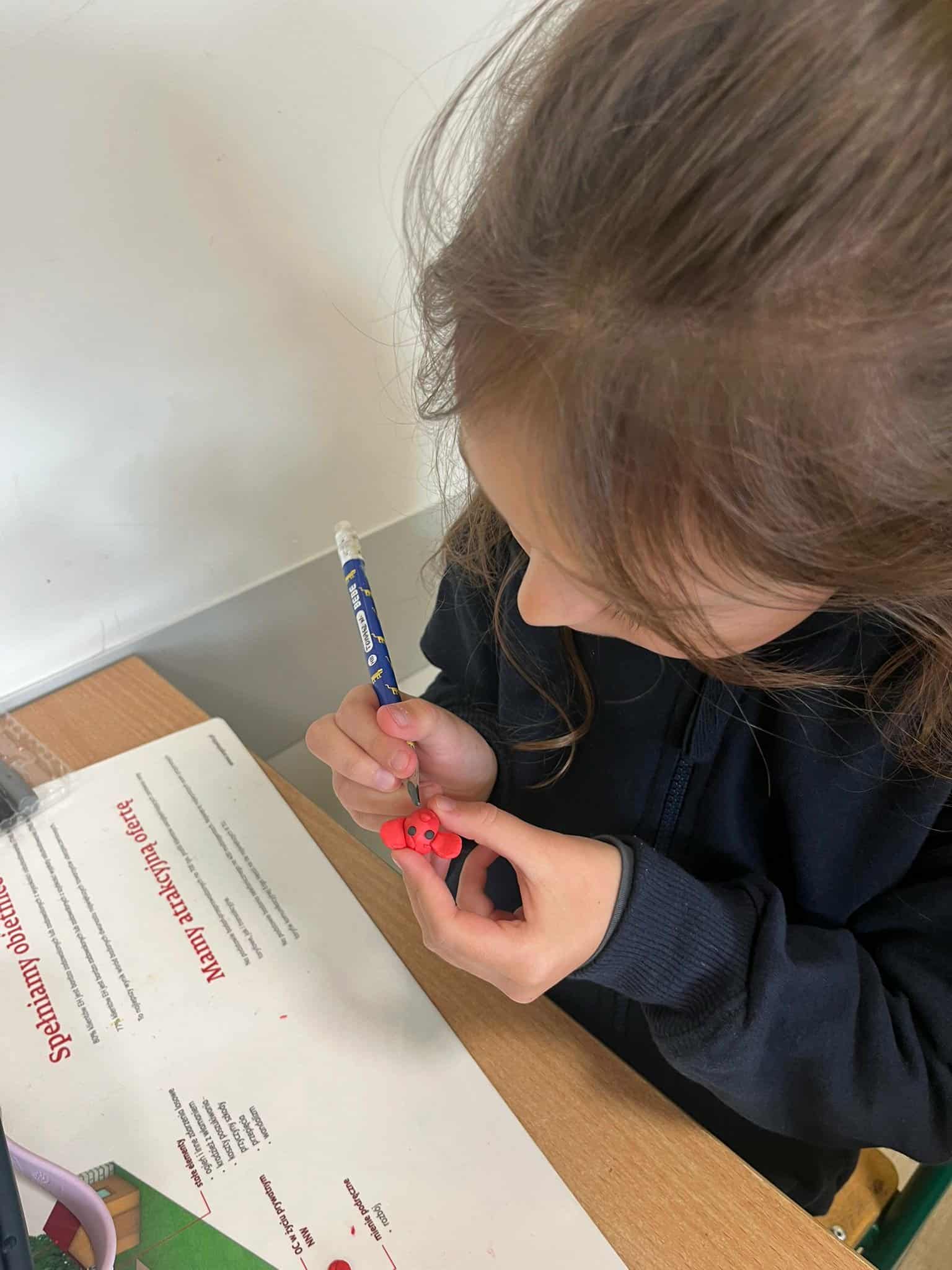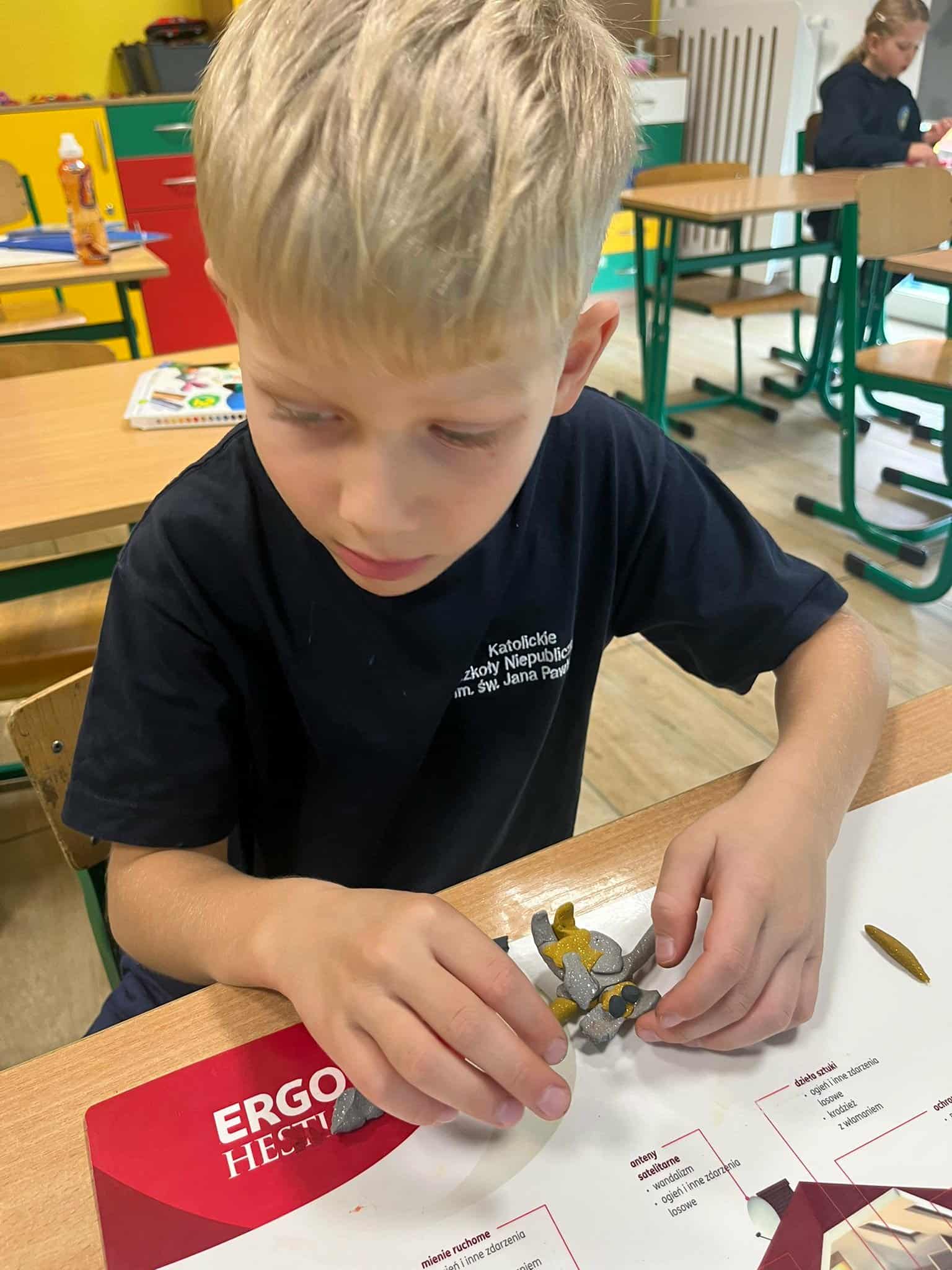 Klasa 1a rozpoczęła omawianie swojej pierwszej lektury – „Plastusiowy pamiętnik” Marii Kownackiej. Uczniowie poznali przygody sympatycznego ludzika z plasteliny – Plastusia, który mieszka w piórniku Tosi i przeżywa wiele ciekawych przygód. Aby jeszcze lepiej wczuć się w świat lektury, dzieci wykonały z plasteliny własne figurki Plastusia. W ten sposób połączyły czytanie z twórczą zabawą i rozwijaniem zdolności manualnych.