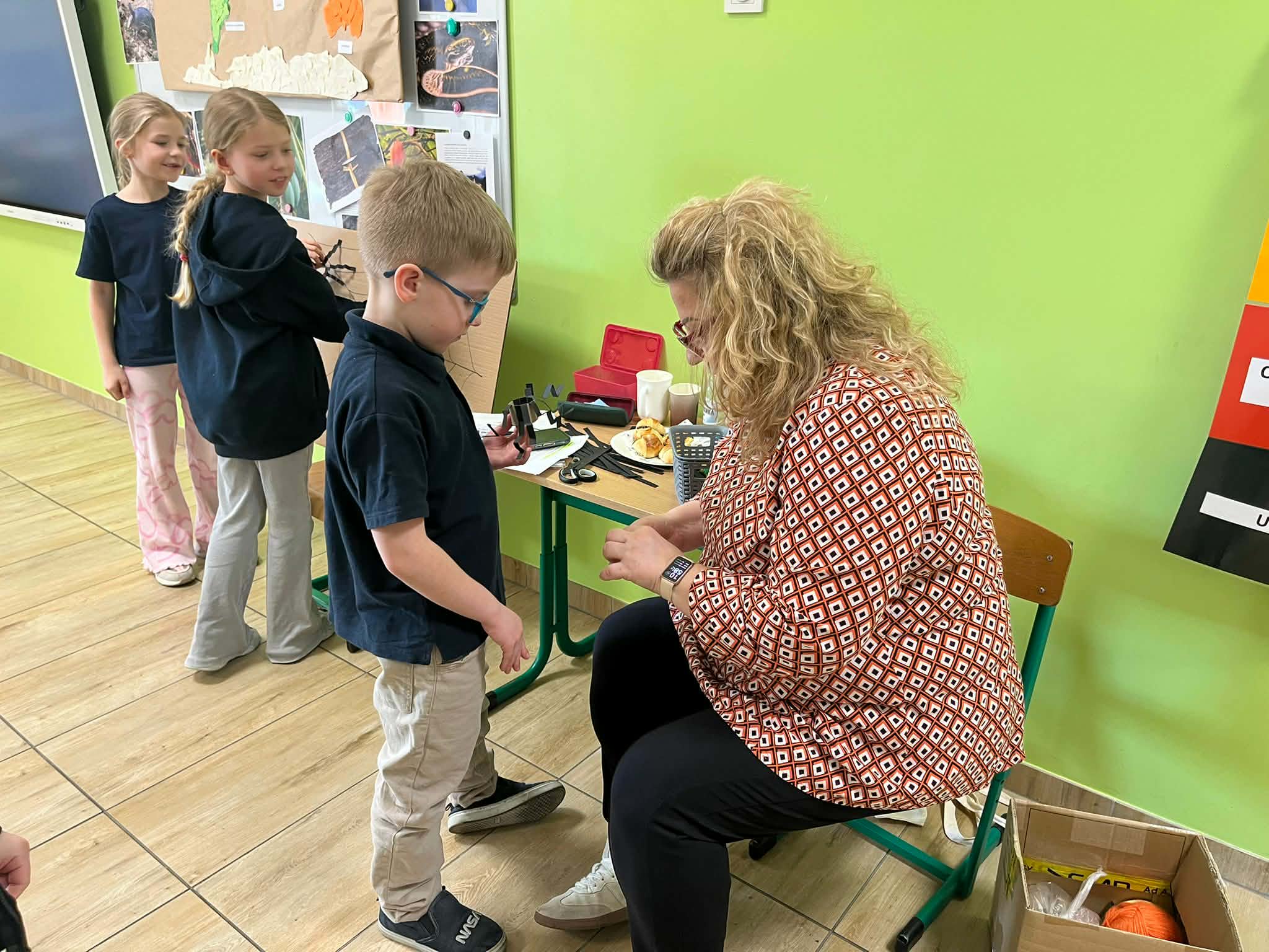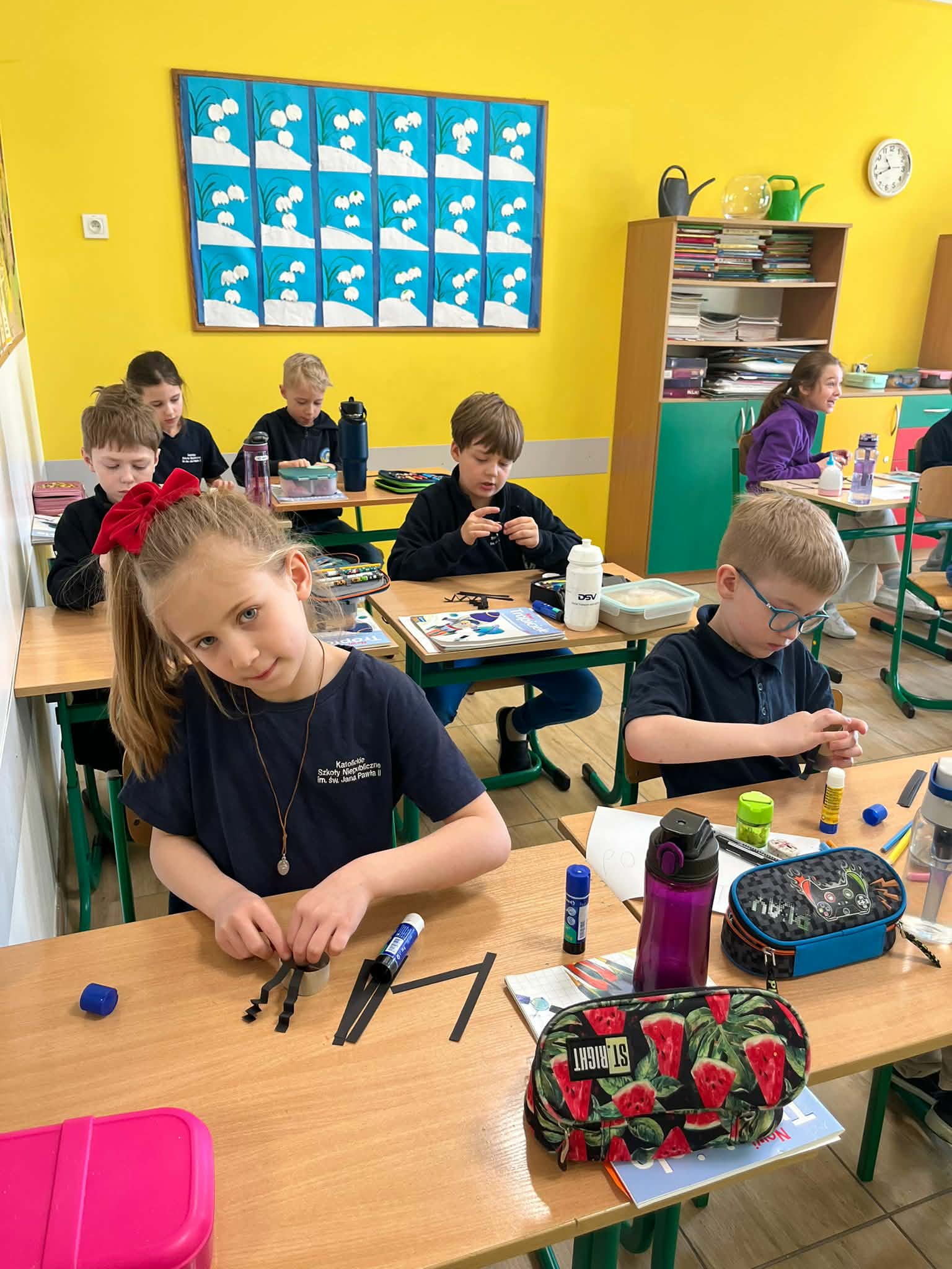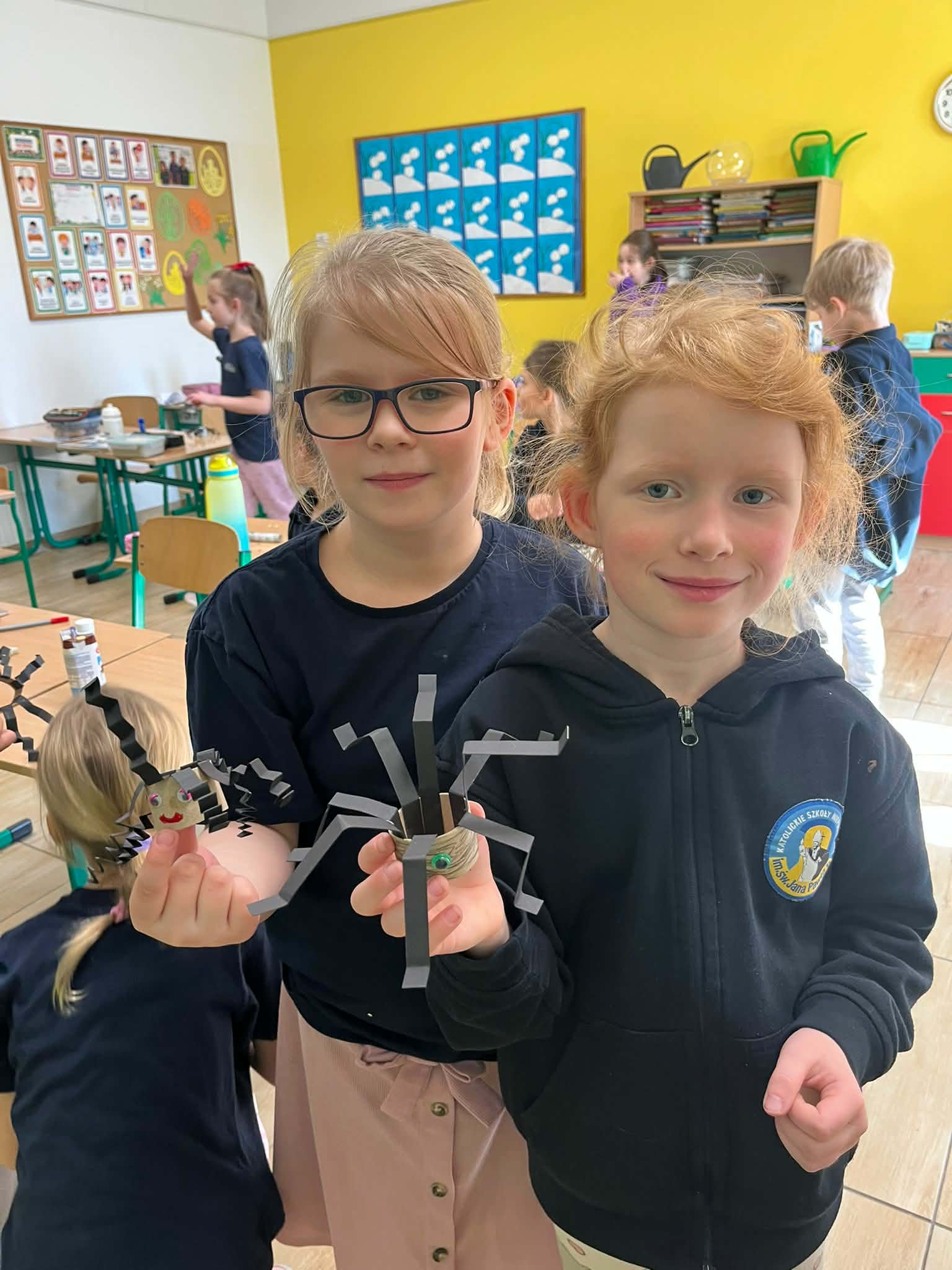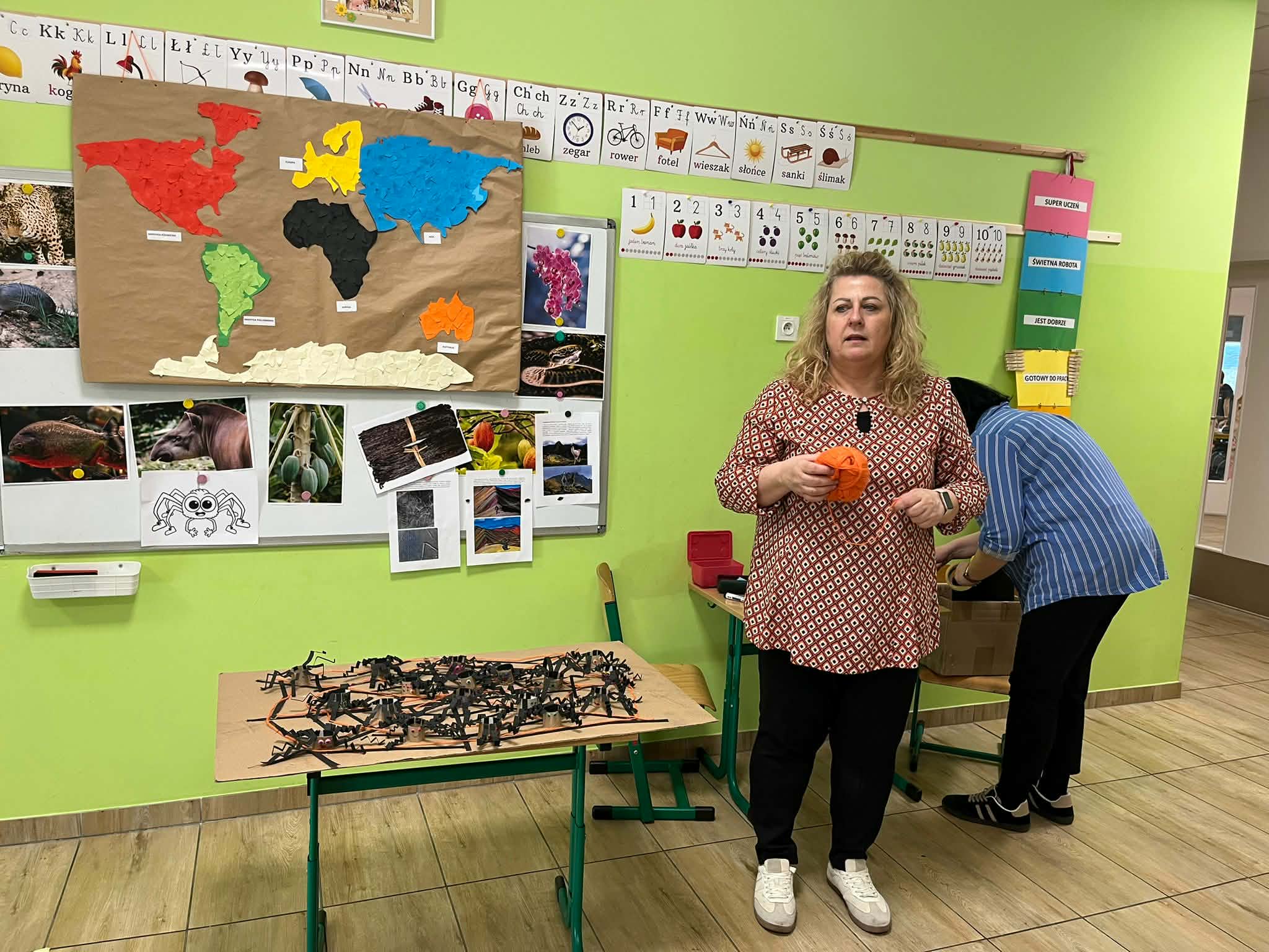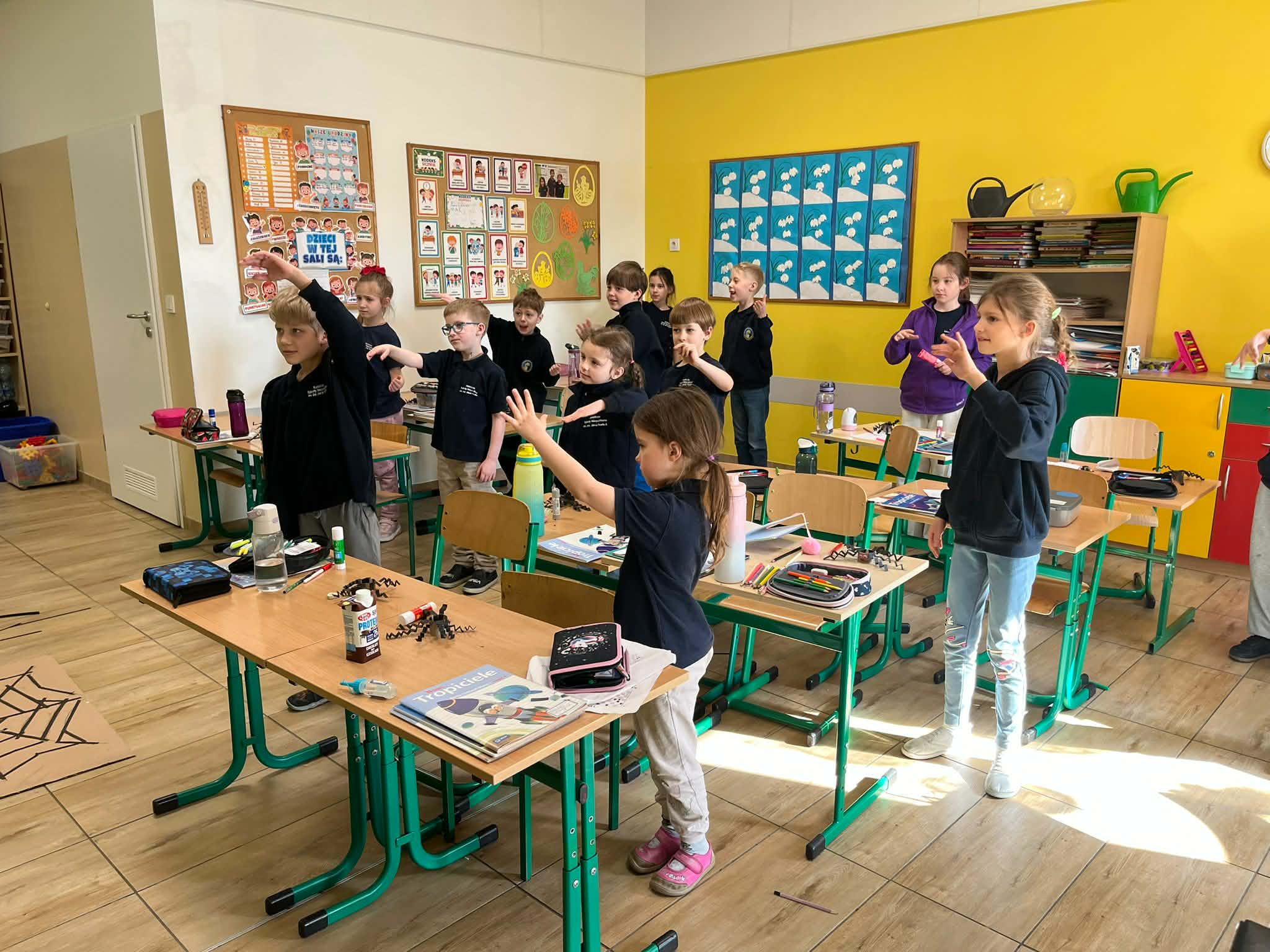W naszej szkole odbyło się kolejne spotkanie w ramach projektu „Z baśniami dookoła świata”. Tym razem uczniów klasy 1a Katolickiej Szkoły Niepublicznej w Pruszczu Gdańskim odwiedziły panie z Powiatowej i Miejskiej Biblioteki Publicznej w Pruszczu Gdańskim, które zabrały dzieci w niezwykłą literacką podróż do Ameryki Południowej. Podczas spotkania uczniowie poznali baśń „O pająku”, opartą na podaniach Indian Keczua zamieszkujących tereny dzisiejszego Peru. Dzieci wysłuchały historii księżniczki Uru – córki władcy Inków, która przez swoje egoistyczne zachowanie została przemieniona w pająka skazanego na nieustanne tkanie sieci. Po lekturze uczniowie wspólnie rozmawiali o postępowaniu bohaterki, zastanawiając się nad znaczeniem szacunku, pokory i odpowiedzialności za własne czyny. Kolejną częścią zajęć była praca z mapą świata. Pierwszoklasiści odnaleźli Amerykę Południową oraz Peru, poznając ciekawostki o tym regionie. Dowiedzieli się m.in. o łagodnych alpakach, niezwykłej Górze Siedmiu Kolorów – Vinicunca oraz tajemniczych rysunkach z Płaskowyżu Nazca, które można podziwiać jedynie z lotu ptaka. Inspiracją do warsztatów plastycznych stała się historia księżniczki Uru. Dzieci wykonały pająki z papieru i włóczki, które „zamieszkały” na wspólnej pajęczynie. Uczniowie poznali również popularną w Peru grę Sapo, polegającą na trafianiu krążkiem do celu – największą liczbę punktów zdobywa rzut wprost do otwartej buzi metalowej żaby. Spotkanie zakończyła integracyjna zabawa „pajęczyna przyjaźni”. Przekazując sobie kłębek włóczki, dzieci tworzyły wspólną sieć, mówiąc sobie nawzajem miłe słowa. Powstała pajęczyna stała się symbolem przyjaźni, współpracy i wzajemnego szacunku w klasie. Organizatorem projektu „Z baśniami dookoła świata” jest Szkoła Podstawowa nr 29 z Oddziałami Sportowymi im. A. Szklarskiego w Dąbrowie Górniczej. Autorka projektu: mgr Marcelina Piszczek Koordynatorki: Marcelina Piszczek i Wioletta Holi.