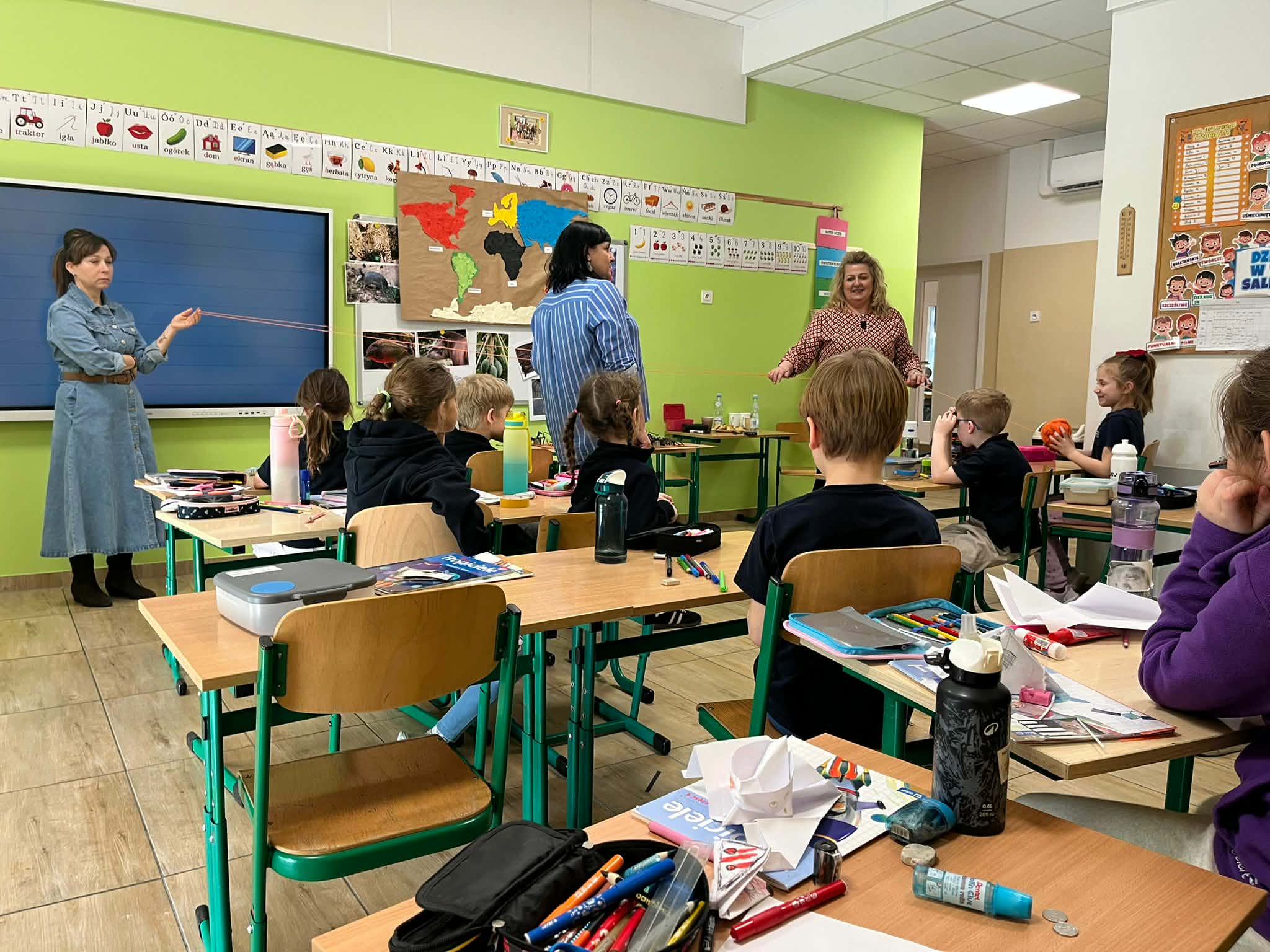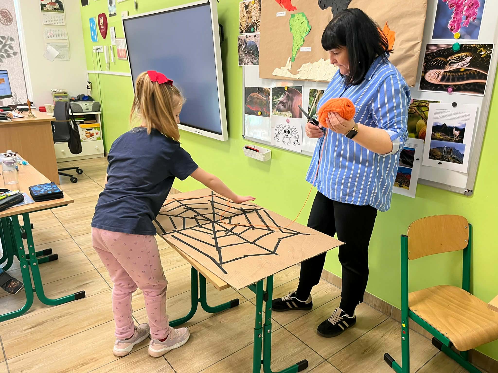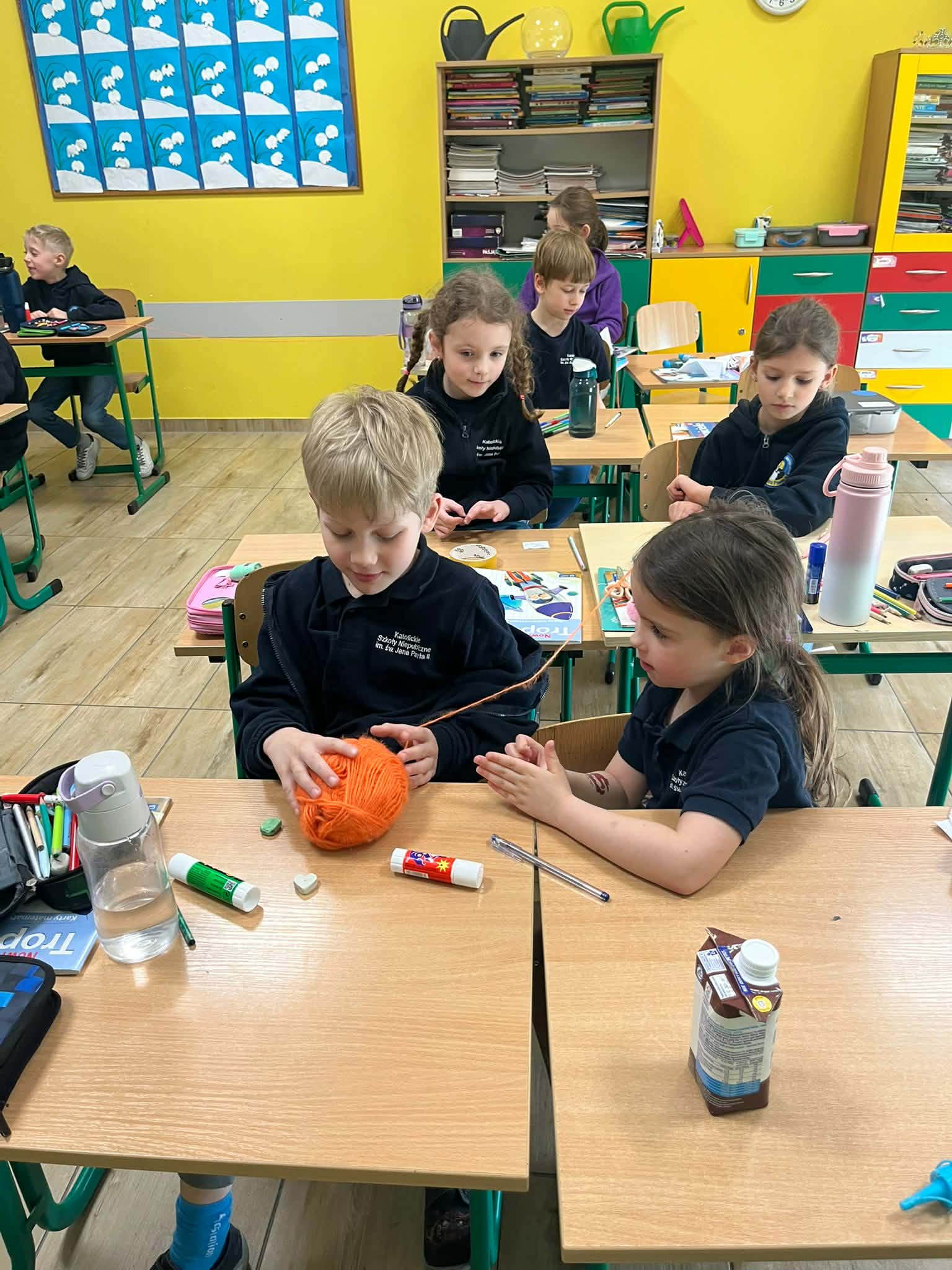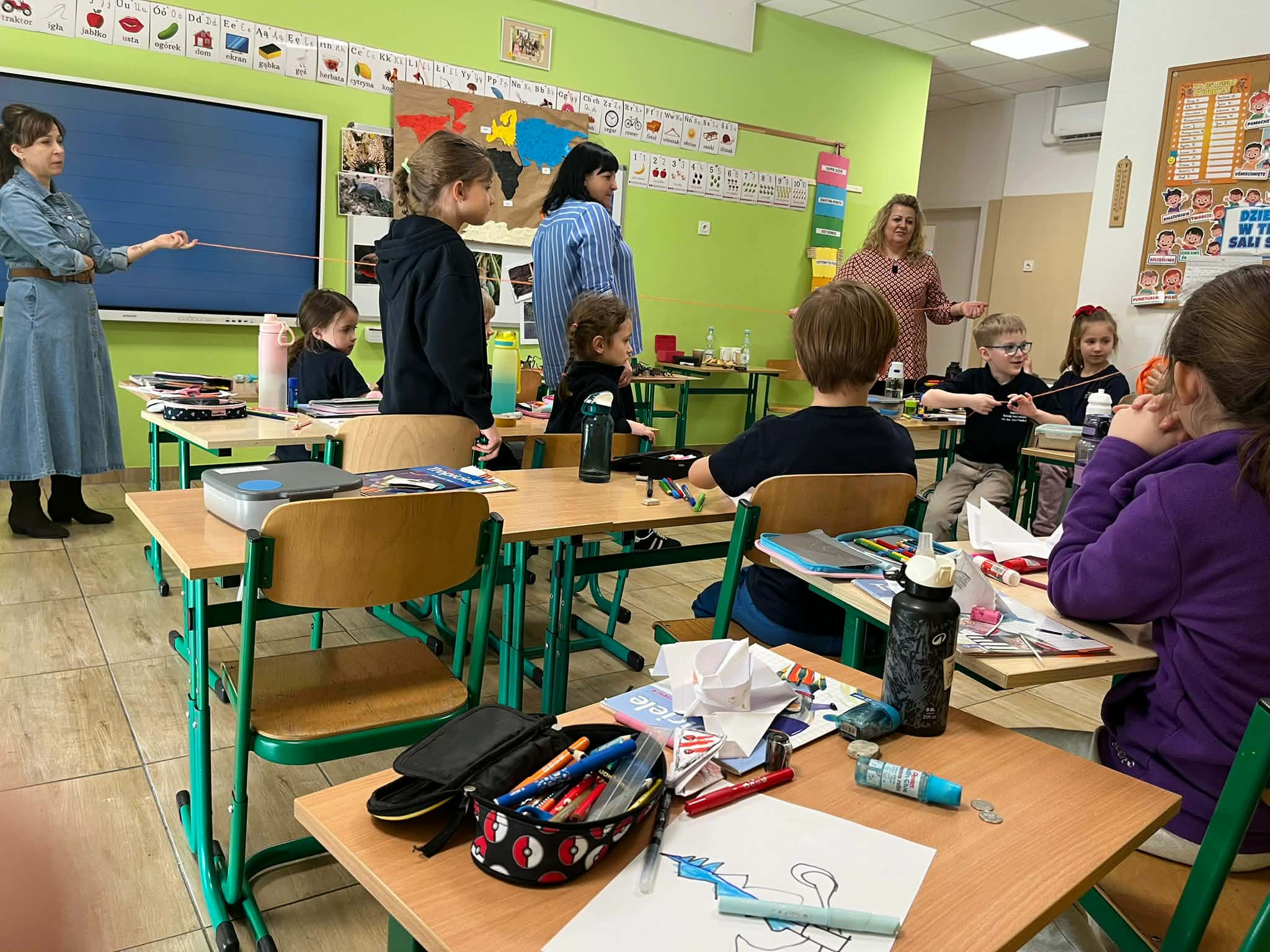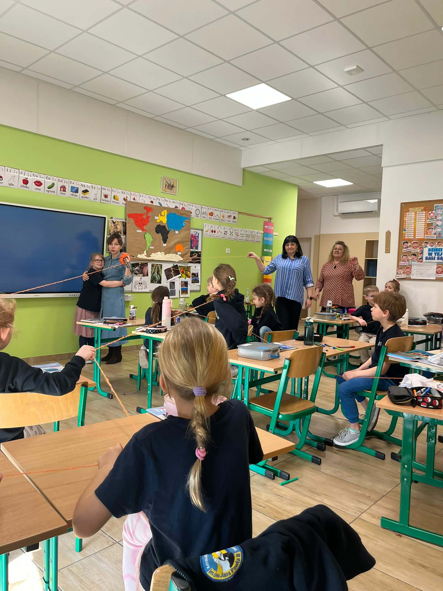W naszej szkole odbyło się kolejne spotkanie w ramach projektu „Z baśniami dookoła świata”. Tym razem uczniów klasy 1a Katolickiej Szkoły Niepublicznej w Pruszczu Gdańskim odwiedziły panie z Powiatowej i Miejskiej Biblioteki Publicznej w Pruszczu Gdańskim, które zabrały dzieci w niezwykłą literacką podróż do Ameryki Południowej. Podczas spotkania uczniowie poznali baśń „O pająku”, opartą na podaniach Indian Keczua zamieszkujących tereny dzisiejszego Peru. Dzieci wysłuchały historii księżniczki Uru – córki władcy Inków, która przez swoje egoistyczne zachowanie została przemieniona w pająka skazanego na nieustanne tkanie sieci. Po lekturze uczniowie wspólnie rozmawiali o postępowaniu bohaterki, zastanawiając się nad znaczeniem szacunku, pokory i odpowiedzialności za własne czyny. Kolejną częścią zajęć była praca z mapą świata. Pierwszoklasiści odnaleźli Amerykę Południową oraz Peru, poznając ciekawostki o tym regionie. Dowiedzieli się m.in. o łagodnych alpakach, niezwykłej Górze Siedmiu Kolorów – Vinicunca oraz tajemniczych rysunkach z Płaskowyżu Nazca, które można podziwiać jedynie z lotu ptaka. Inspiracją do warsztatów plastycznych stała się historia księżniczki Uru. Dzieci wykonały pająki z papieru i włóczki, które „zamieszkały” na wspólnej pajęczynie. Uczniowie poznali również popularną w Peru grę Sapo, polegającą na trafianiu krążkiem do celu – największą liczbę punktów zdobywa rzut wprost do otwartej buzi metalowej żaby. Spotkanie zakończyła integracyjna zabawa „pajęczyna przyjaźni”. Przekazując sobie kłębek włóczki, dzieci tworzyły wspólną sieć, mówiąc sobie nawzajem miłe słowa. Powstała pajęczyna stała się symbolem przyjaźni, współpracy i wzajemnego szacunku w klasie. Organizatorem projektu „Z baśniami dookoła świata” jest Szkoła Podstawowa nr 29 z Oddziałami Sportowymi im. A. Szklarskiego w Dąbrowie Górniczej. Autorka projektu: mgr Marcelina Piszczek Koordynatorki: Marcelina Piszczek i Wioletta Holi.