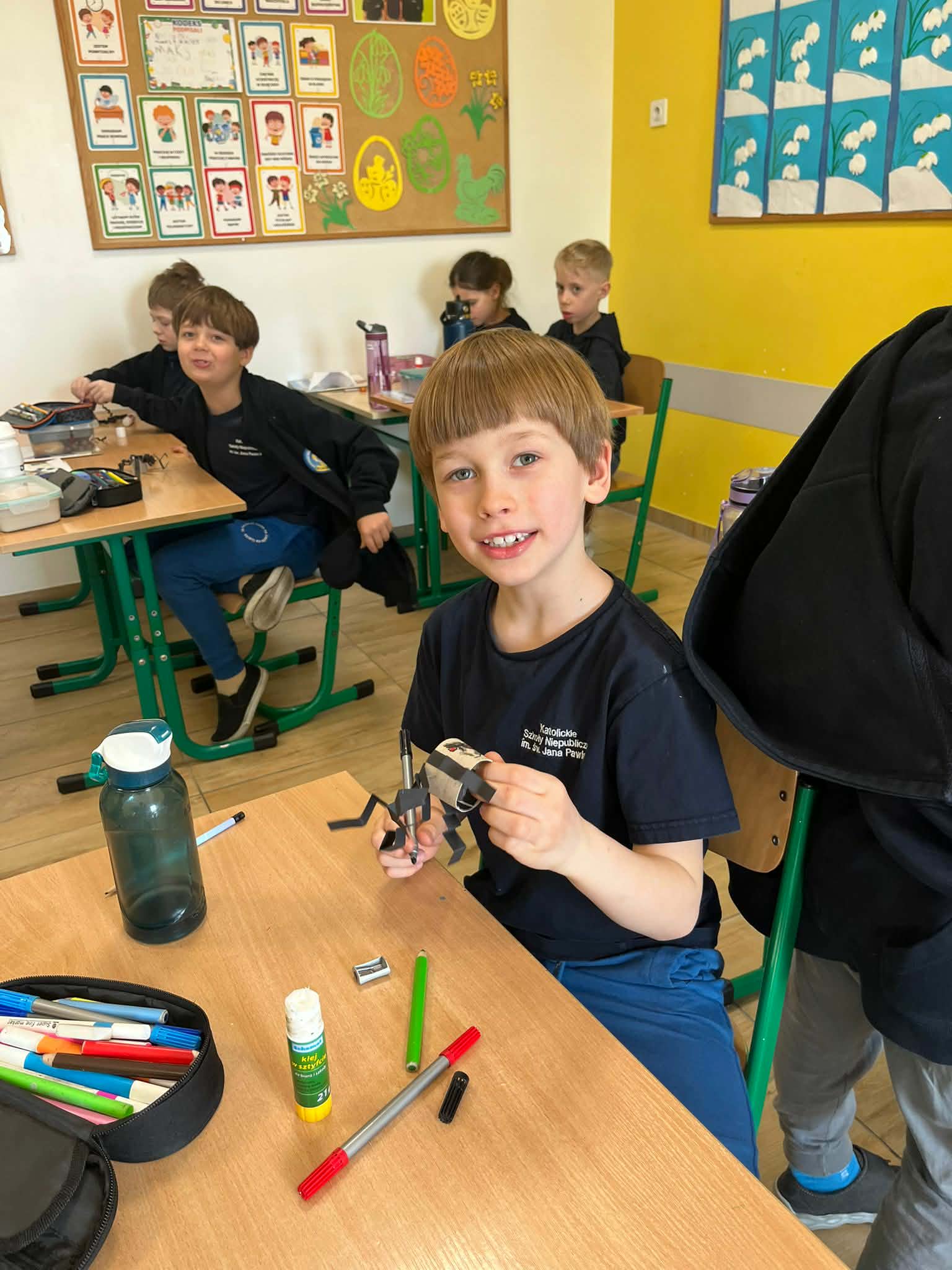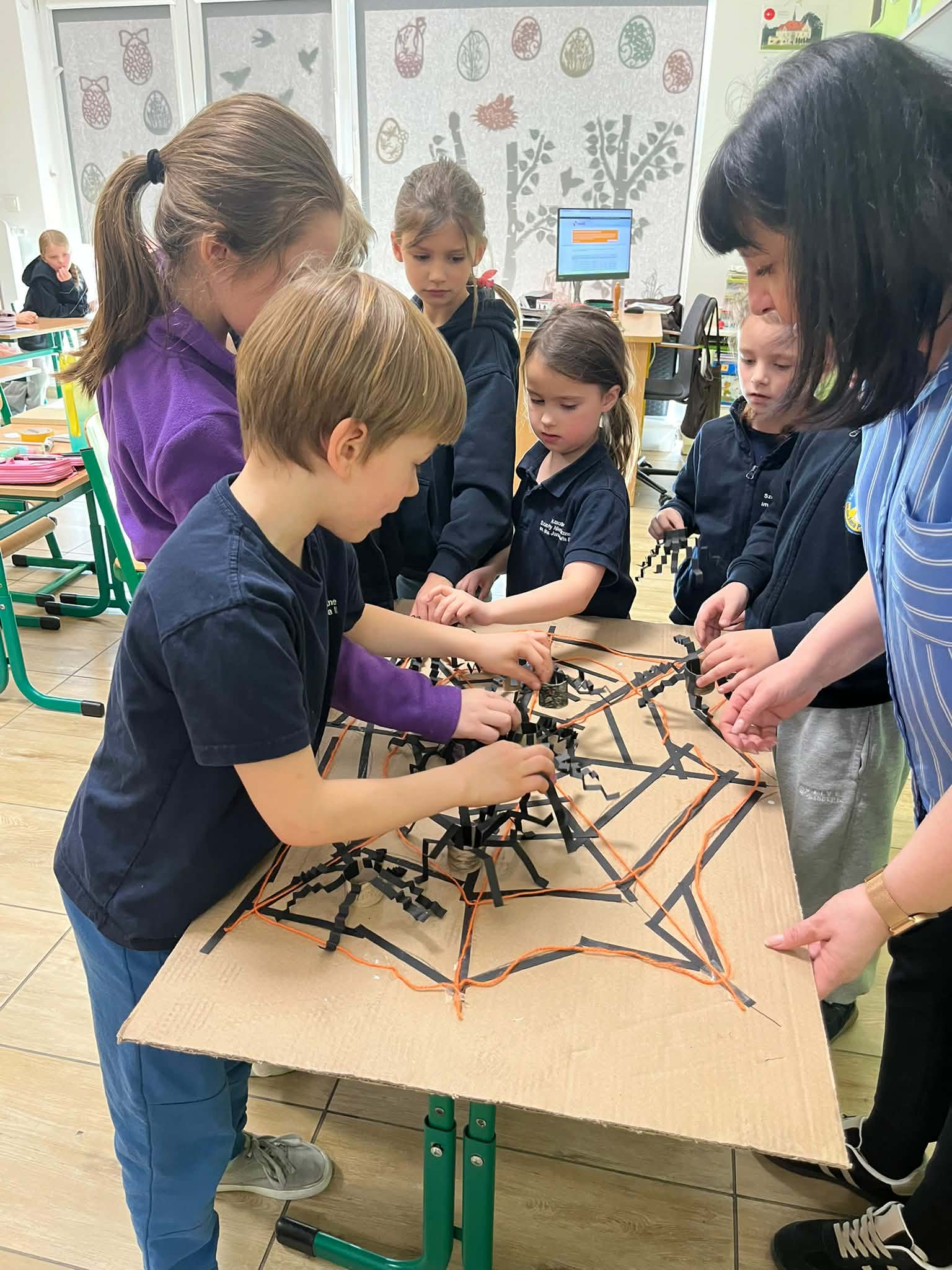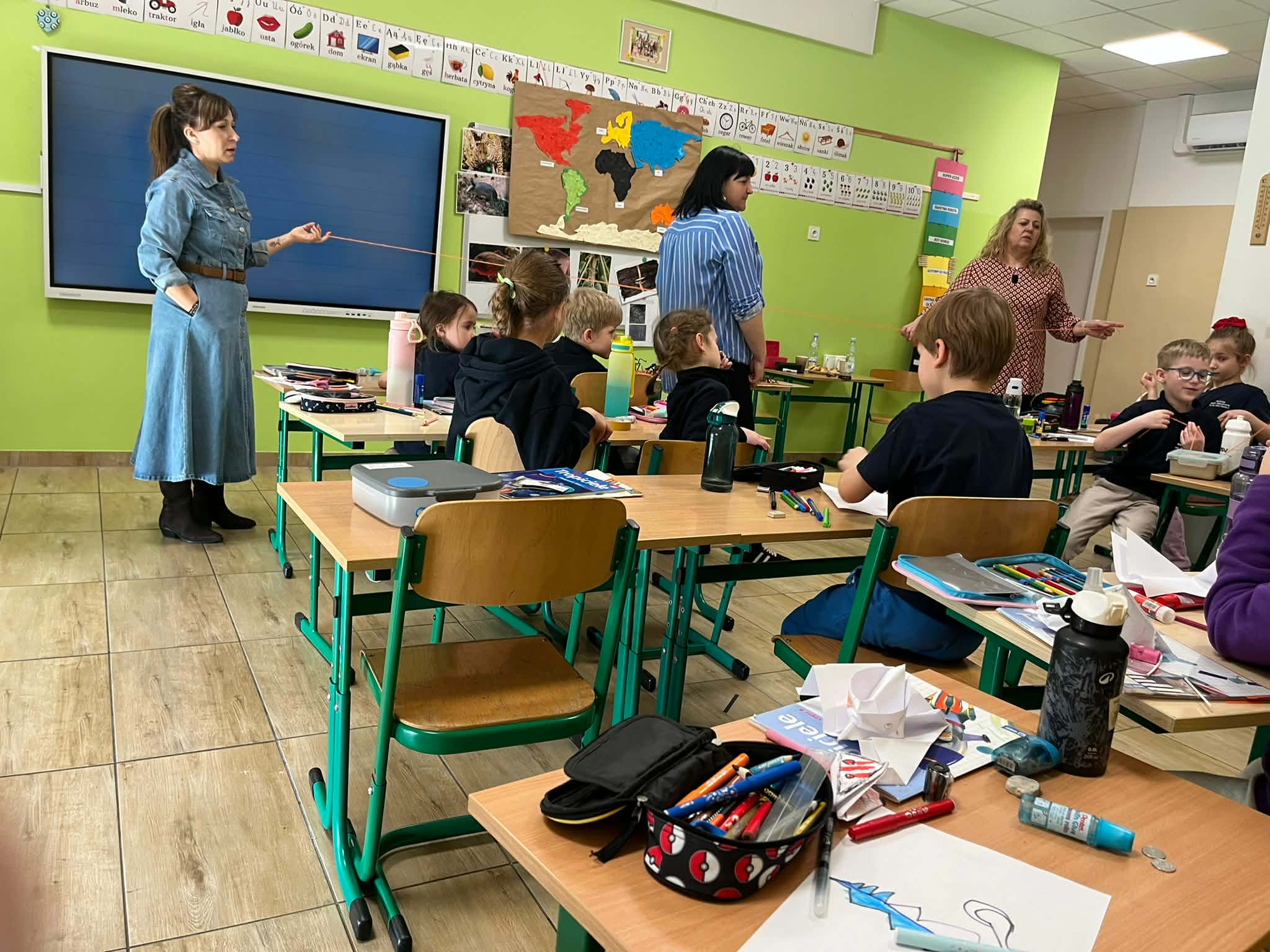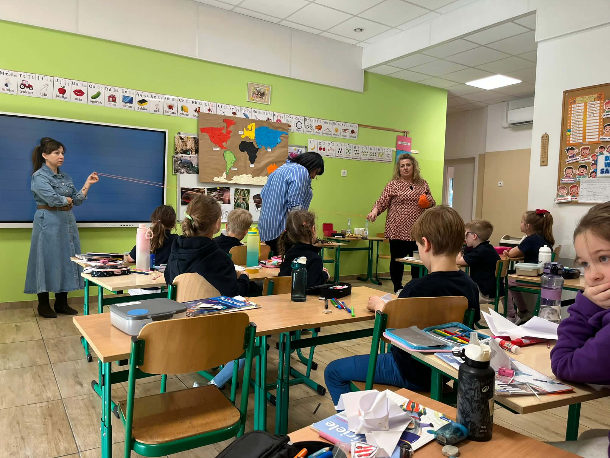W naszej szkole odbyło się kolejne spotkanie w ramach projektu „Z baśniami dookoła świata”. Tym razem uczniów klasy 1a Katolickiej Szkoły Niepublicznej w Pruszczu Gdańskim odwiedziły panie z Powiatowej i Miejskiej Biblioteki Publicznej w Pruszczu Gdańskim, które zabrały dzieci w niezwykłą literacką podróż do Ameryki Południowej. Podczas spotkania uczniowie poznali baśń „O pająku”, opartą na podaniach Indian Keczua zamieszkujących tereny dzisiejszego Peru. Dzieci wysłuchały historii księżniczki Uru – córki władcy Inków, która przez swoje egoistyczne zachowanie została przemieniona w pająka skazanego na nieustanne tkanie sieci. Po lekturze uczniowie wspólnie rozmawiali o postępowaniu bohaterki, zastanawiając się nad znaczeniem szacunku, pokory i odpowiedzialności za własne czyny. Kolejną częścią zajęć była praca z mapą świata. Pierwszoklasiści odnaleźli Amerykę Południową oraz Peru, poznając ciekawostki o tym regionie. Dowiedzieli się m.in. o łagodnych alpakach, niezwykłej Górze Siedmiu Kolorów – Vinicunca oraz tajemniczych rysunkach z Płaskowyżu Nazca, które można podziwiać jedynie z lotu ptaka. Inspiracją do warsztatów plastycznych stała się historia księżniczki Uru. Dzieci wykonały pająki z papieru i włóczki, które „zamieszkały” na wspólnej pajęczynie. Uczniowie poznali również popularną w Peru grę Sapo, polegającą na trafianiu krążkiem do celu – największą liczbę punktów zdobywa rzut wprost do otwartej buzi metalowej żaby. Spotkanie zakończyła integracyjna zabawa „pajęczyna przyjaźni”. Przekazując sobie kłębek włóczki, dzieci tworzyły wspólną sieć, mówiąc sobie nawzajem miłe słowa. Powstała pajęczyna stała się symbolem przyjaźni, współpracy i wzajemnego szacunku w klasie. Organizatorem projektu „Z baśniami dookoła świata” jest Szkoła Podstawowa nr 29 z Oddziałami Sportowymi im. A. Szklarskiego w Dąbrowie Górniczej. Autorka projektu: mgr Marcelina Piszczek Koordynatorki: Marcelina Piszczek i Wioletta Holi.