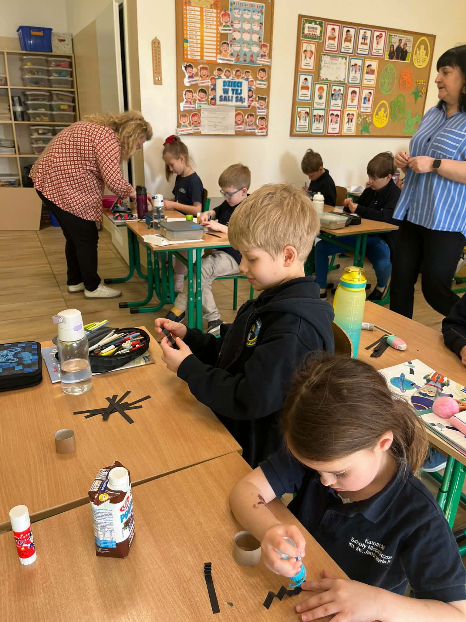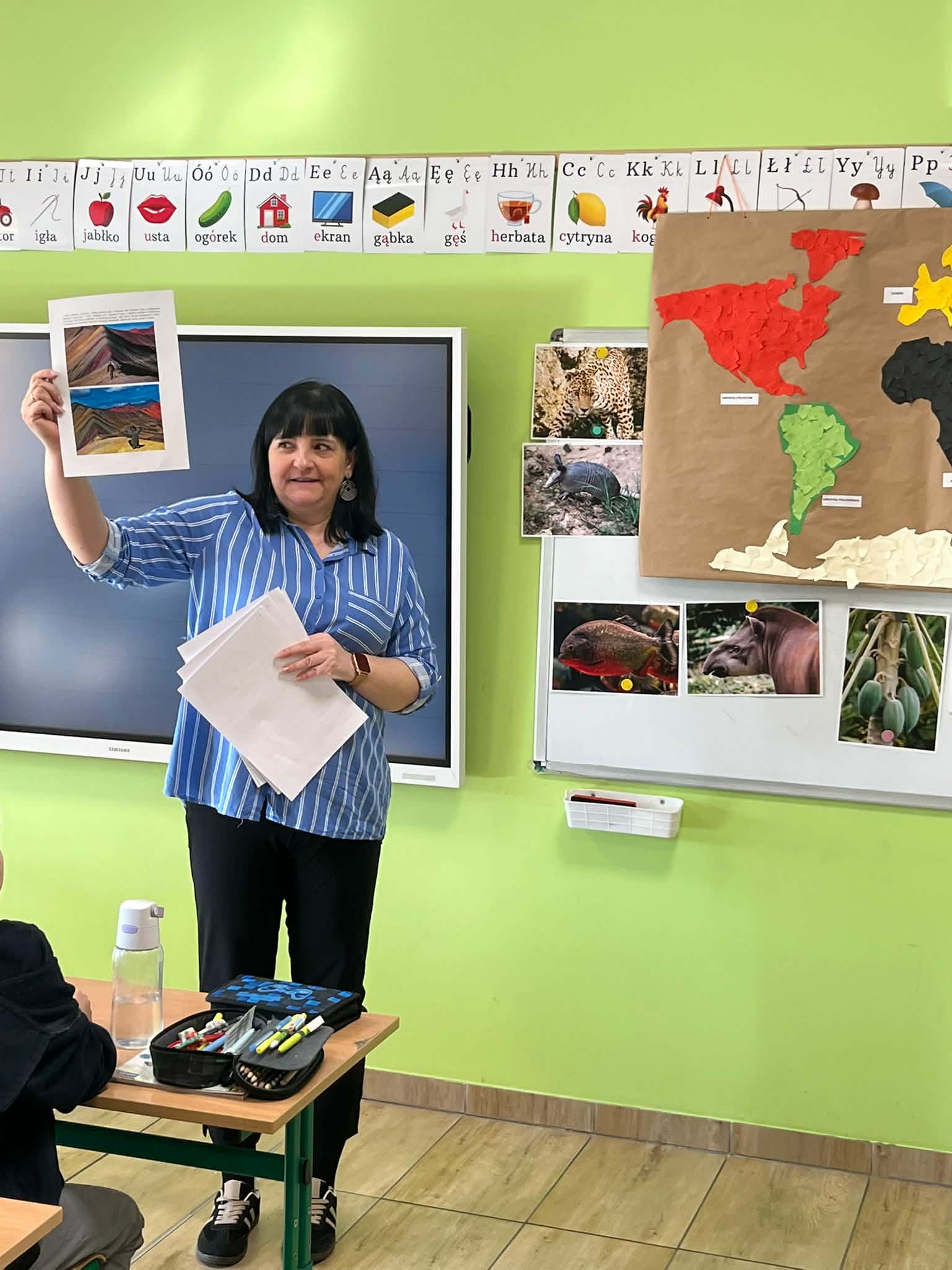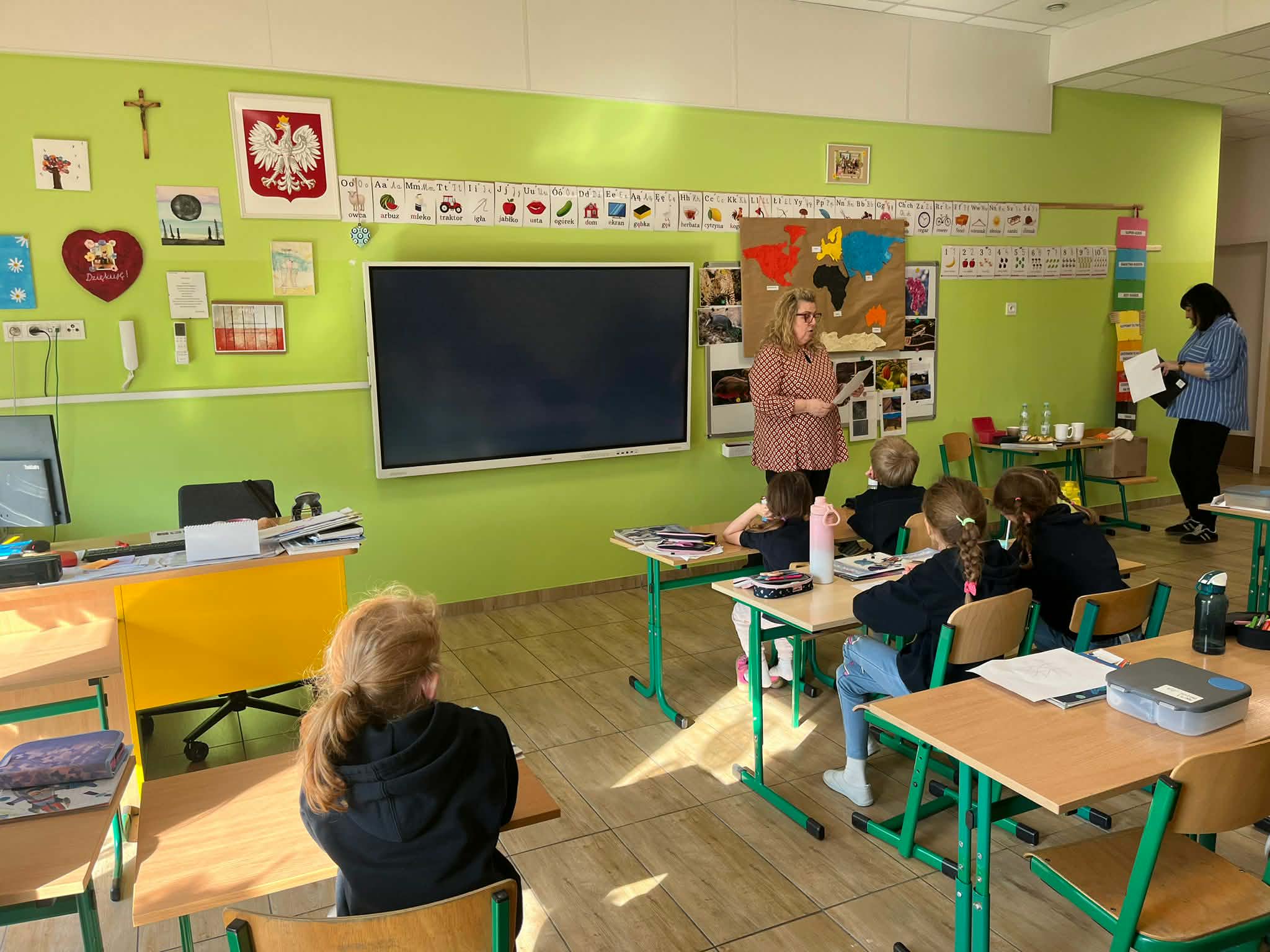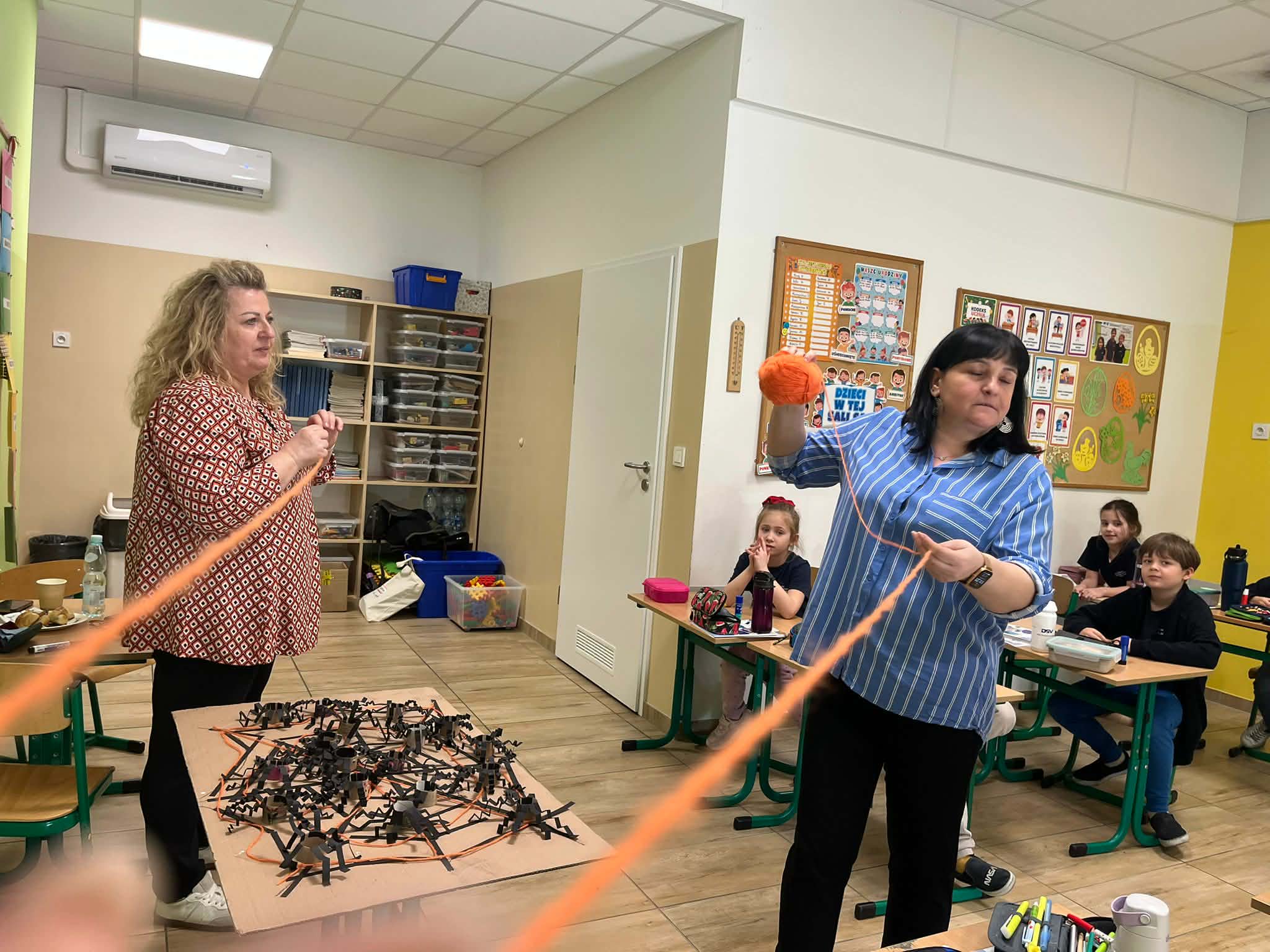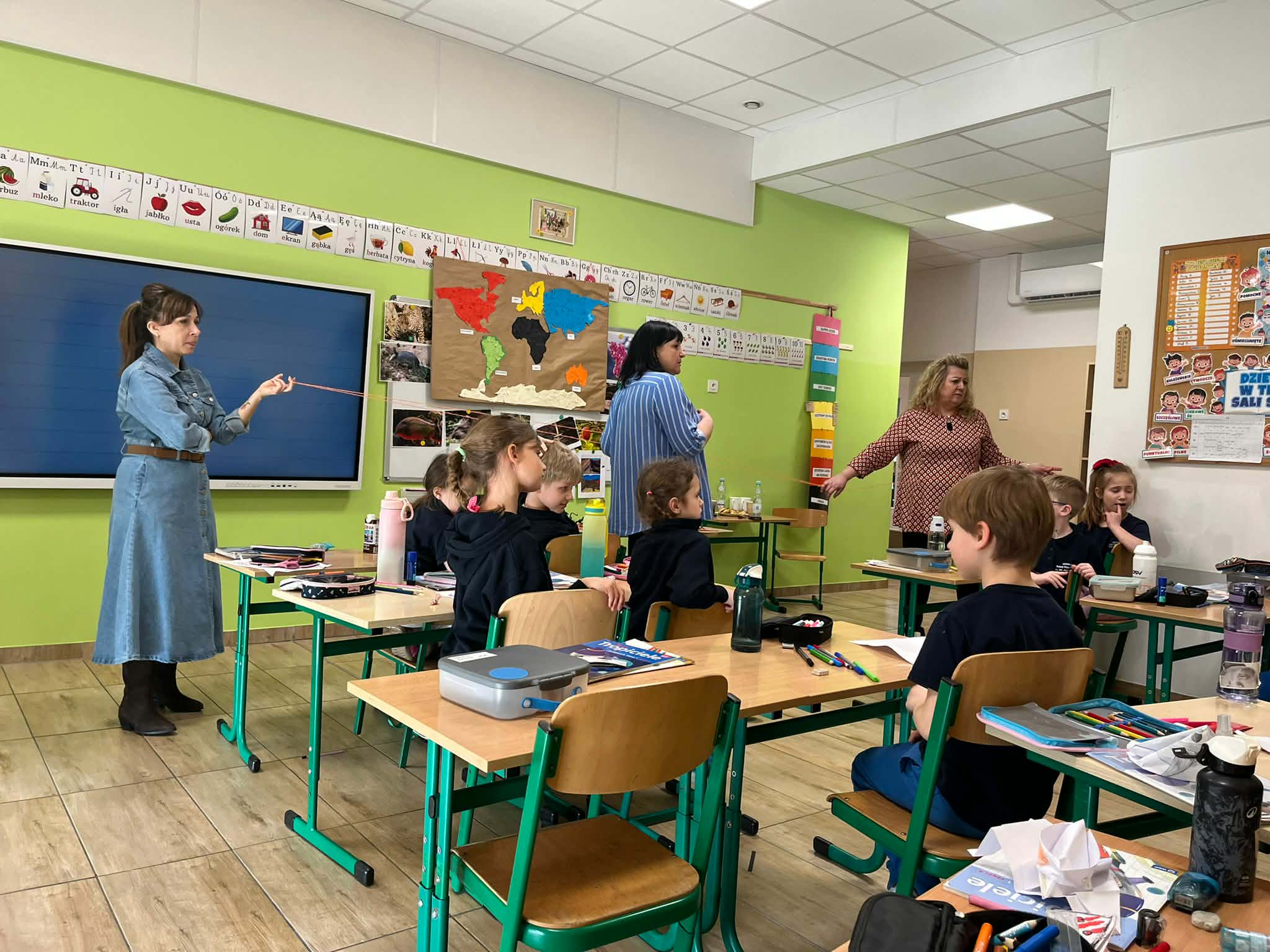 W naszej szkole odbyło się kolejne spotkanie w ramach projektu „Z baśniami dookoła świata”. Tym razem uczniów klasy 1a Katolickiej Szkoły Niepublicznej w Pruszczu Gdańskim odwiedziły panie z Powiatowej i Miejskiej Biblioteki Publicznej w Pruszczu Gdańskim, które zabrały dzieci w niezwykłą literacką podróż do Ameryki Południowej. Podczas spotkania uczniowie poznali baśń „O pająku”, opartą na podaniach Indian Keczua zamieszkujących tereny dzisiejszego Peru. Dzieci wysłuchały historii księżniczki Uru – córki władcy Inków, która przez swoje egoistyczne zachowanie została przemieniona w pająka skazanego na nieustanne tkanie sieci. Po lekturze uczniowie wspólnie rozmawiali o postępowaniu bohaterki, zastanawiając się nad znaczeniem szacunku, pokory i odpowiedzialności za własne czyny. Kolejną częścią zajęć była praca z mapą świata. Pierwszoklasiści odnaleźli Amerykę Południową oraz Peru, poznając ciekawostki o tym regionie. Dowiedzieli się m.in. o łagodnych alpakach, niezwykłej Górze Siedmiu Kolorów – Vinicunca oraz tajemniczych rysunkach z Płaskowyżu Nazca, które można podziwiać jedynie z lotu ptaka. Inspiracją do warsztatów plastycznych stała się historia księżniczki Uru. Dzieci wykonały pająki z papieru i włóczki, które „zamieszkały” na wspólnej pajęczynie. Uczniowie poznali również popularną w Peru grę Sapo, polegającą na trafianiu krążkiem do celu – największą liczbę punktów zdobywa rzut wprost do otwartej buzi metalowej żaby. Spotkanie zakończyła integracyjna zabawa „pajęczyna przyjaźni”. Przekazując sobie kłębek włóczki, dzieci tworzyły wspólną sieć, mówiąc sobie nawzajem miłe słowa. Powstała pajęczyna stała się symbolem przyjaźni, współpracy i wzajemnego szacunku w klasie. Organizatorem projektu „Z baśniami dookoła świata” jest Szkoła Podstawowa nr 29 z Oddziałami Sportowymi im. A. Szklarskiego w Dąbrowie Górniczej. Autorka projektu: mgr Marcelina Piszczek Koordynatorki: Marcelina Piszczek i Wioletta Holi.