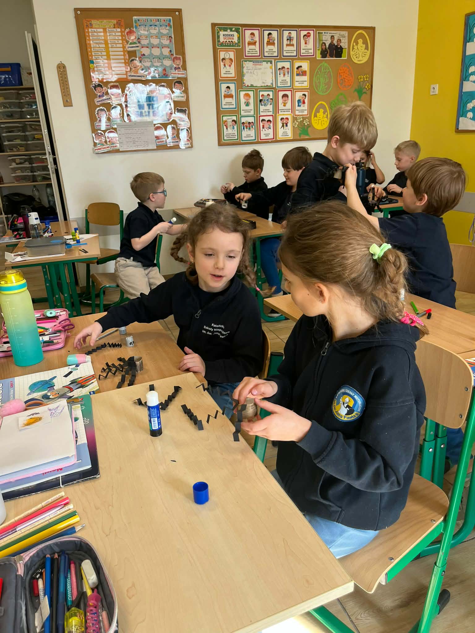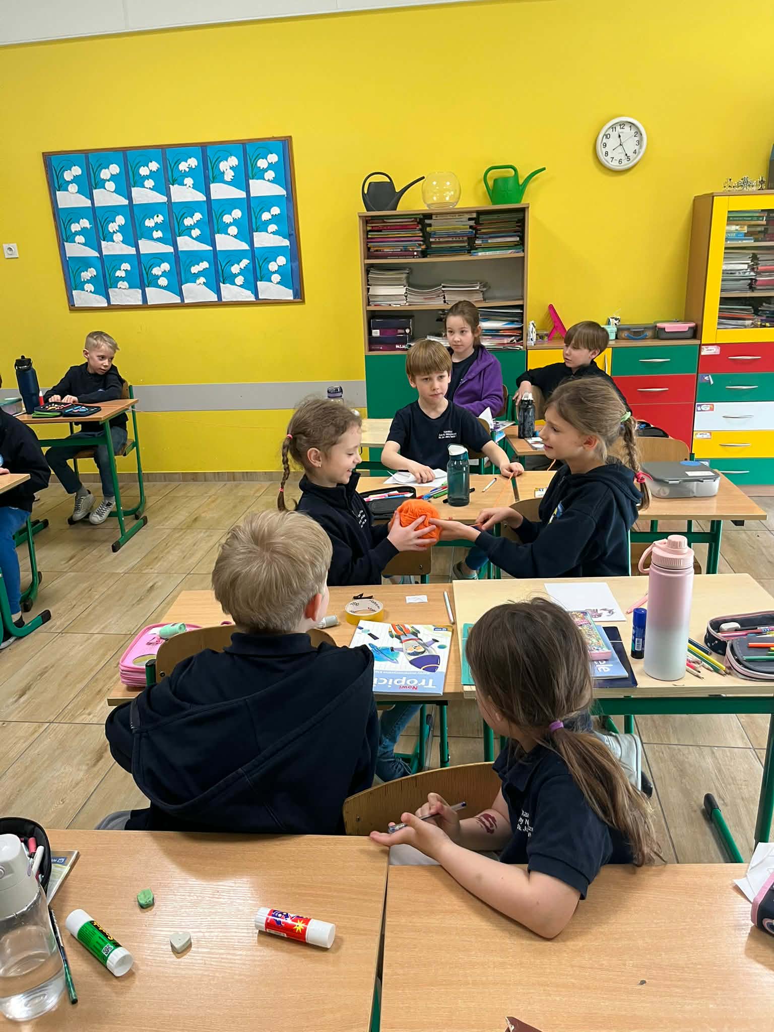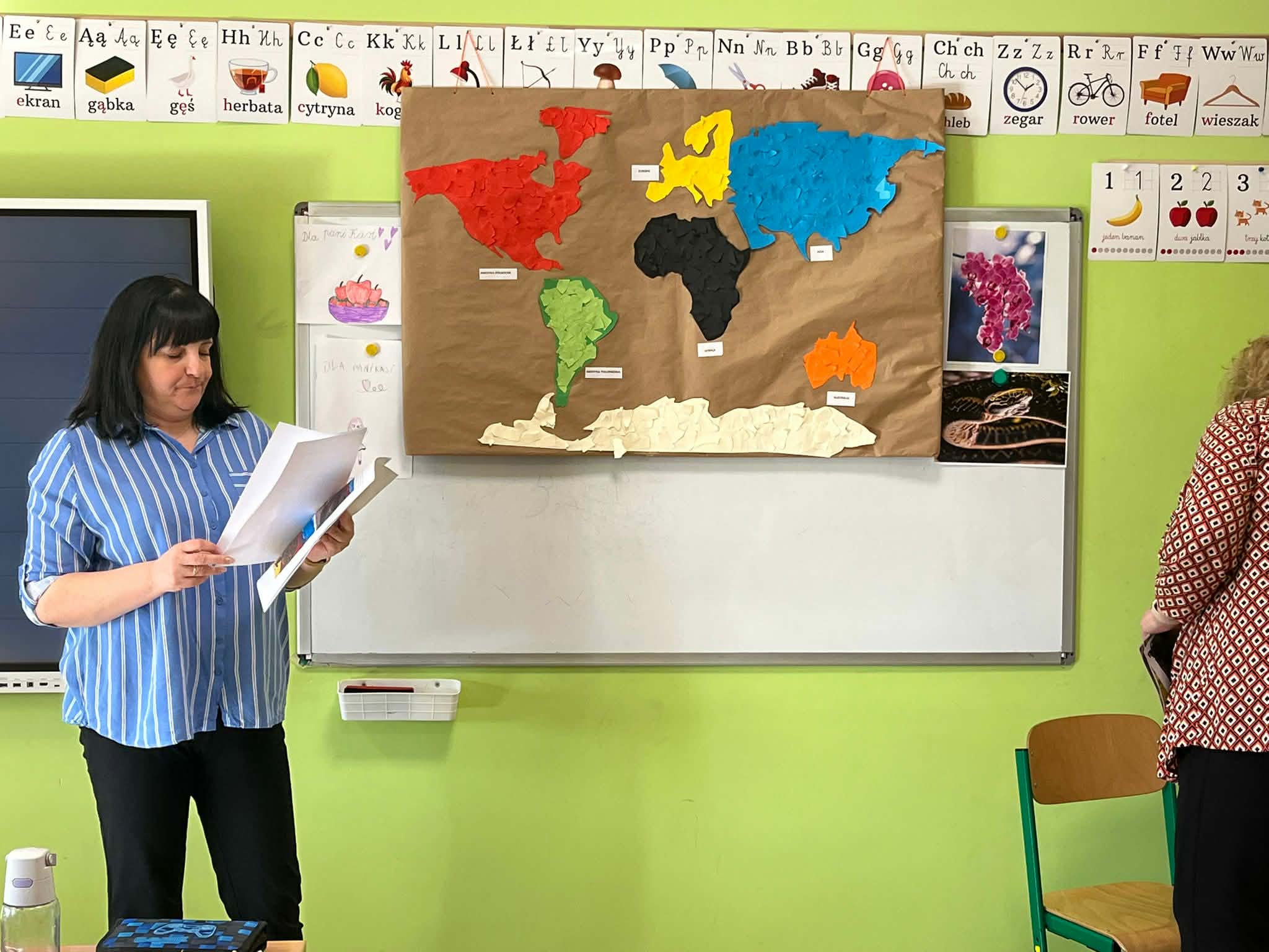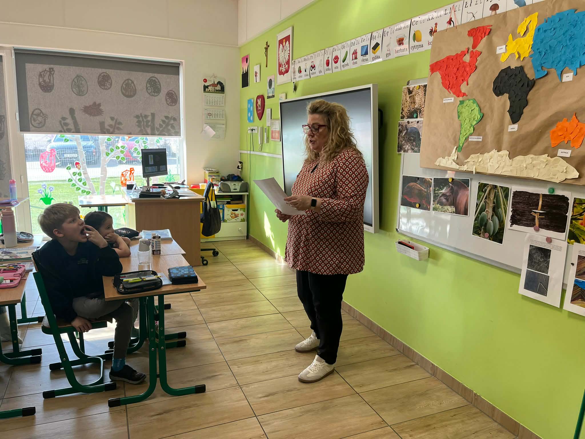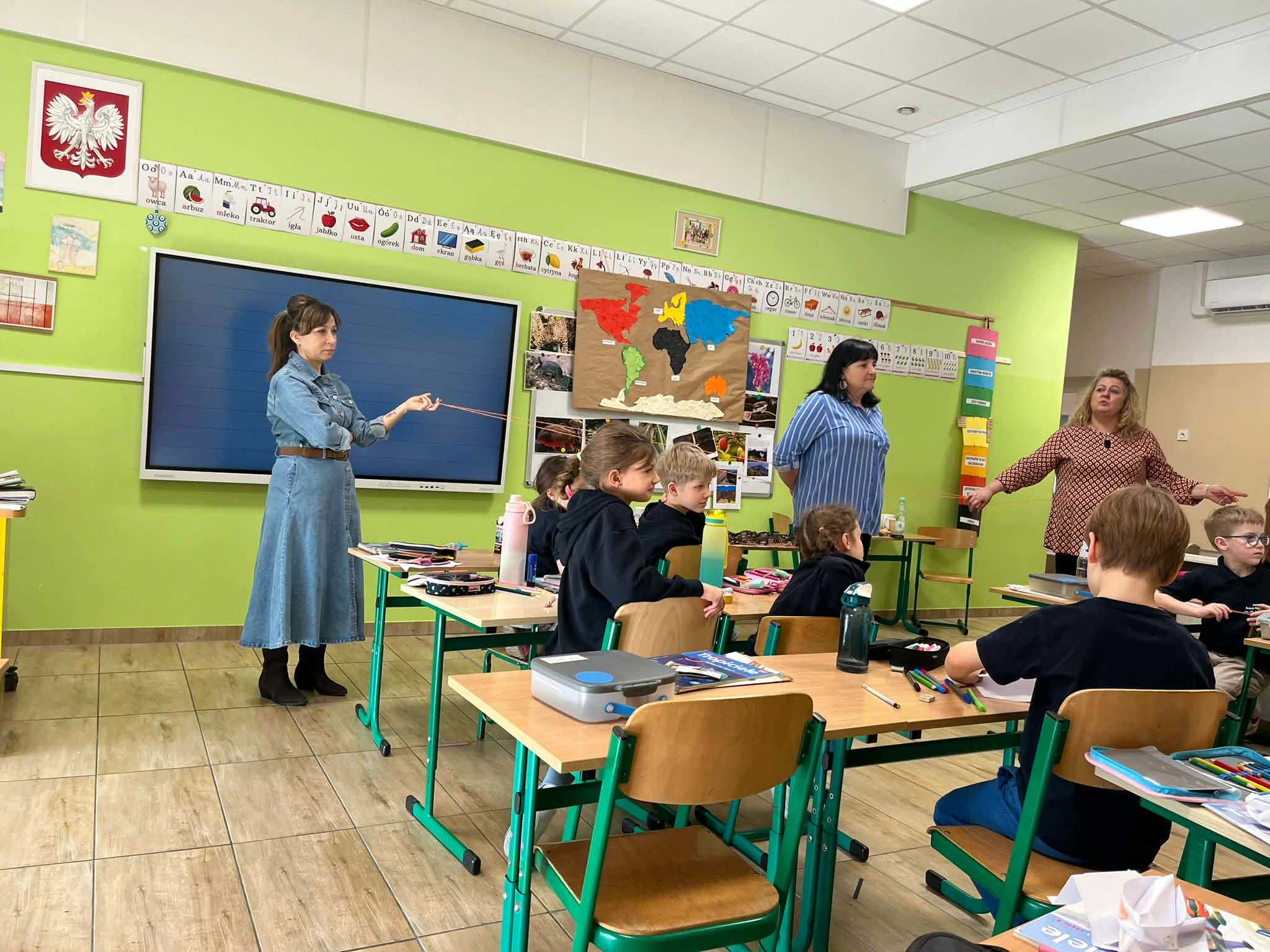 W naszej szkole odbyło się kolejne spotkanie w ramach projektu „Z baśniami dookoła świata”. Tym razem uczniów klasy 1a Katolickiej Szkoły Niepublicznej w Pruszczu Gdańskim odwiedziły panie z Powiatowej i Miejskiej Biblioteki Publicznej w Pruszczu Gdańskim, które zabrały dzieci w niezwykłą literacką podróż do Ameryki Południowej. Podczas spotkania uczniowie poznali baśń „O pająku”, opartą na podaniach Indian Keczua zamieszkujących tereny dzisiejszego Peru. Dzieci wysłuchały historii księżniczki Uru – córki władcy Inków, która przez swoje egoistyczne zachowanie została przemieniona w pająka skazanego na nieustanne tkanie sieci. Po lekturze uczniowie wspólnie rozmawiali o postępowaniu bohaterki, zastanawiając się nad znaczeniem szacunku, pokory i odpowiedzialności za własne czyny. Kolejną częścią zajęć była praca z mapą świata. Pierwszoklasiści odnaleźli Amerykę Południową oraz Peru, poznając ciekawostki o tym regionie. Dowiedzieli się m.in. o łagodnych alpakach, niezwykłej Górze Siedmiu Kolorów – Vinicunca oraz tajemniczych rysunkach z Płaskowyżu Nazca, które można podziwiać jedynie z lotu ptaka. Inspiracją do warsztatów plastycznych stała się historia księżniczki Uru. Dzieci wykonały pająki z papieru i włóczki, które „zamieszkały” na wspólnej pajęczynie. Uczniowie poznali również popularną w Peru grę Sapo, polegającą na trafianiu krążkiem do celu – największą liczbę punktów zdobywa rzut wprost do otwartej buzi metalowej żaby. Spotkanie zakończyła integracyjna zabawa „pajęczyna przyjaźni”. Przekazując sobie kłębek włóczki, dzieci tworzyły wspólną sieć, mówiąc sobie nawzajem miłe słowa. Powstała pajęczyna stała się symbolem przyjaźni, współpracy i wzajemnego szacunku w klasie. Organizatorem projektu „Z baśniami dookoła świata” jest Szkoła Podstawowa nr 29 z Oddziałami Sportowymi im. A. Szklarskiego w Dąbrowie Górniczej. Autorka projektu: mgr Marcelina Piszczek Koordynatorki: Marcelina Piszczek i Wioletta Holi.