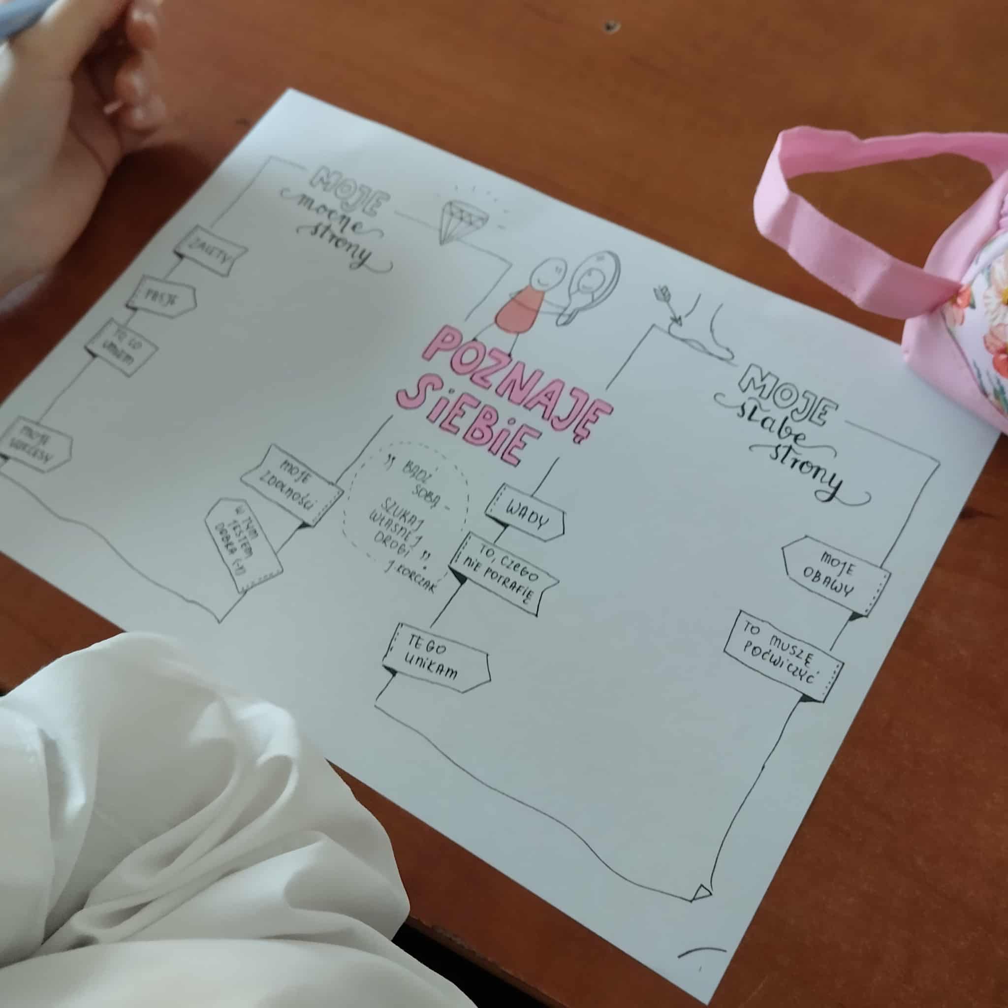 Lekcja minęła w mgnieniu oka. Była to prawdziwa podróż w głąb siebie, która zakończyła się ważnym wnioskiem: Warto siebie lubić, doceniać swoje starania i z życzliwością patrzeć na innych!