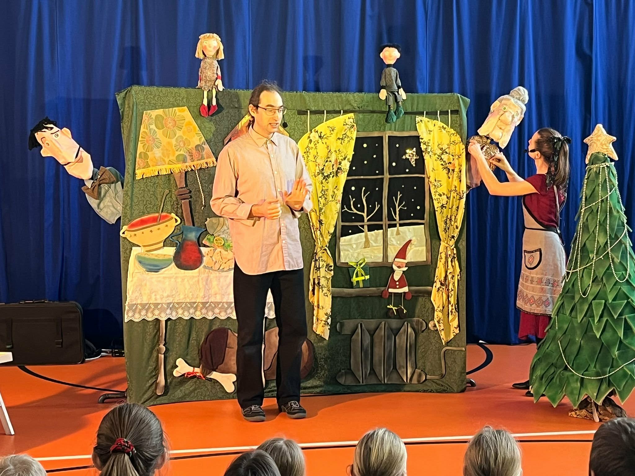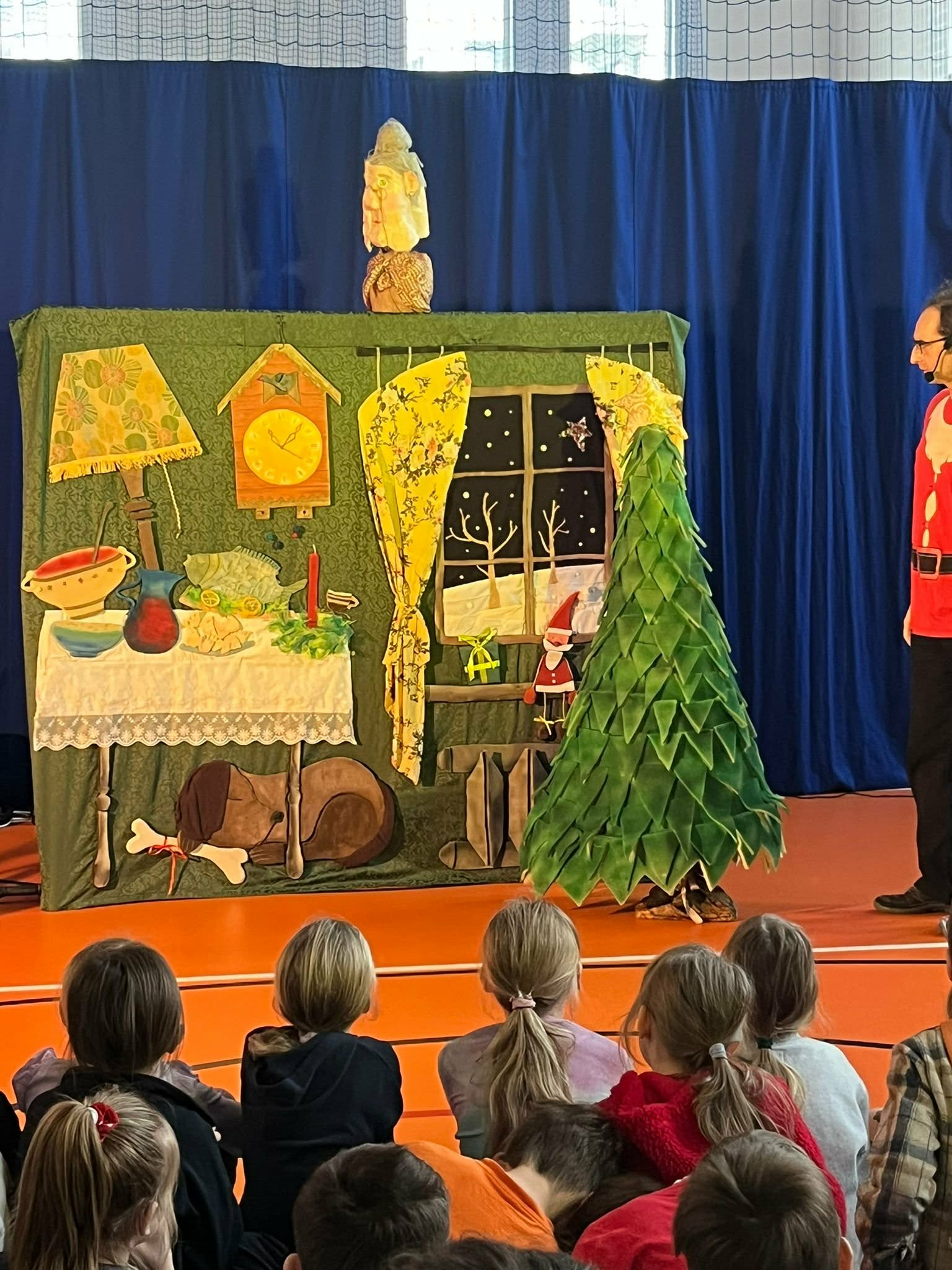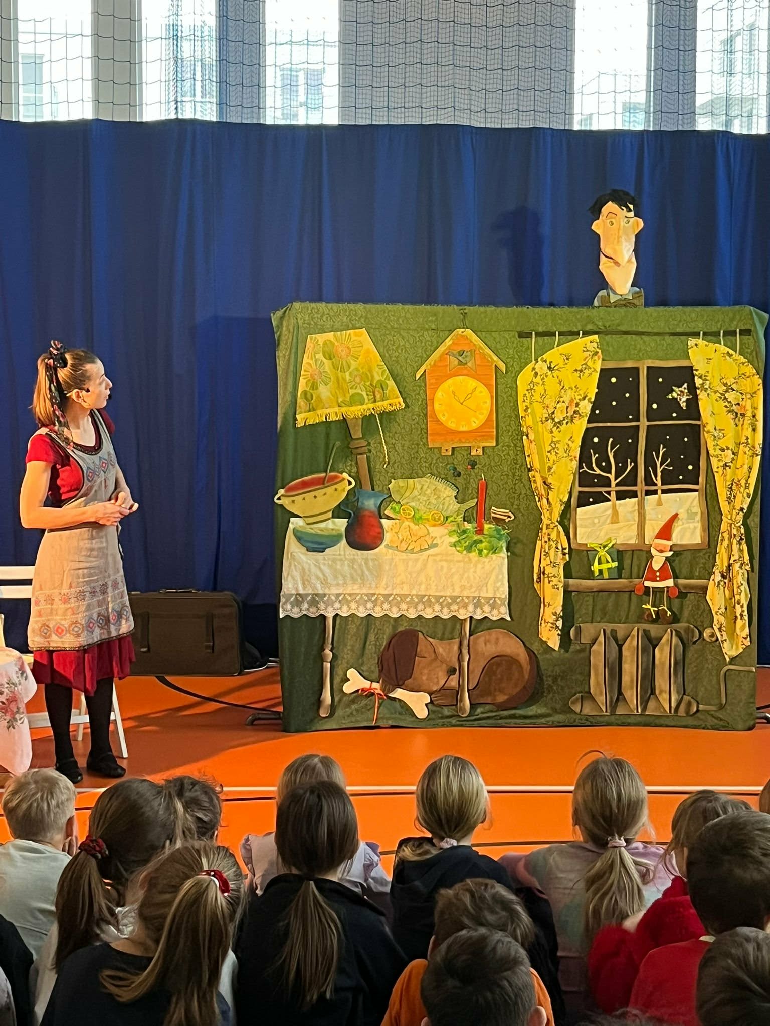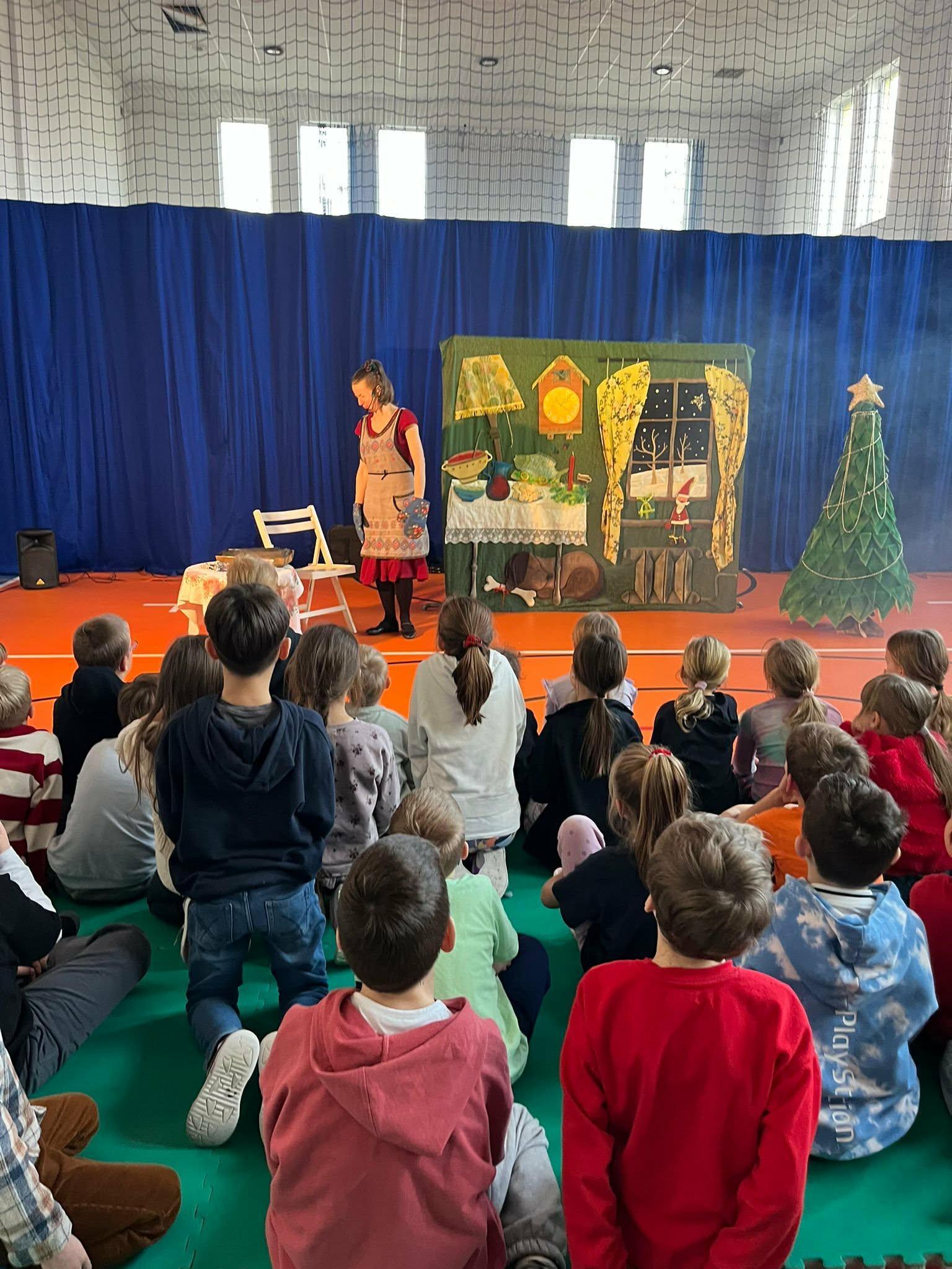 Dziś klasy 0–3 miały okazję obejrzeć przedstawienie przygotowane przez Teatrzyk Obieżyświat pt. „Prezentowy zawrót głowy”. Spektakl w ciekawy i pełen humoru sposób poruszał temat przedświątecznego zamieszania, pośpiechu i skupiania się na prezentach. Przesłaniem przedstawienia było przypomnienie, że w czasie świąt najważniejszy jest wspólnie spędzony czas z rodziną, rozmowa i bliskość, a nie materialne upominki. Występ dostarczył uczniom wielu radości, a jednocześnie skłonił do refleksji nad prawdziwym znaczeniem świąt.