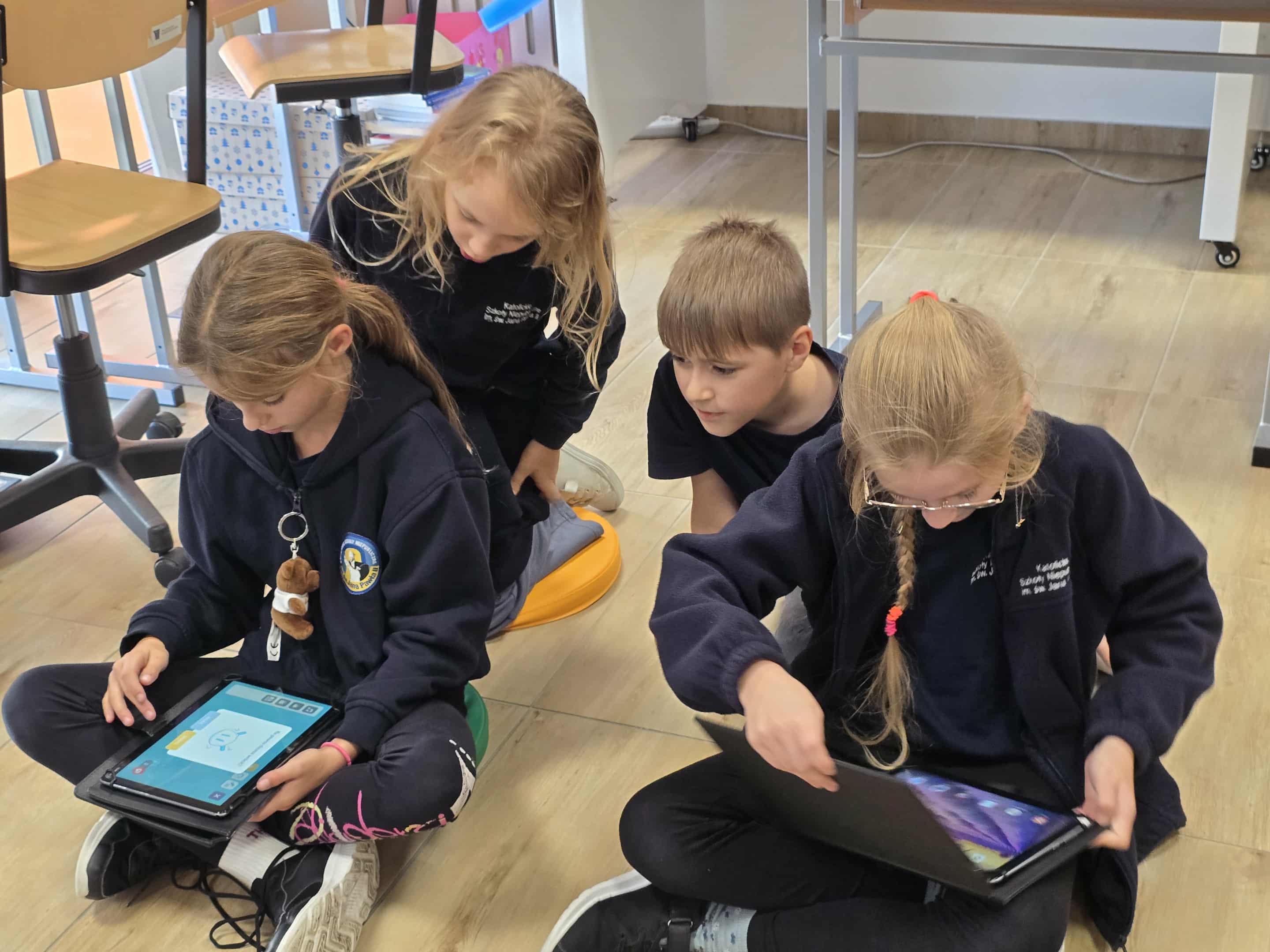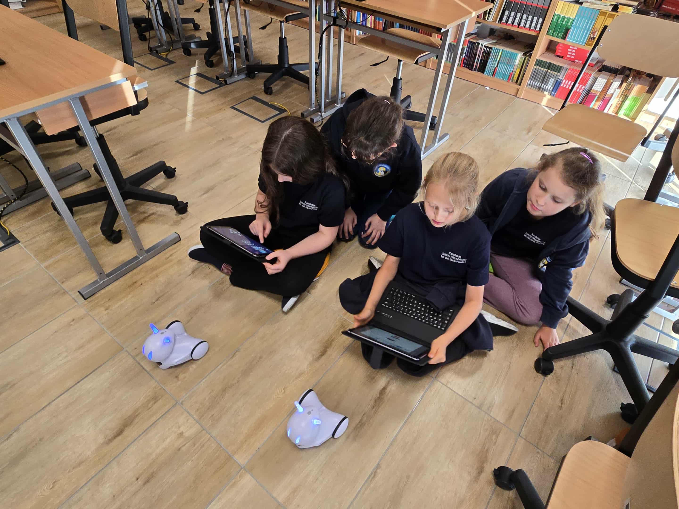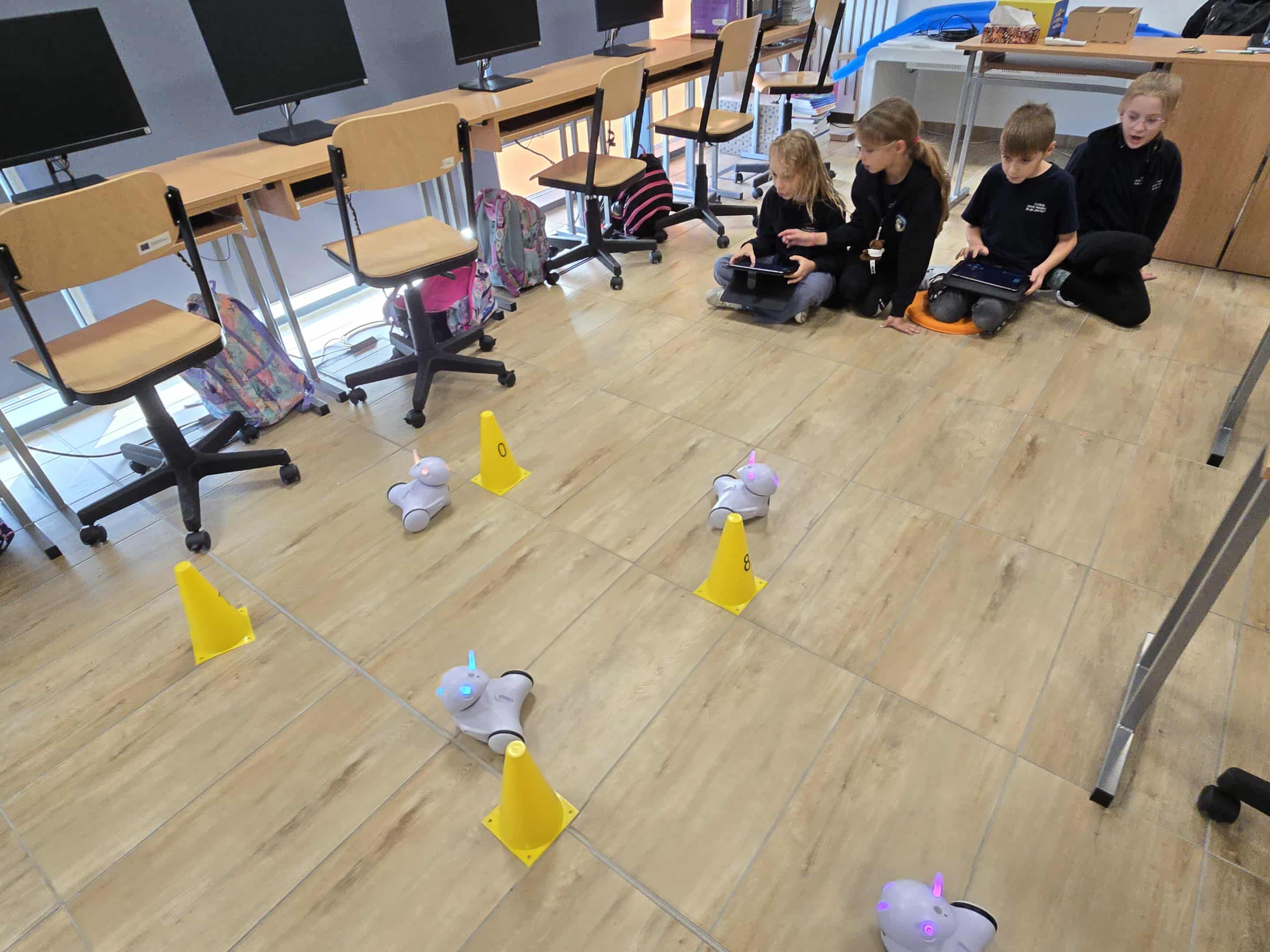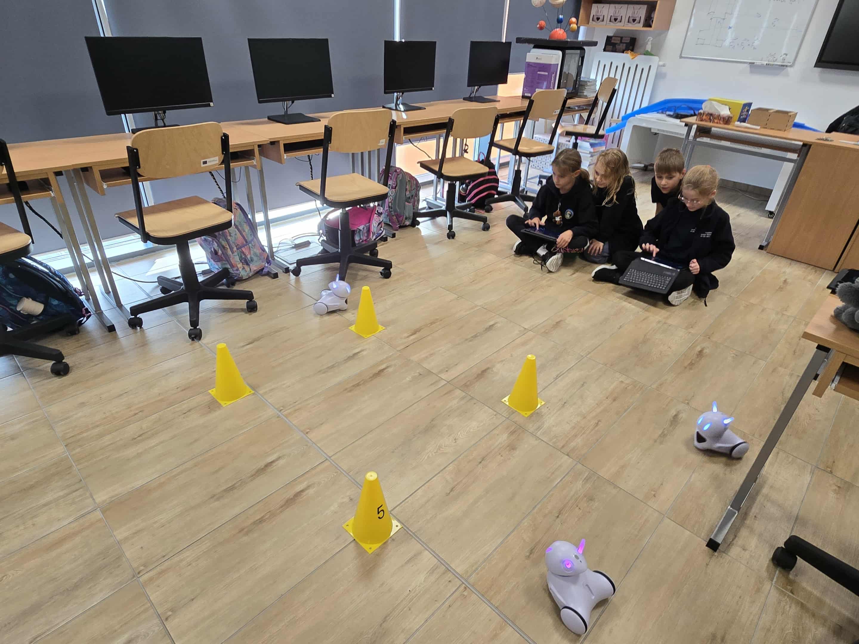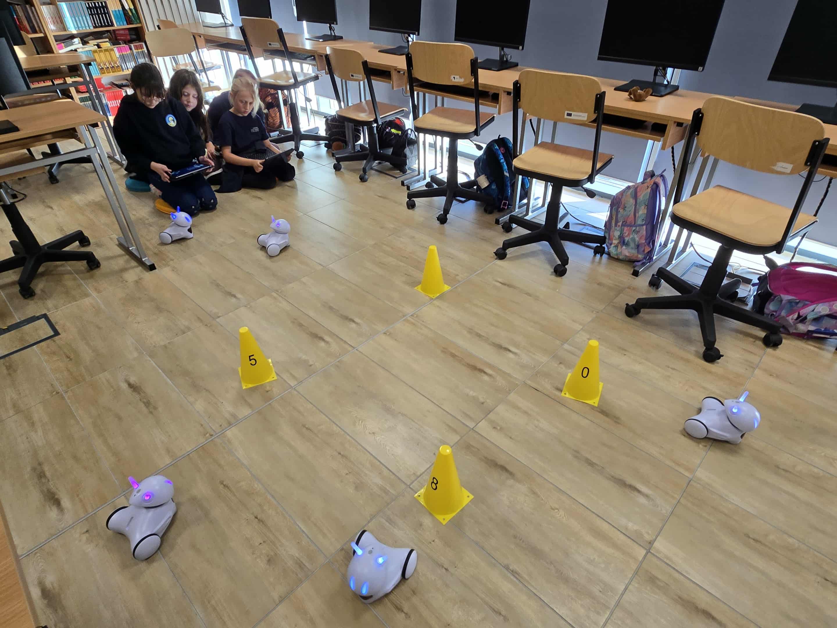 W naszej szkole ruszyły fascynujące dodatkowe zajęcia z robotyki, na których uczniowie klasy 3 mają okazję poznawać tajniki programowania robotów i zgłębiania nowoczesnych technologii. Największą atrakcją są roboty Photon – białe z kolorowymi czułkami i oczami, inteligentne maszyny, które zdobywają serca młodych techników.