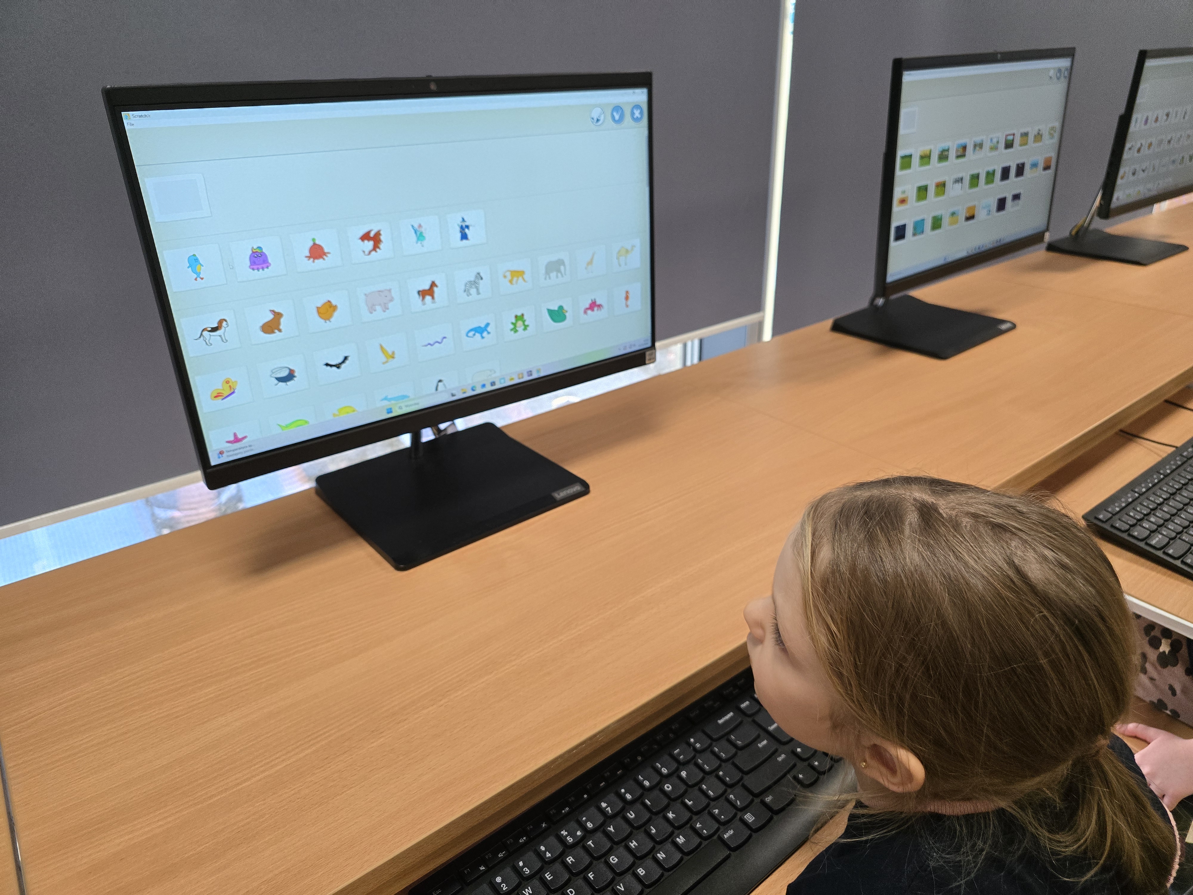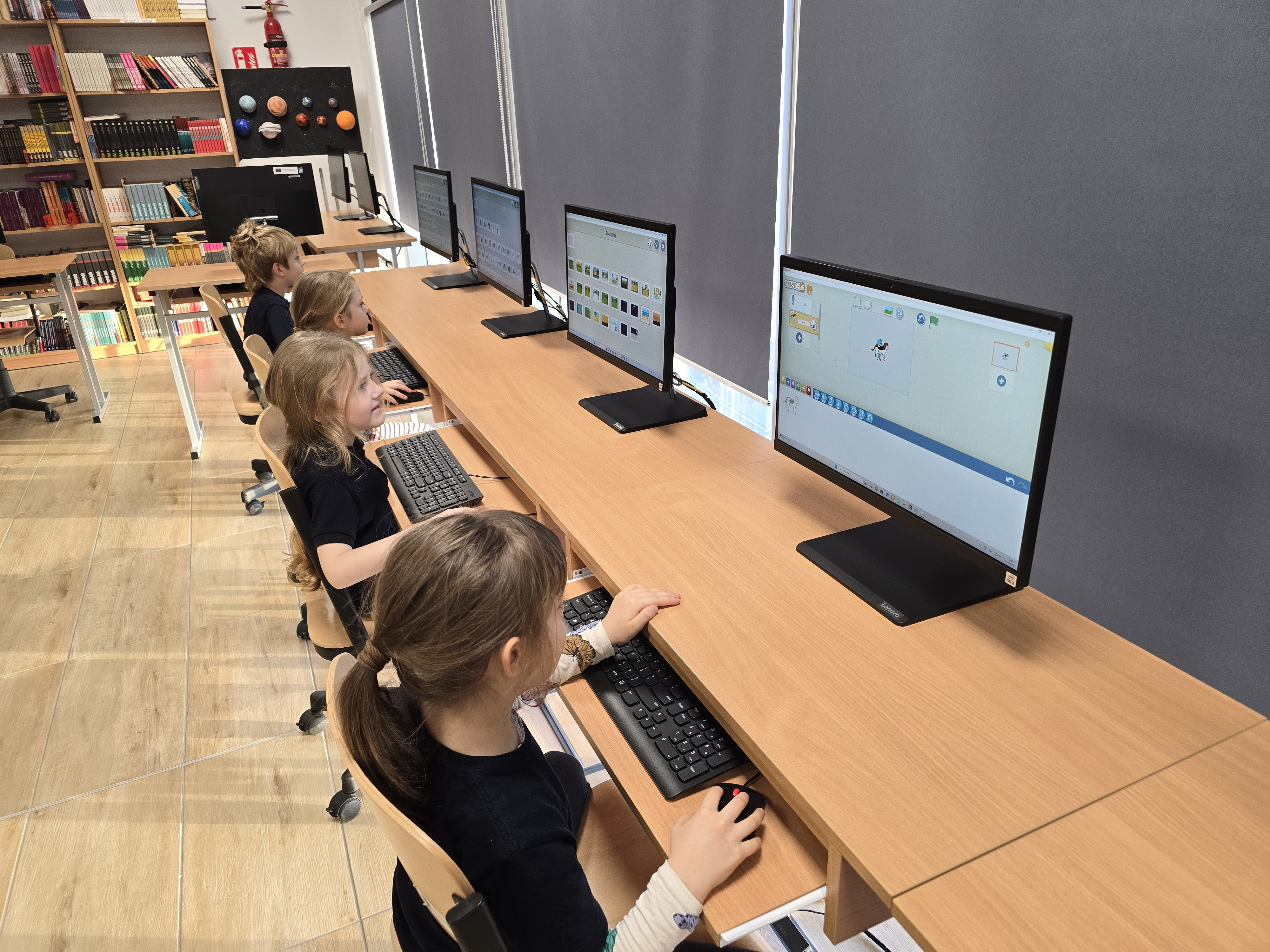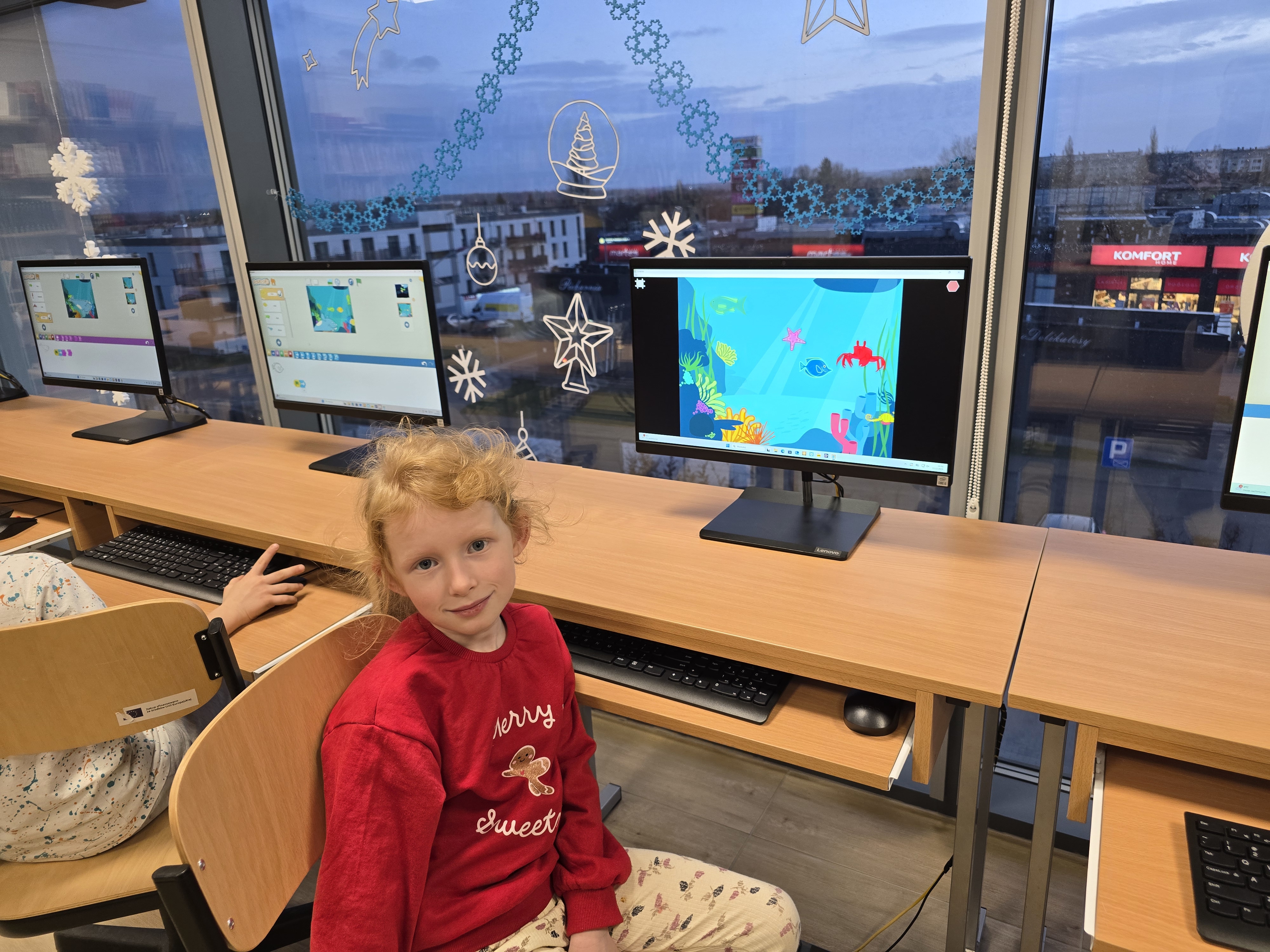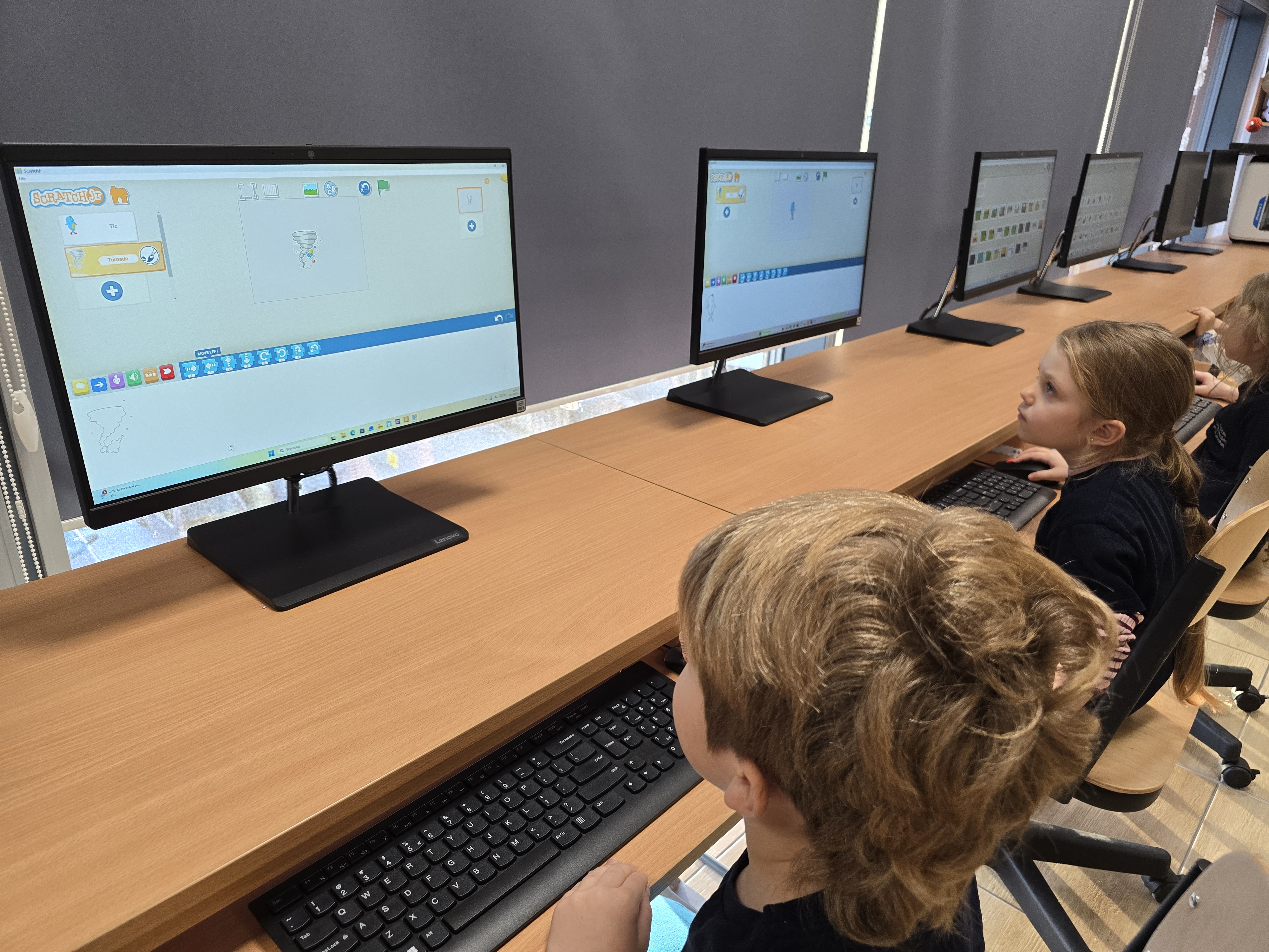 Kreatywność naszych uczniów nie znała granic! Powstały wspaniałe, oryginalne programy, które zachwycały pomysłowością i dbałością o szczegóły. Od tańczących zwierzątek po interaktywne opowieści – każdy projekt był wyjątkowy i odzwierciedlał indywidualne zainteresowania młodych twórców.