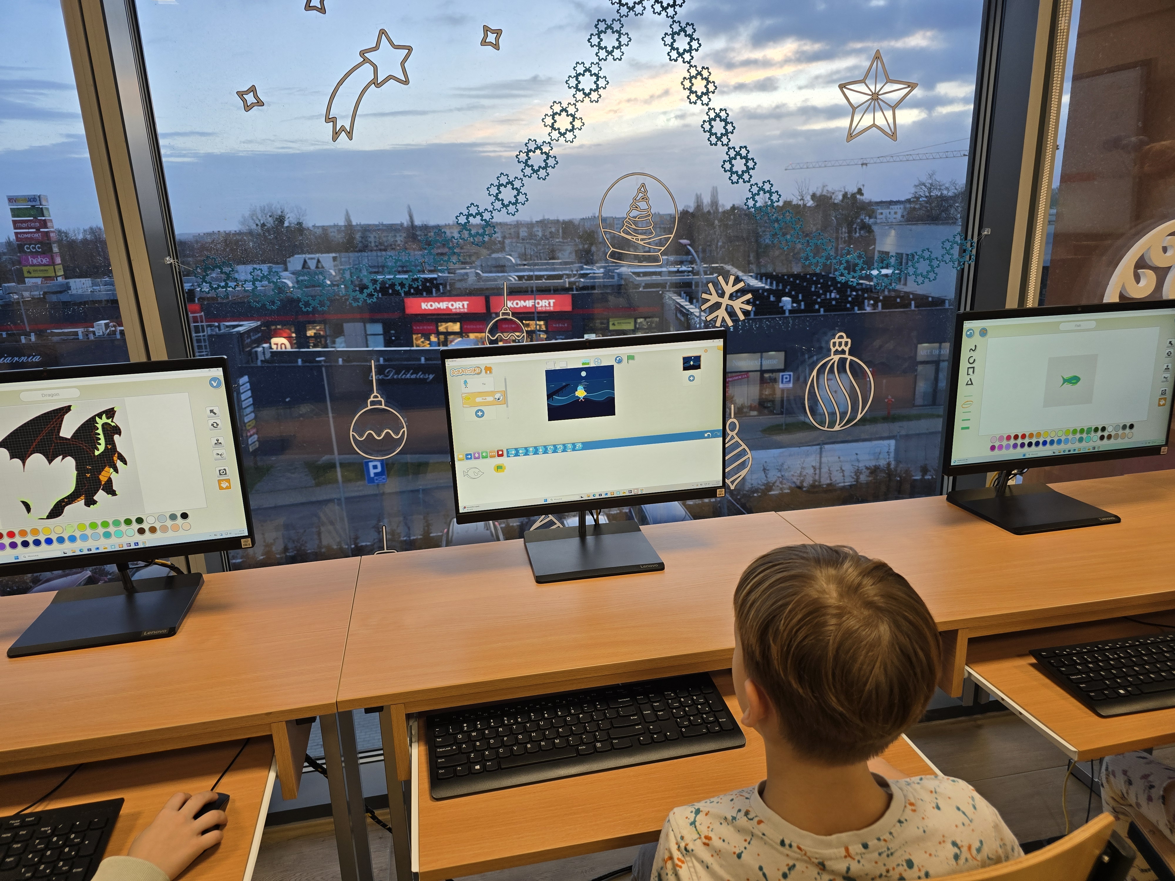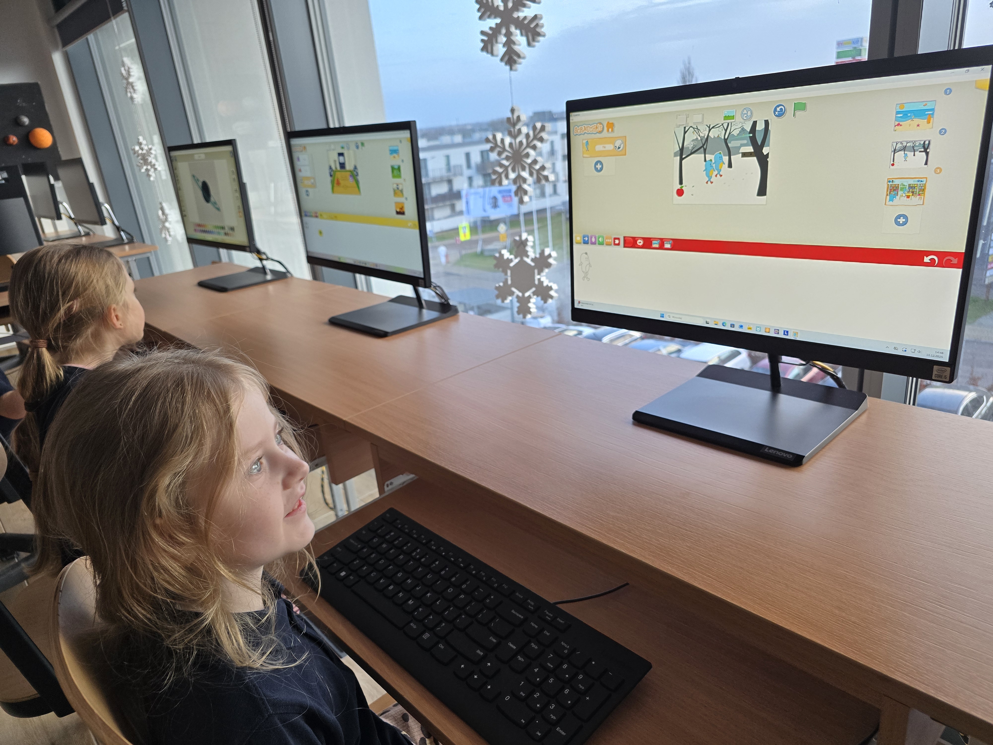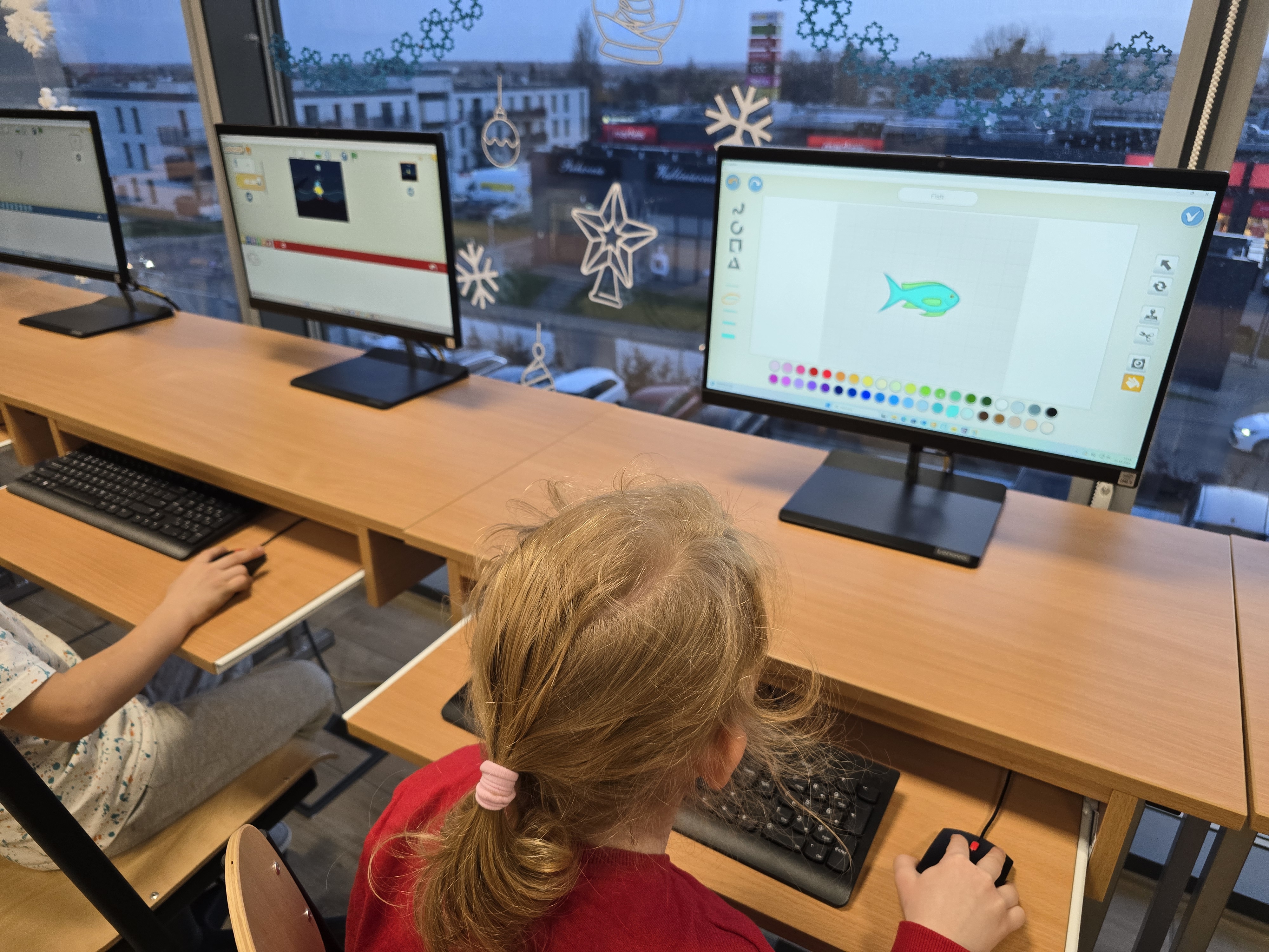 Kreatywność naszych uczniów nie znała granic! Powstały wspaniałe, oryginalne programy, które zachwycały pomysłowością i dbałością o szczegóły. Od tańczących zwierzątek po interaktywne opowieści – każdy projekt był wyjątkowy i odzwierciedlał indywidualne zainteresowania młodych twórców.