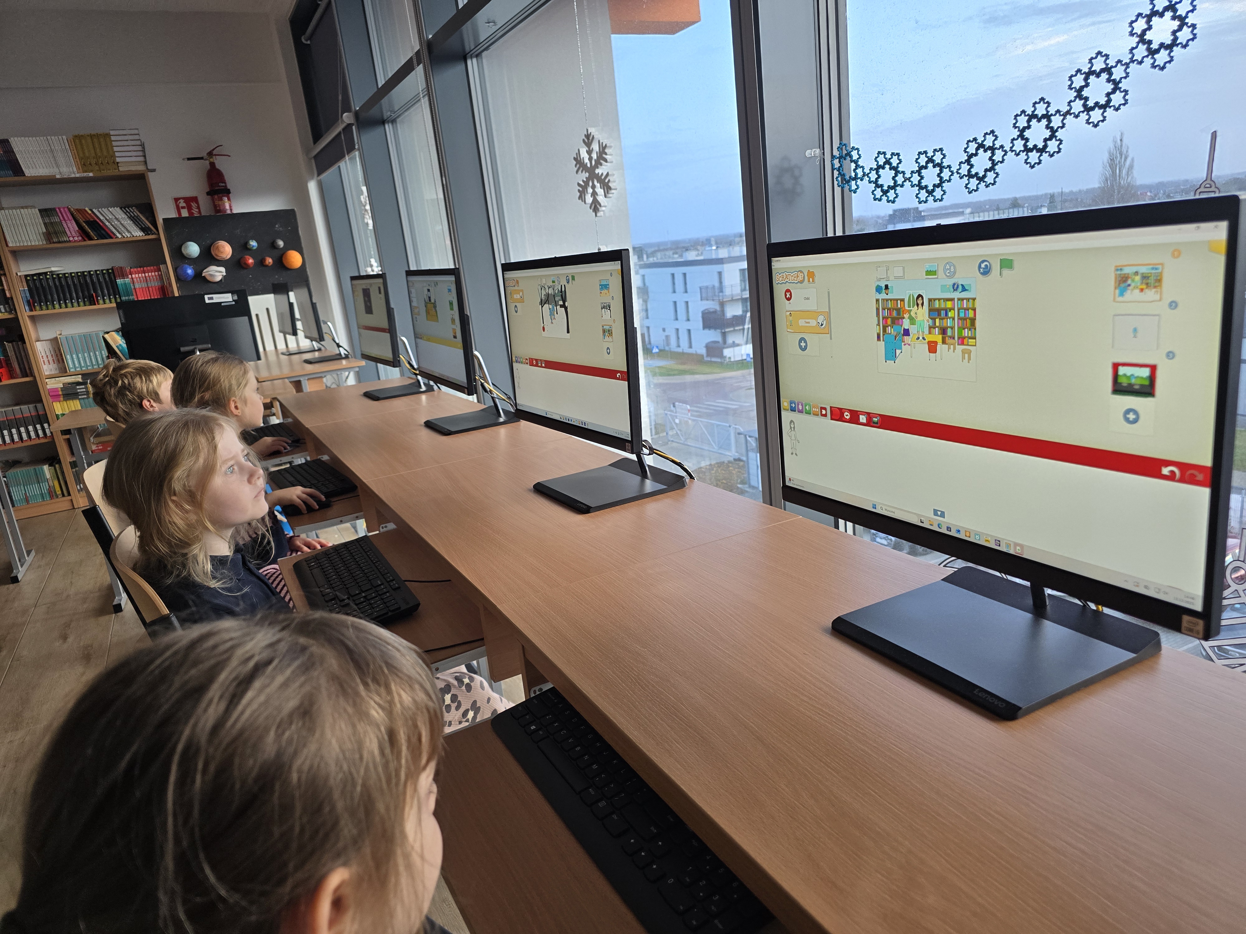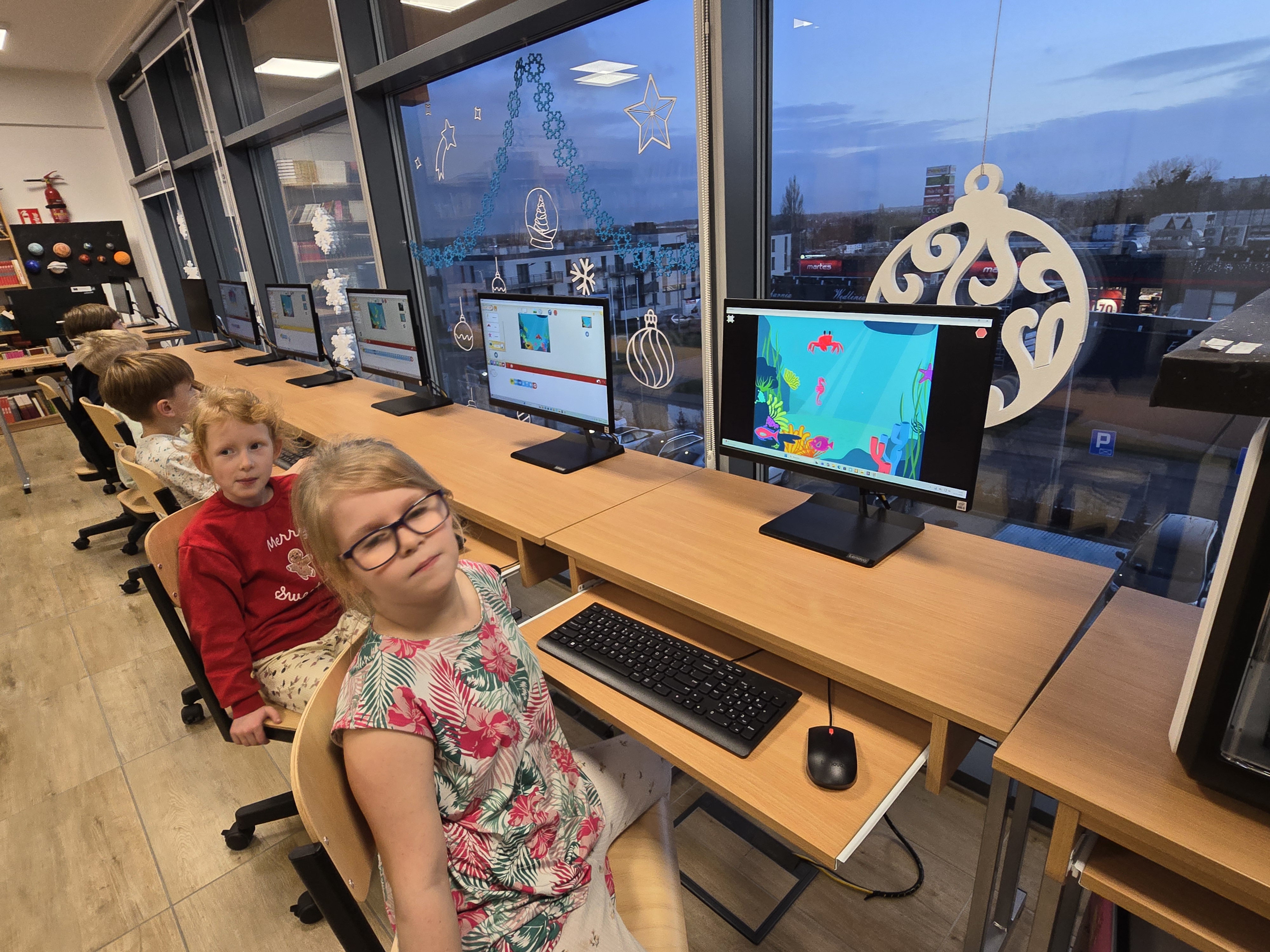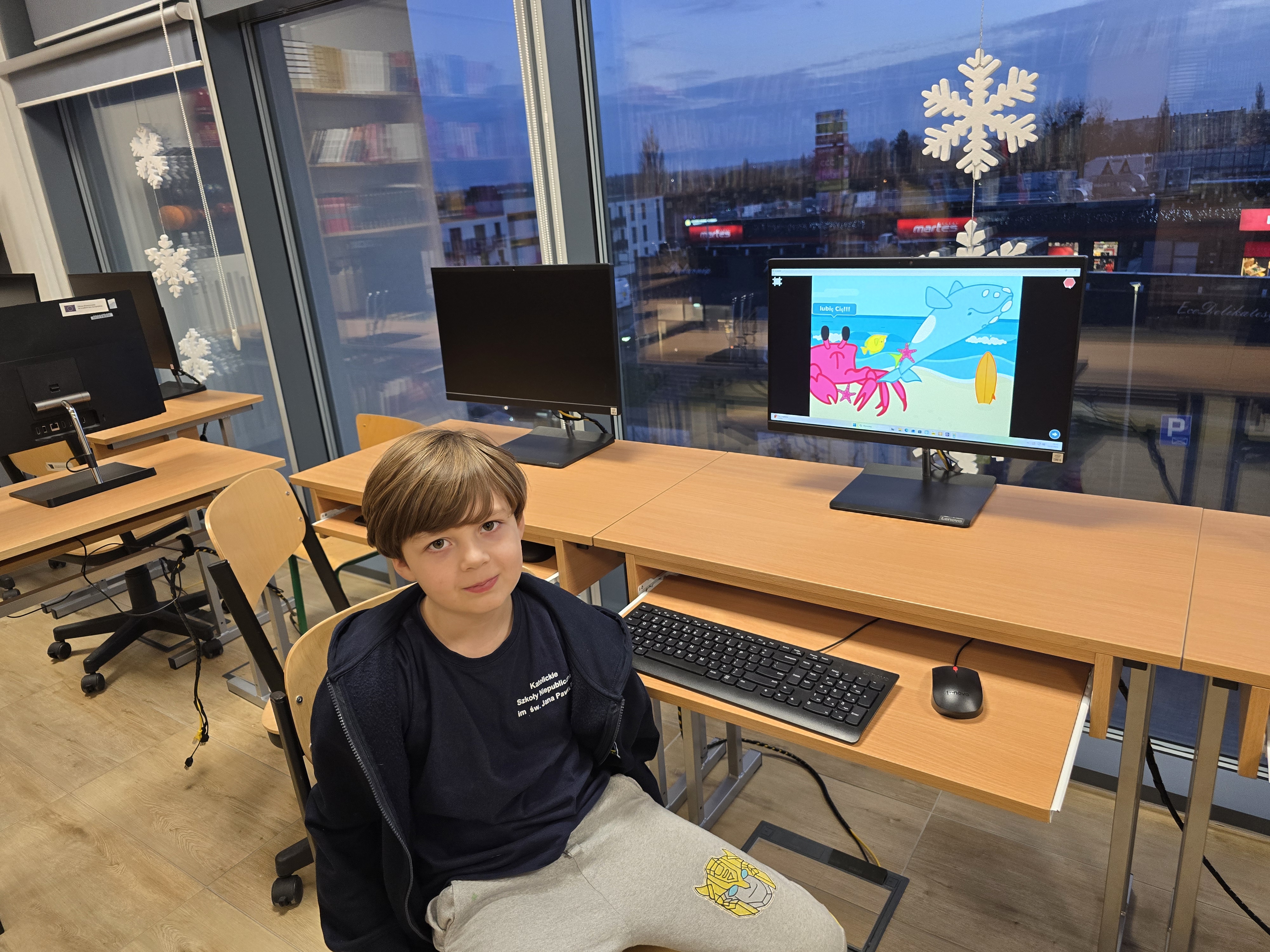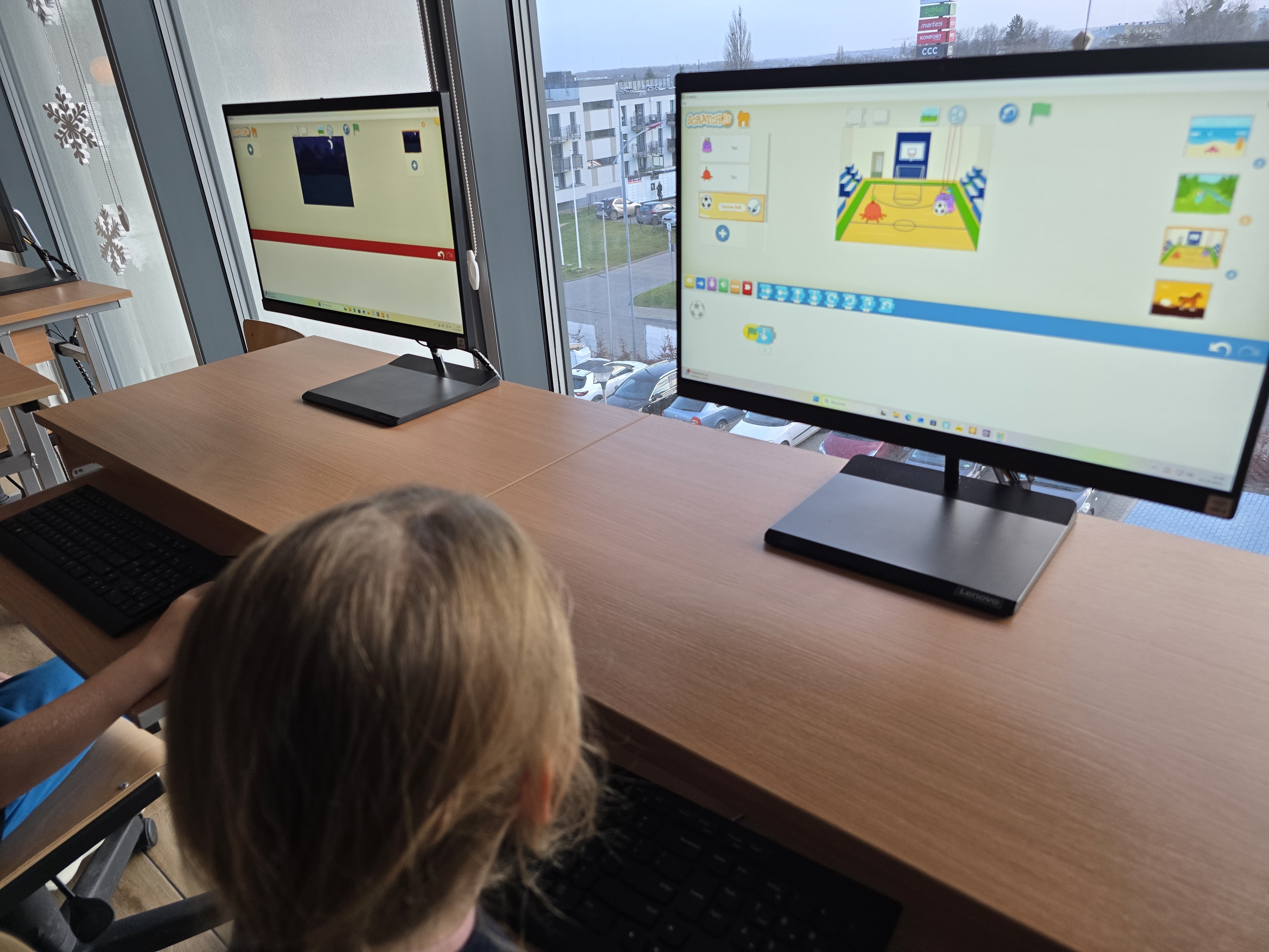 Kreatywność naszych uczniów nie znała granic! Powstały wspaniałe, oryginalne programy, które zachwycały pomysłowością i dbałością o szczegóły. Od tańczących zwierzątek po interaktywne opowieści – każdy projekt był wyjątkowy i odzwierciedlał indywidualne zainteresowania młodych twórców.