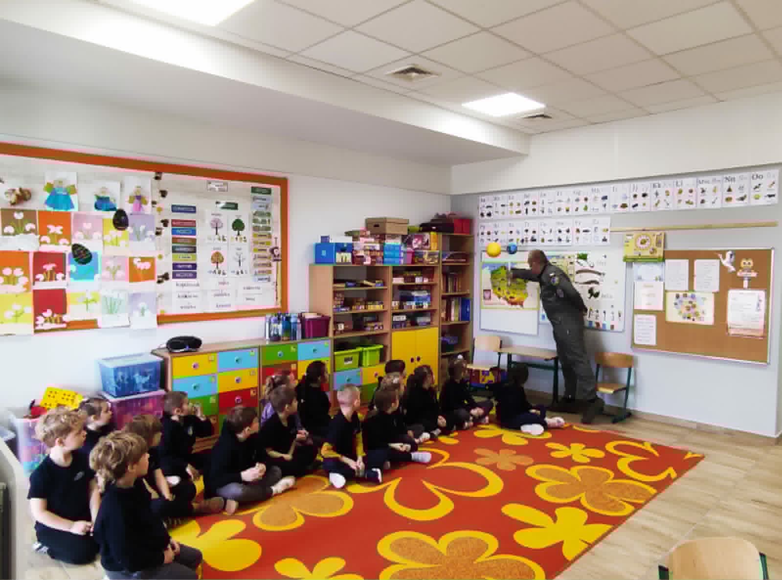 Wizyta pana Sebastiana była nie tylko ciekawą przygodą, ale także ważną lekcją. Dzieci zobaczyły, że są ludzie, którzy dbają o nasze bezpieczeństwo każdego dnia. Być może dla niektórych było to także pierwsze spotkanie z marzeniem o przyszłym zawodzie.