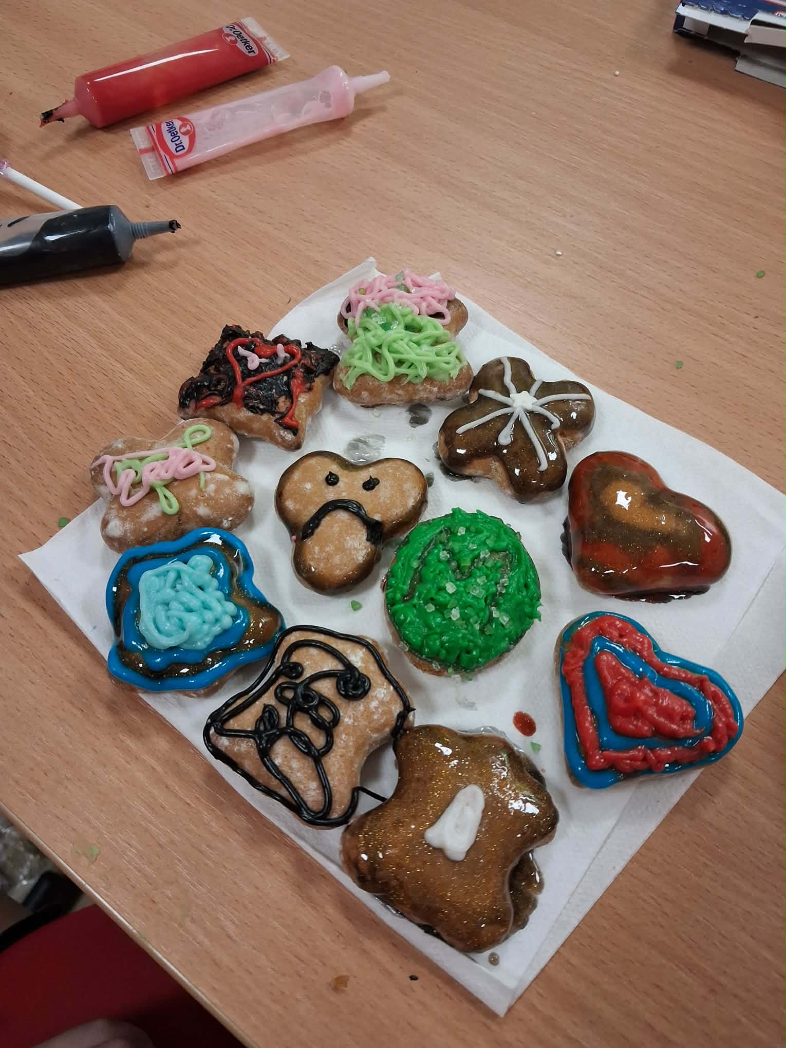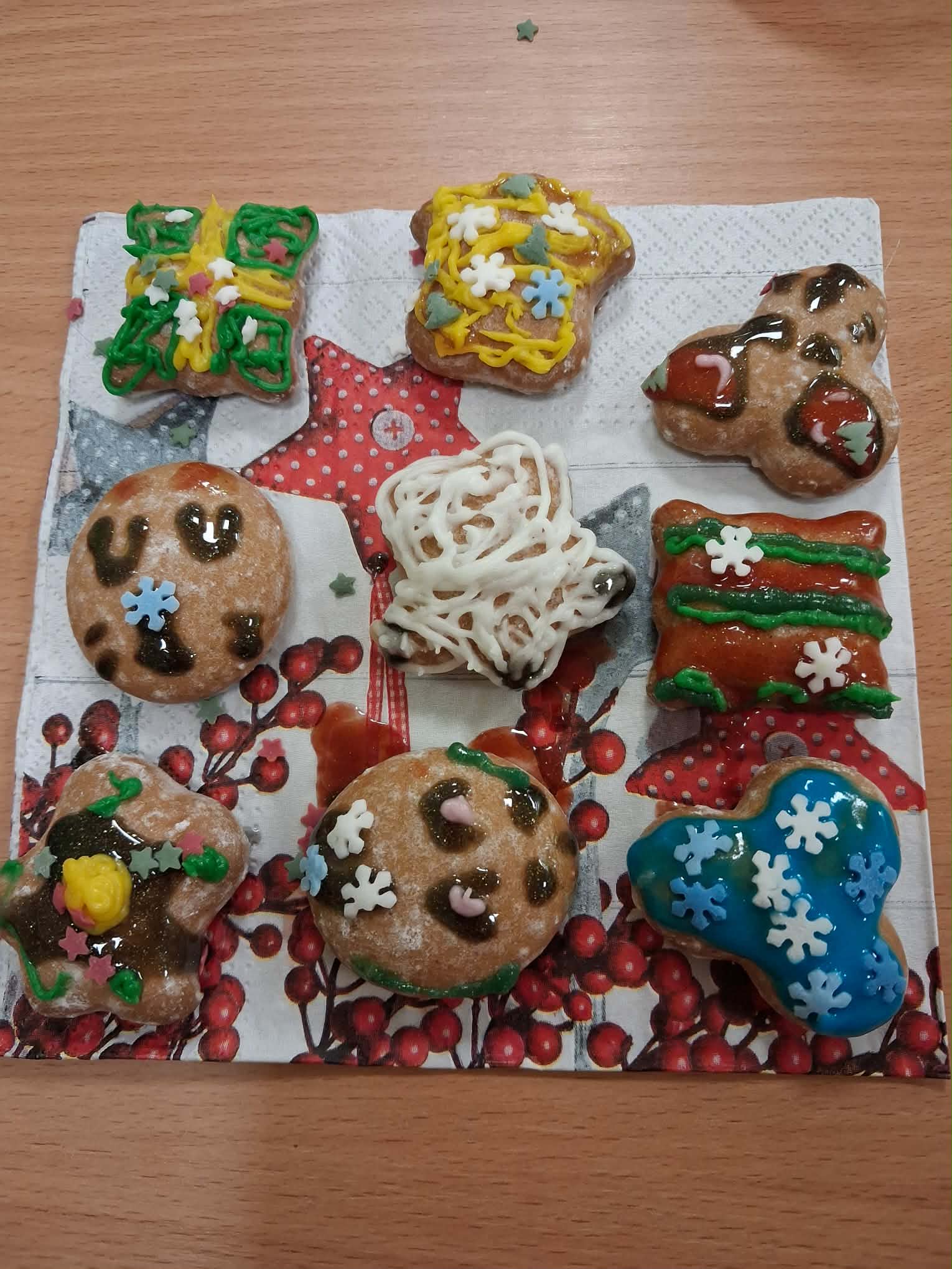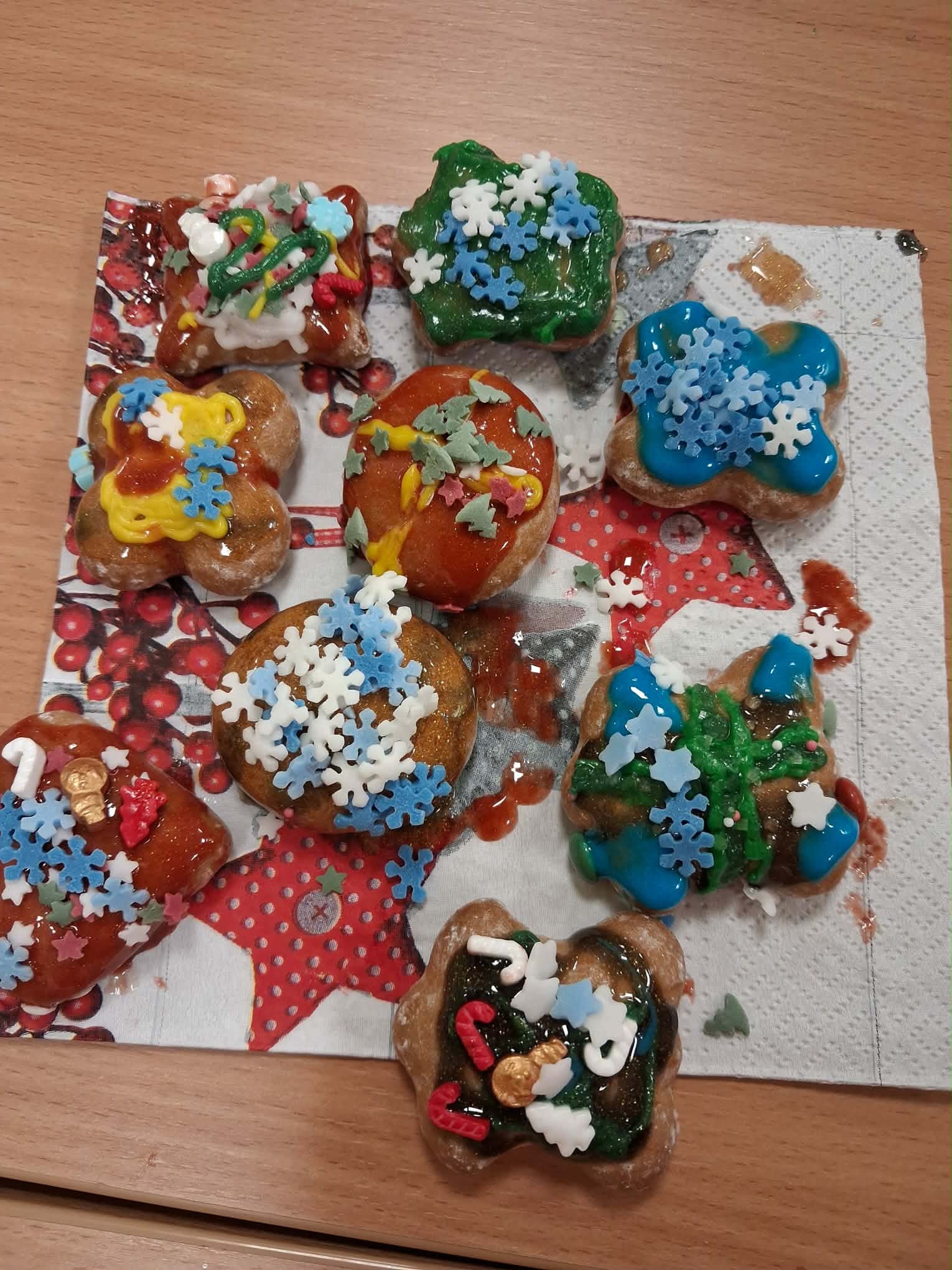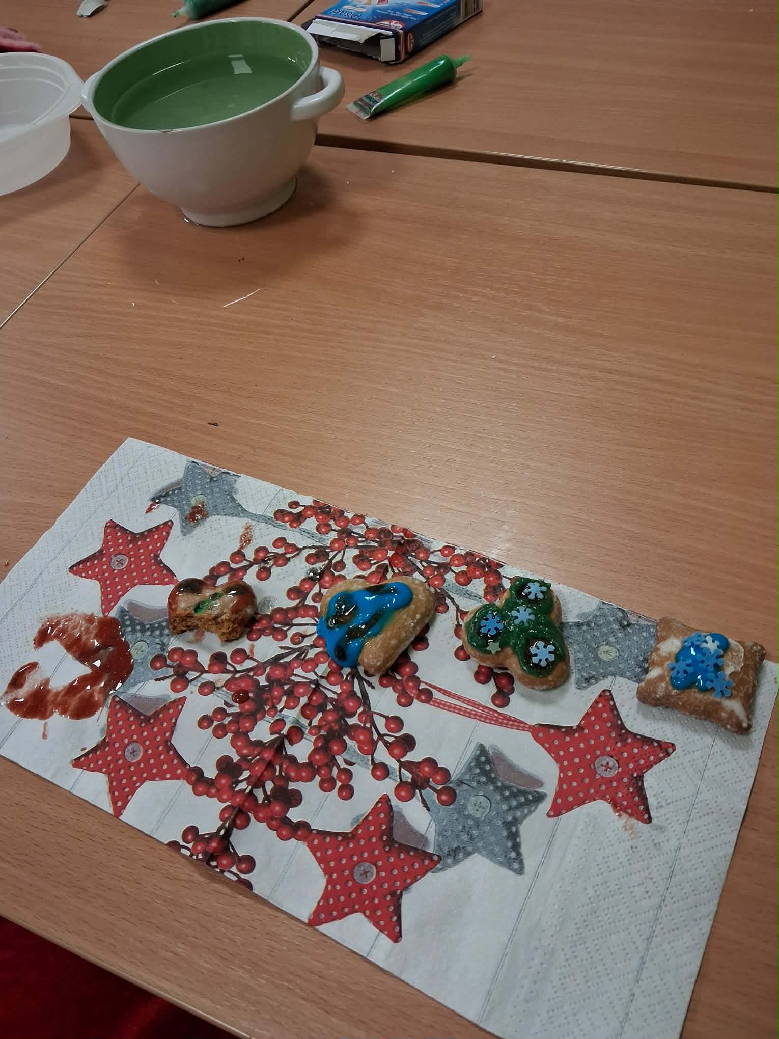 Każdy uczeń otrzymał pyszny, pachnący piernik, który czekał na metamorfozę. Na stołach pojawiły się kolorowe lukry, posypki, cukrowe perełki i inne ozdoby, które miały zamienić zwykłe ciasteczka w małe dzieła sztuki.