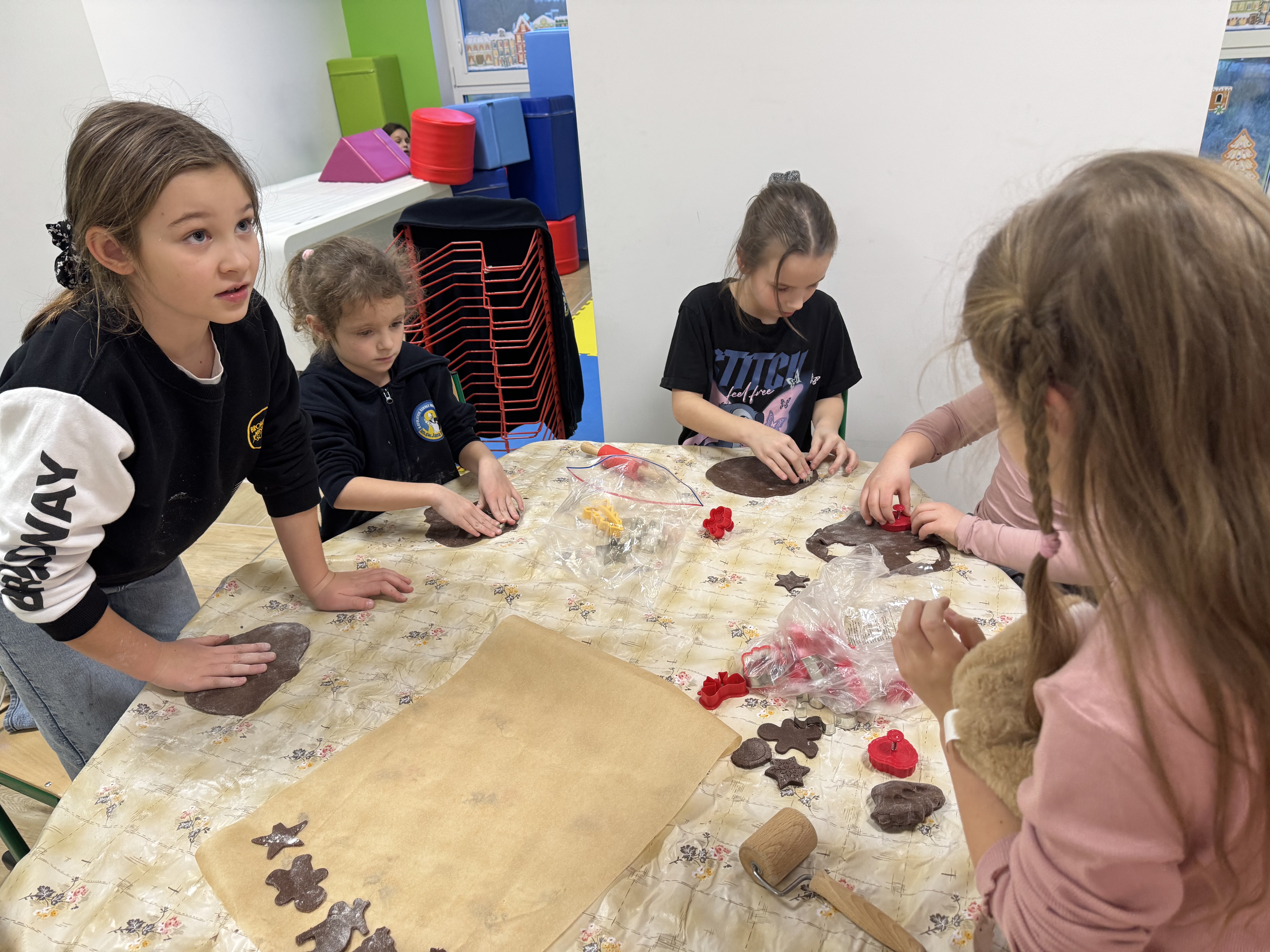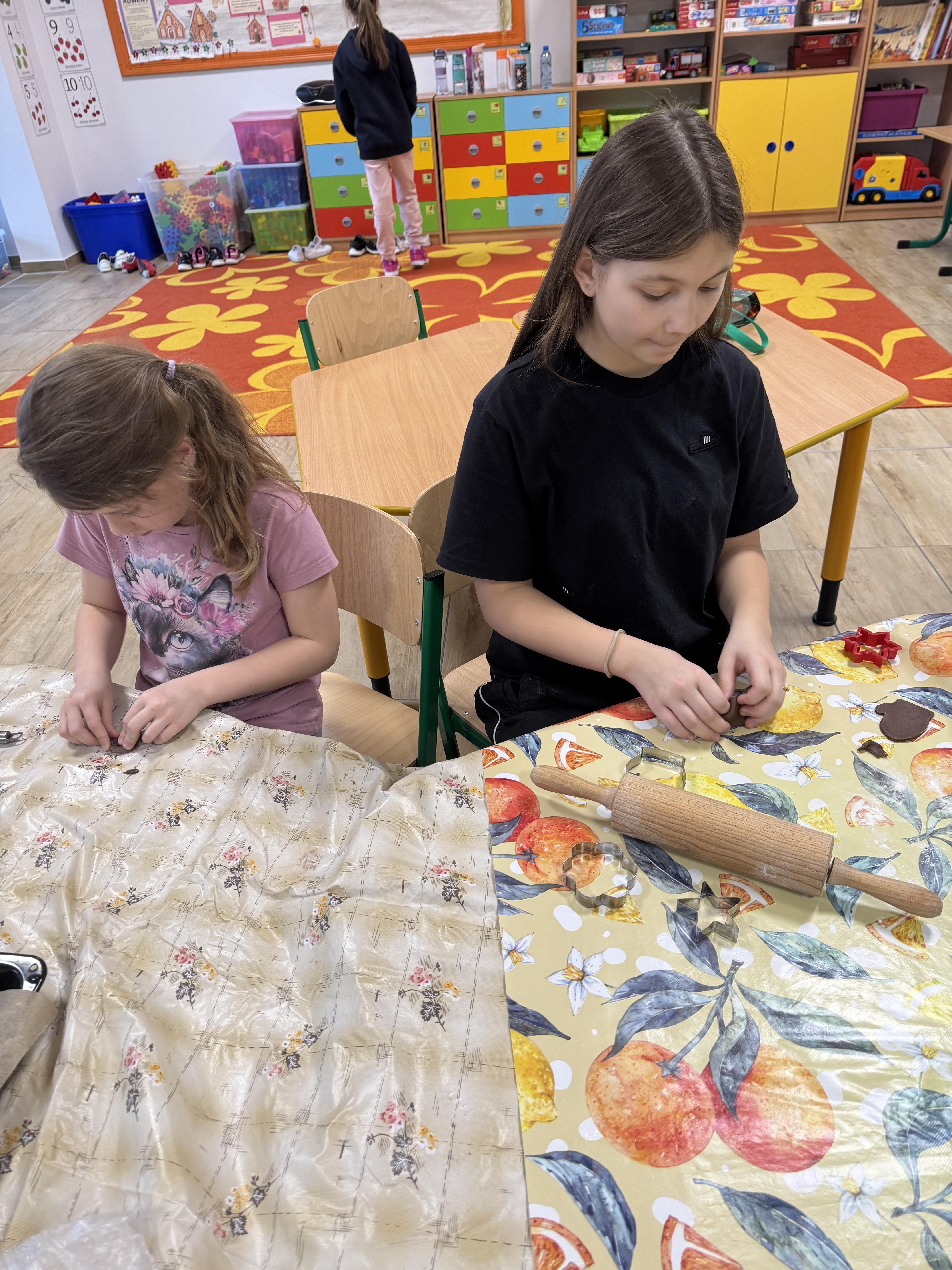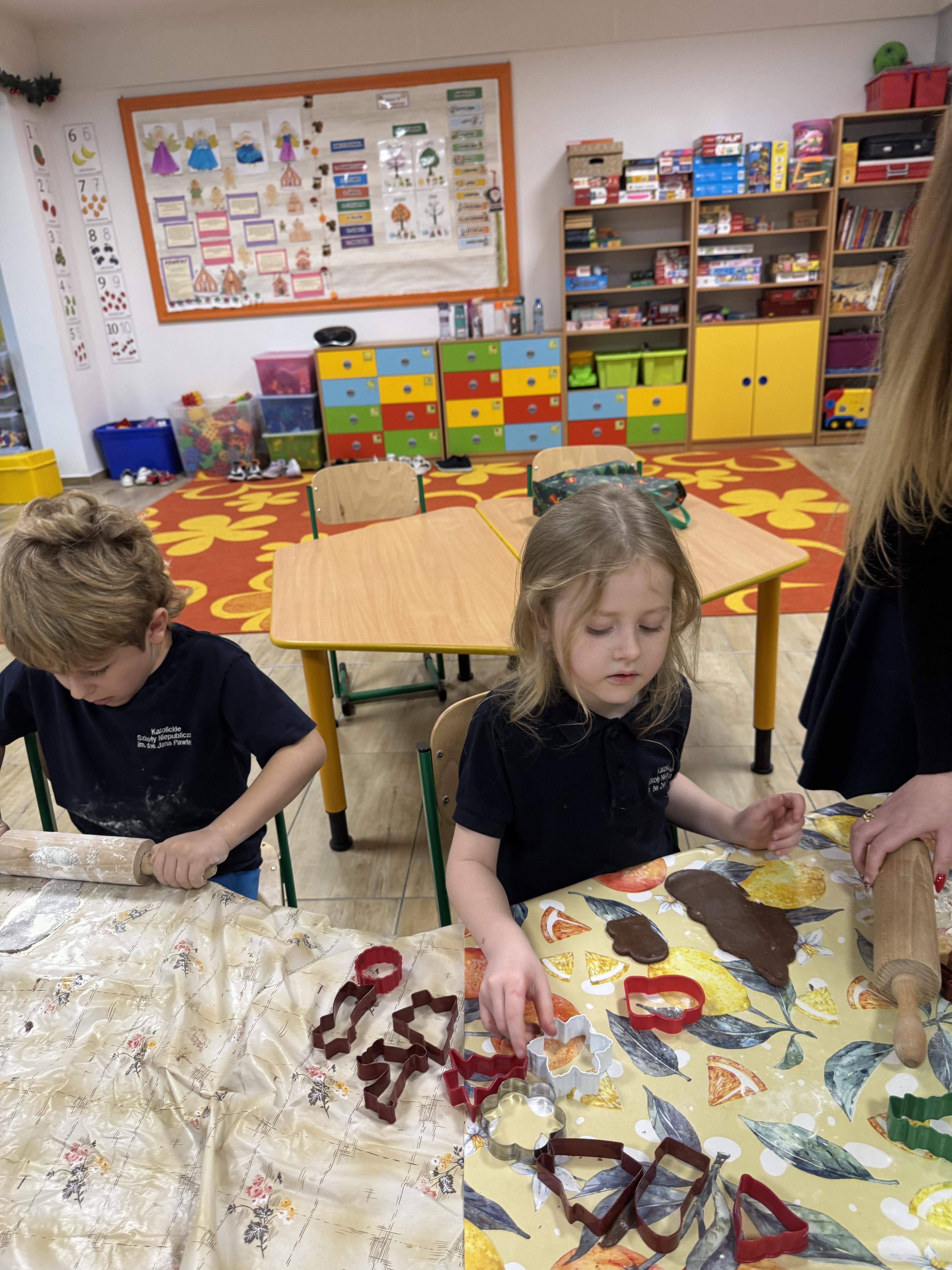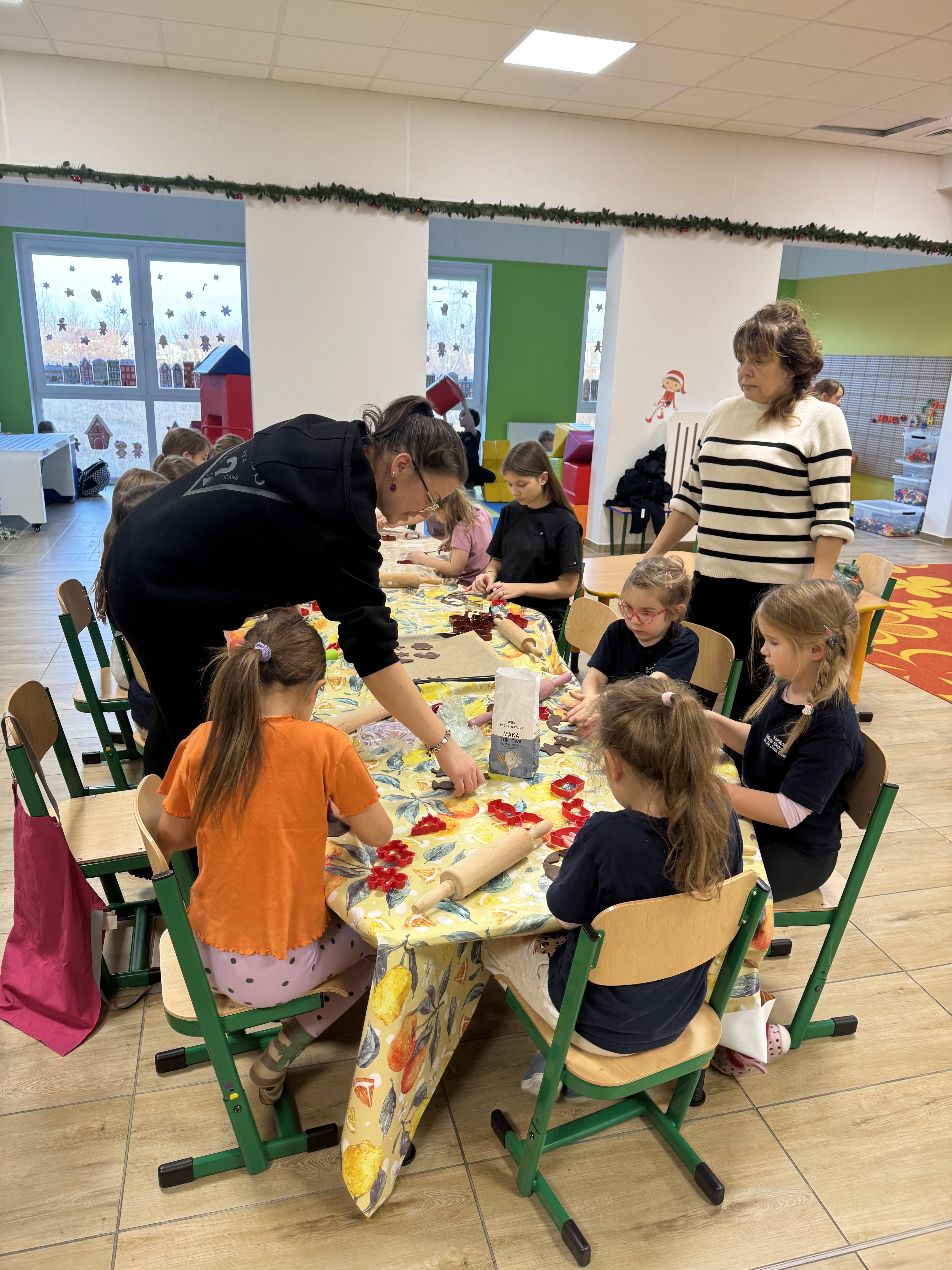 Najwięcej zabawy i najwięcej chętnych było oczywiście do wycinania pierniczków foremkami. Ta kulinarna zabawa zaowocowała również nawiązaniem koleżeńskich relacji między uczniami.