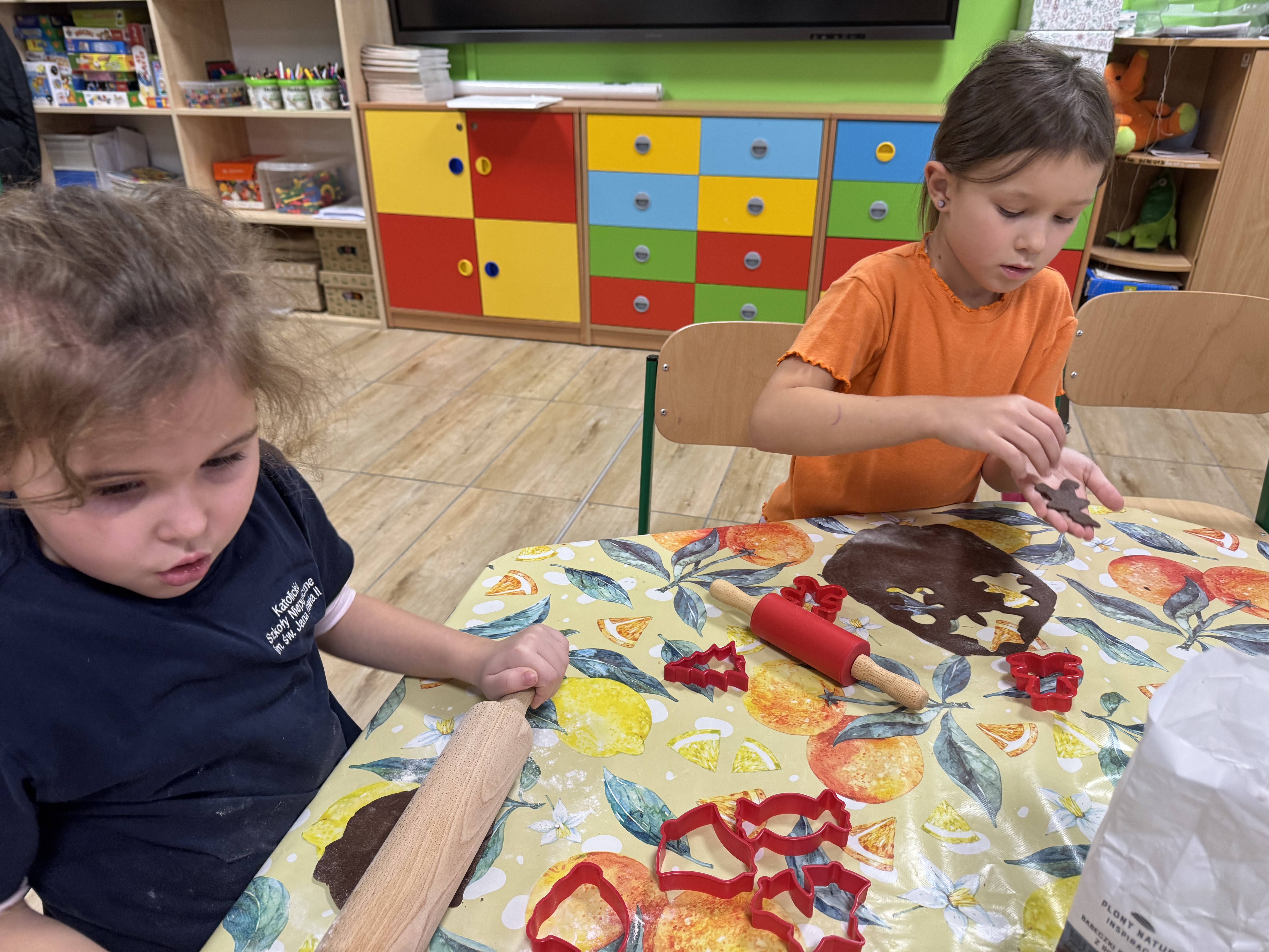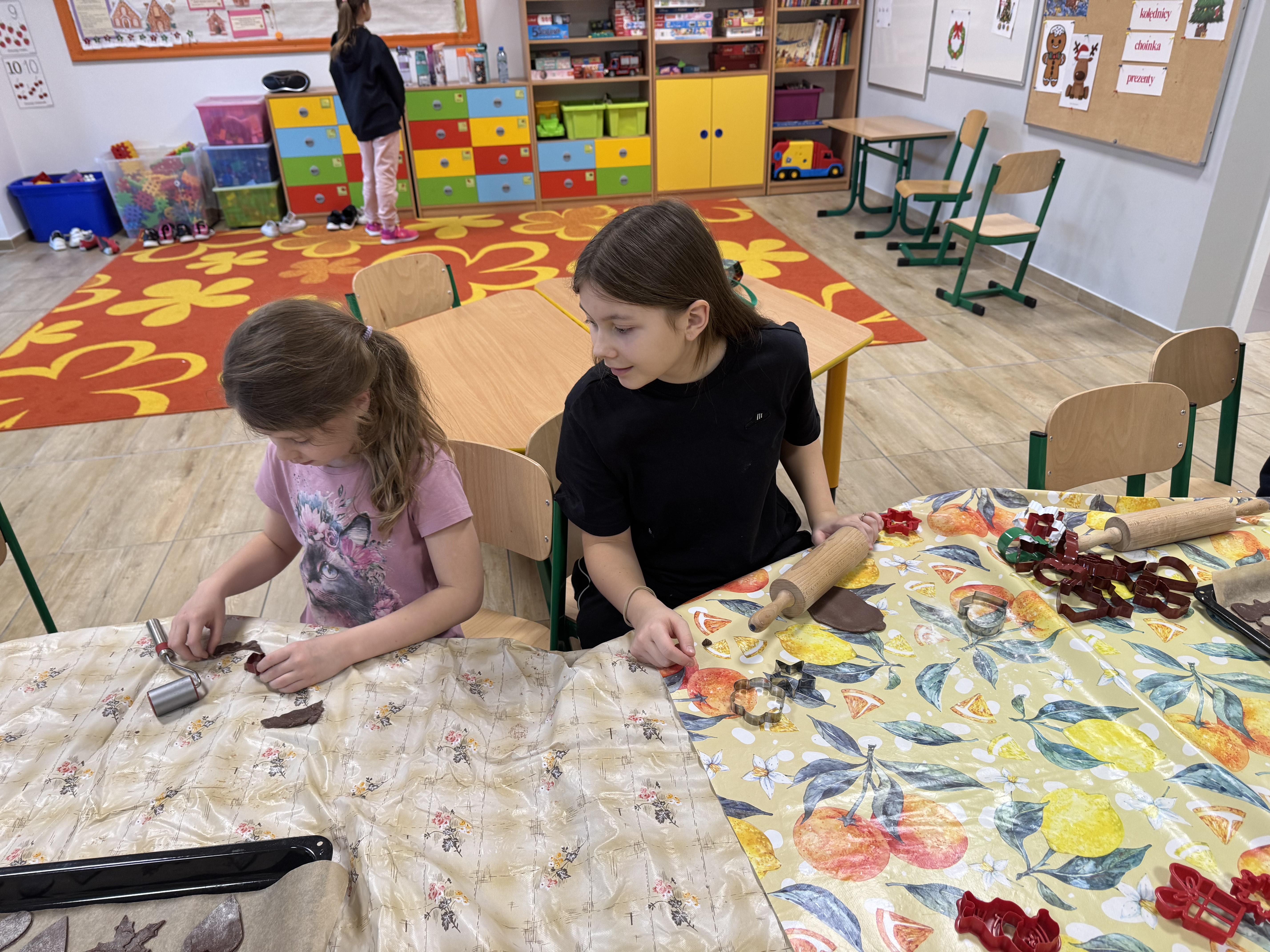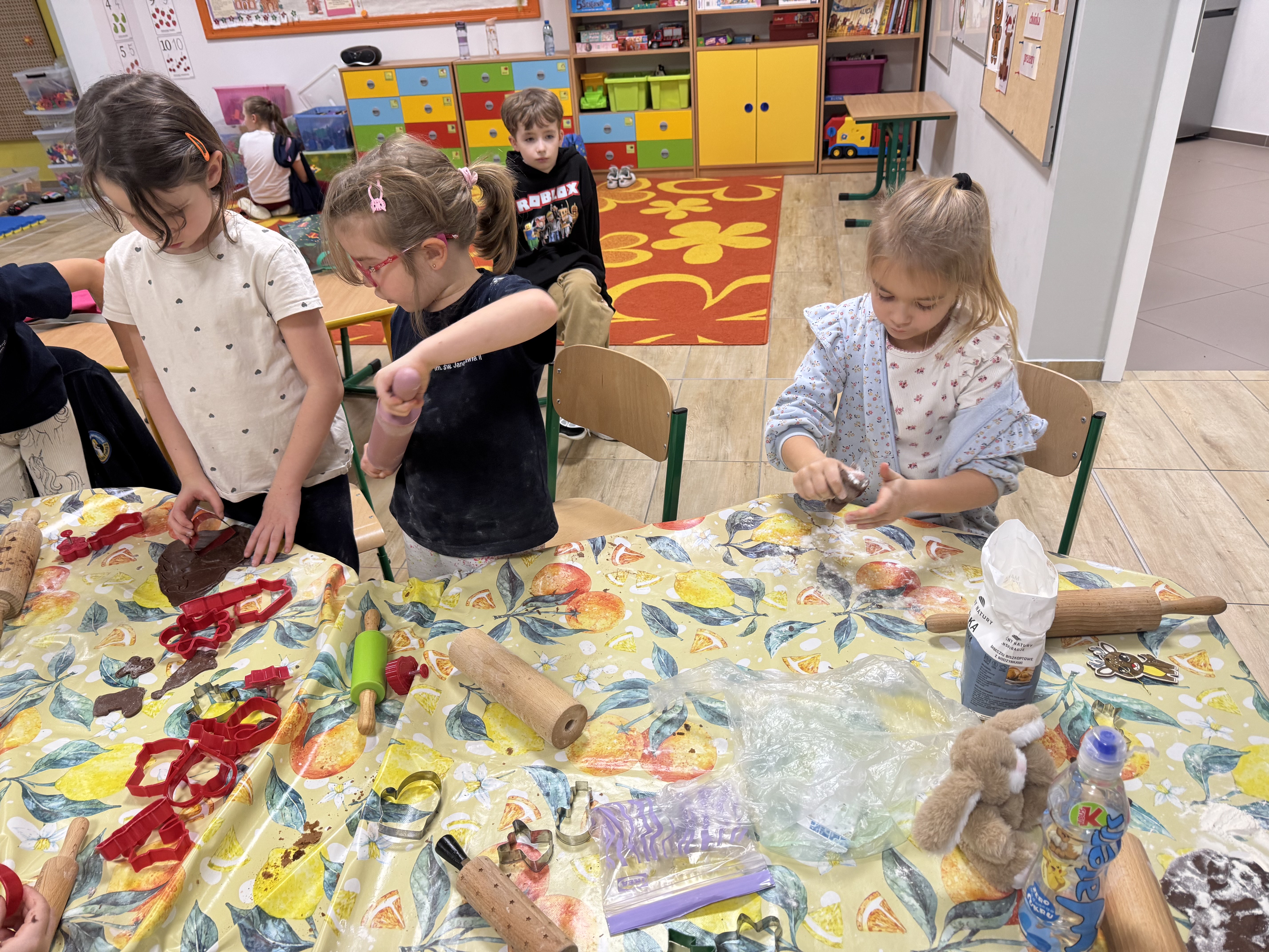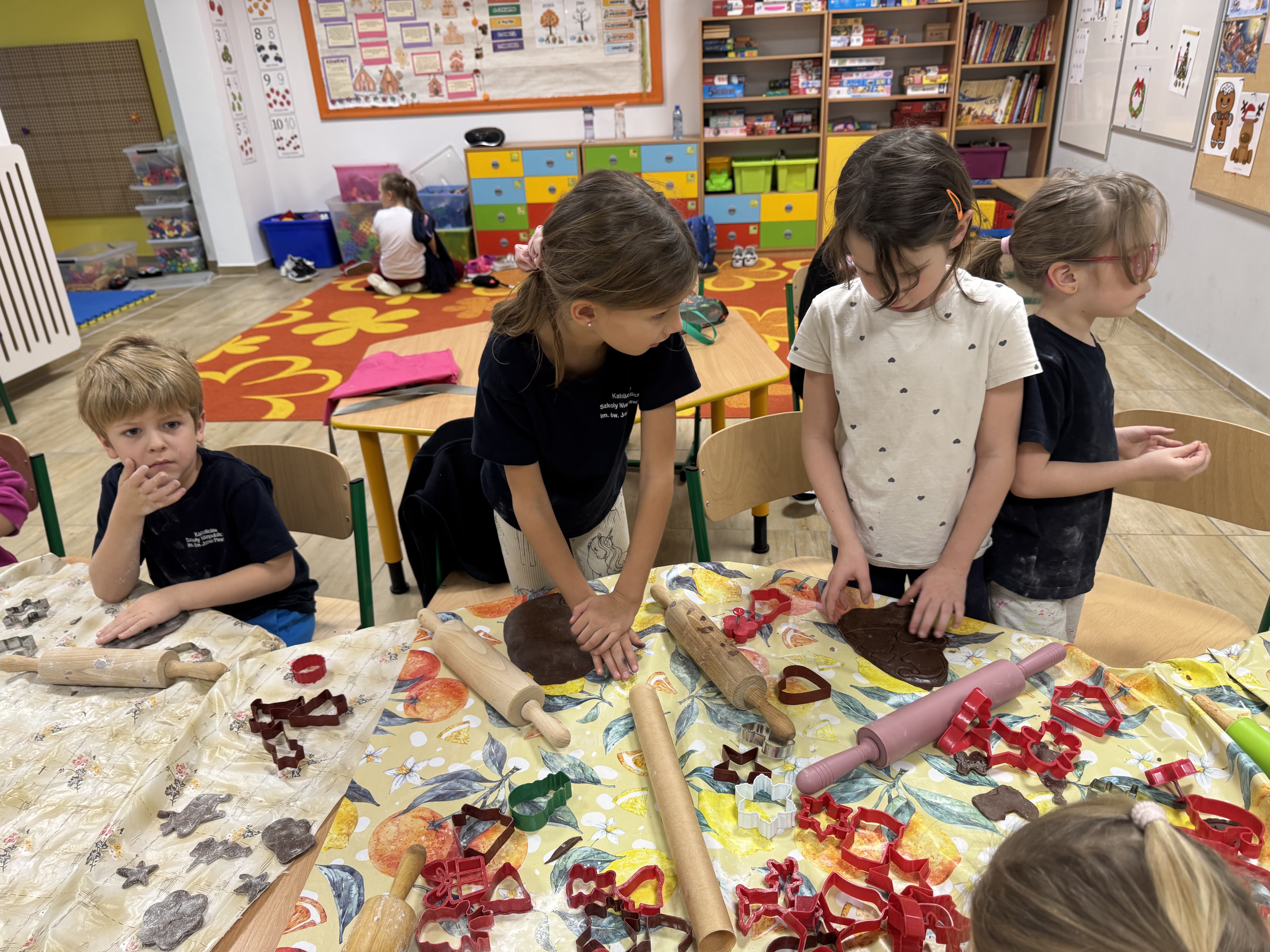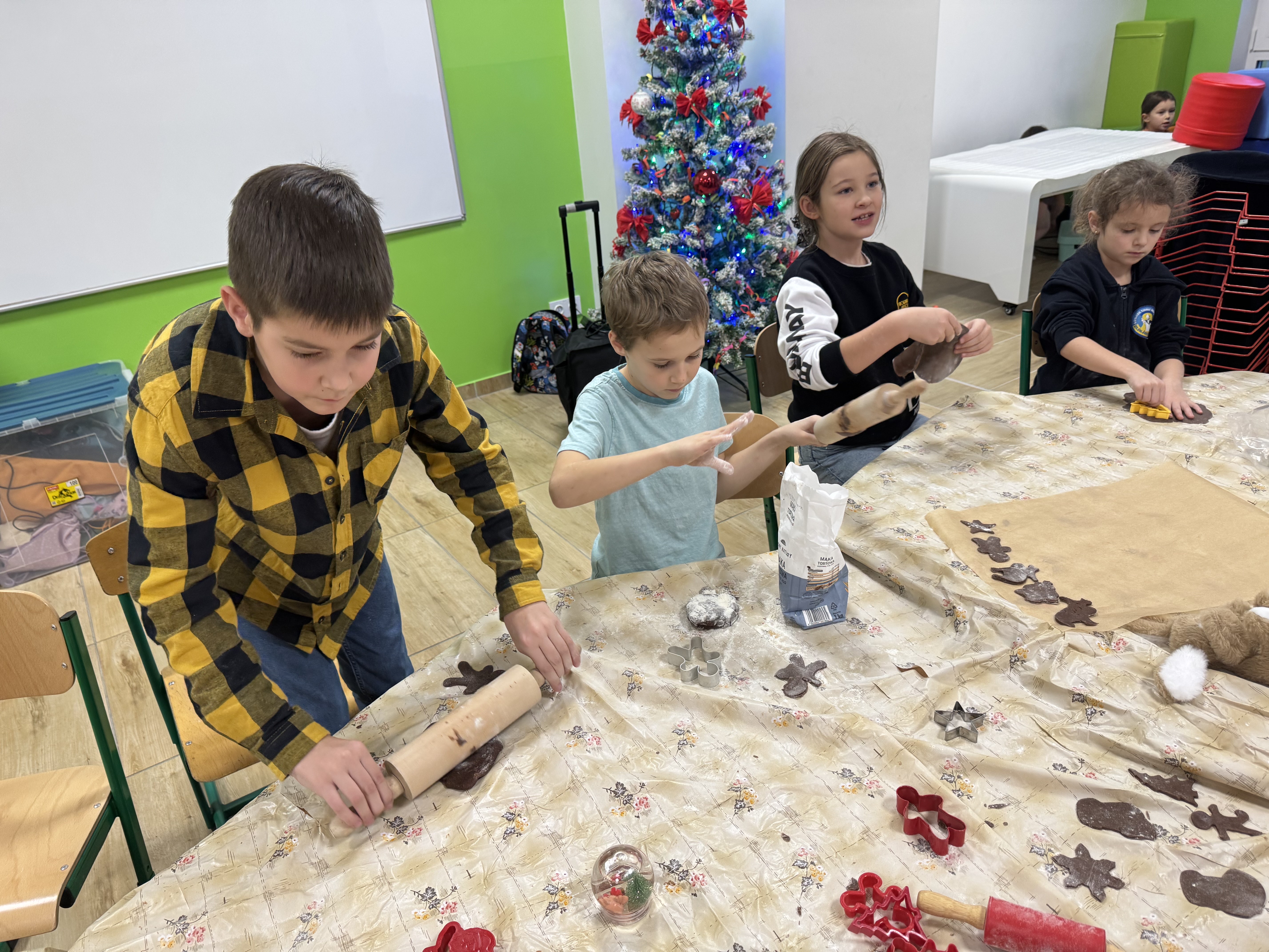 Najwięcej zabawy i najwięcej chętnych było oczywiście do wycinania pierniczków foremkami. Ta kulinarna zabawa zaowocowała również nawiązaniem koleżeńskich relacji między uczniami.