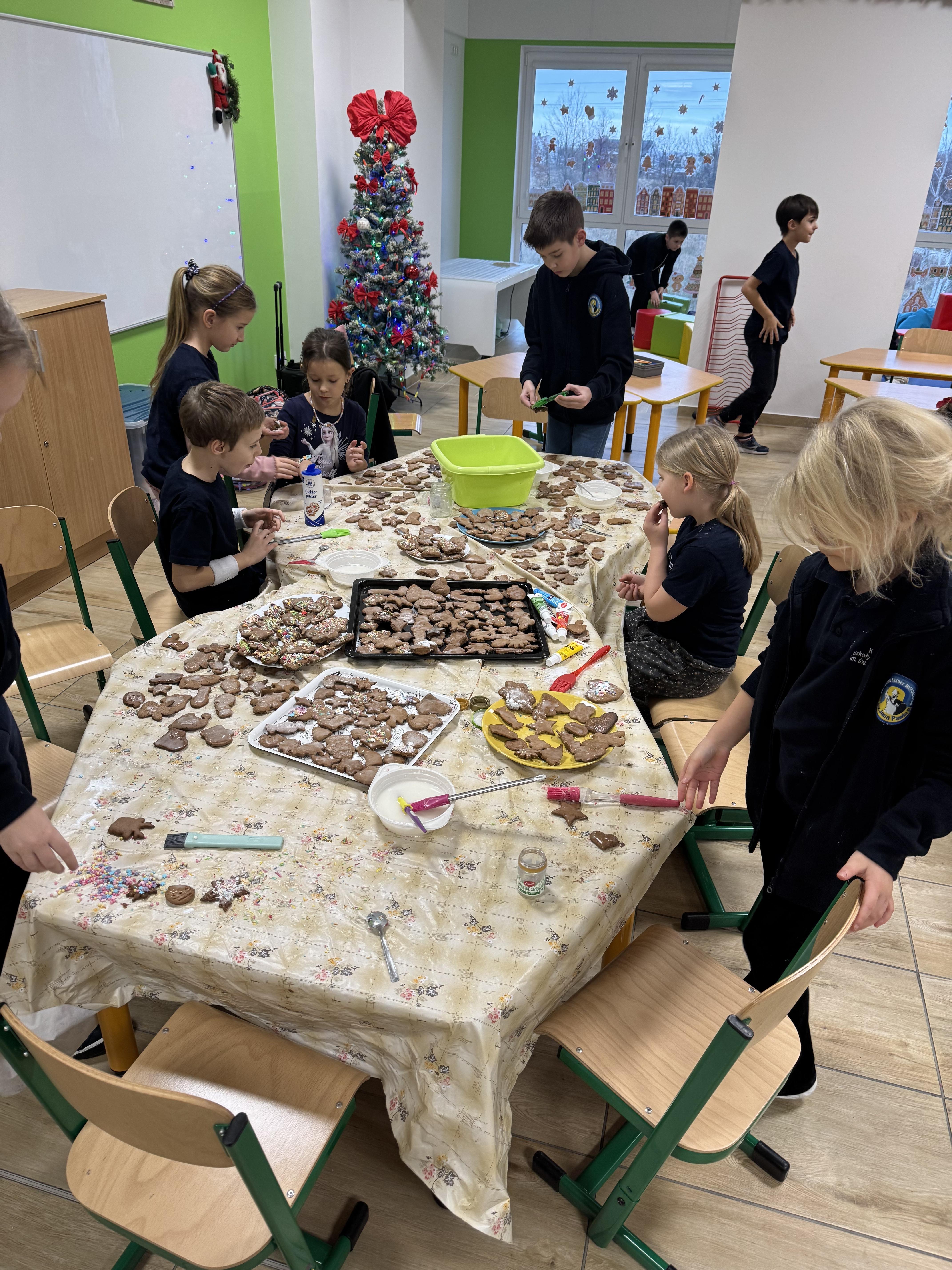 Uczniowie wychodzili do domu bardzo zadowoleni. Drugiego dnia dzieci zajęły się lukrowaniem i dekorowaniem posypkami pierniczków.
