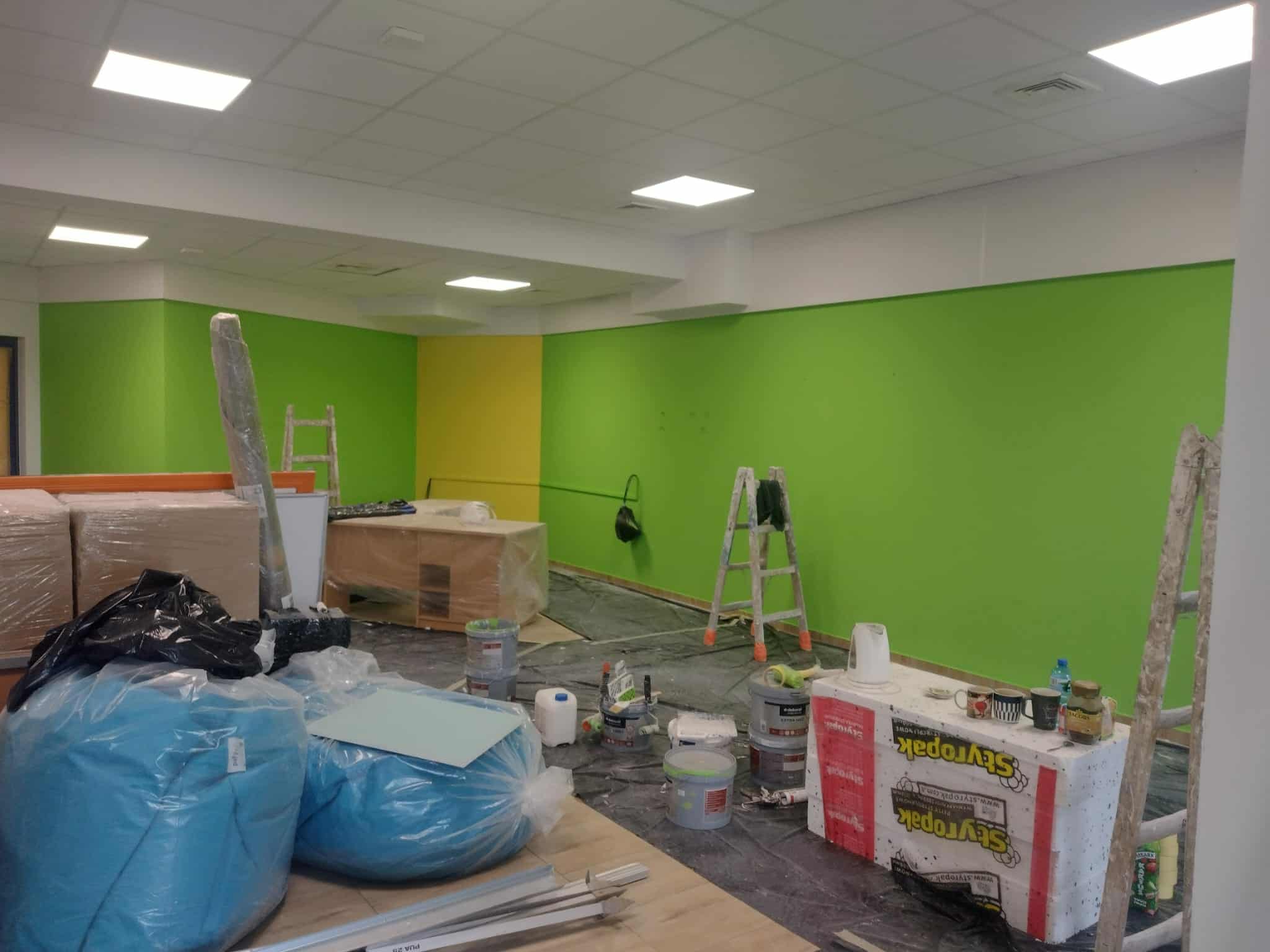 Prace nad naszą nową świetlicą szkolną zmierzają ku końcowi! Dziś ekipa pracujących podczas rozbudowy rozpoczęła malowanie wnętrz, co oznacza, że krok po kroku zbliżamy się do momentu otwarcia tego nowoczesnego i przyjaznego miejsca dla naszych uczniów.