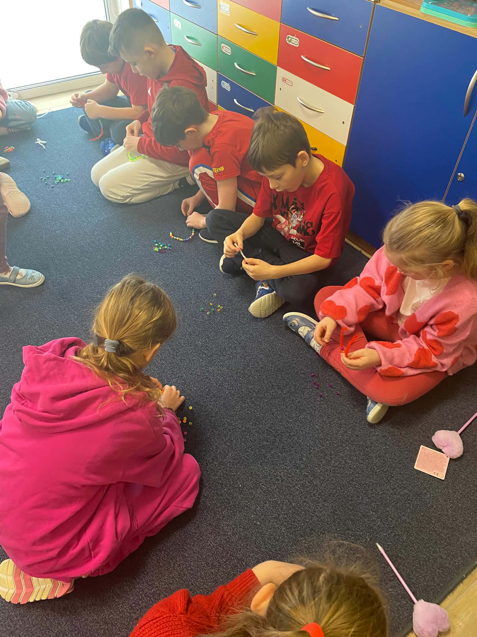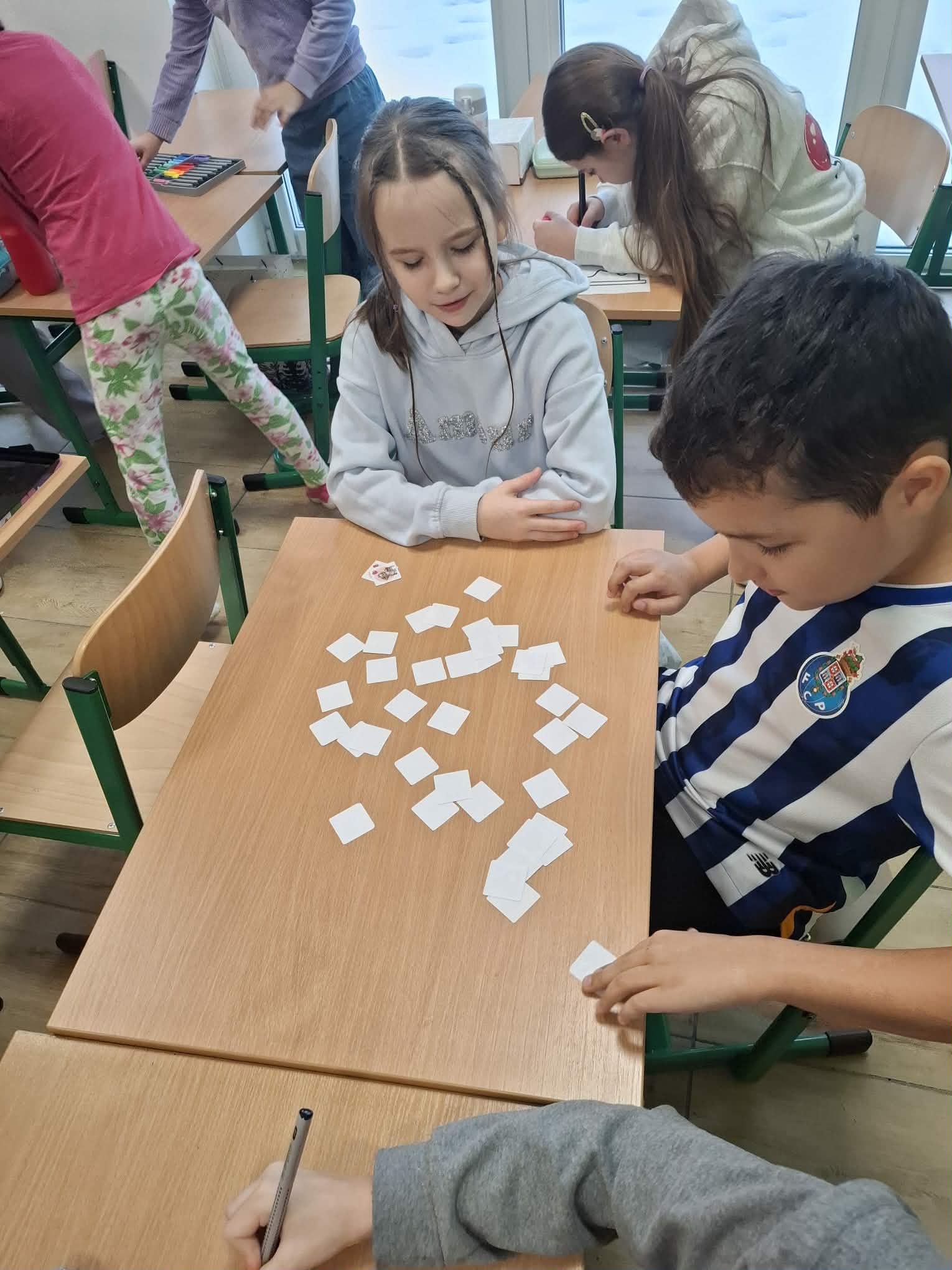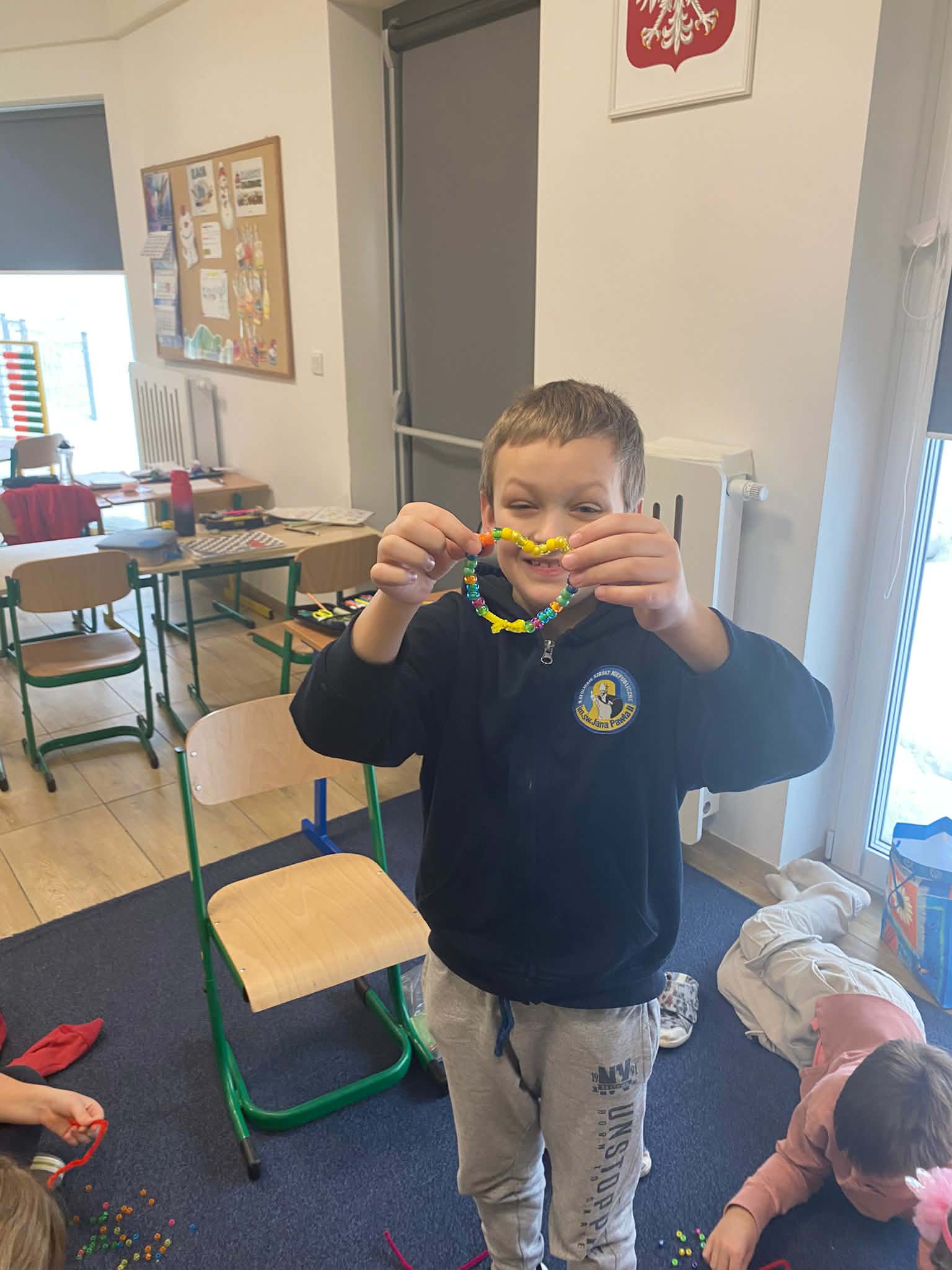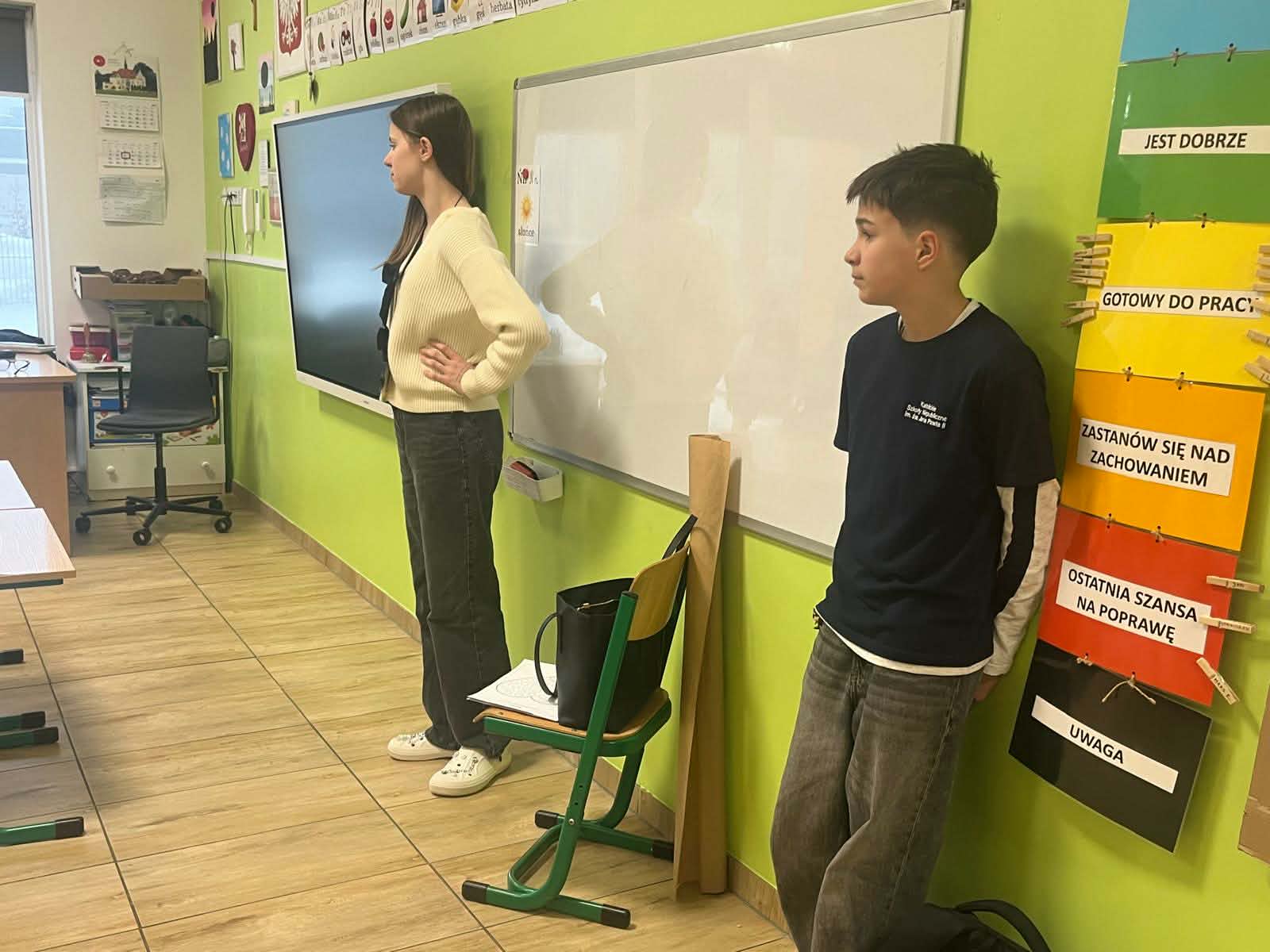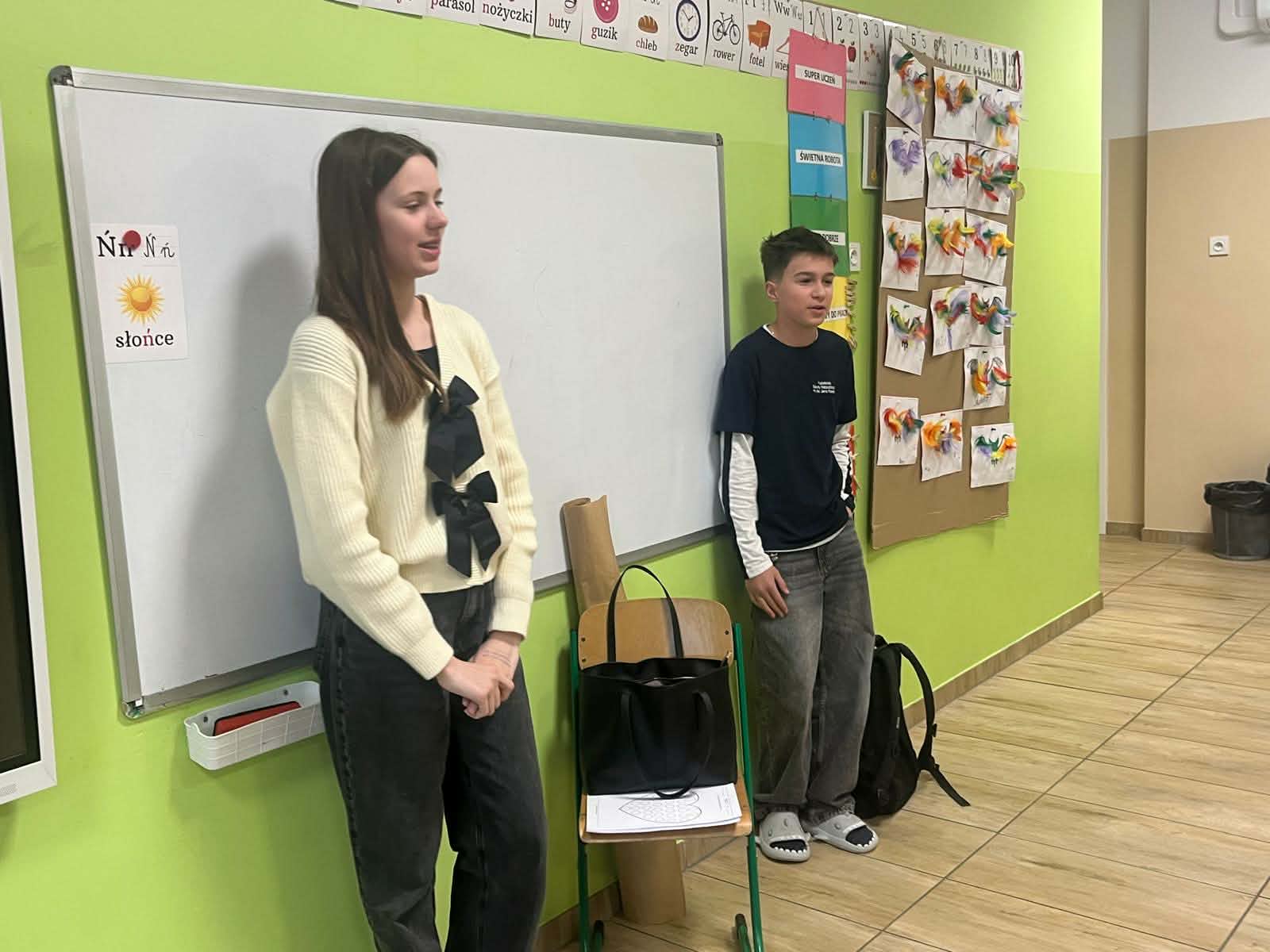 Najmłodsi uczniowie, z klas 0-3, mieli okazję spędzić wyjątkowe chwile w towarzystwie starszych kolegów i koleżanek z klas 7 i 8, którzy wcielili się w rolę wolontariuszy. Wspólnie realizowali oni szereg kreatywnych i angażujących aktywności. Powstawały klasowe walentynkowe serca, gdzie każdy mógł zostawić cząstkę siebie. Dzieciaki z zapałem grały w walentynkowe memory i domino, kolorowały tematyczne karty pracy i kolorowanki, a także tworzyły piękne, własnoręcznie wykonane walentynki. Oczywiście, nie zabrakło rozmów o samej istocie Walentynek. Uśmiechy na twarzach dzieci i zaangażowanie wolontariuszy świadczyły o doskonałej zabawie. Wychowawczynie również aktywnie uczestniczyły w zajęciach, wspierając i motywując młodszych uczniów.