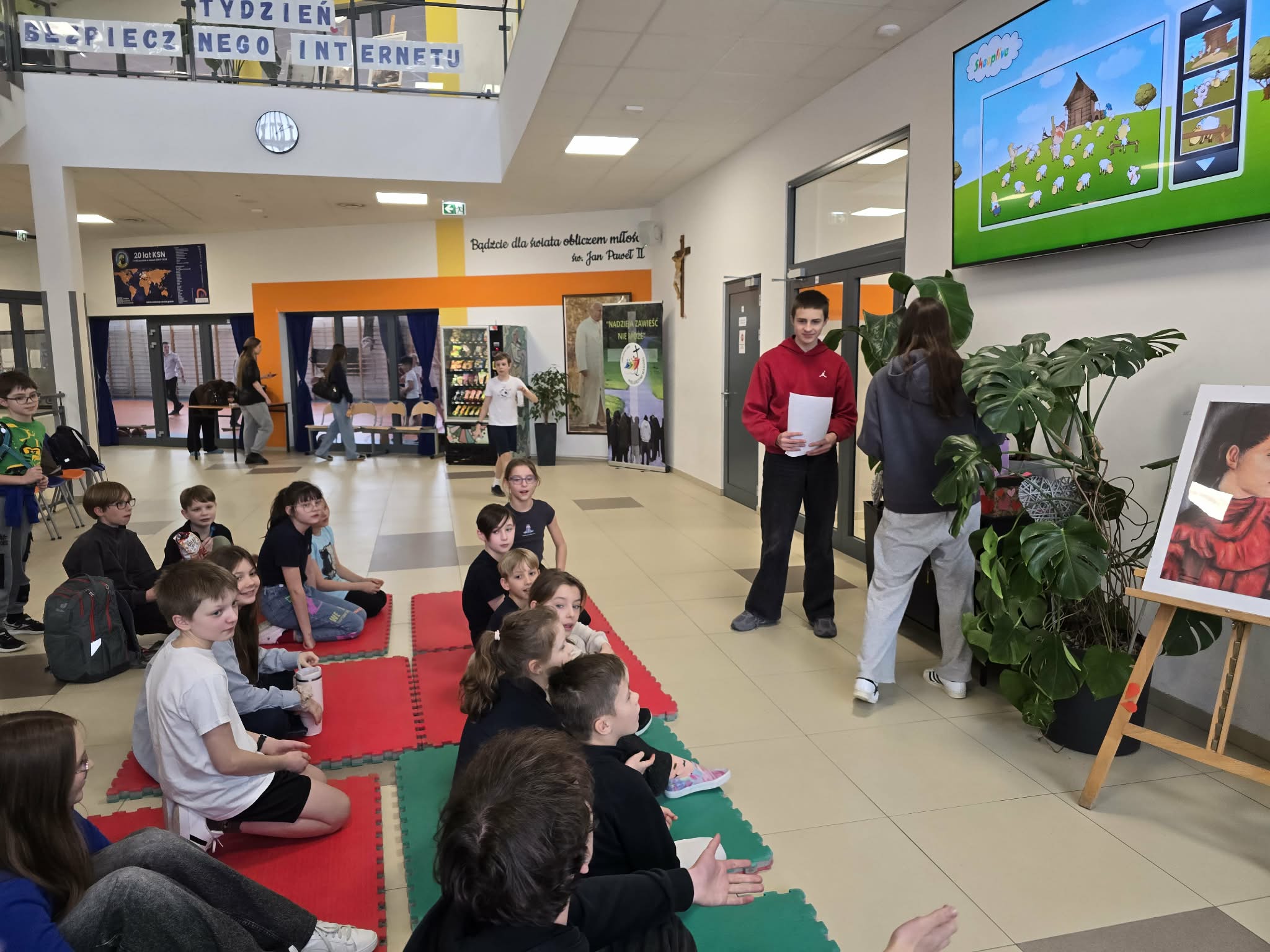 Podczas długich przerw szkolnych na głównym holu szkolnym można było zobaczyć animacje, konkursy i piosenki, które miały na celu przybliżenie uczniom tematyki bezpieczeństwa w internecie. Uczestnicy brali udział w quizach, związanych z bezpiecznym korzystaniem z sieci. Wszystkie te działania miały na celu nie tylko edukację, ale również integrację społeczności szkolnej wokół wspólnego celu – promowania odpowiedzialnych zachowań online.