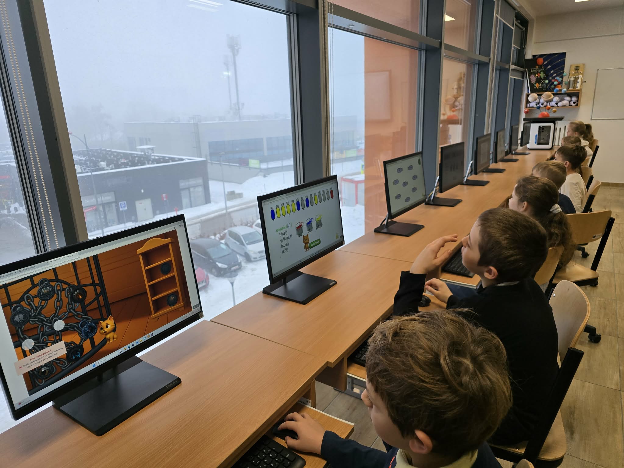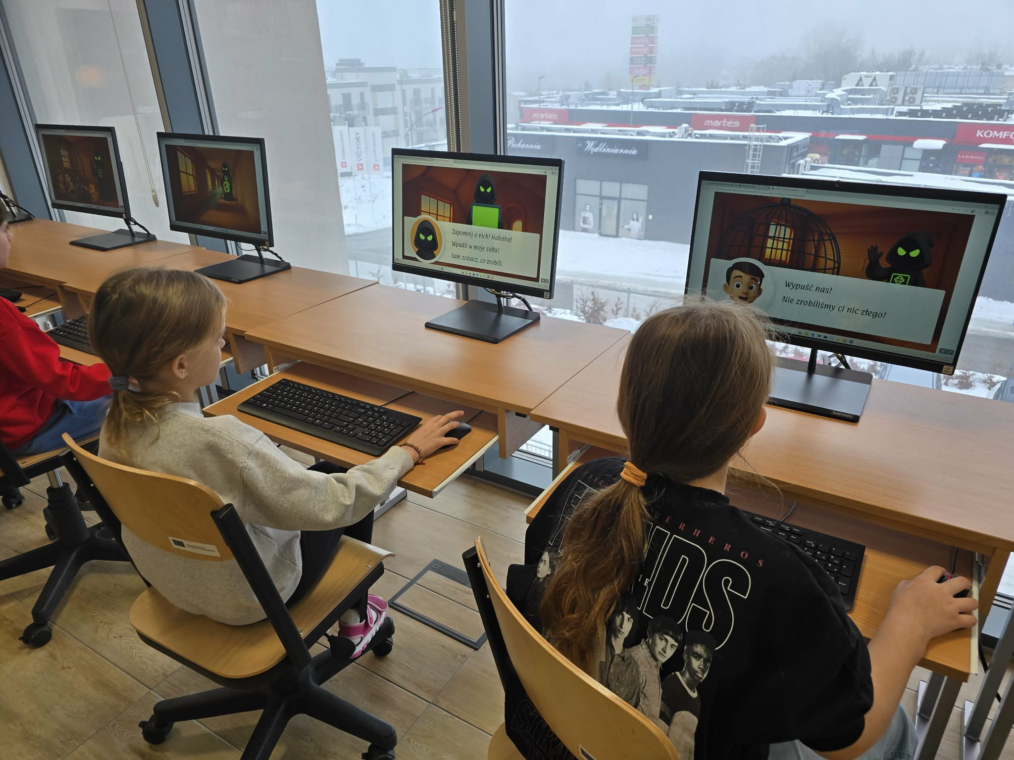 Dzień ten rozpoczął się od ciekawej interaktywnej zabawy – escaperoomu, dostosowanego do wieku dzieci. Podczas rozwiązywania zagadek, uczniowie mieli okazję nauczyć się, jak rozpoznawać niebezpieczne sytuacje w internecie, jak chronić swoje dane osobowe oraz co robić, gdy natrafią na nieodpowiednie treści lub osoby. Ta forma edukacji okazała się nie tylko atrakcyjna, ale także skuteczna, ponieważ dzieci chętnie angażowały się w rozwiązanie kolejnych zadań, ucząc się przy tym poprzez zabawę.
