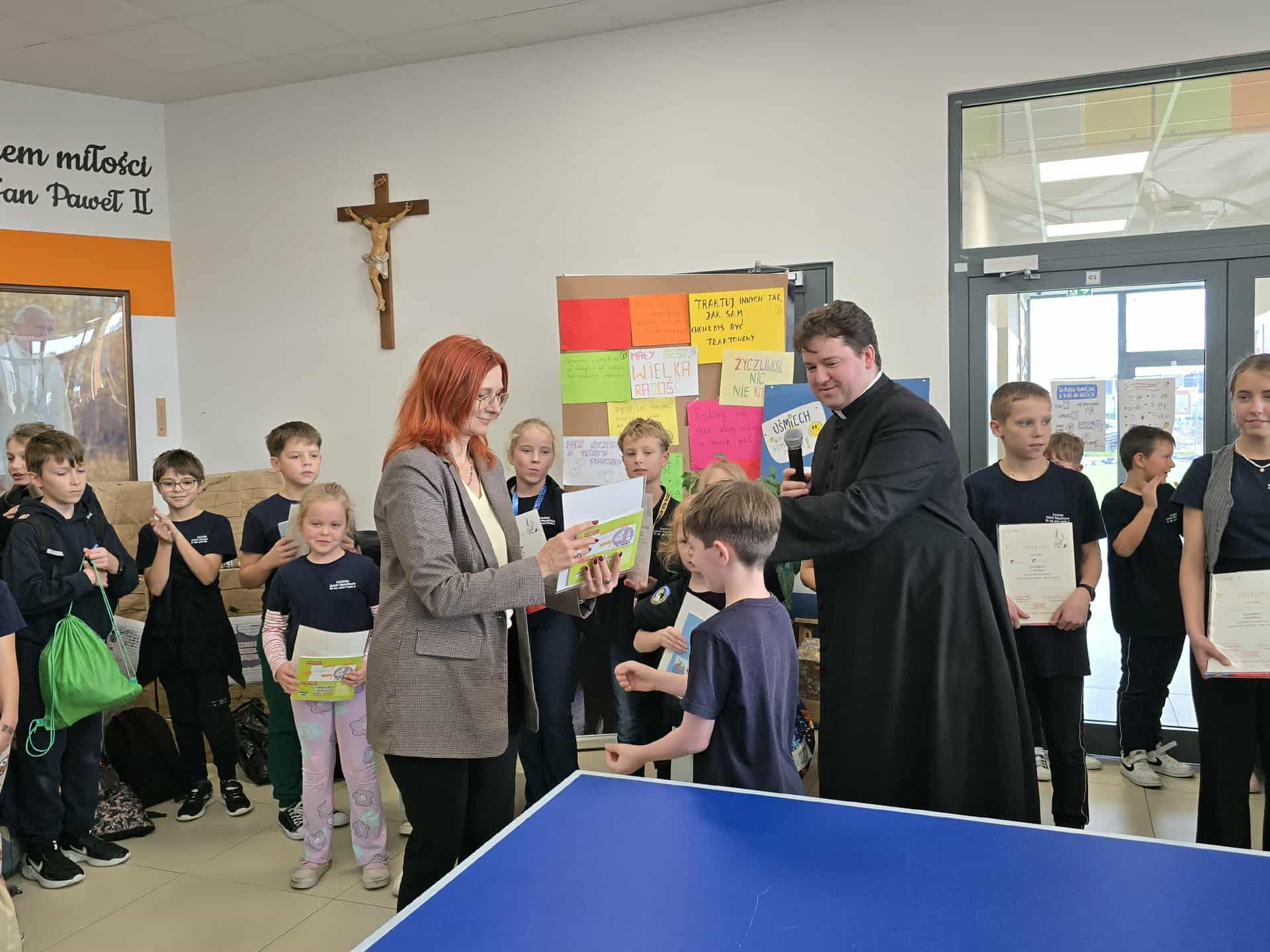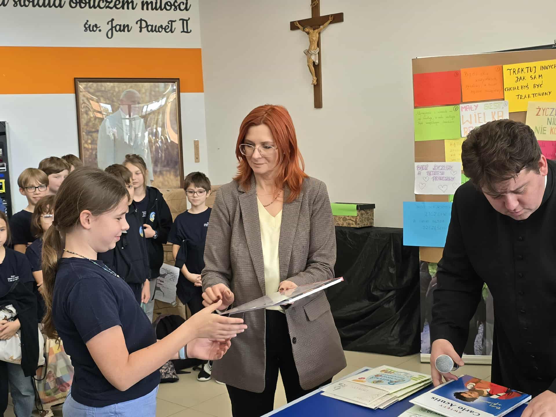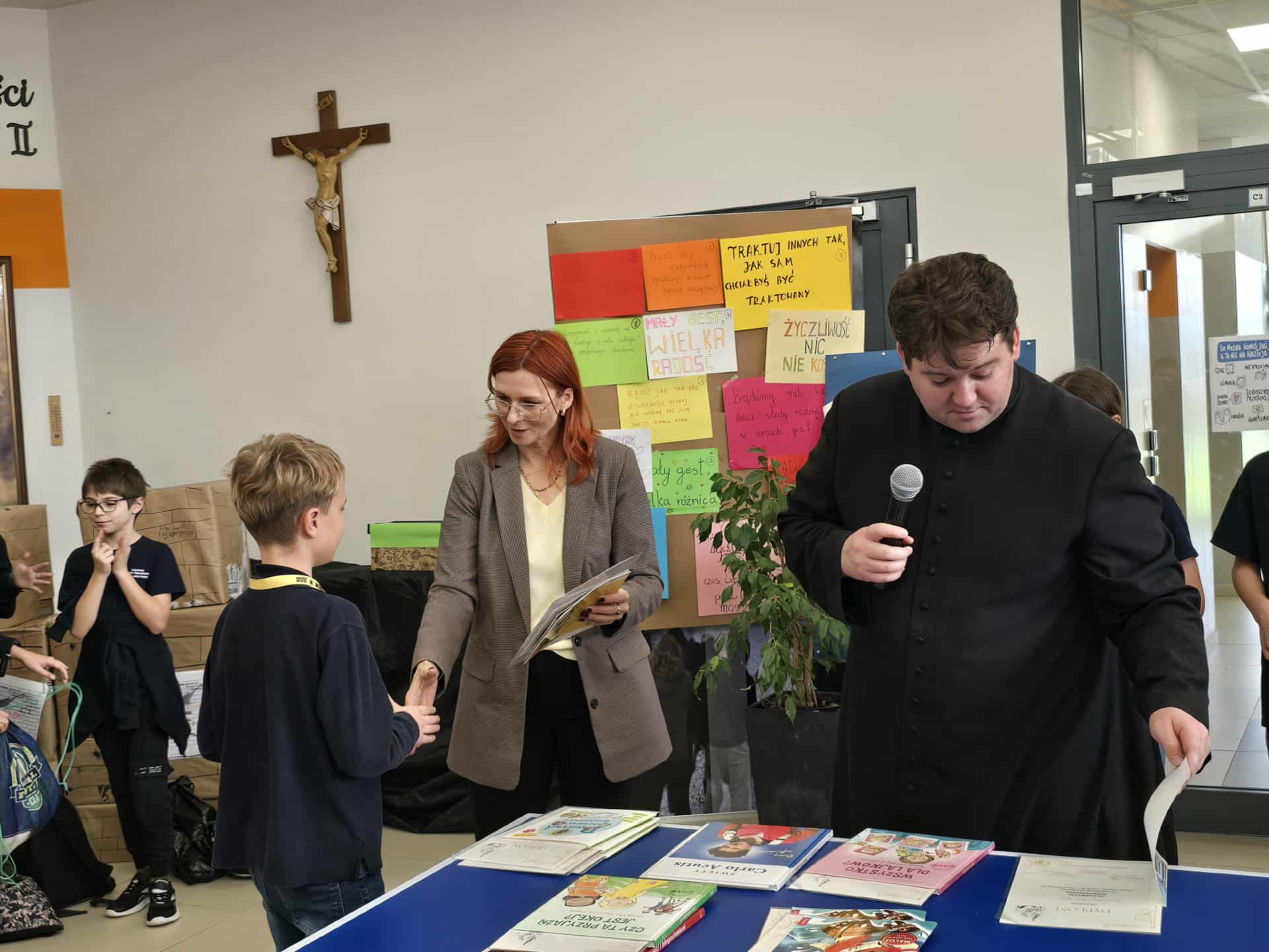 Dla starszych uczniów przygotowano konkurs na lapbook na temat Pasji Jana Pawła II. Ta interaktywna forma prezentacji pozwoliła uczestnikom zgłębić wiedzę na temat życia i działalności Papieża, a także rozwijać umiejętności organizacyjne i wizualne.