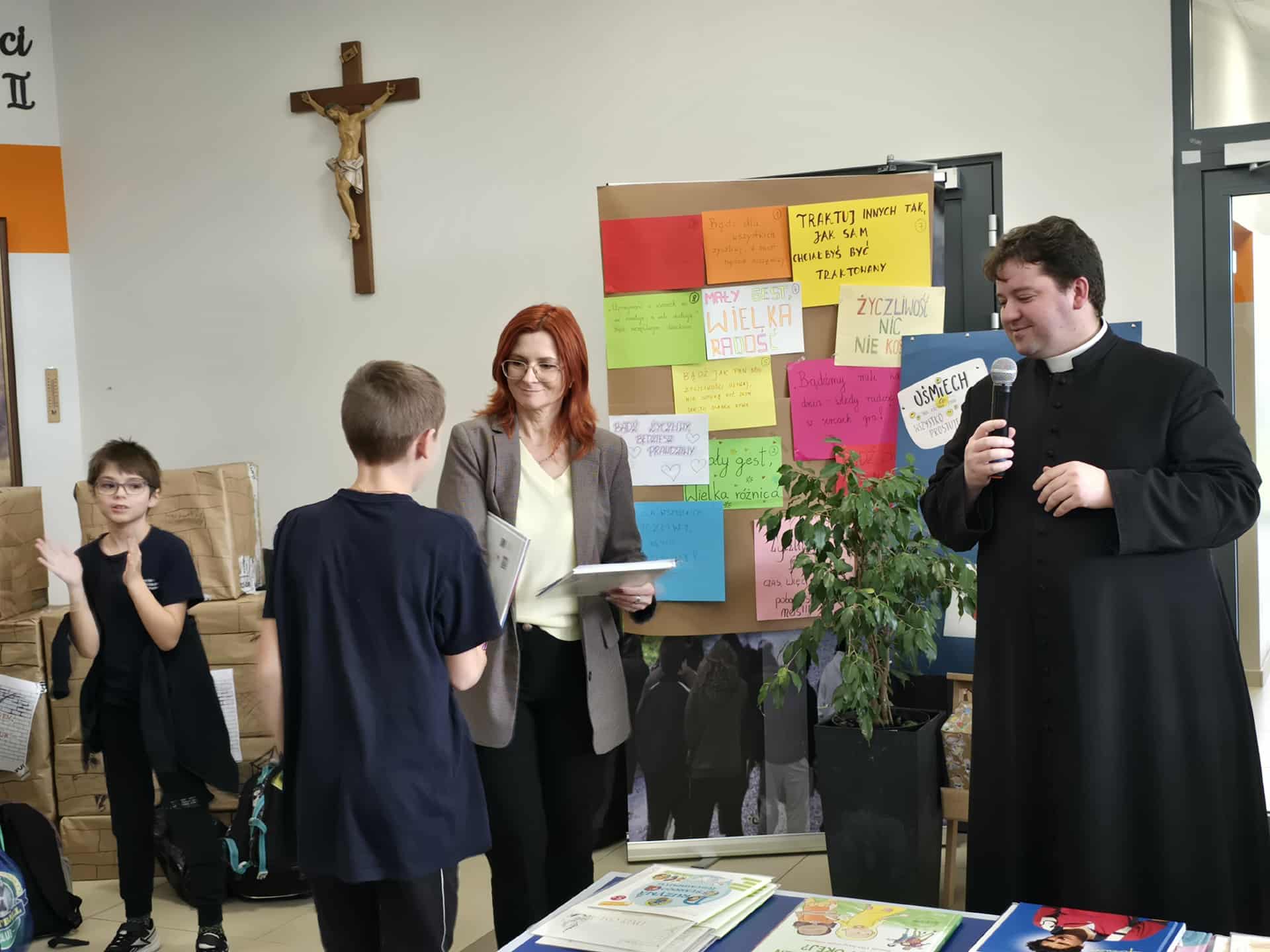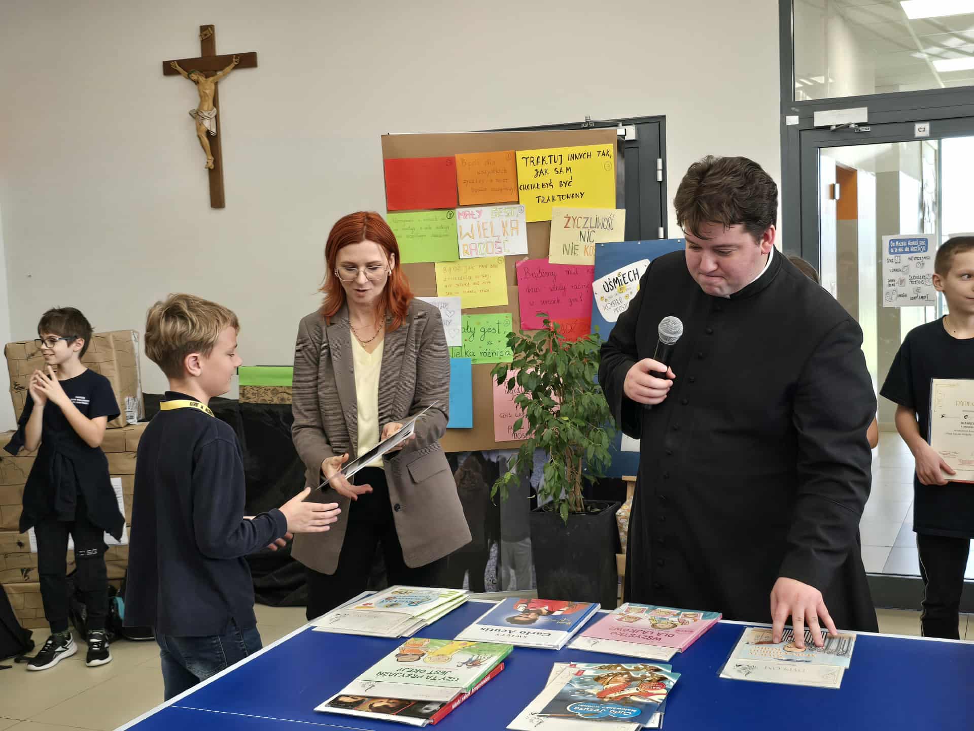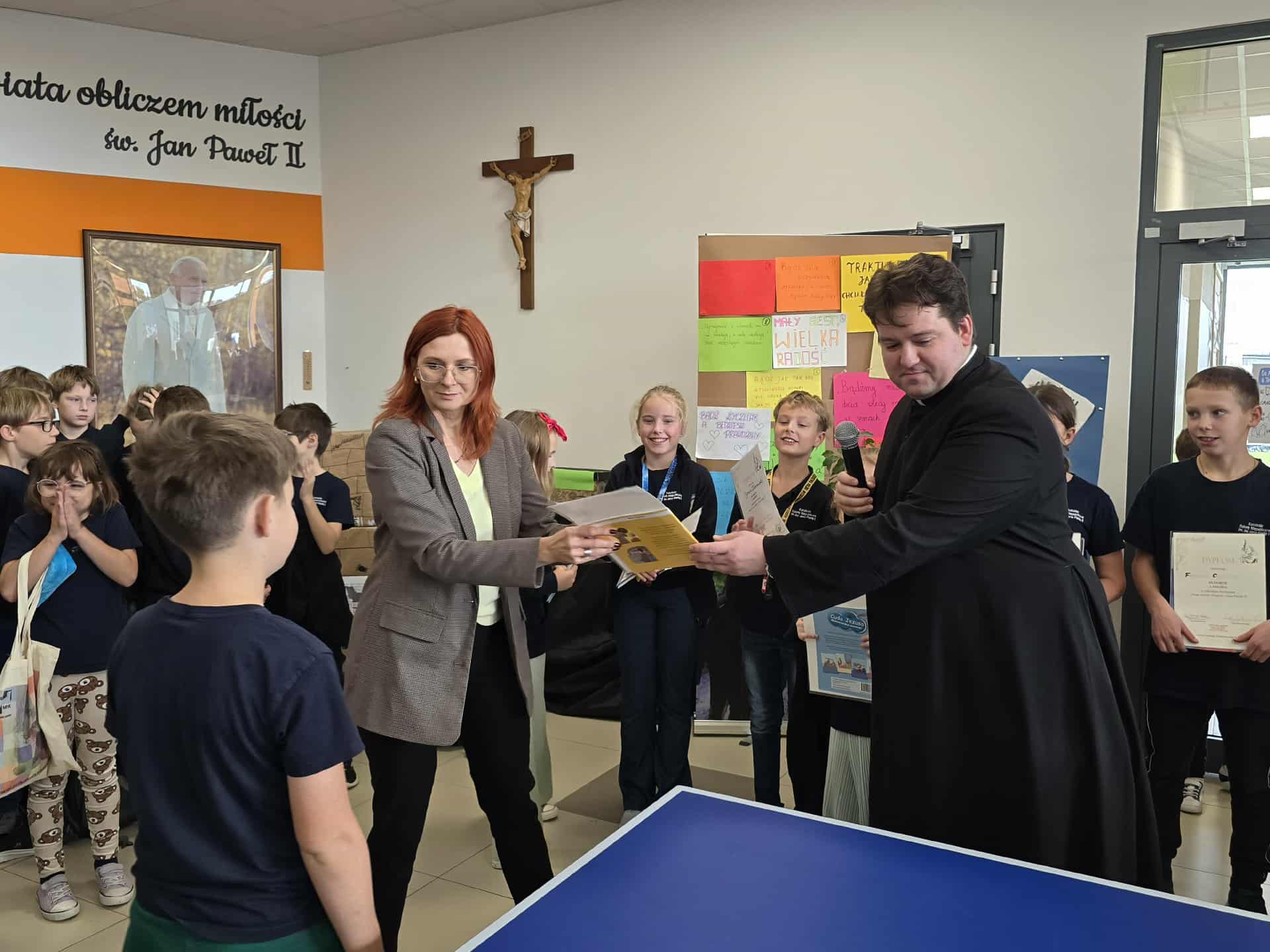 Dla starszych uczniów przygotowano konkurs na lapbook na temat Pasji Jana Pawła II. Ta interaktywna forma prezentacji pozwoliła uczestnikom zgłębić wiedzę na temat życia i działalności Papieża, a także rozwijać umiejętności organizacyjne i wizualne.