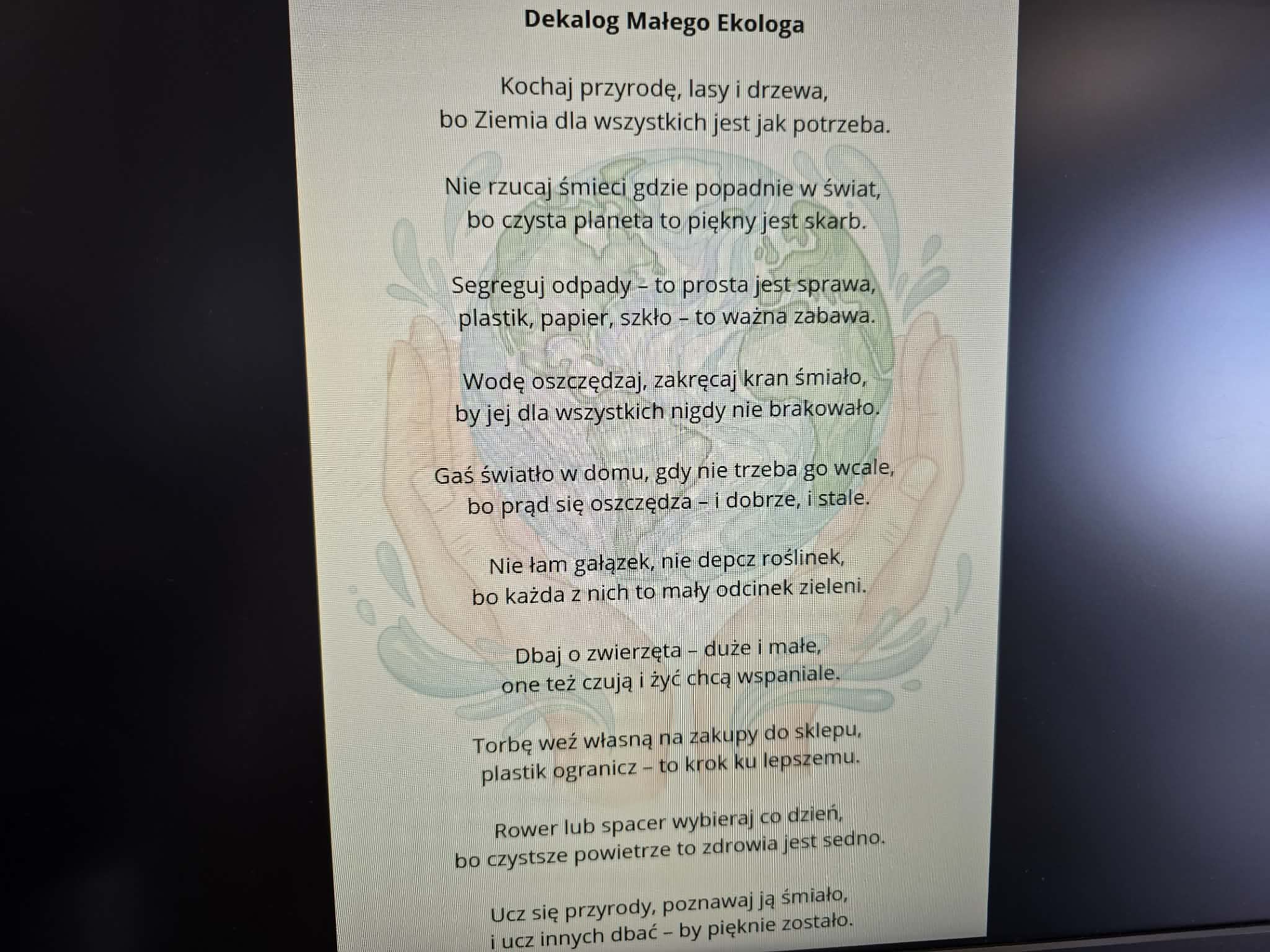 Projekt pokazał, że nawet najmniejsze działania mają znaczenie dla środowiska. Tworząc Dekalog Małego Ekologa, uczniowie nie tylko zdobywali nowe umiejętności, ale także uświadamiali sobie, jak ważna jest troska o Ziemię w codziennym życiu.