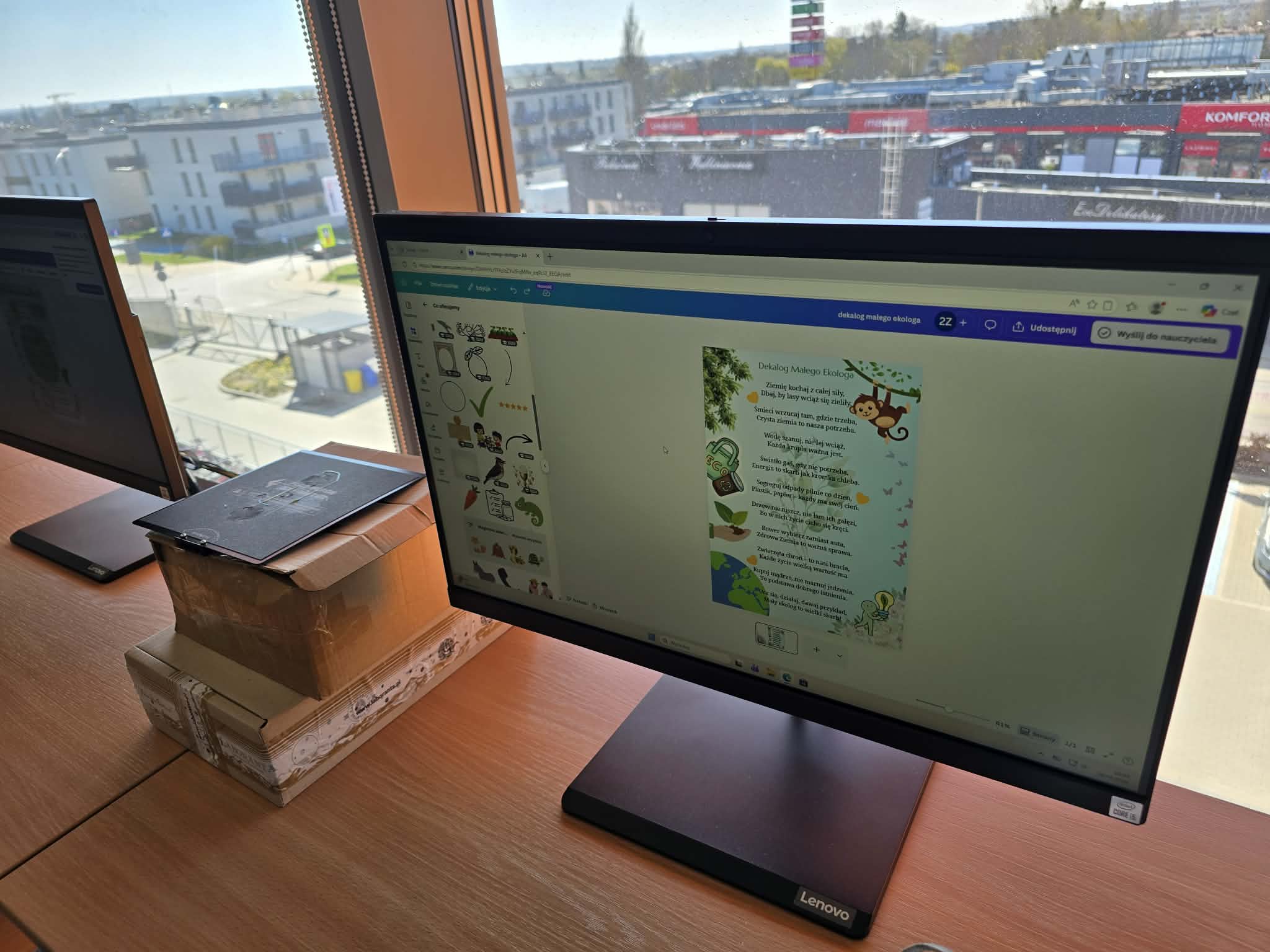 Zamiast tradycyjnych kartek i kredek uczniowie pracowali przy komputerach, projektując swoje plakaty w programach graficznych i edytorach tekstu. Każda praca była inna – pojawiły się kolorowe grafiki, ciekawe układy treści oraz pomysłowe hasła zachęcające do dbania o środowisko.