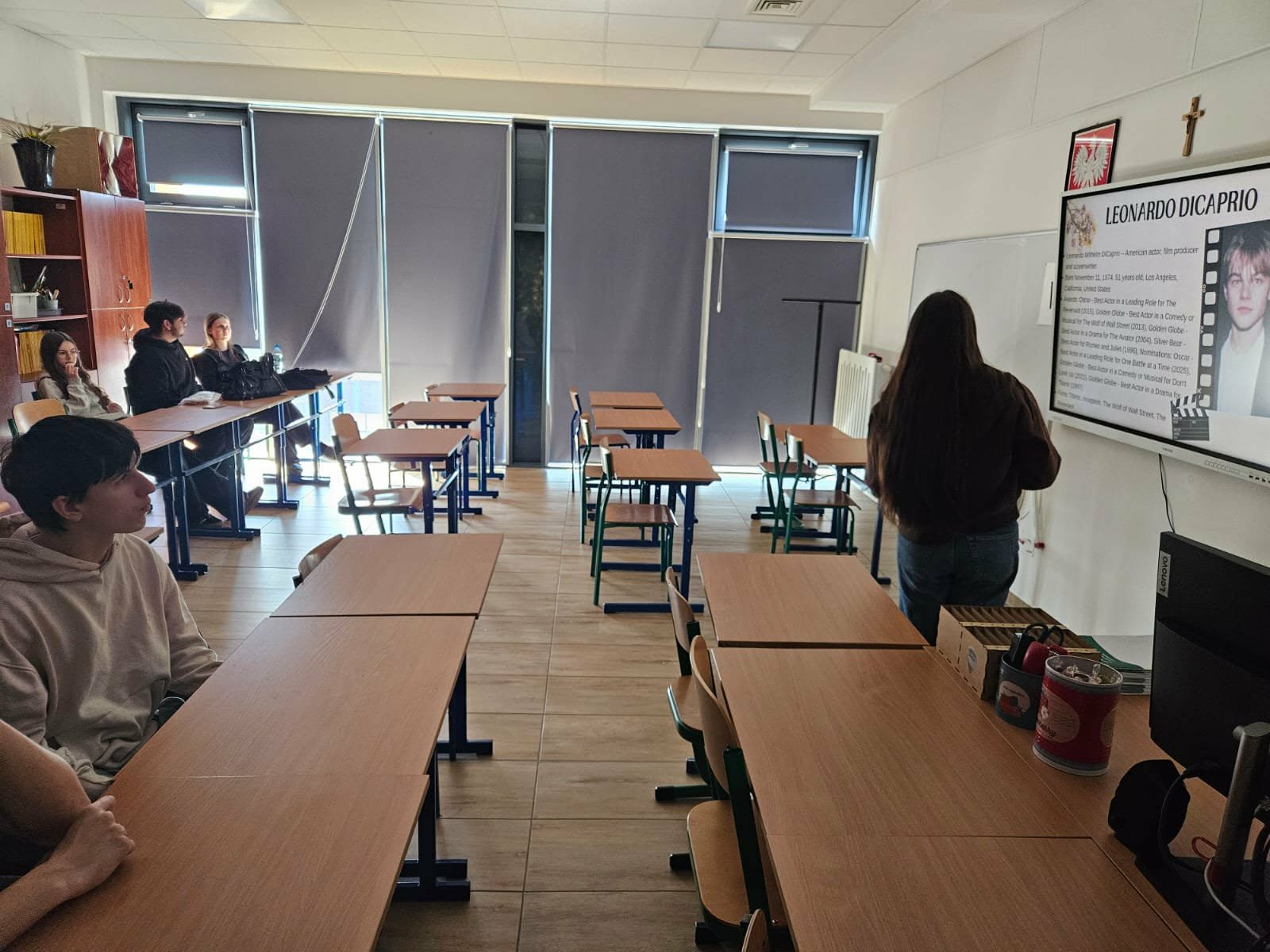Na jednej z lekcji języka angielskiego w klasie 4 LO uczniowie mieli okazję wcielić się w zupełnie nową rolę. Tym razem to nie nauczyciel prowadził zajęcia, lecz uczennica – Alicja, która przygotowała interesującą prezentację o znanych aktorach i aktorkach. Była to nie tylko okazja do nauki, ale również świetna forma rozwijania umiejętności językowych i wystąpień publicznych.