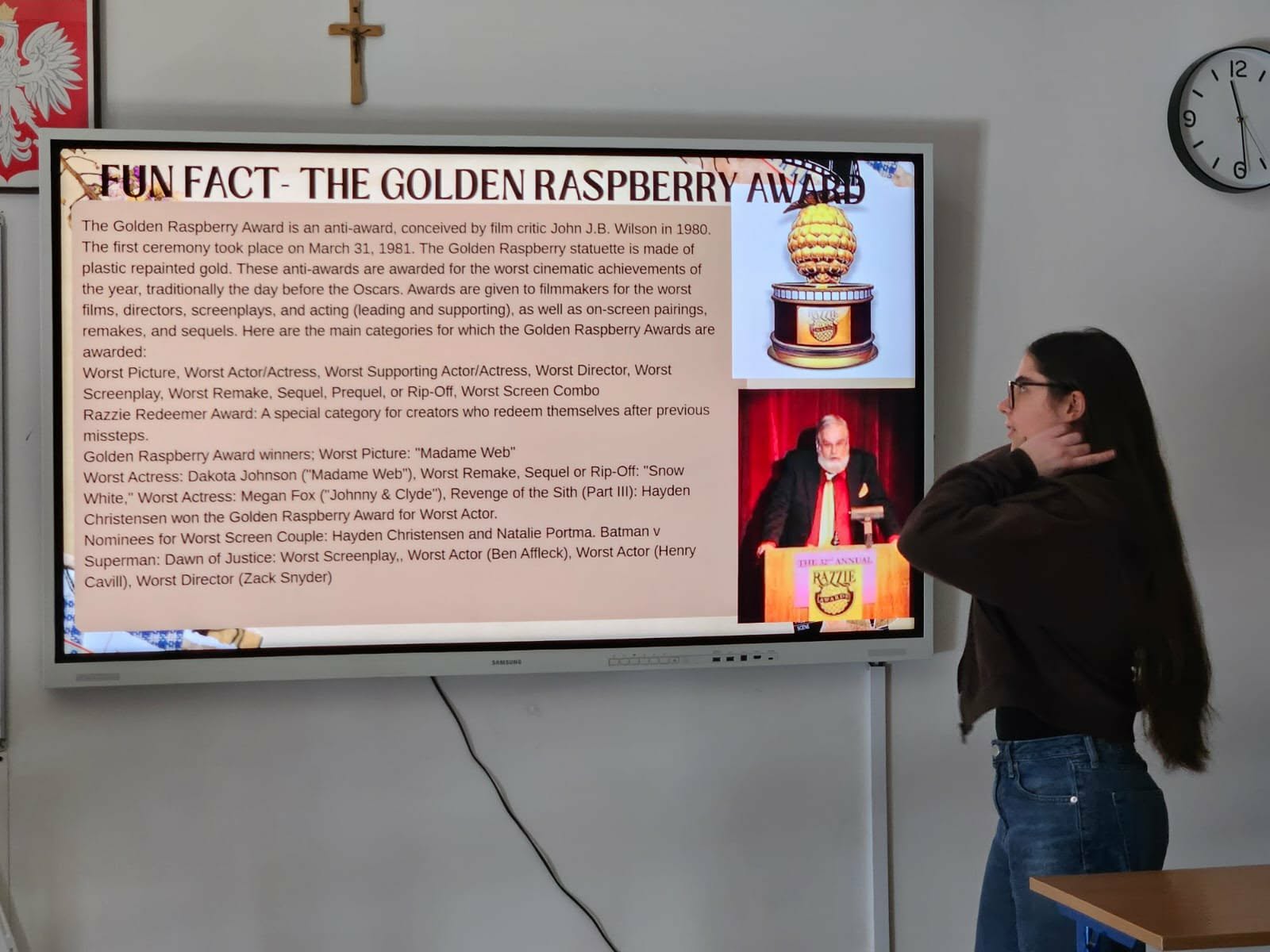 Alicja zaprezentowała sylwetki popularnych gwiazd kina, takich jak Leonardo DiCaprio czy Meryl Streep. Opowiadała o ich karierze, najważniejszych rolach oraz zdobytych nagrodach. Uczniowie mogli dowiedzieć się ciekawostek z życia aktorów, a także przypomnieć sobie znane filmy, w których wystąpili.