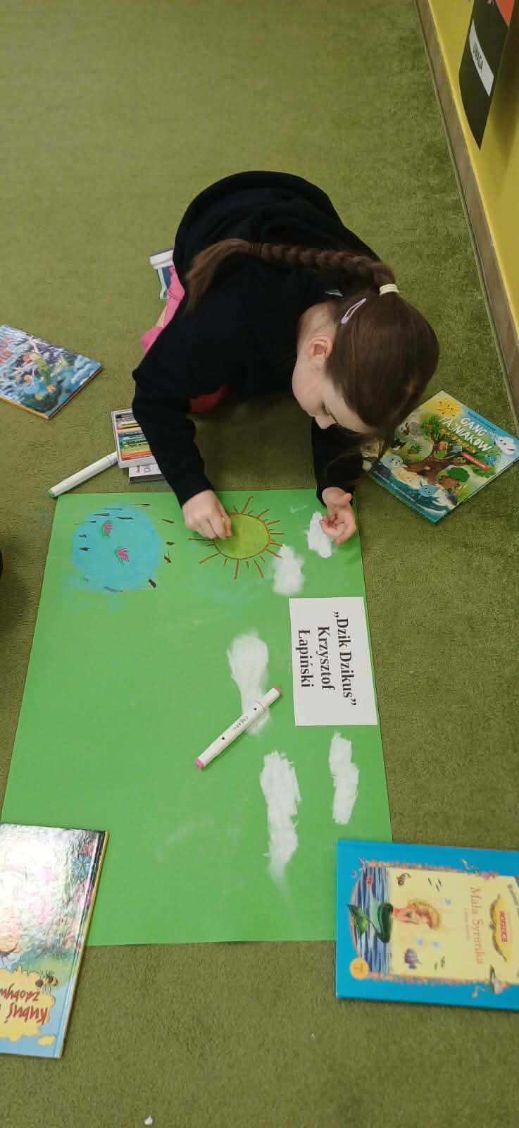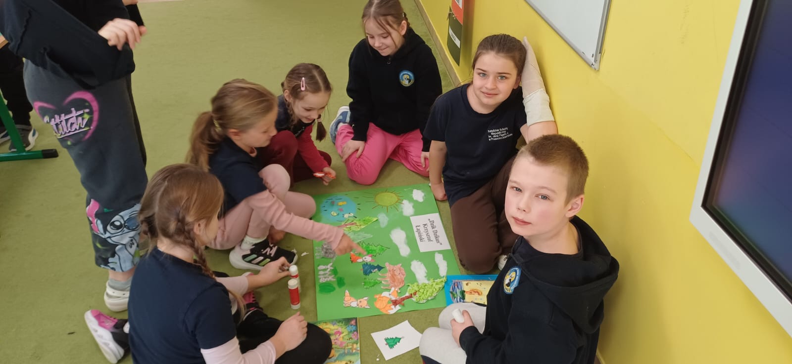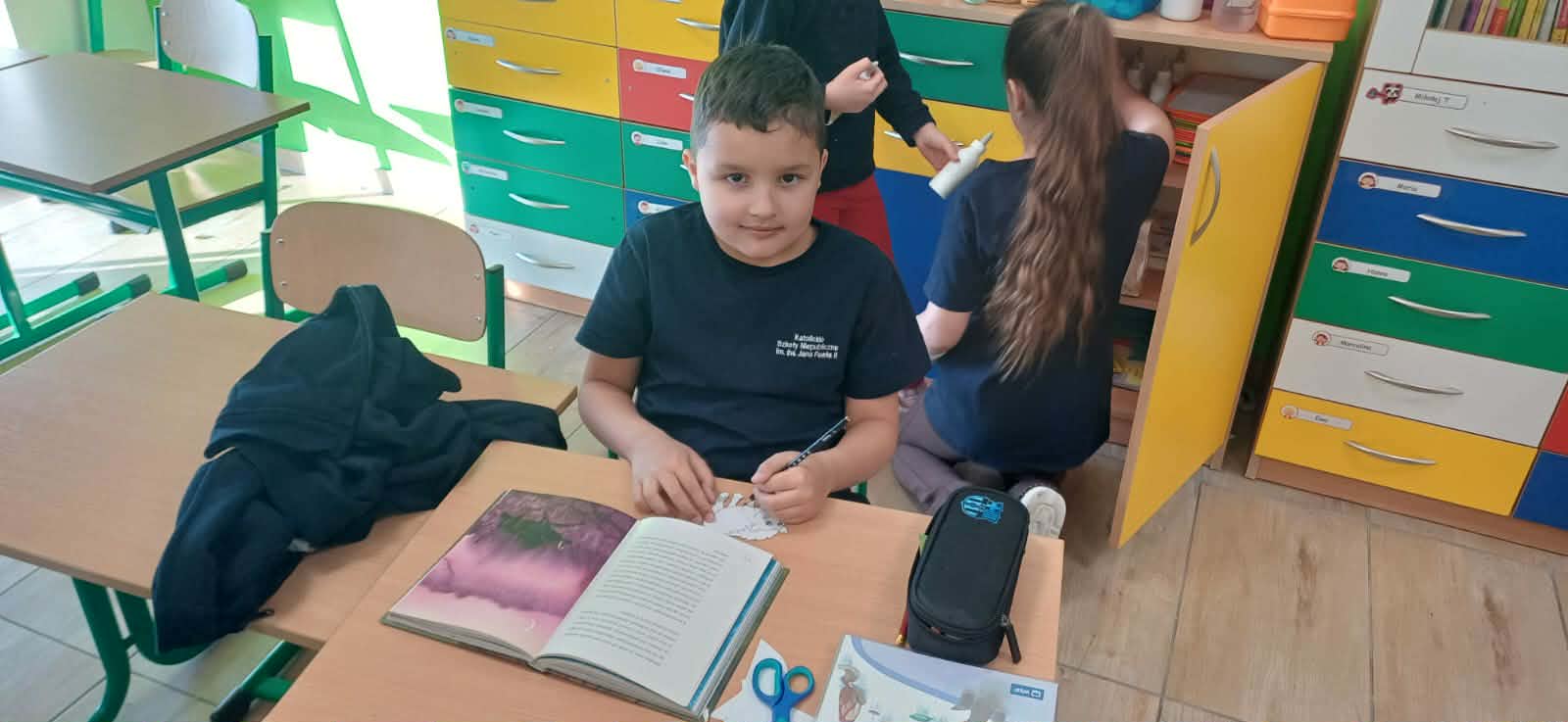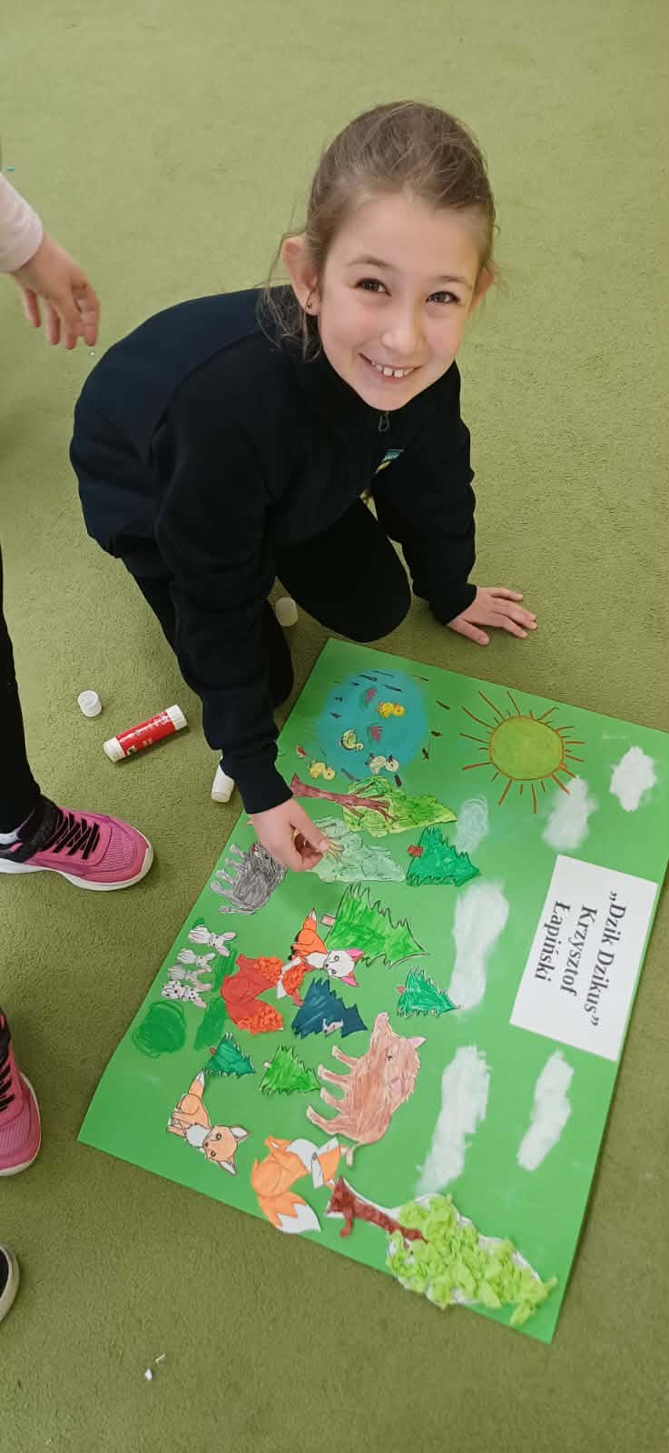 Aby jeszcze bardziej wczuć się w klimat opowieści, uczniowie postanowili stworzyć makietę Lasu Kabackiego. Przy użyciu pasteli, bibuły oraz farb z ogromnym zaangażowaniem wyklejali bohaterów i elementy otoczenia. Wśród nich pojawił się dom dzika Dzikusa oraz jego przyjaciół, co pozwoliło dzieciom na własnoręczne odtworzenie świata przedstawionego w lekturze.