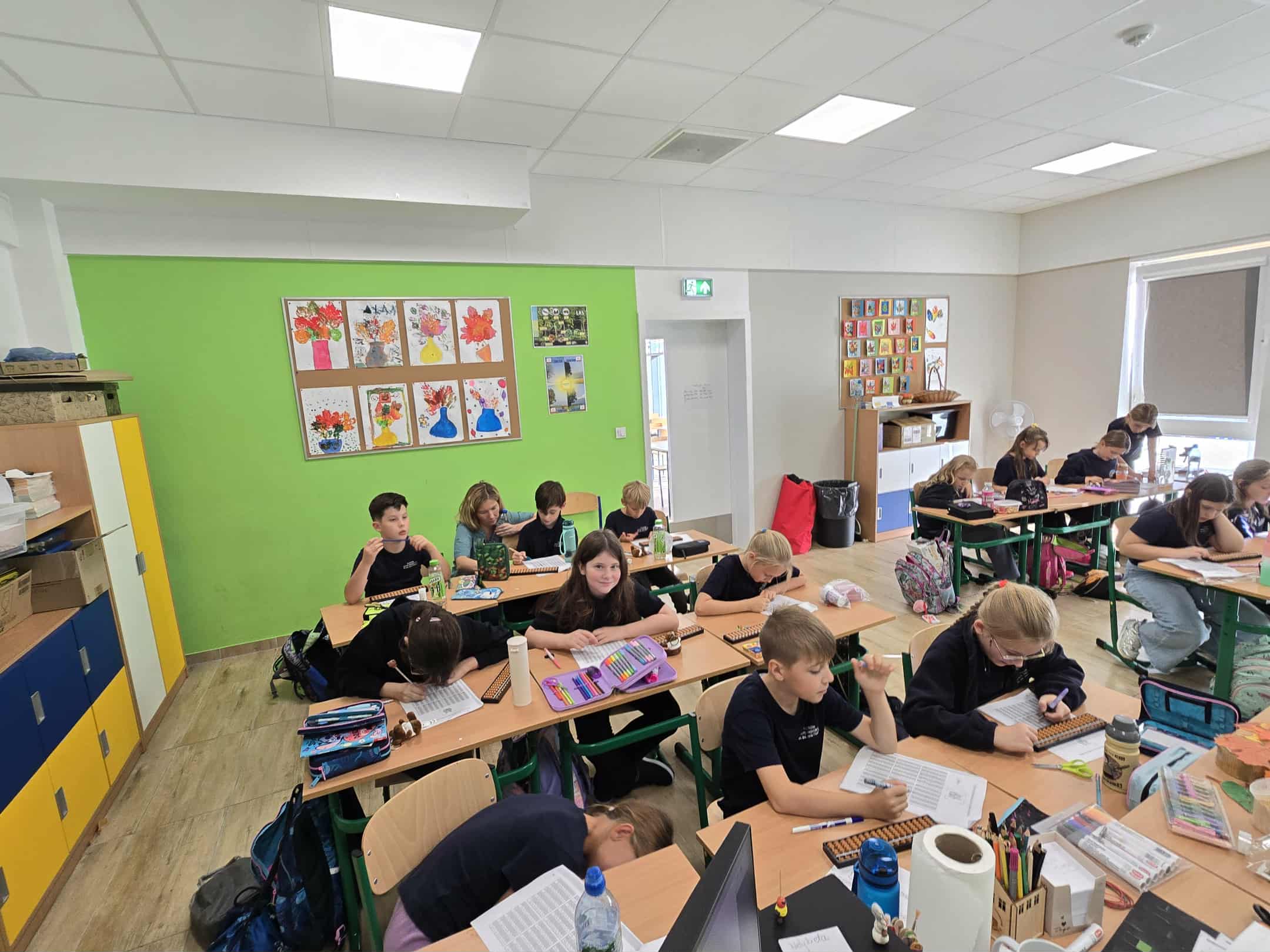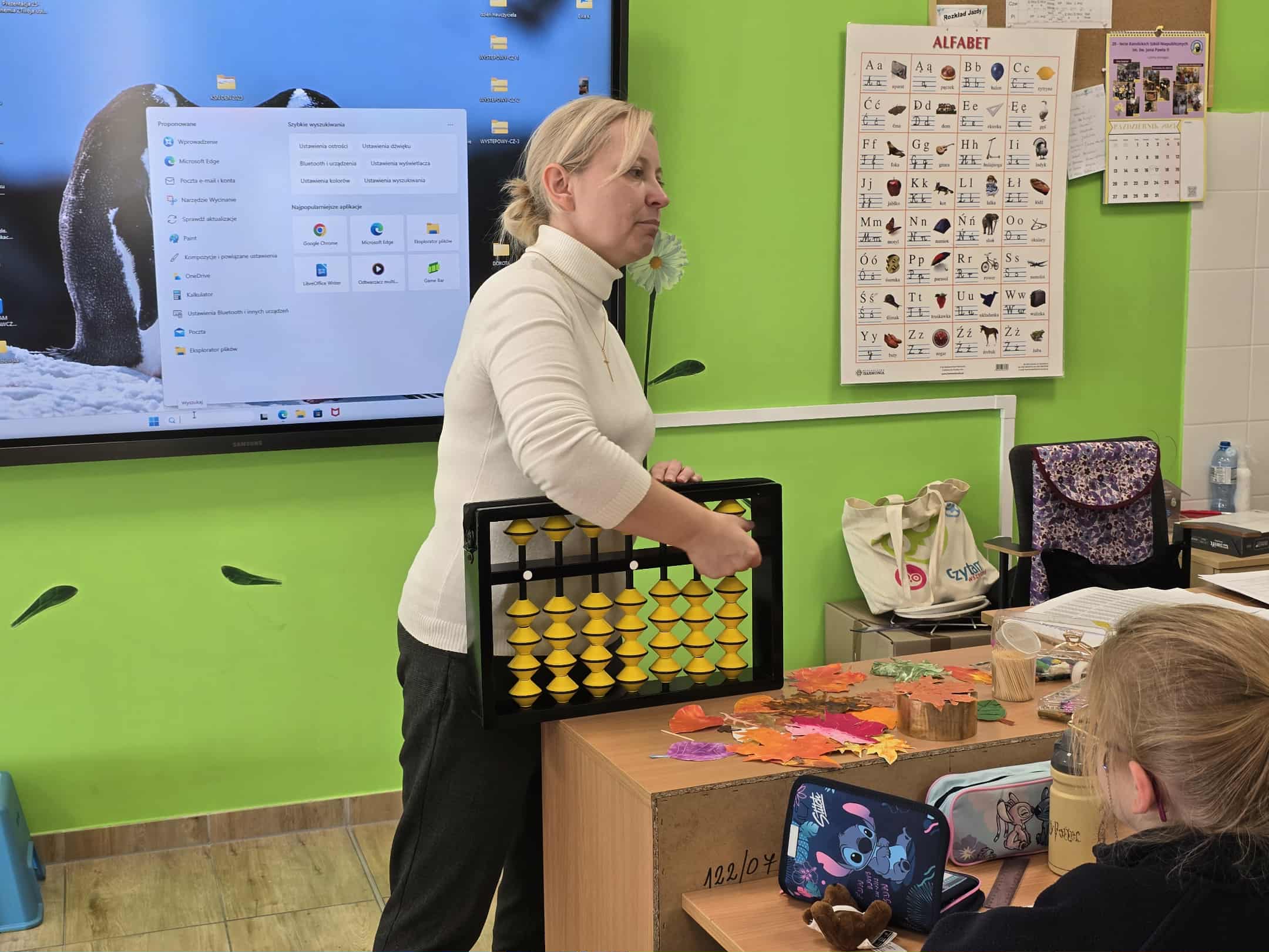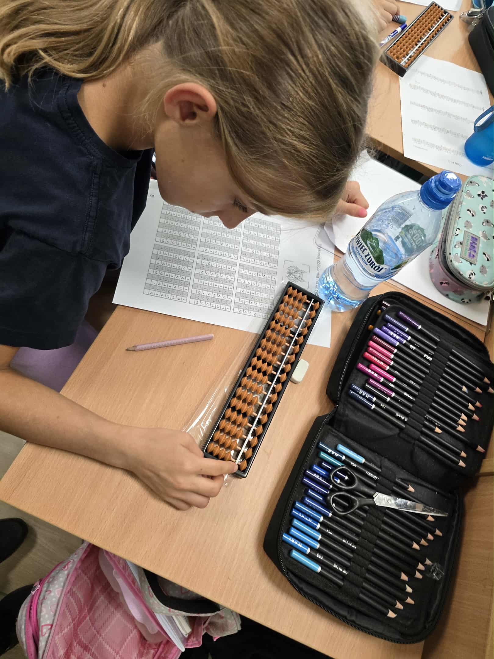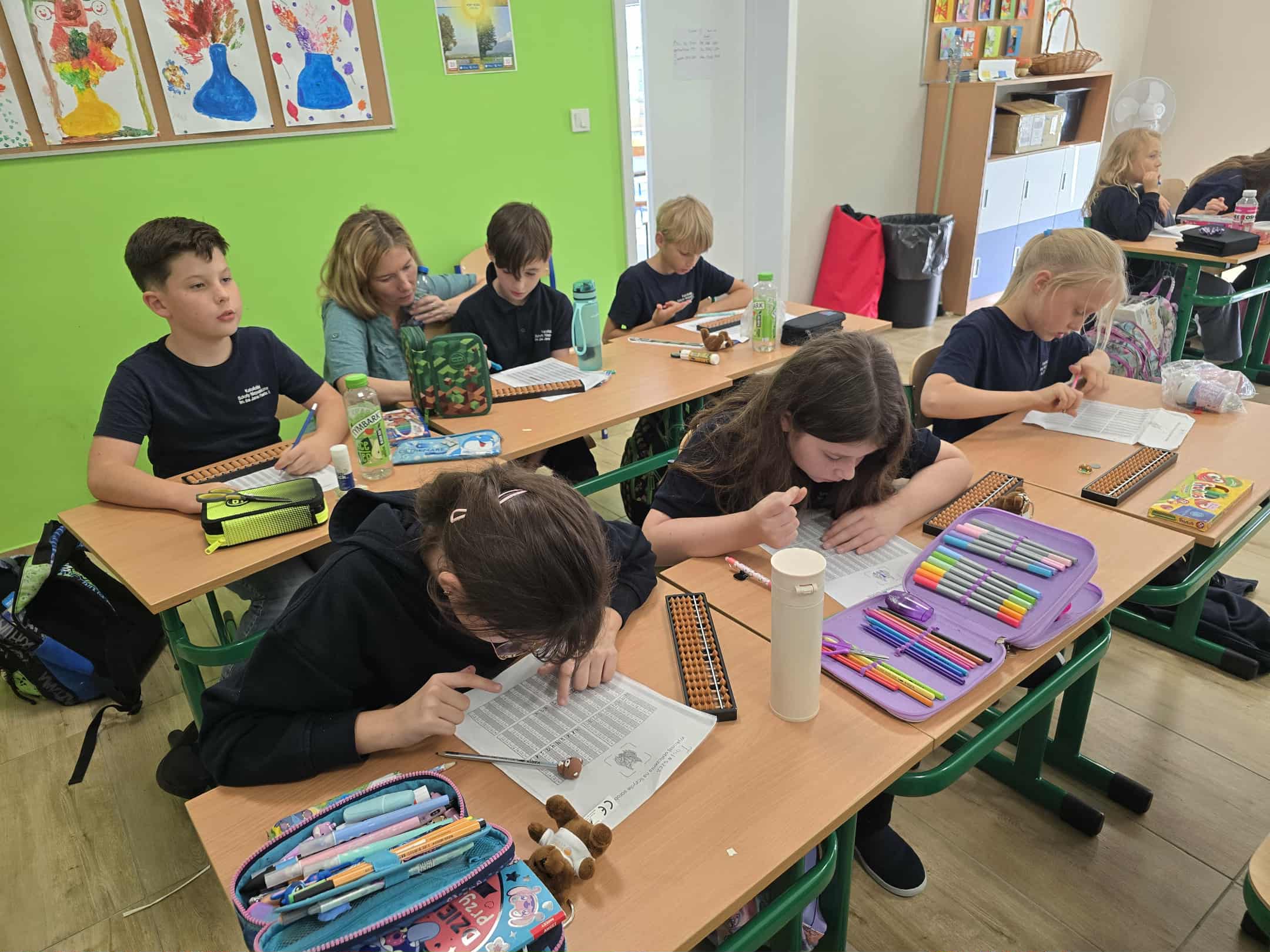 Podczas już kolejnych zajęć uczniowie z entuzjazmem uczyły się, jak przesuwać koraliki na sorobanie, aby liczyć, dodawać i odejmować proste przykłady, co sprawiło im ogromną frajdę i motywację do dalszej nauki.