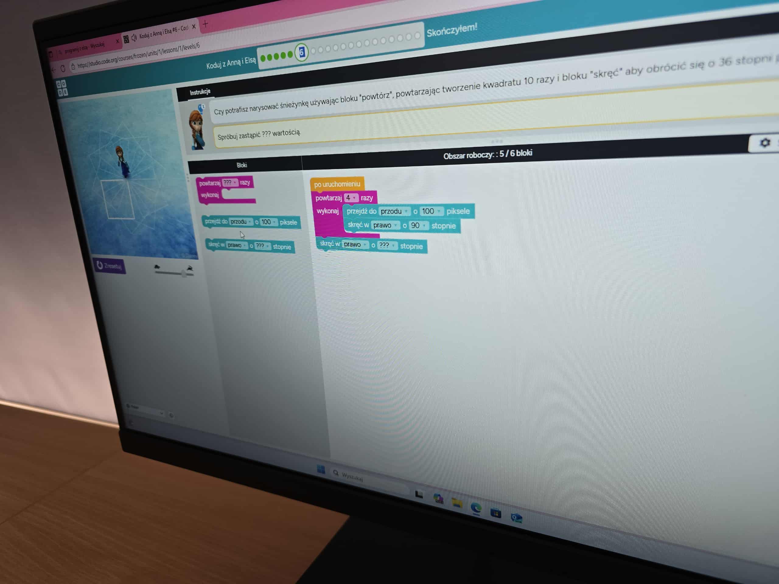 Największą frajdę sprawiło im tworzenie własnych animacji, w których Elza i Anna wykonywały różne zadania, np. przemieszczanie się po ekranie, rozwiązywanie zagadek czy zbieranie przedmiotów. Dzięki temu młodzi programiści nie tylko rozwijali zdolności analityczne i logiczne, ale także poznawali podstawy kodowania w zabawny i angażujący sposób.