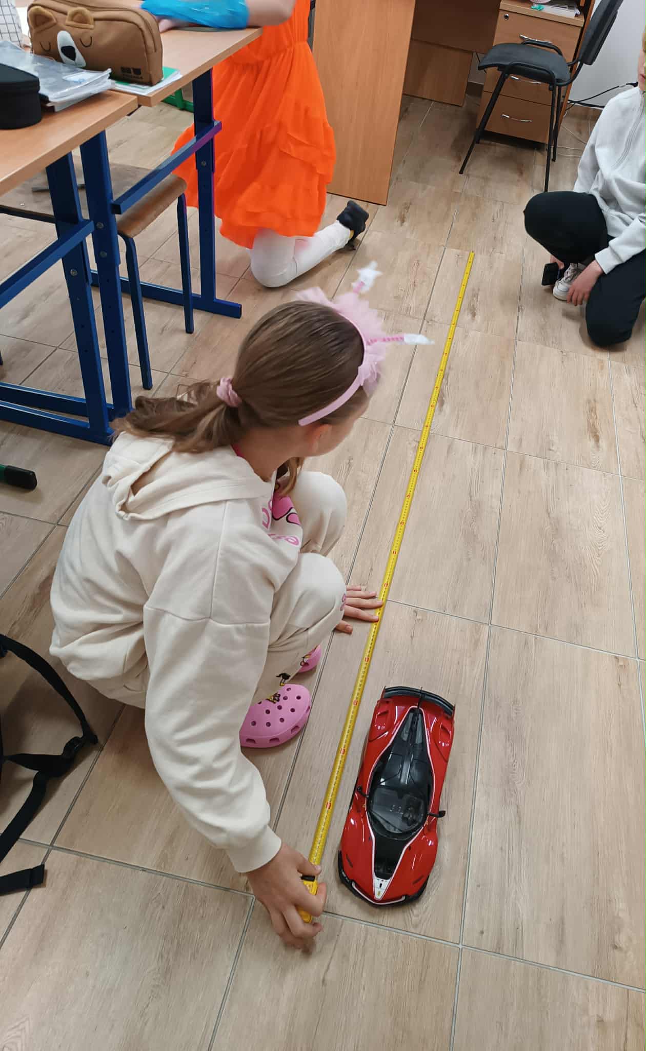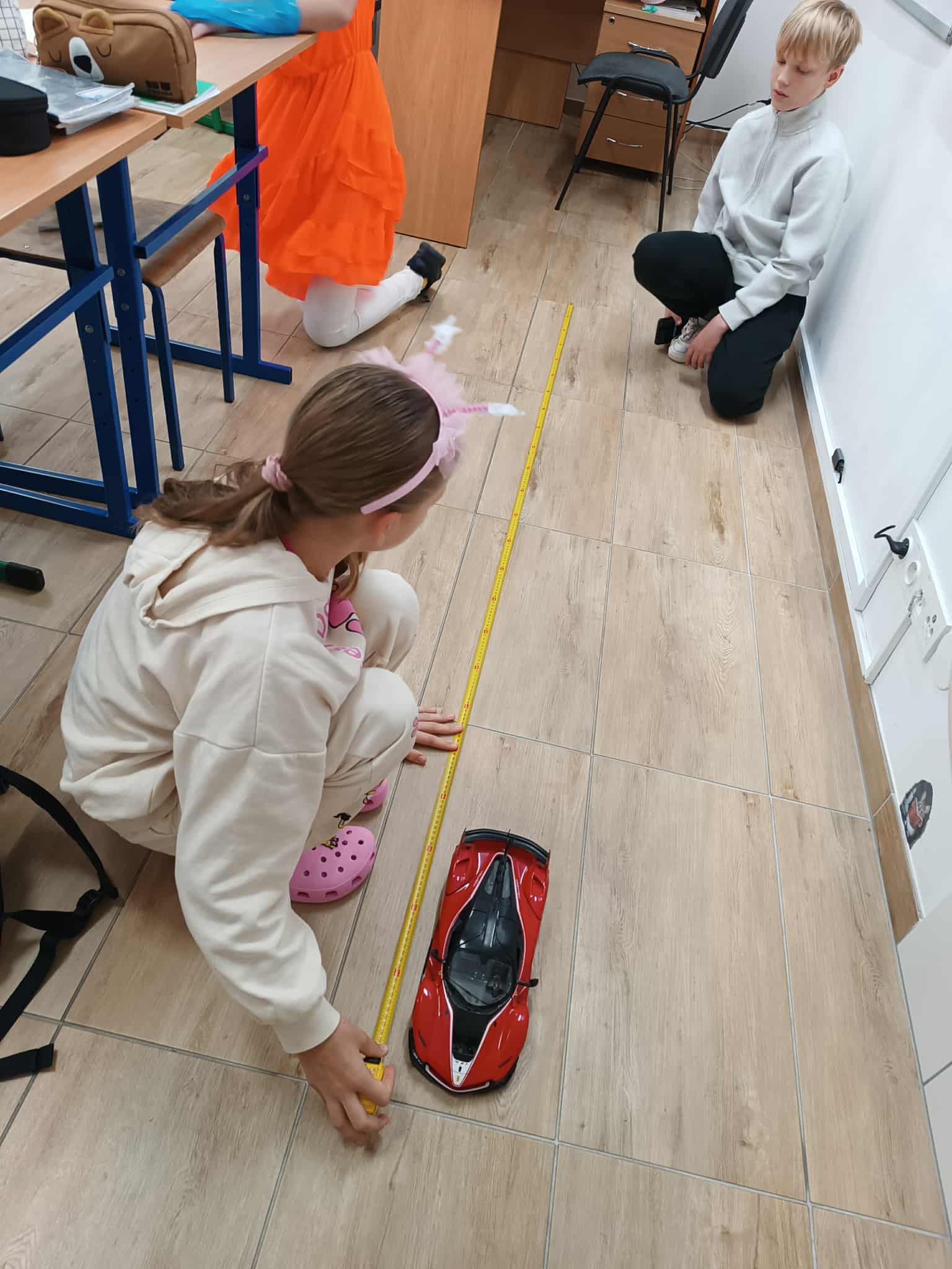 Uczniowie klasy 6 przeprowadzili bardzo ciekawe i angażujące doświadczenie matematyczne dotyczące wyznaczania prędkości. Wykorzystali do tego różne zabawki – samochodziki, myszki – co nadało lekcji praktyczny i jednocześnie zabawowy charakter. Zadaniem uczniów było mierzenie czasu przejazdu oraz porównywanie wyników, aby określić, które z zabawek poruszają się najszybciej. W trakcie pracy uczniowie wykazali się dużym zaangażowaniem, współpracą i umiejętnością logicznego myślenia. Starannie wykonywali pomiary, notowali rezultaty i wyciągali wnioski, dzięki czemu mogli zobaczyć, jak teoria o prędkości przekłada się na rzeczywiste doświadczenia. Zajęcia były dobrze zorganizowane, dynamiczne i atrakcyjne dla uczniów, a ich przebieg pokazał, że matematyka może być praktyczna, ciekawa i bliska codziennym sytuacjom. To wartościowa lekcja, która na długo zostanie w pamięci uczestników. SUPER klasa 6 ![]()