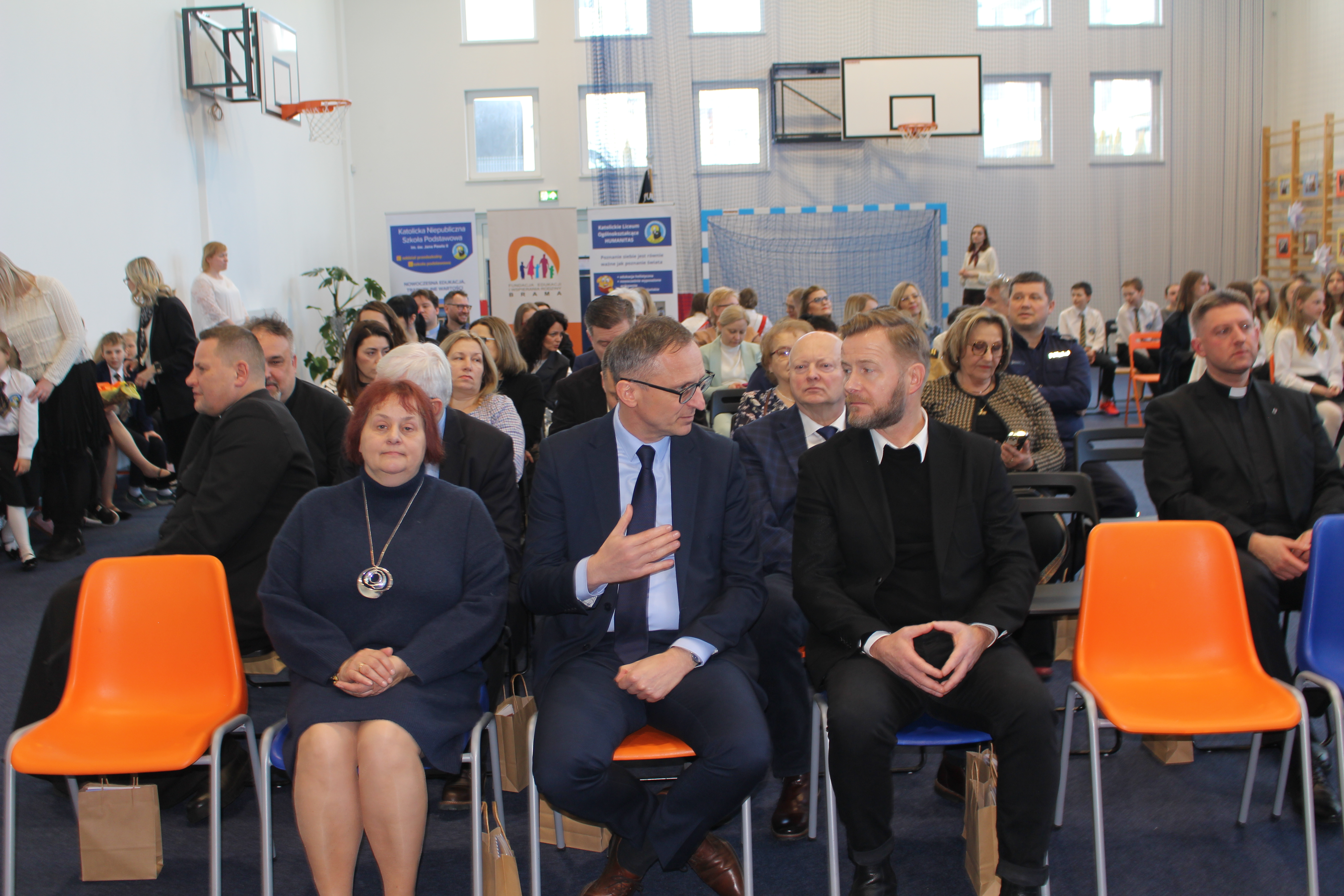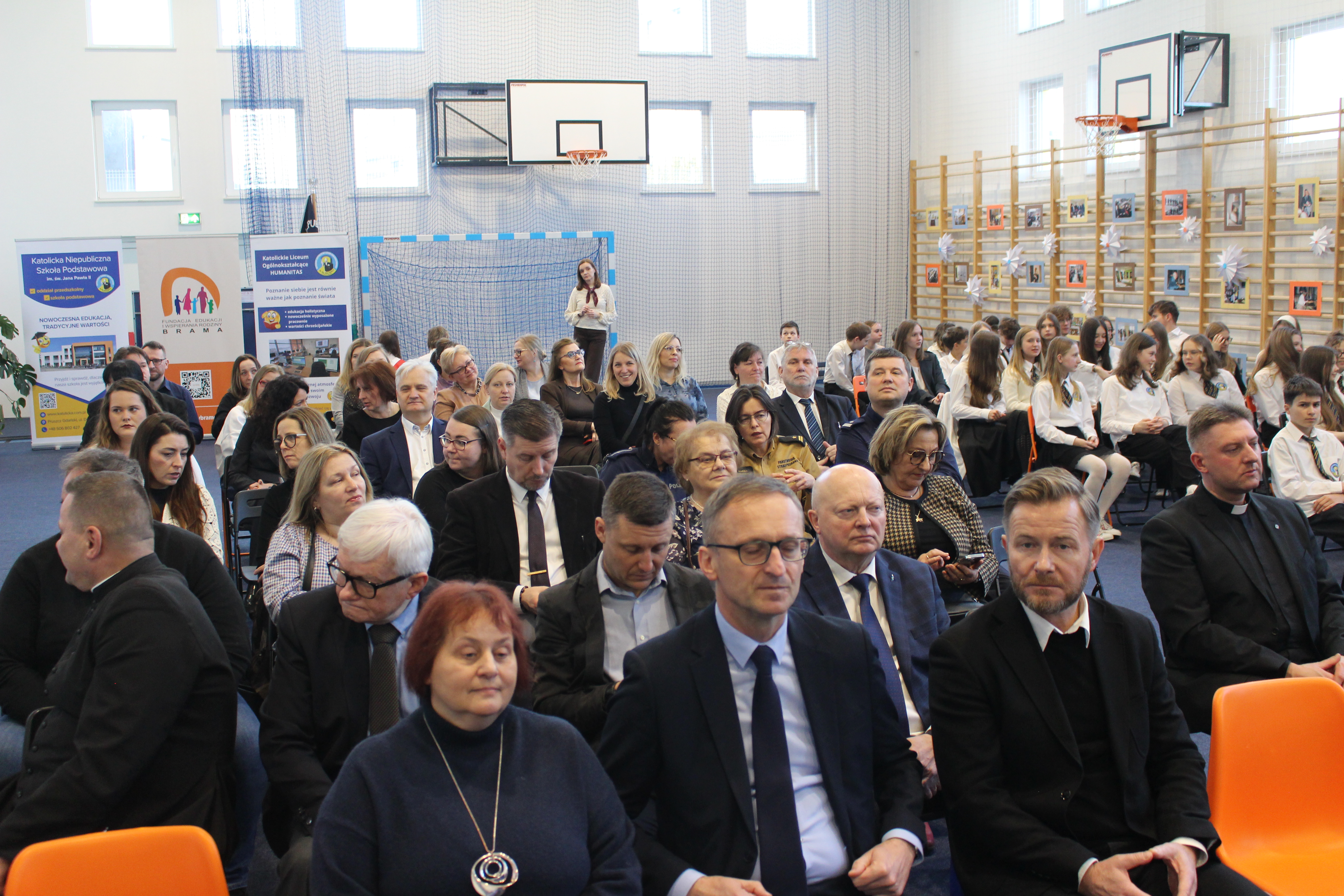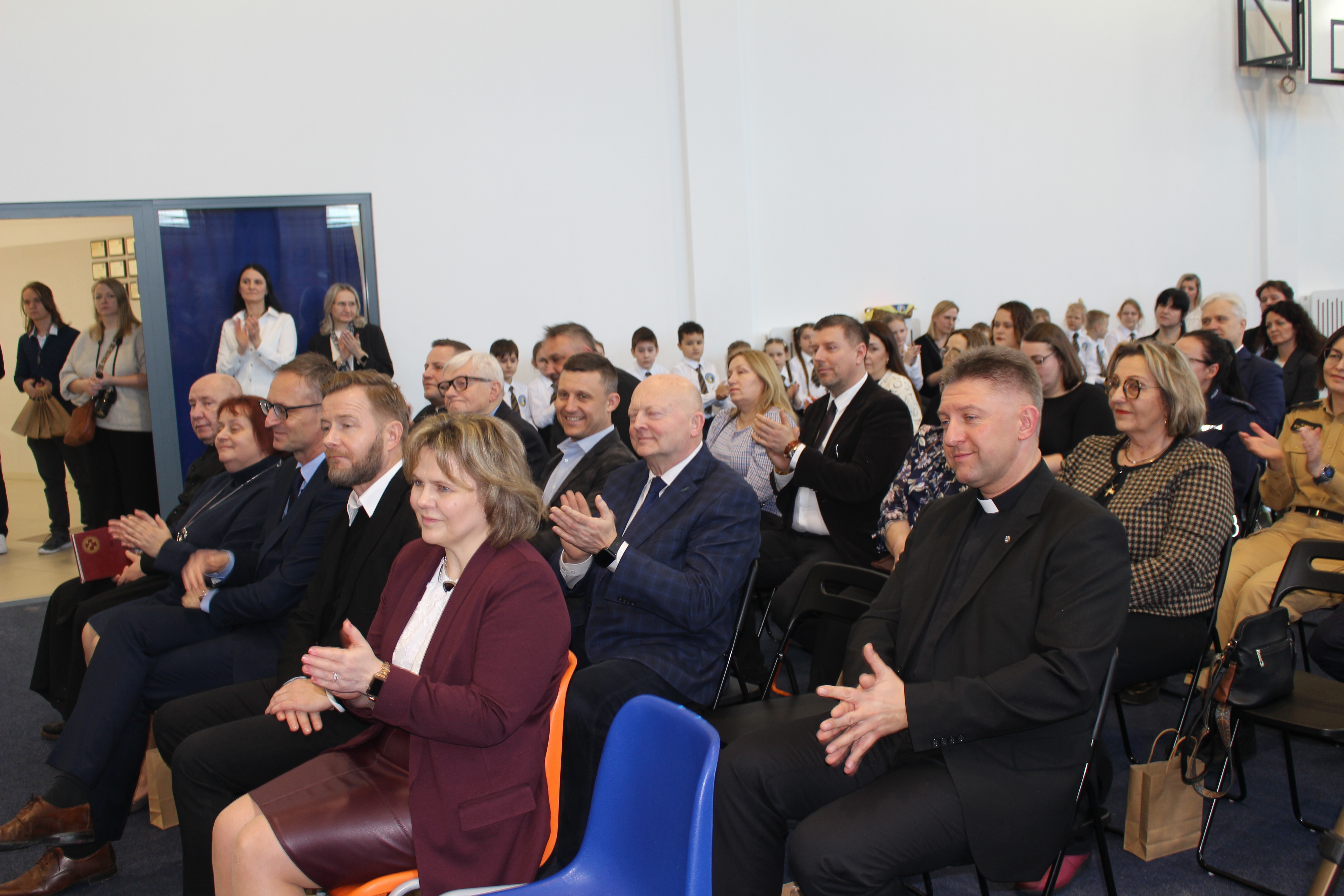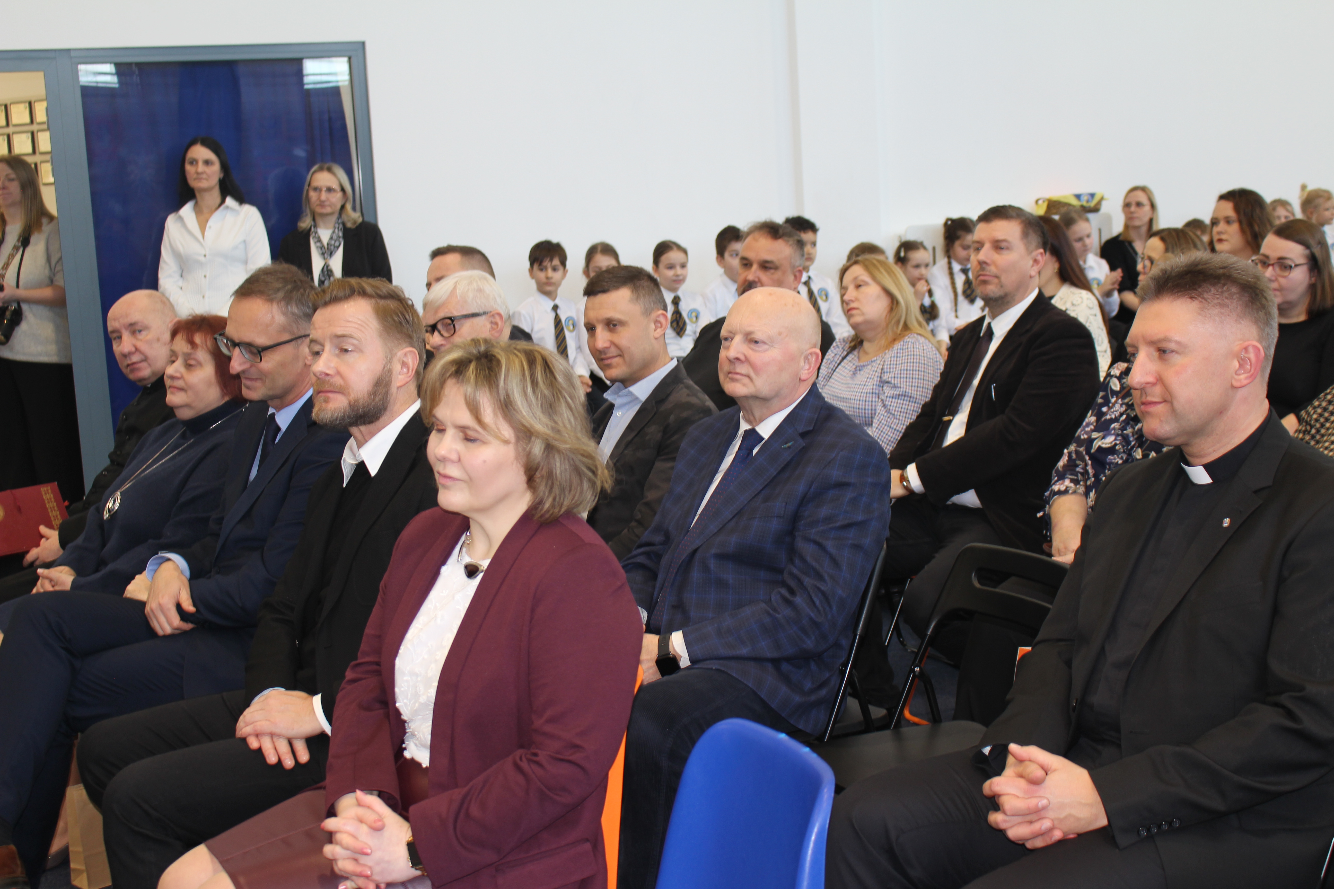 Następnie głos zabrali Pan Senator Ryszard Świlski, który w swoim przemówieniu podkreślił znaczenie inwestycji w edukację dla rozwoju regionu, oraz Pan Burmistrz Janusz Wróbel, który wyraził radość z pomyślnej realizacji projektu oraz dyrektor Wydziału Katechetycznego Kurii diec. gdańska ks. kanonik Krystian Wilczyński. Podkreślił wagę edukacji w duchu wartości chrześcijańskich i życzył uczniom i nauczycielom wielu sukcesów.
