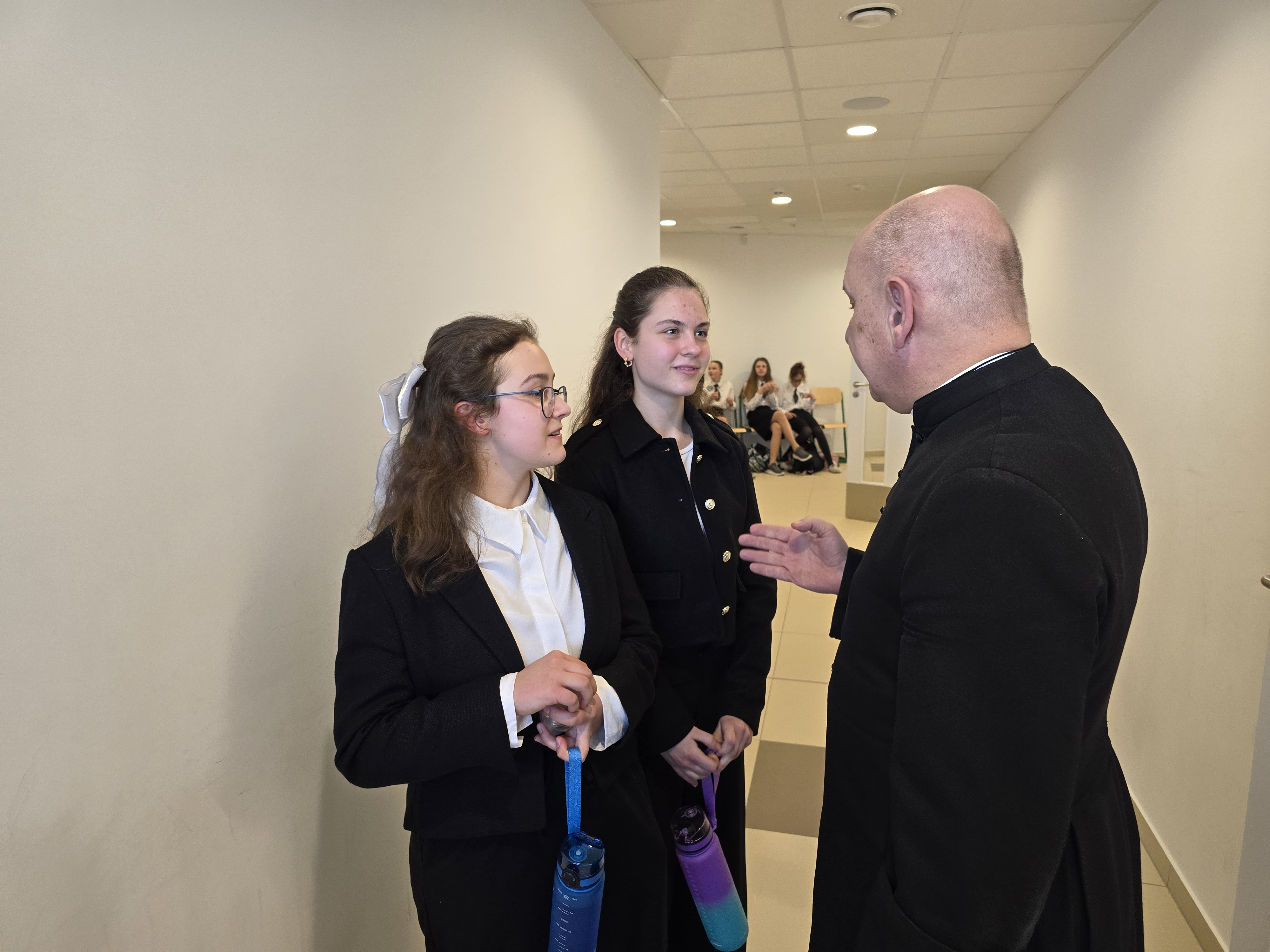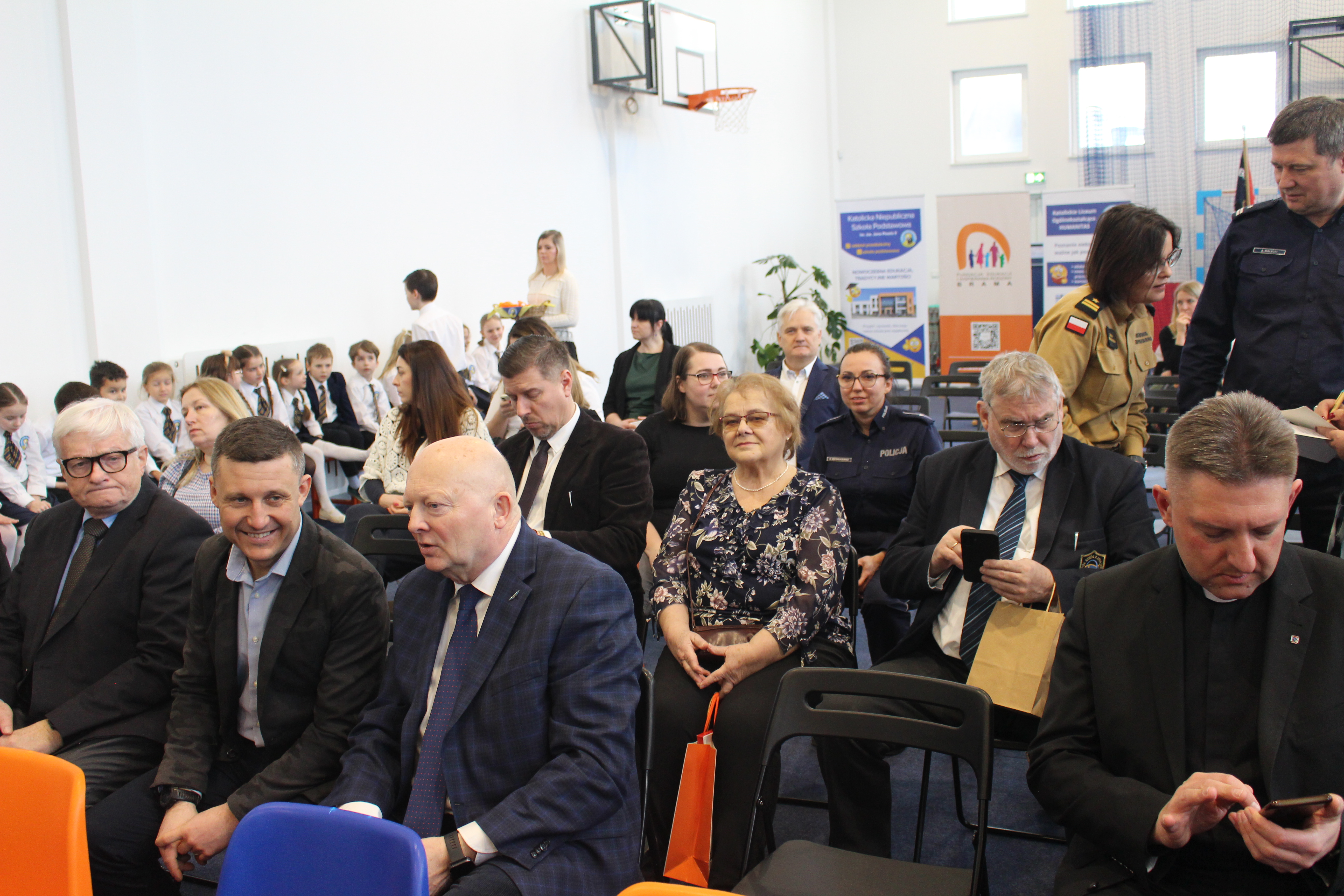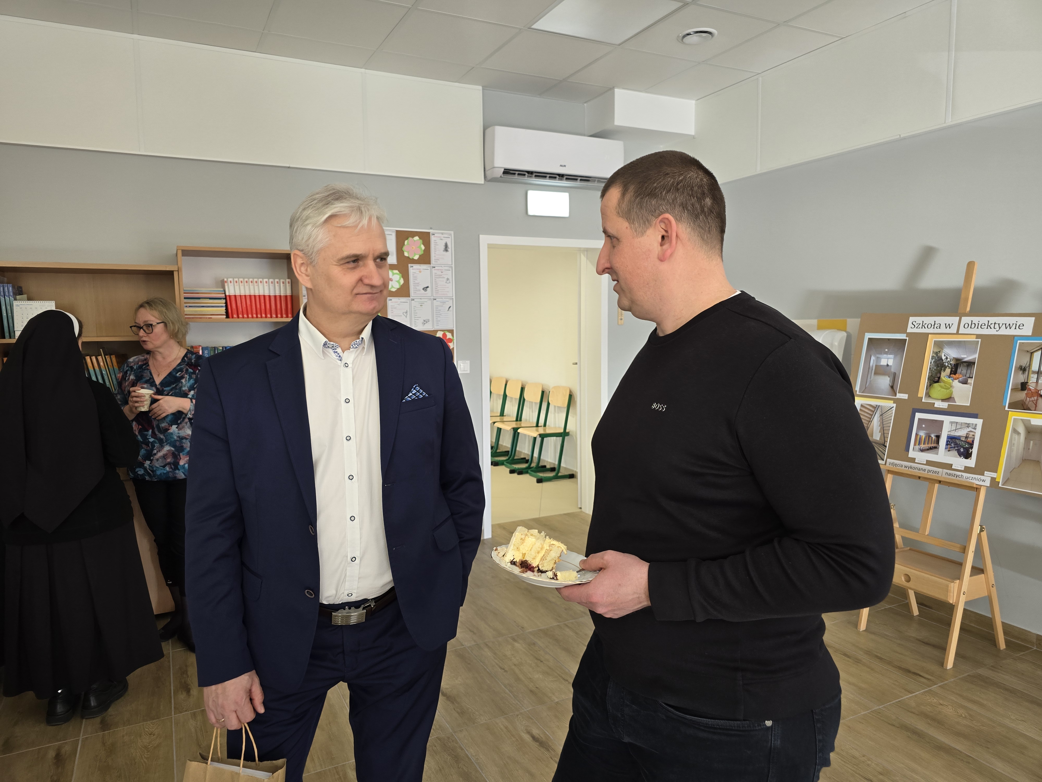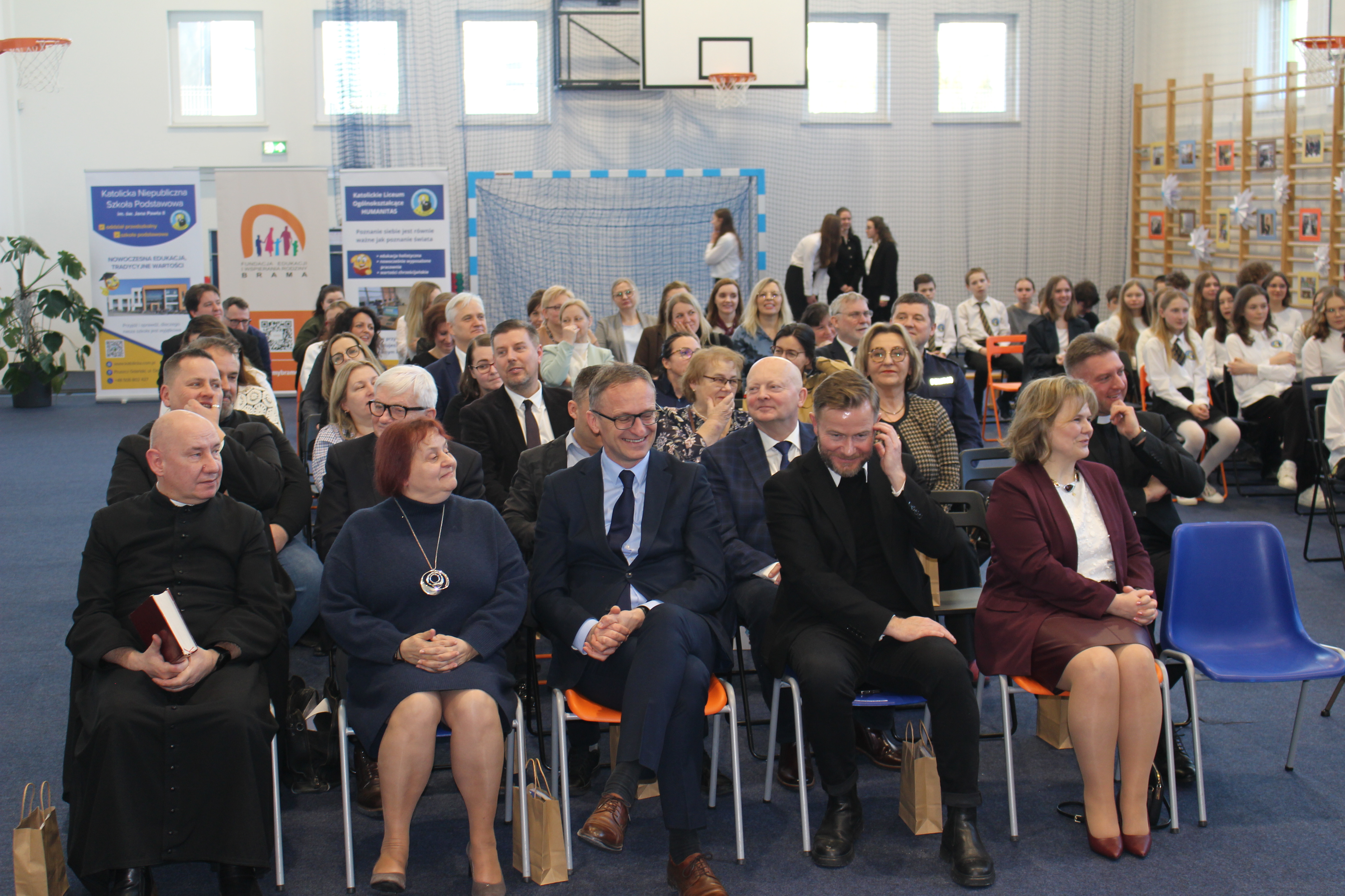 Następnie głos zabrali Pan Senator Ryszard Świlski, który w swoim przemówieniu podkreślił znaczenie inwestycji w edukację dla rozwoju regionu, oraz Pan Burmistrz Janusz Wróbel, który wyraził radość z pomyślnej realizacji projektu oraz dyrektor Wydziału Katechetycznego Kurii diec. gdańska ks. kanonik Krystian Wilczyński. Podkreślił wagę edukacji w duchu wartości chrześcijańskich i życzył uczniom i nauczycielom wielu sukcesów.