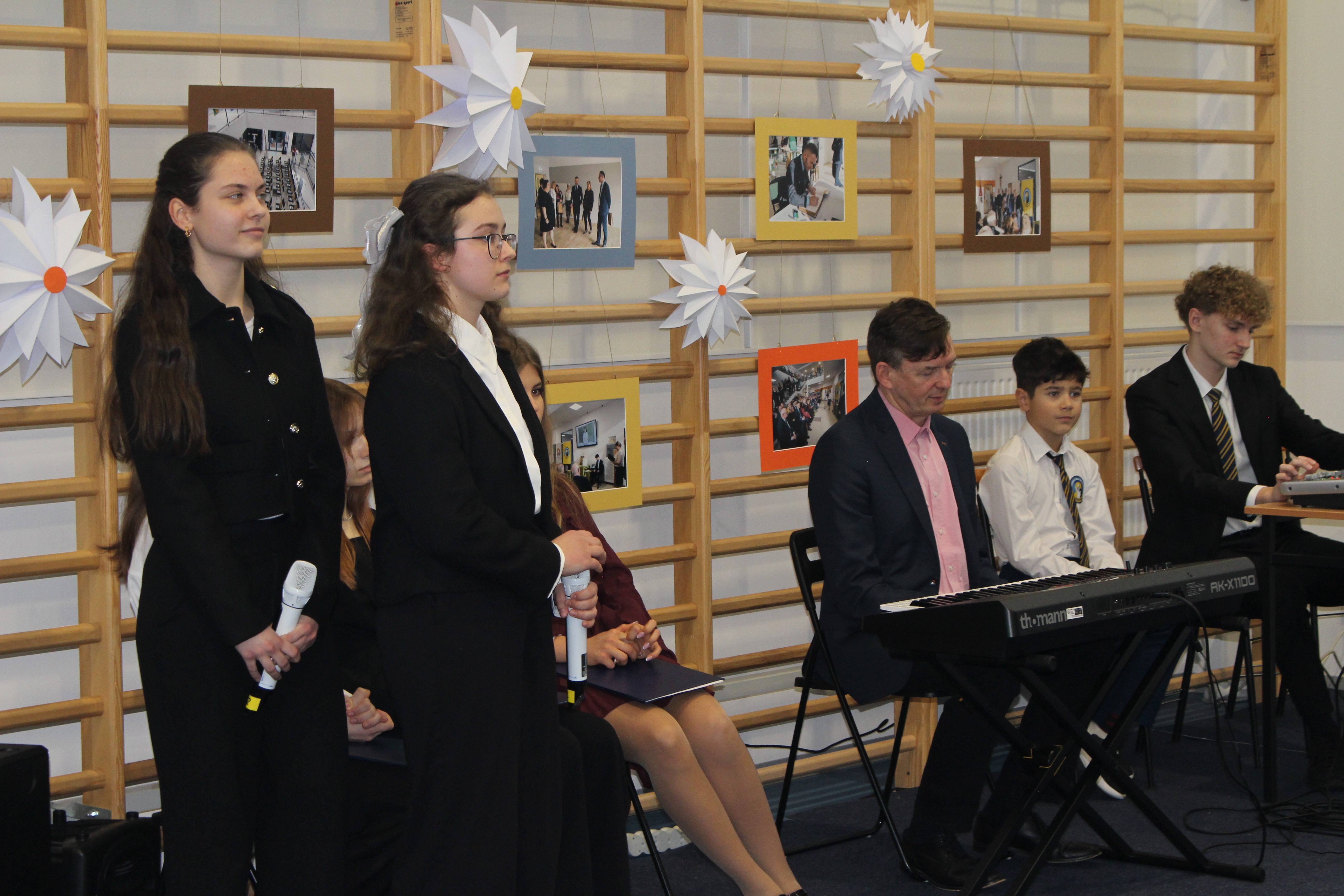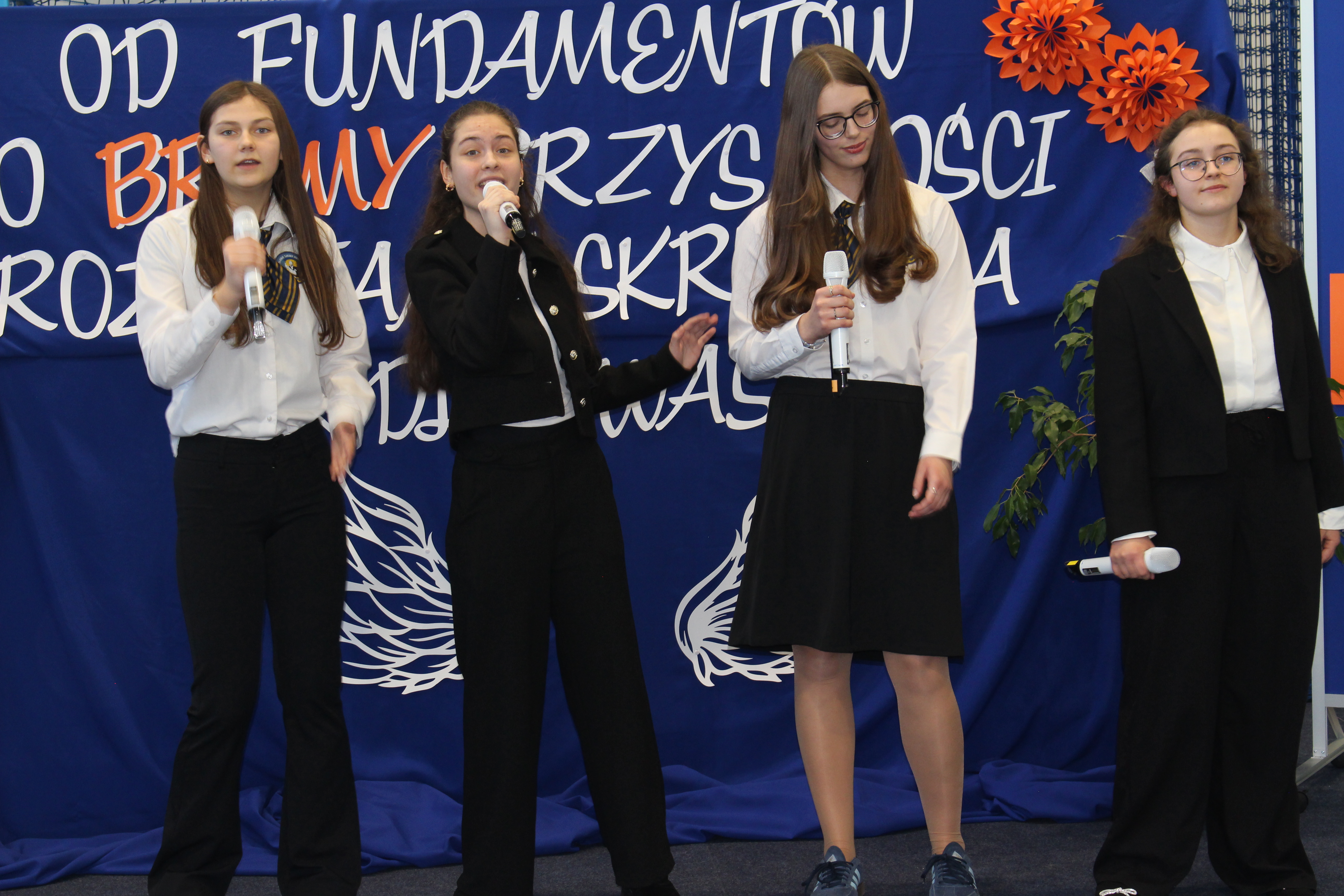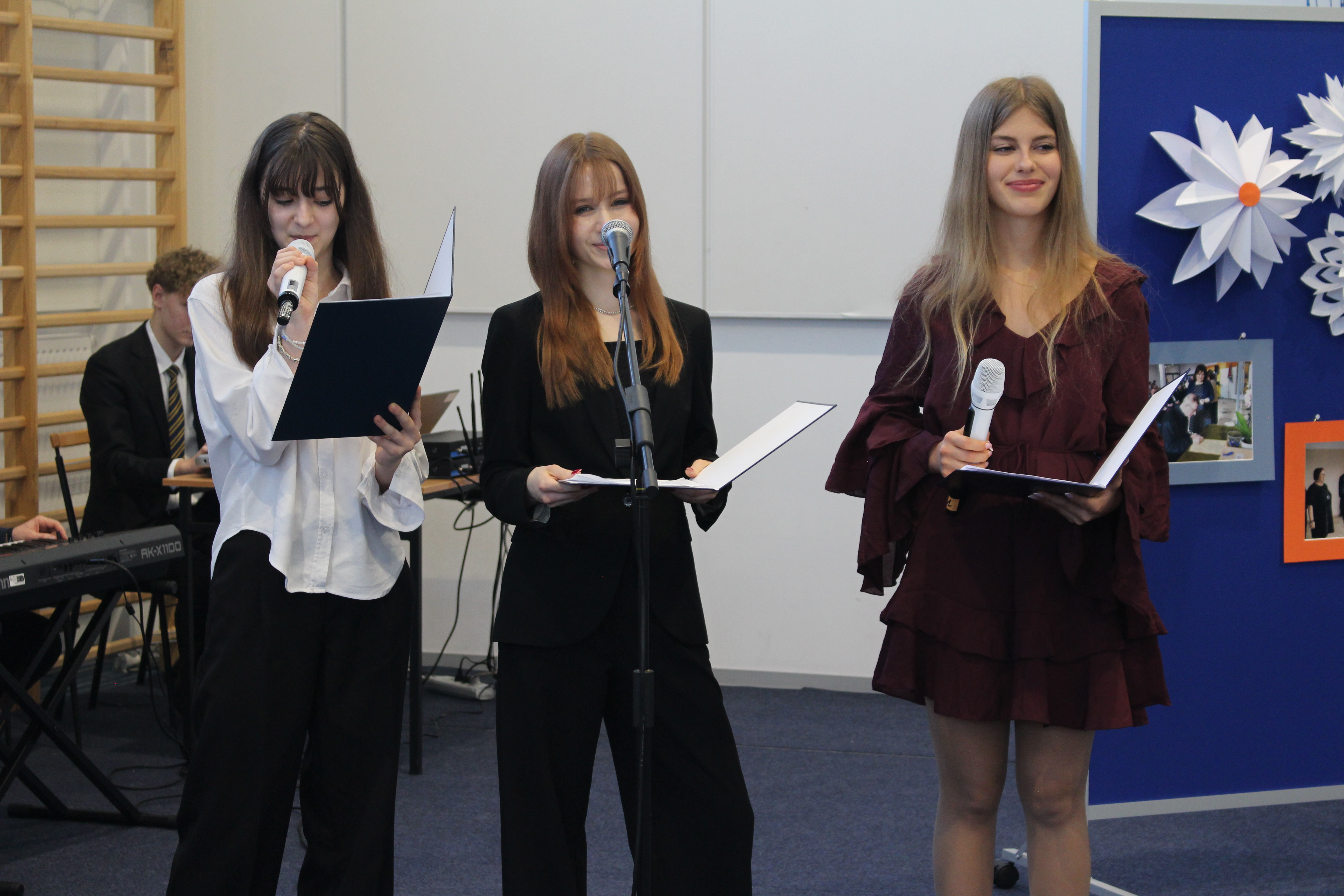 Po oficjalnych przemówieniach przyszedł czas na część artystyczną, która zachwyciła wszystkich obecnych. Zuzia i Julia z klasy 8 oraz Julia z 2 LO i Diana z 3 LO zaprezentowały przepiękny repertuar wokalny, który poruszył serca wszystkich zgromadzonych. Ich talent i zaangażowanie były wspaniałym dopełnieniem uroczystości.