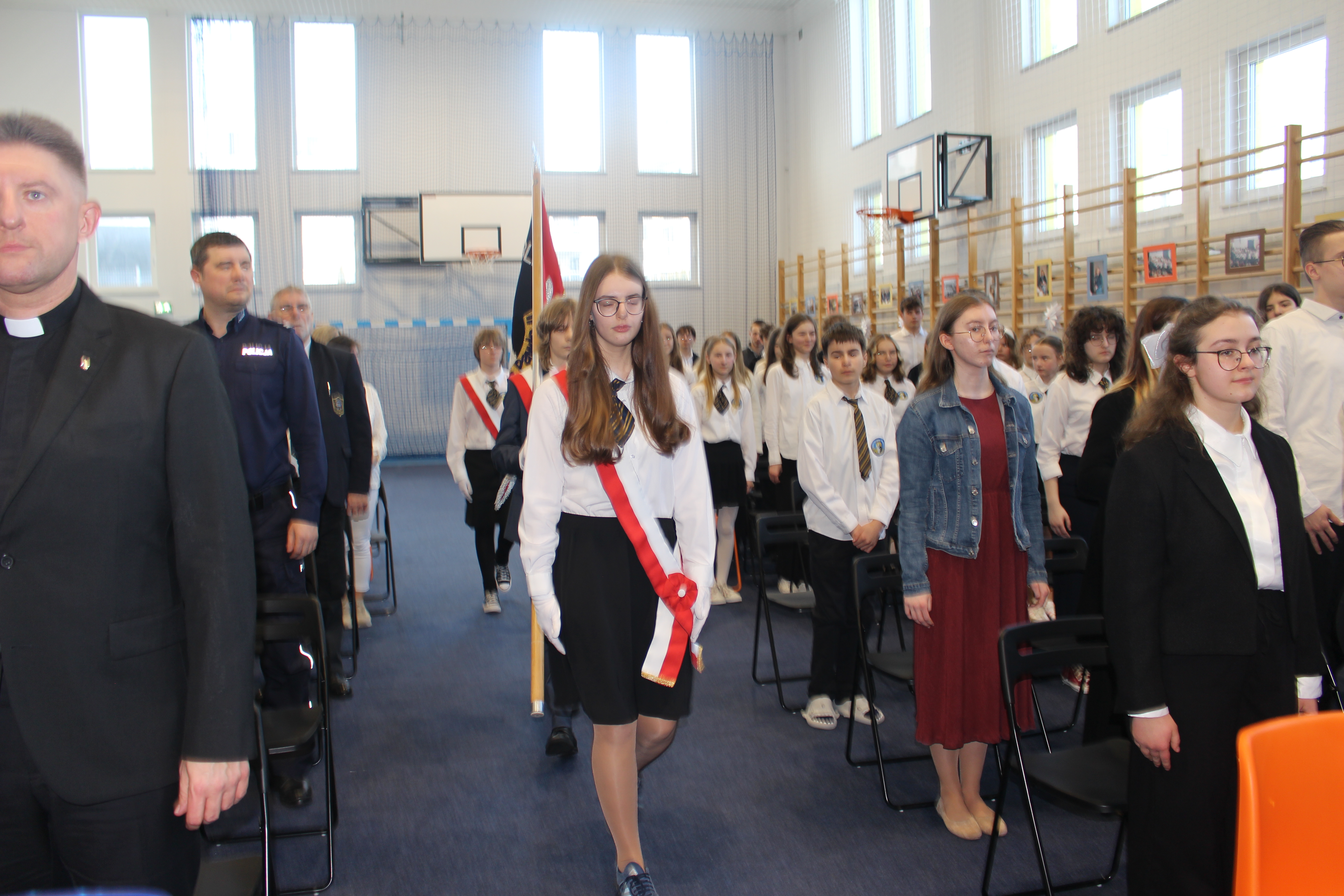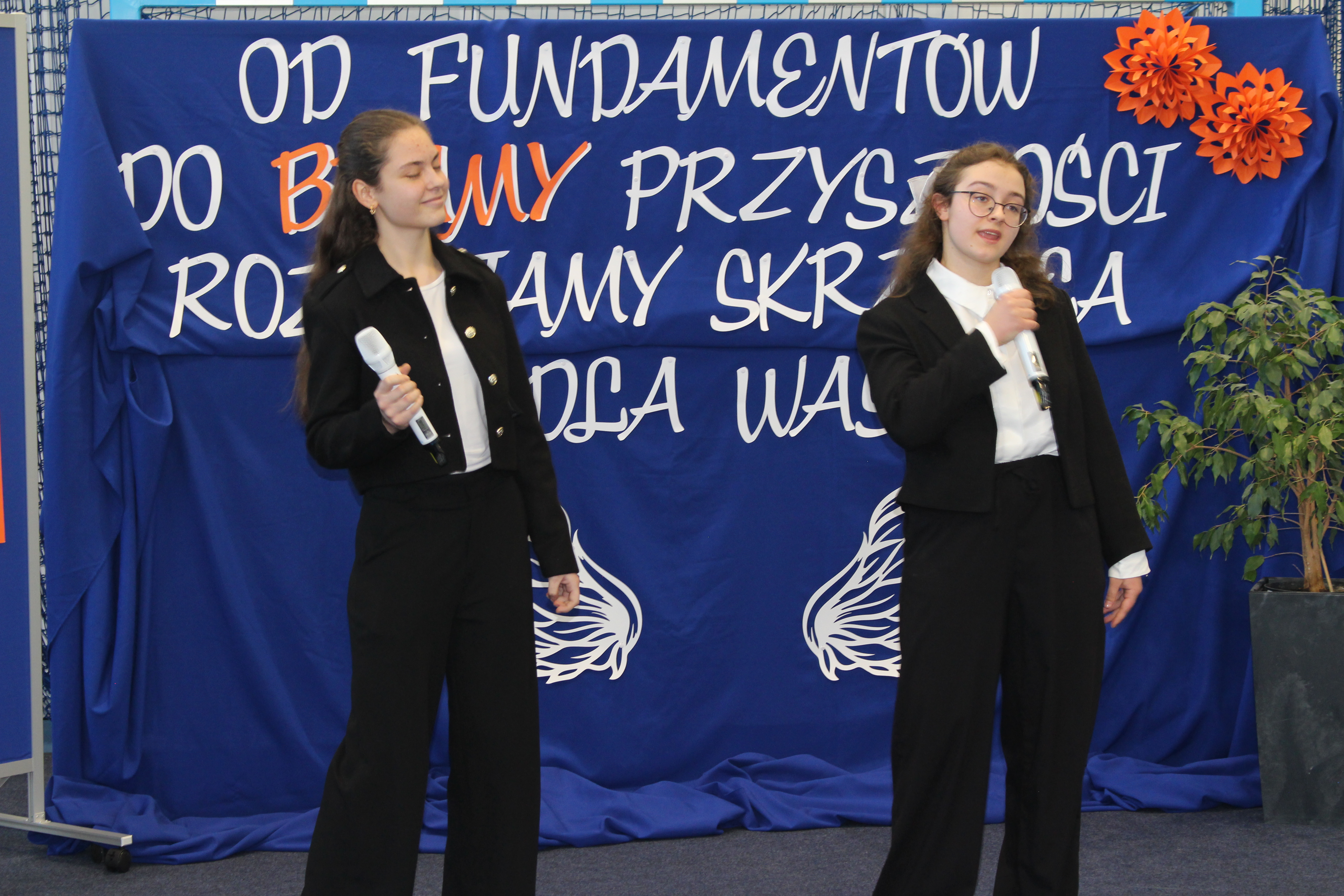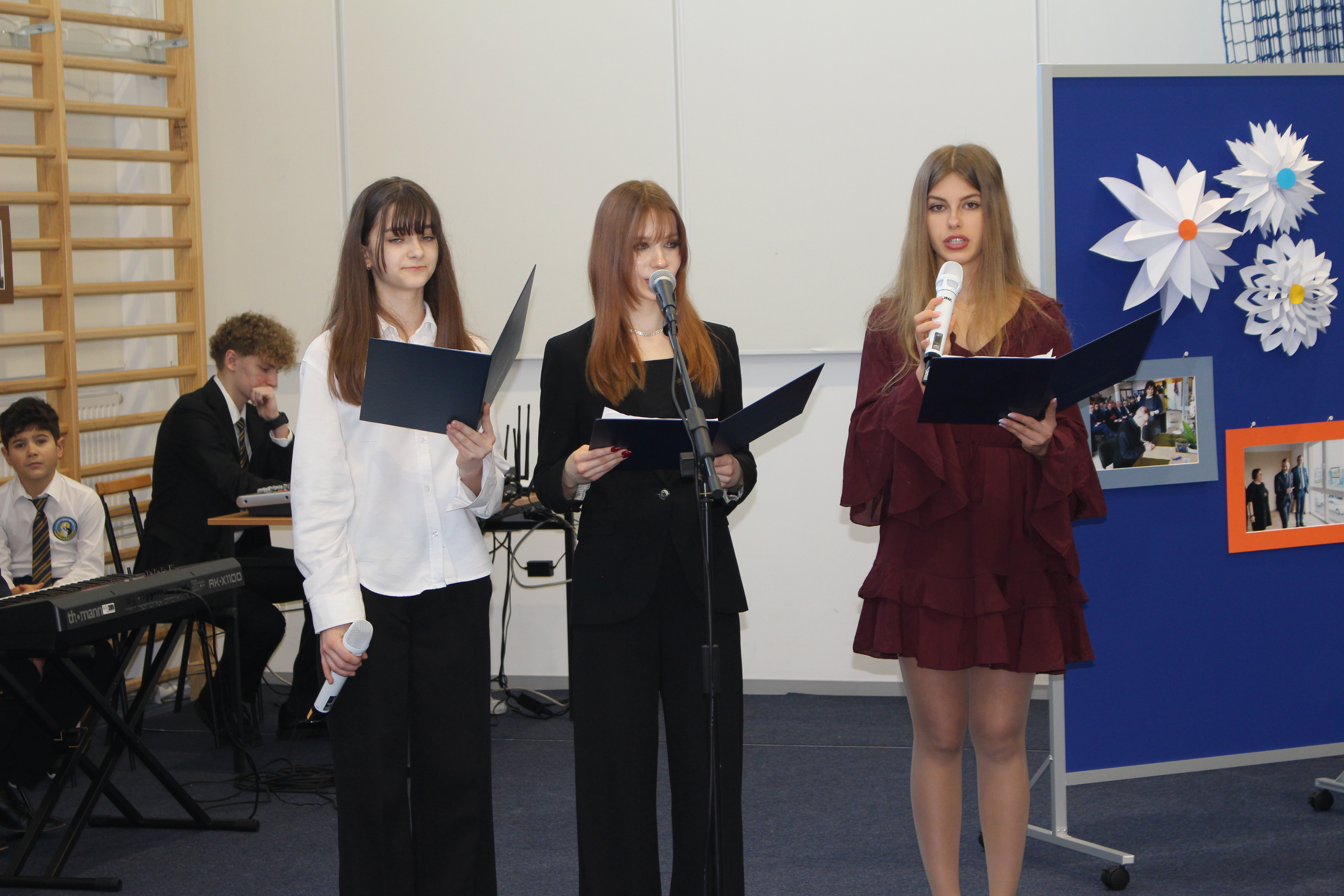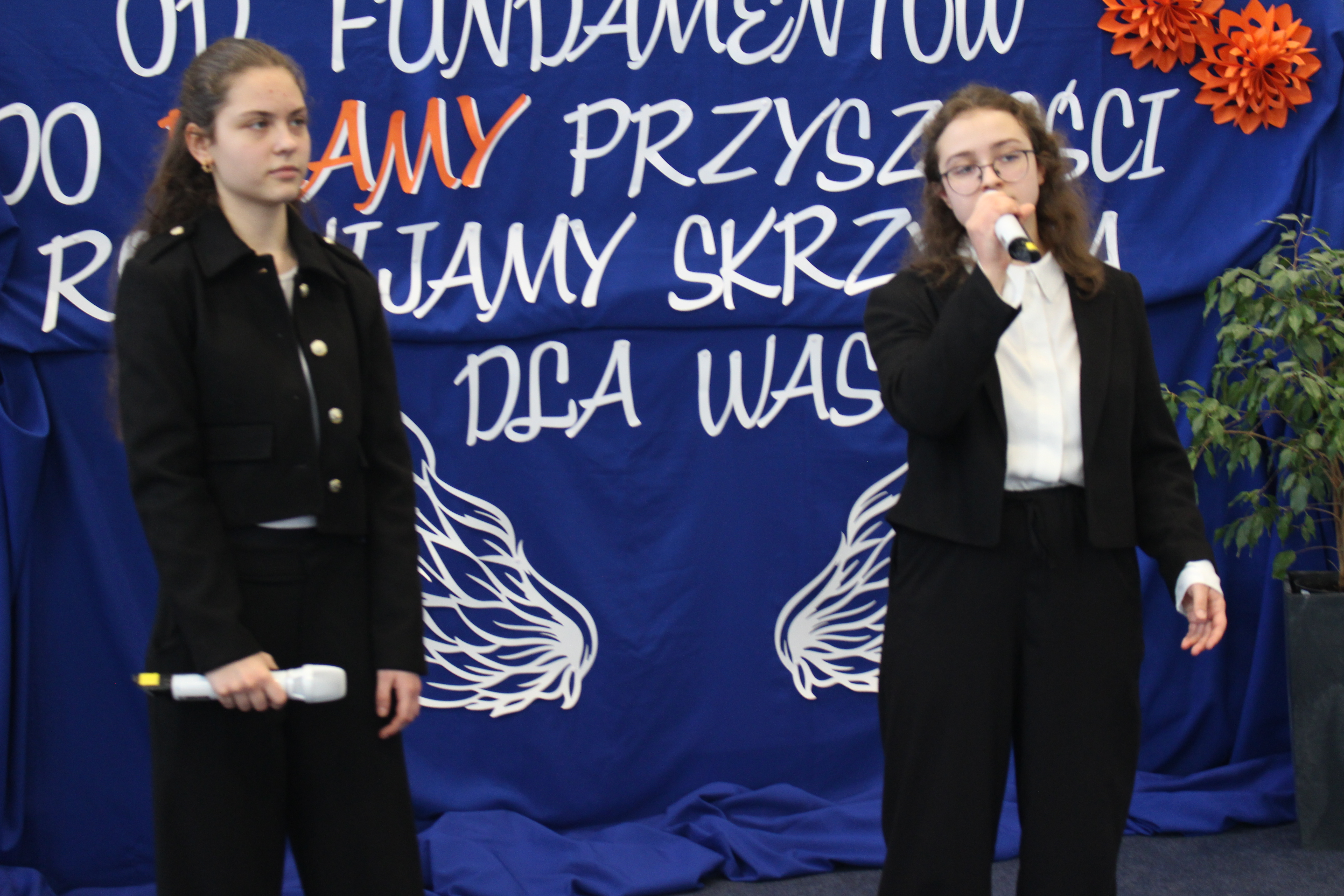 Po oficjalnych przemówieniach przyszedł czas na część artystyczną, która zachwyciła wszystkich obecnych. Zuzia i Julia z klasy 8 oraz Julia z 2 LO i Diana z 3 LO zaprezentowały przepiękny repertuar wokalny, który poruszył serca wszystkich zgromadzonych. Ich talent i zaangażowanie były wspaniałym dopełnieniem uroczystości.