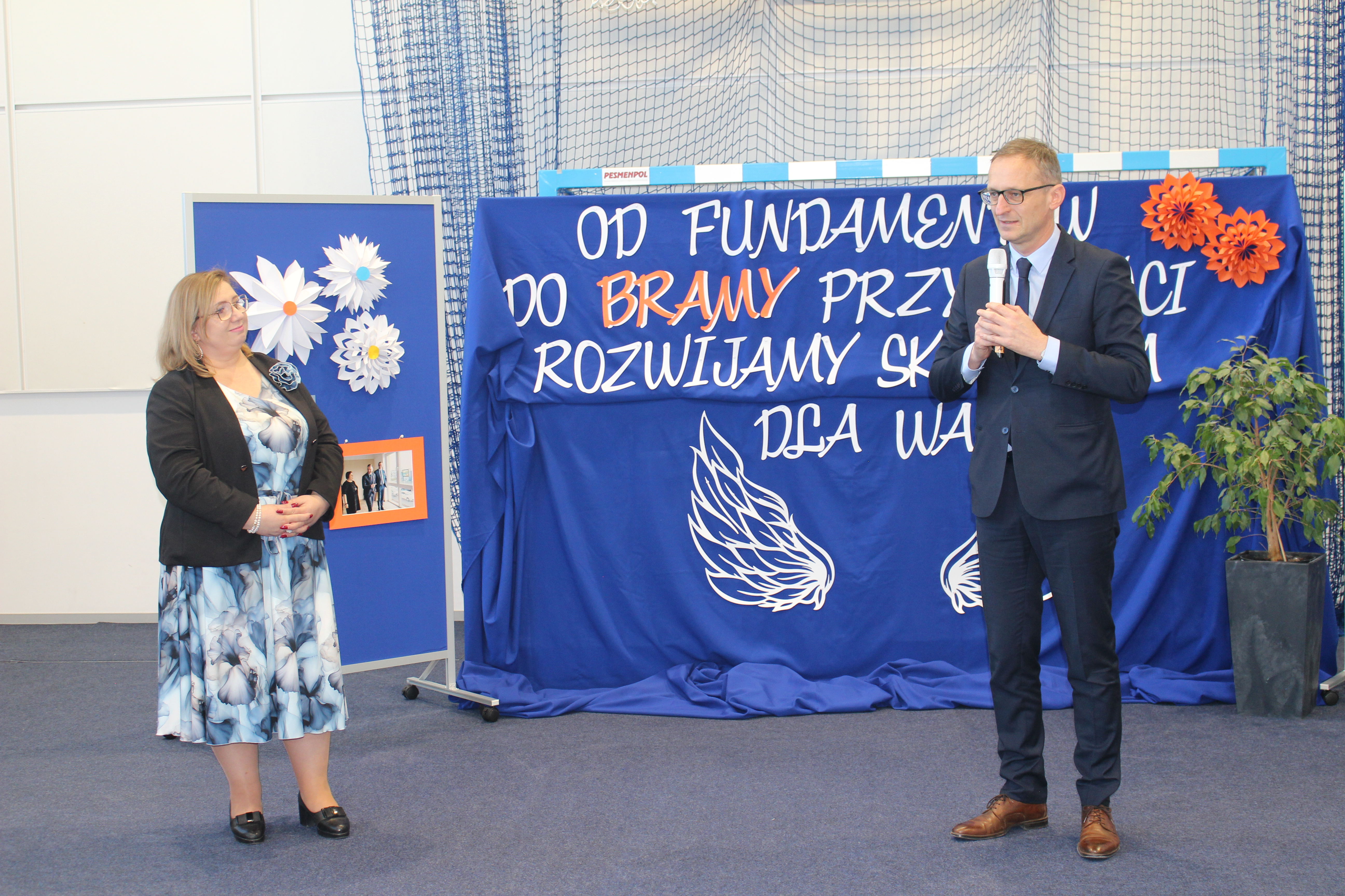 Część oficjalną rozpoczęła Pani Dyrektor Iwona Jakubek, która serdecznie powitała wszystkich zebranych i wyraziła głębokie podziękowania dla wszystkich, którzy przyczynili się do powstania nowego skrzydła. Pani Dyrektor podkreśliła wagę tej inwestycji dla przyszłości szkoły i edukacji w naszej społeczności.