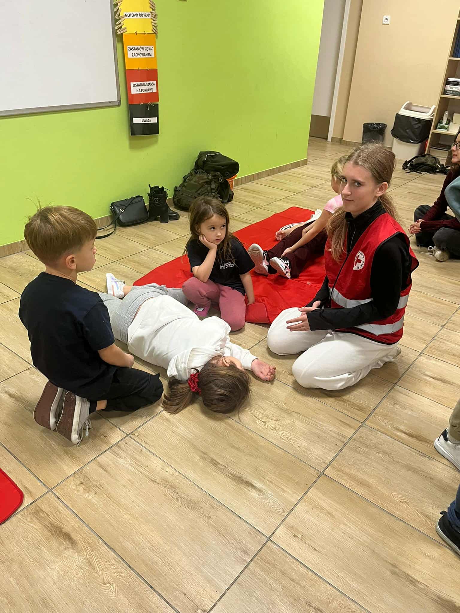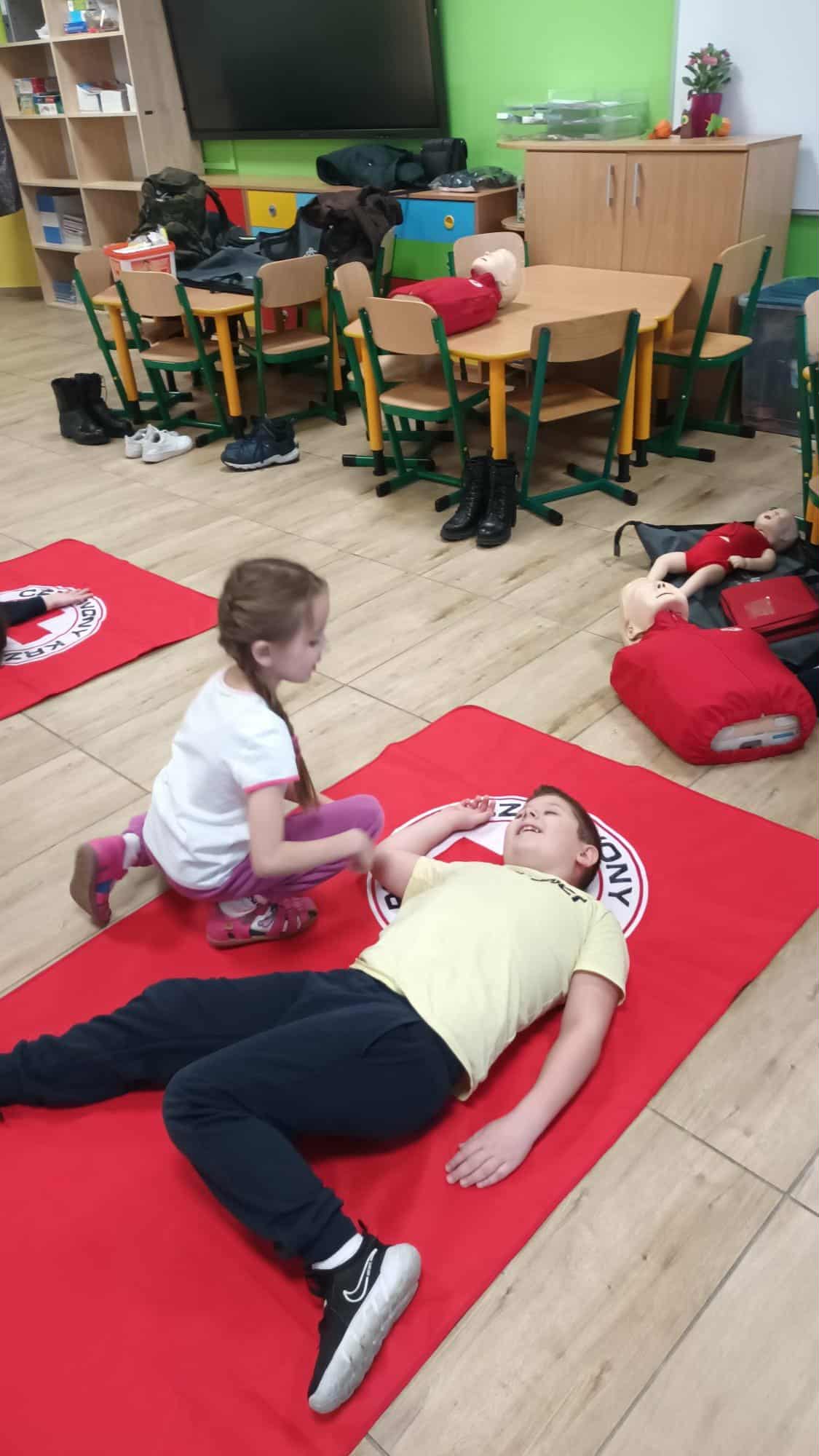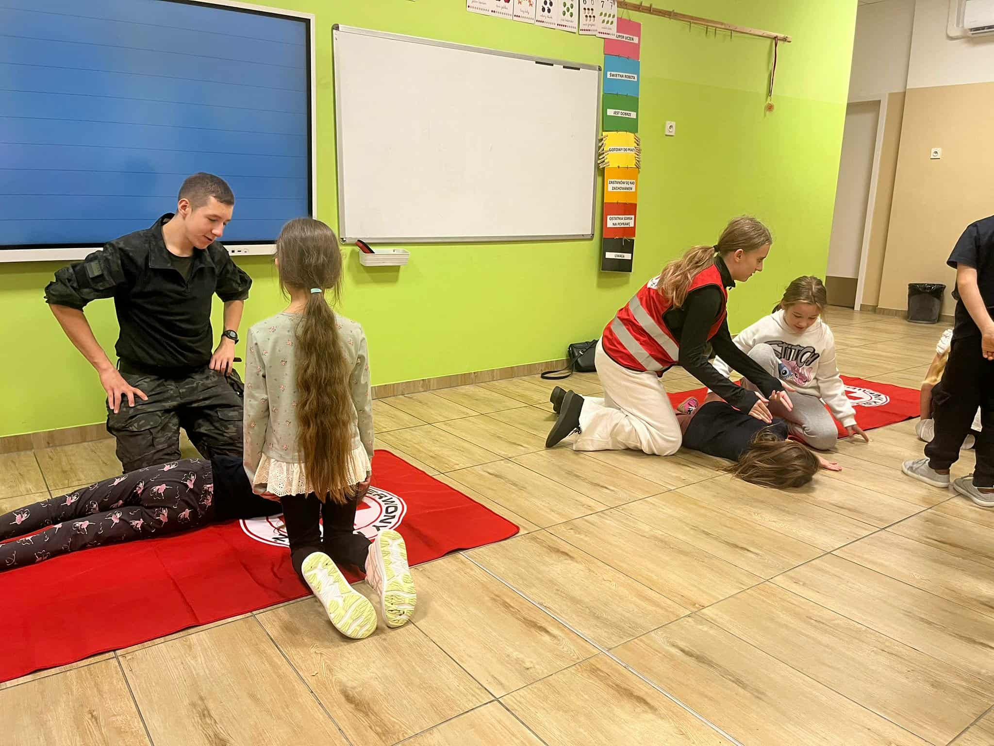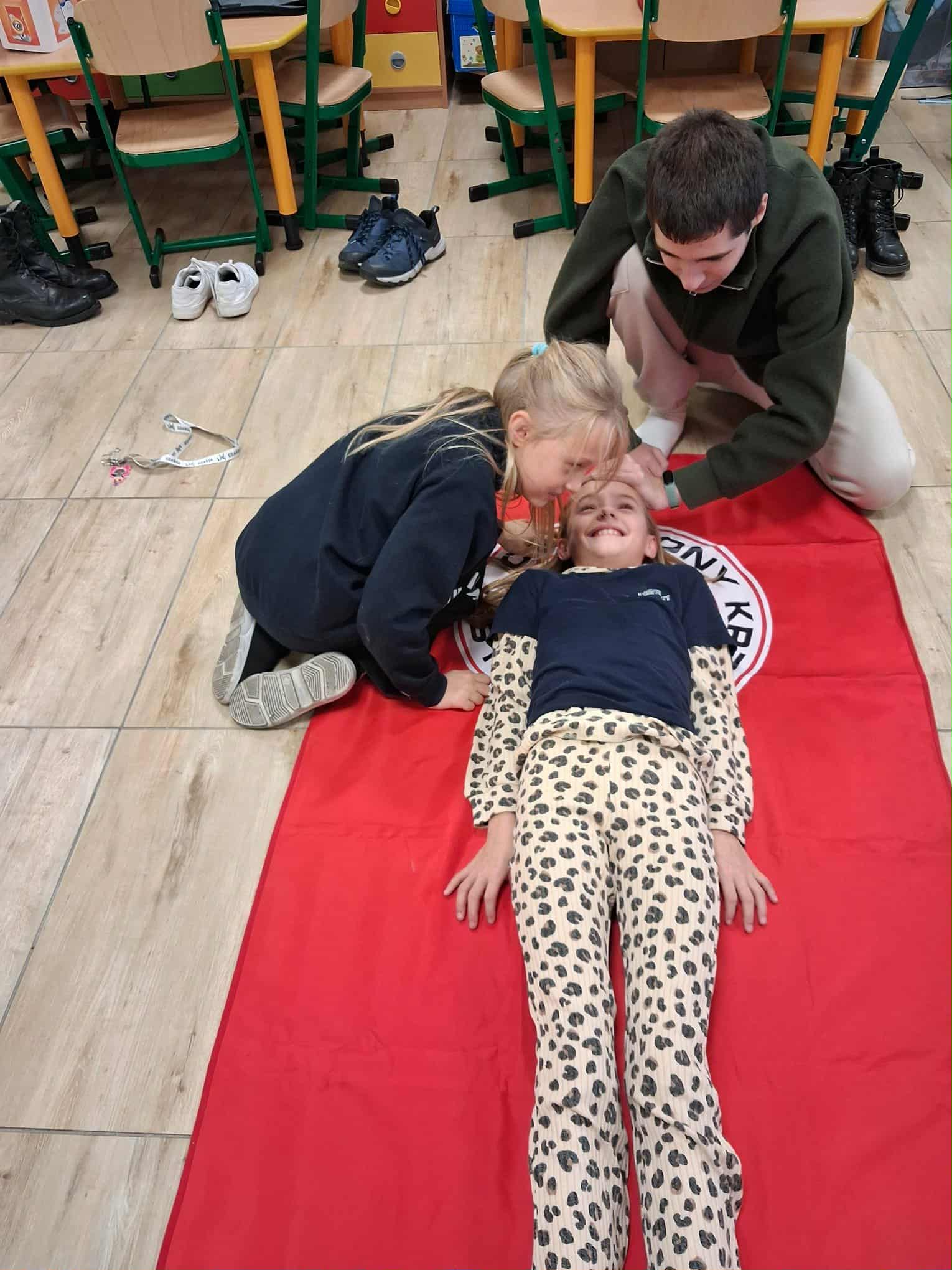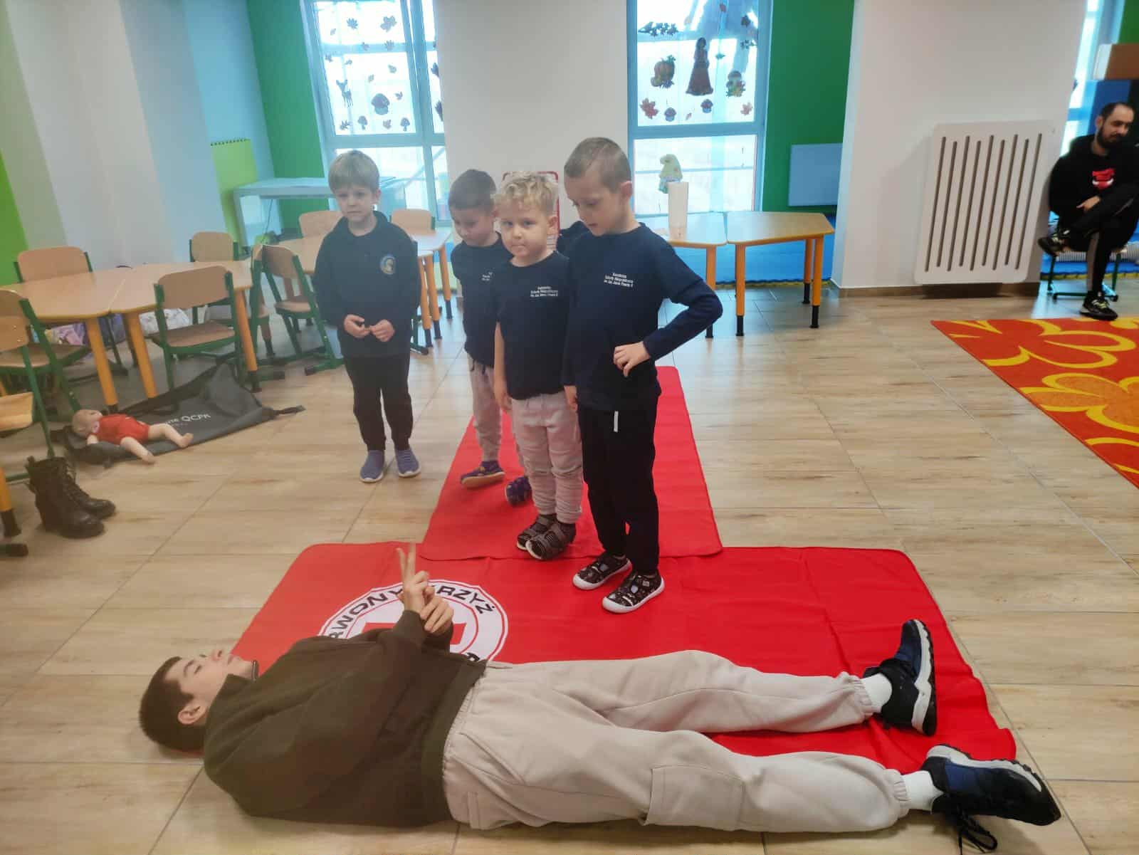 Dzieci z ogromnym zaangażowaniem uczestniczyły w zajęciach i wykonywały wszystkie polecenia bardzo dokładnie. Dowiedziały się między innymi, jak sprawdzić oddech i puls, jak wezwać pomoc, a także jak udzielić pierwszej pomocy w przypadku skaleczeń, zadławienia czy omdlenia, a nawet jak ułożyć osobę w bezpiecznej pozycji do przyjazdu ratowników.