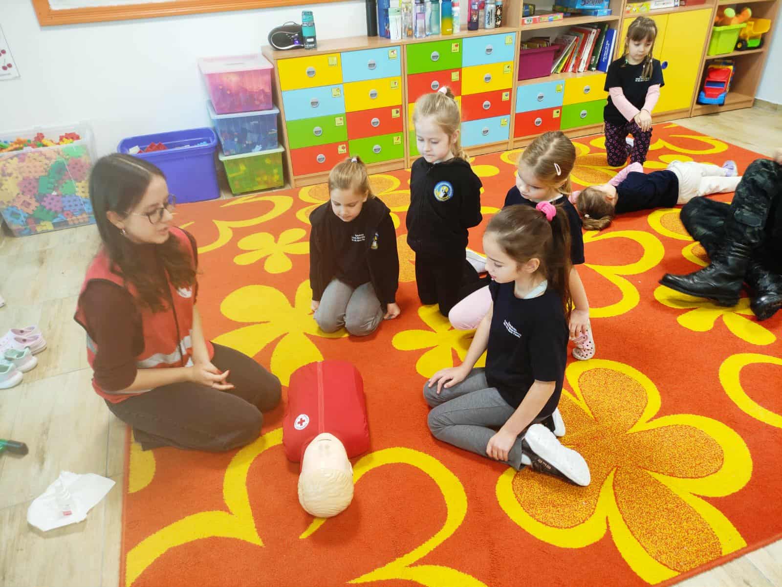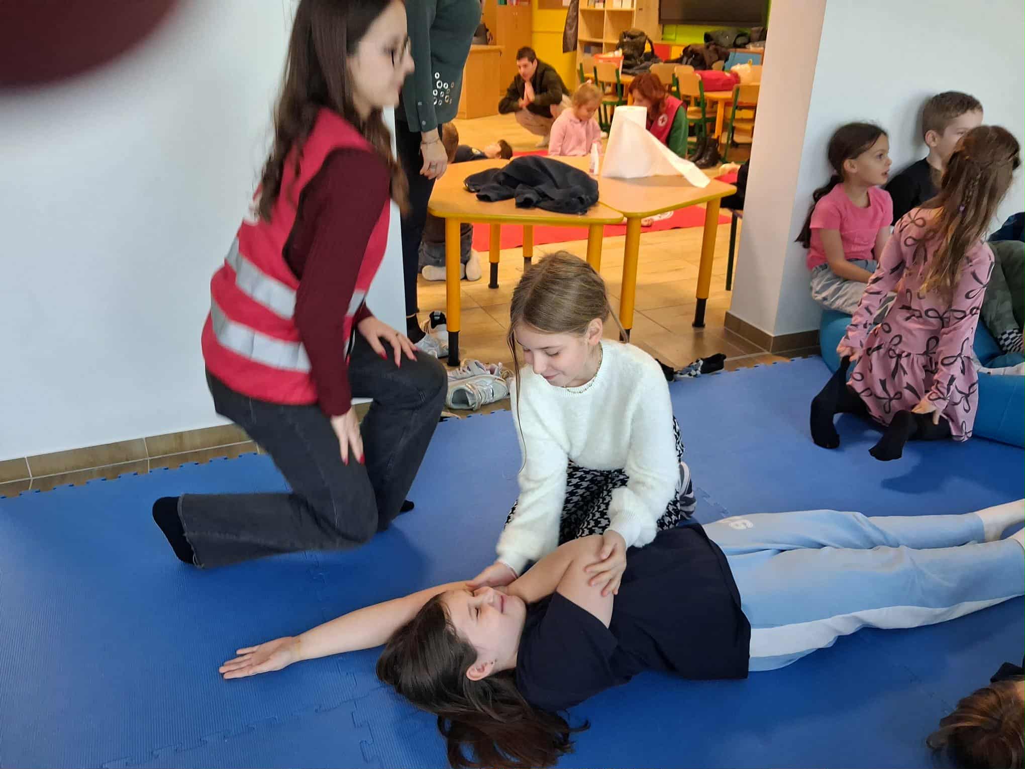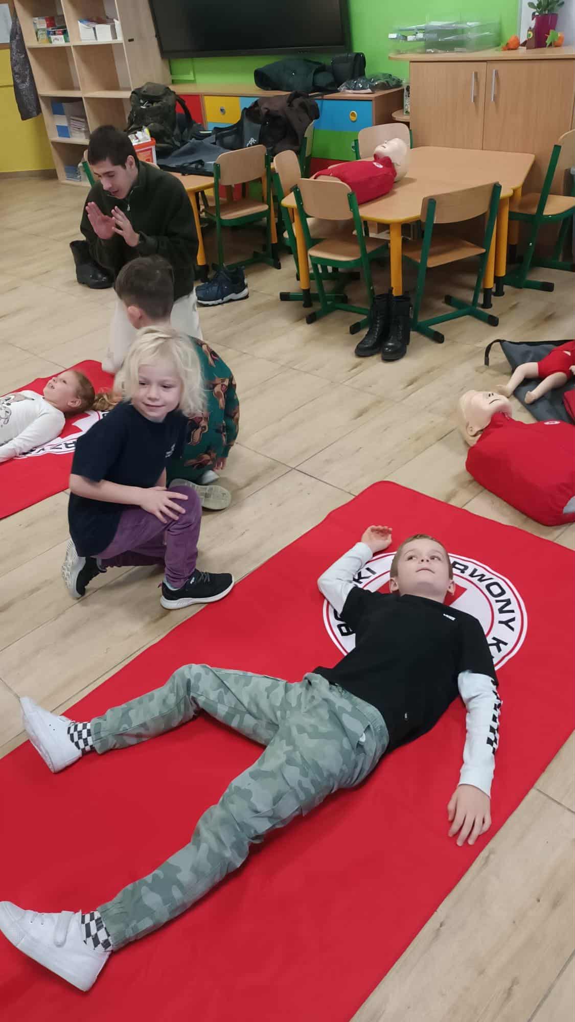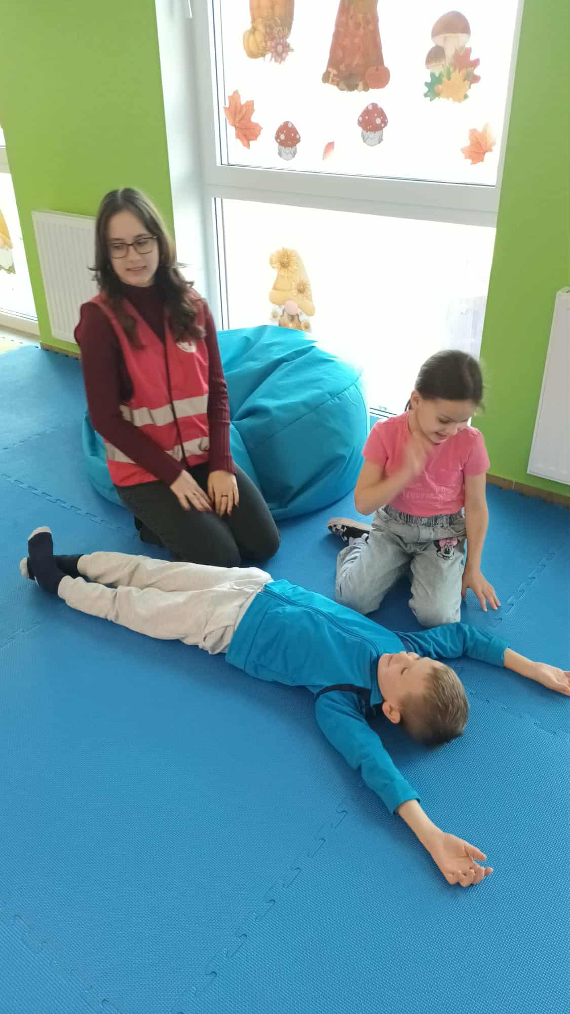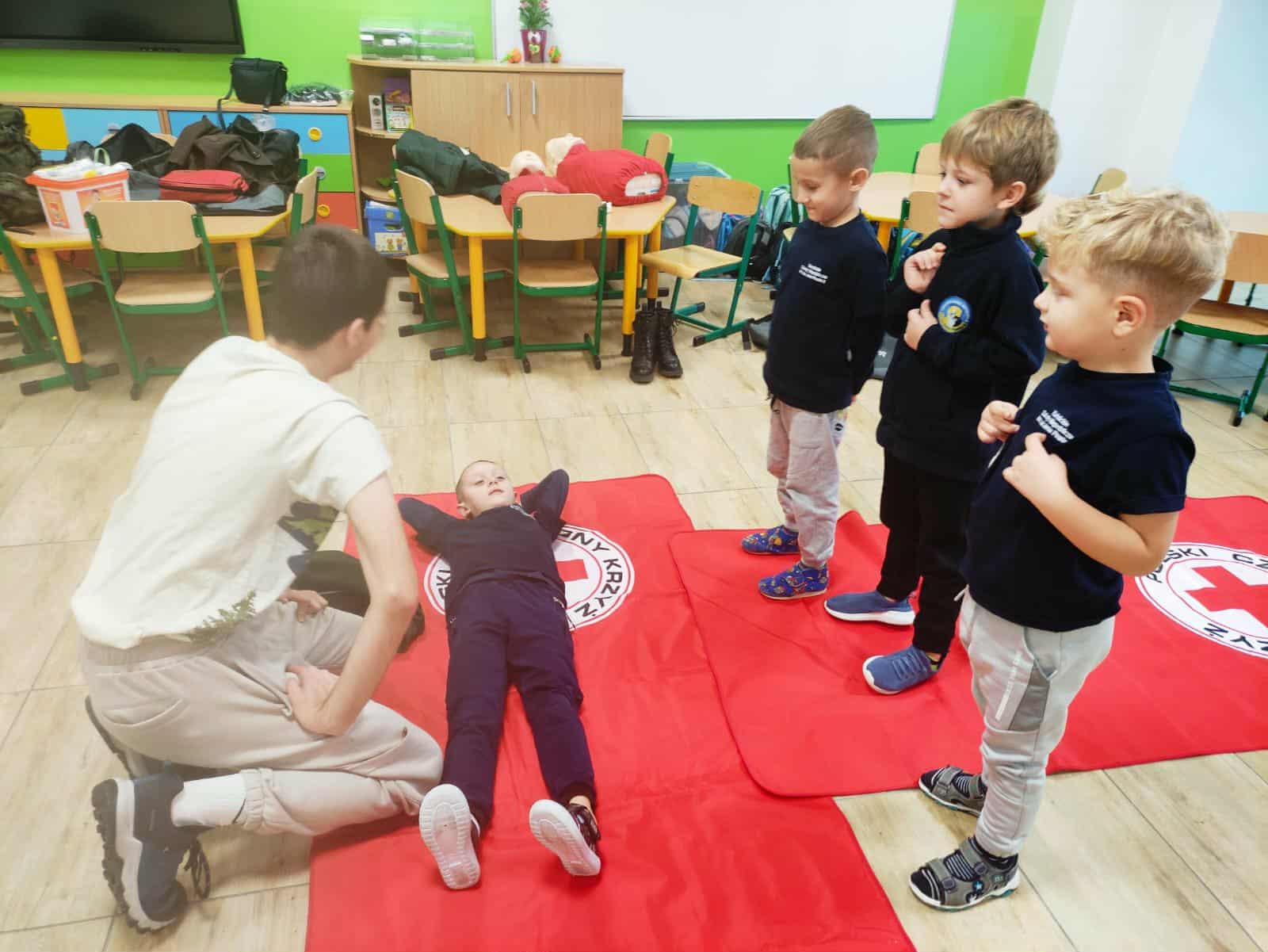 Dzieci z ogromnym zaangażowaniem uczestniczyły w zajęciach i wykonywały wszystkie polecenia bardzo dokładnie. Dowiedziały się między innymi, jak sprawdzić oddech i puls, jak wezwać pomoc, a także jak udzielić pierwszej pomocy w przypadku skaleczeń, zadławienia czy omdlenia, a nawet jak ułożyć osobę w bezpiecznej pozycji do przyjazdu ratowników.