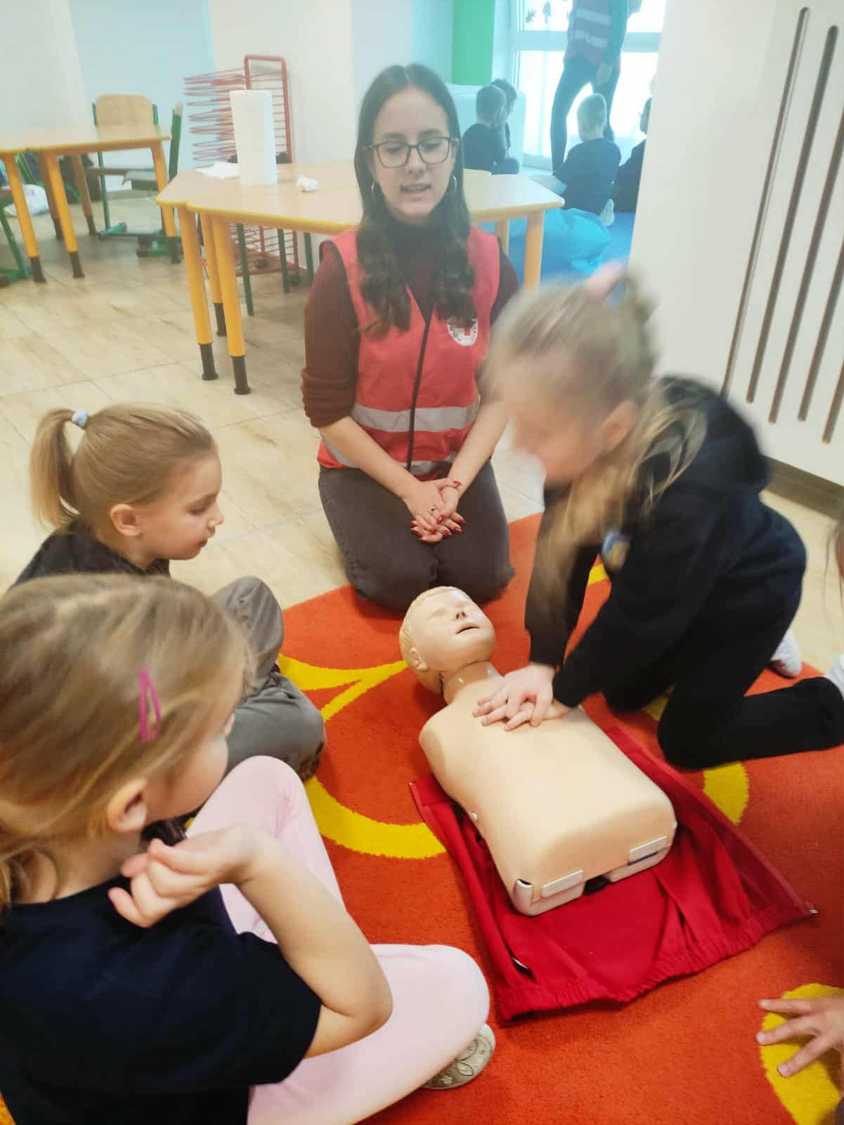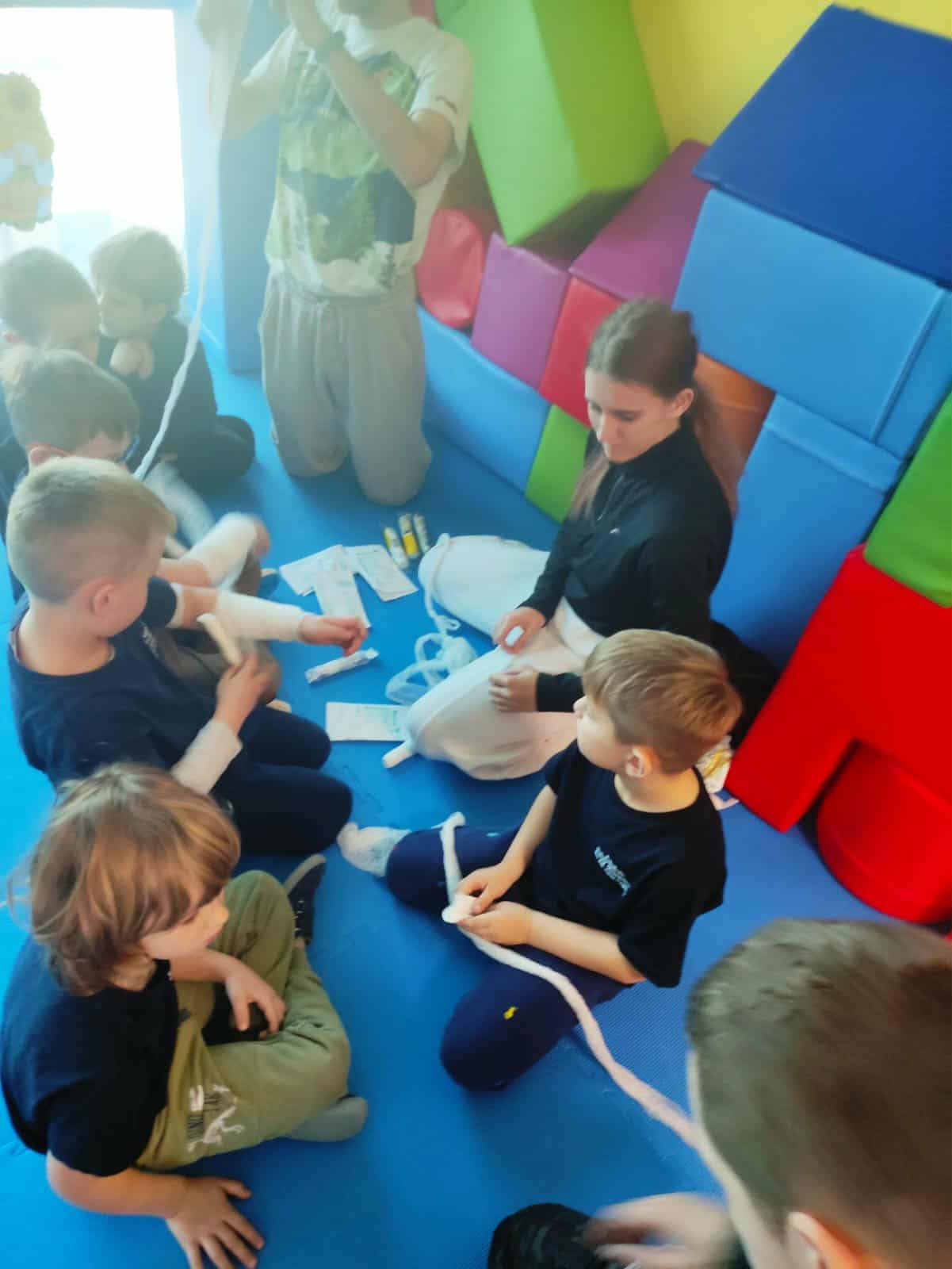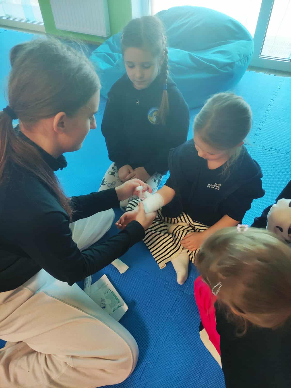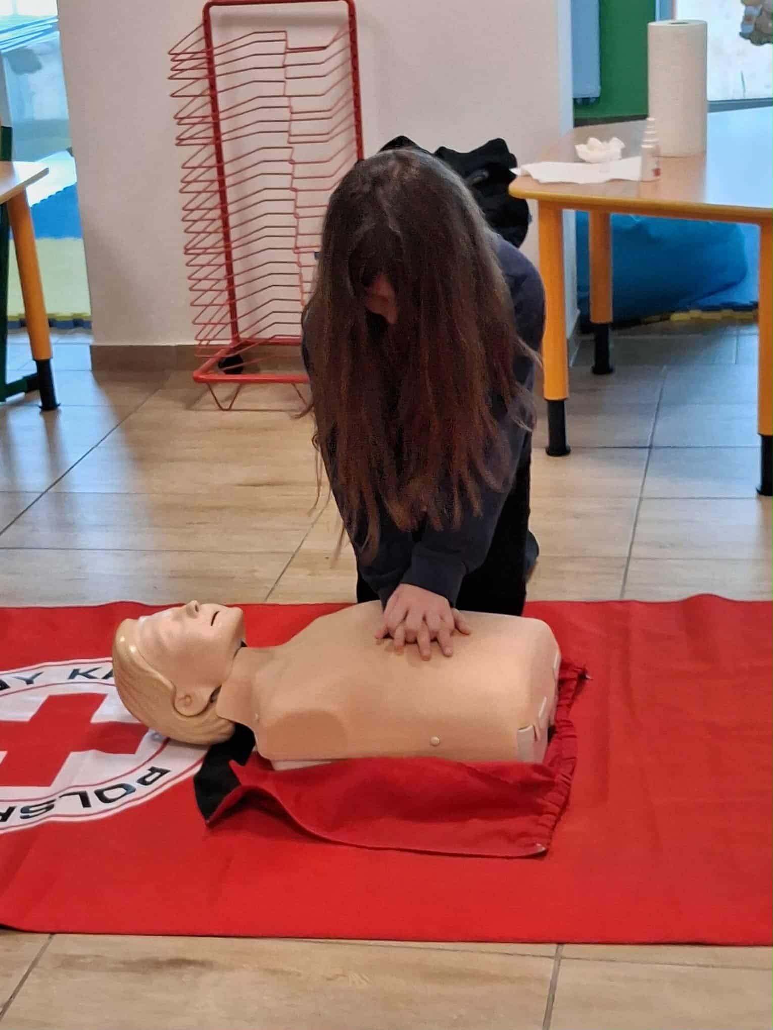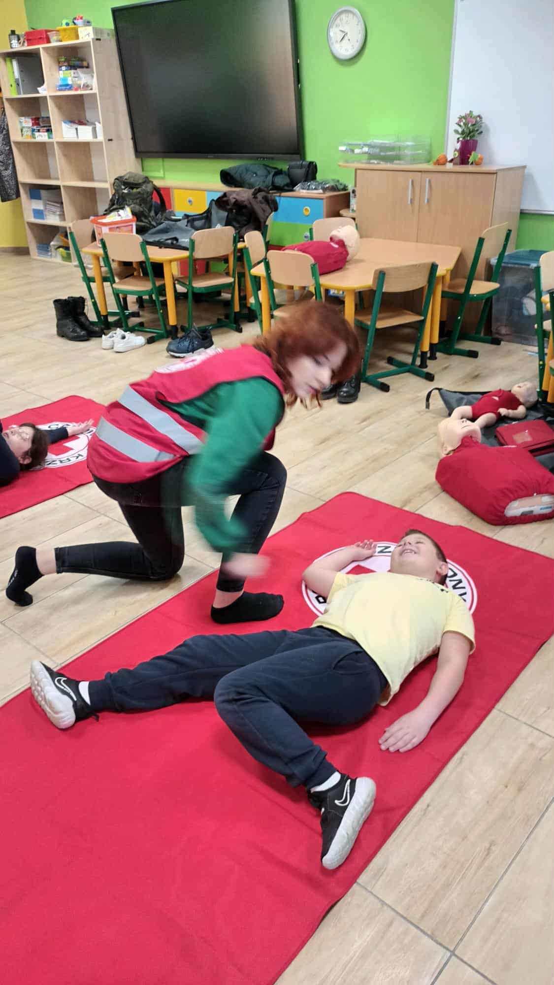 Dzieci z ogromnym zaangażowaniem uczestniczyły w zajęciach i wykonywały wszystkie polecenia bardzo dokładnie. Dowiedziały się między innymi, jak sprawdzić oddech i puls, jak wezwać pomoc, a także jak udzielić pierwszej pomocy w przypadku skaleczeń, zadławienia czy omdlenia, a nawet jak ułożyć osobę w bezpiecznej pozycji do przyjazdu ratowników.