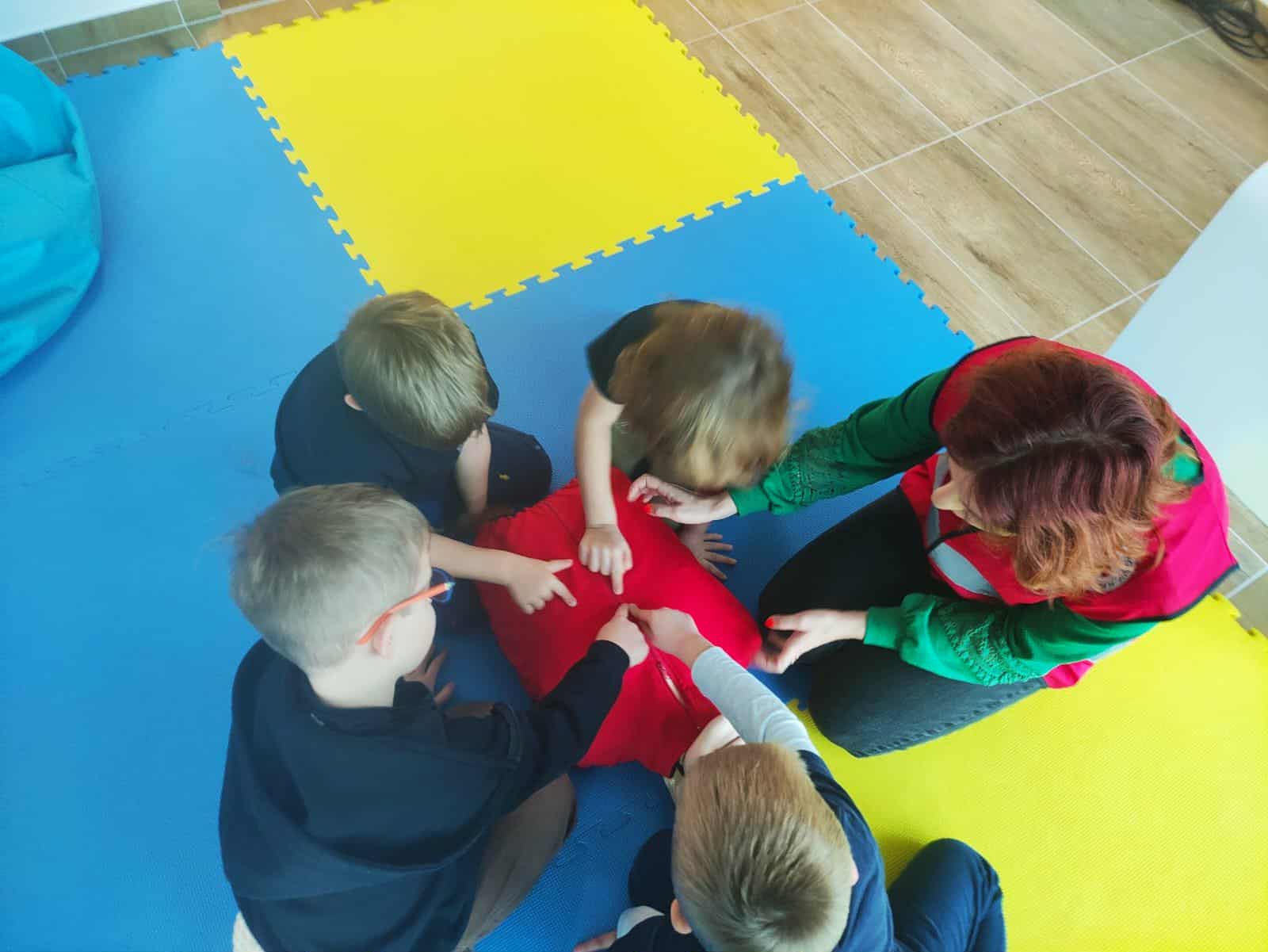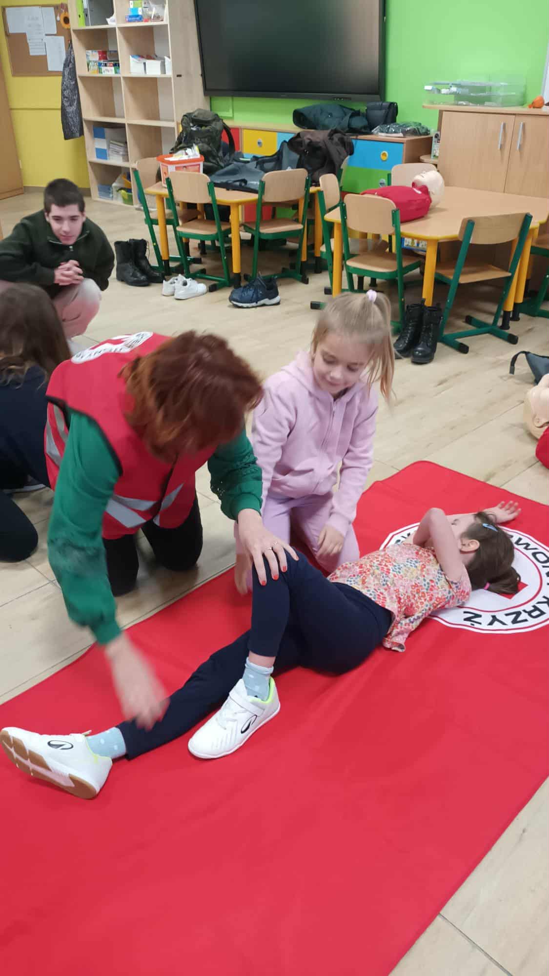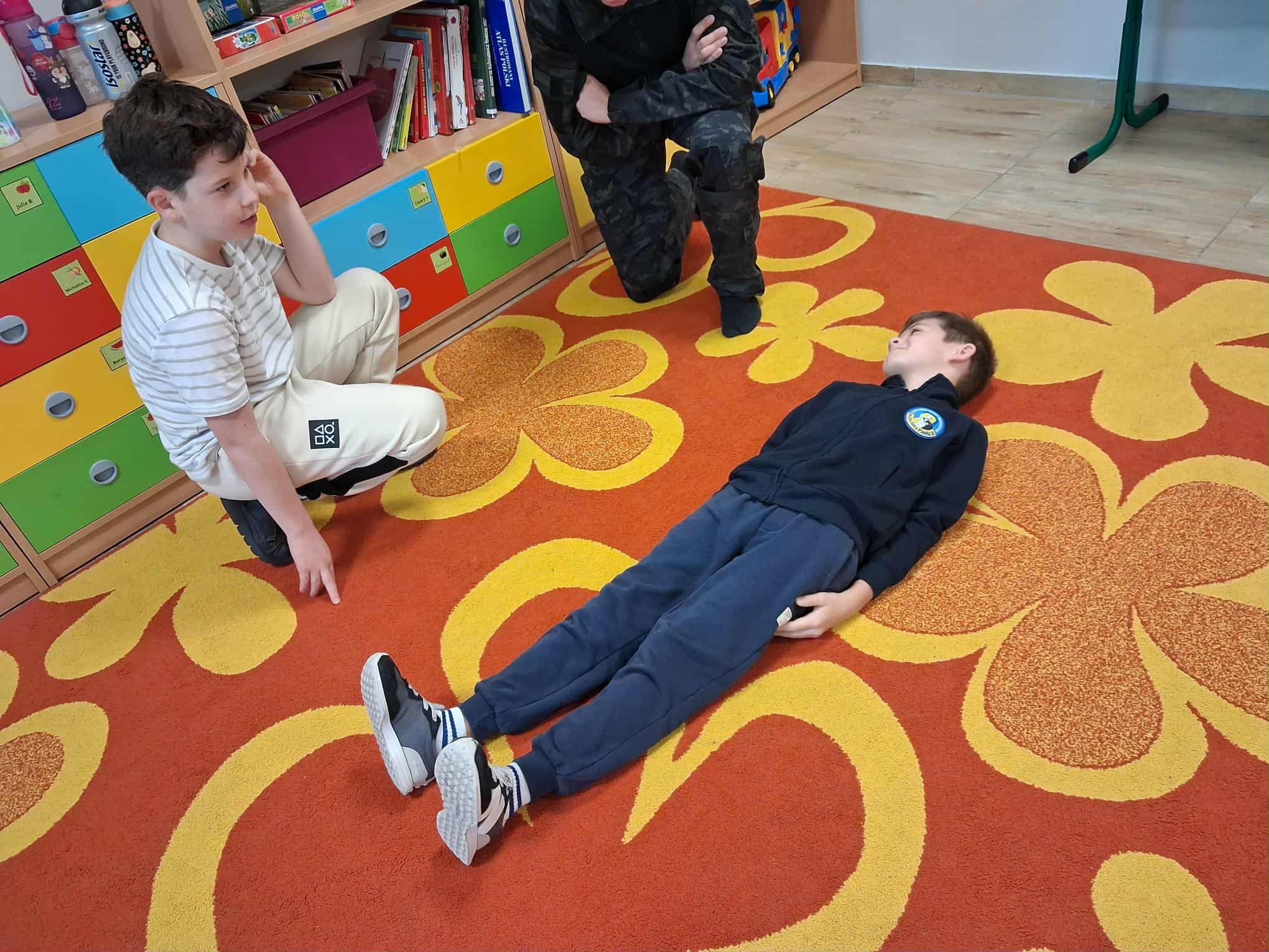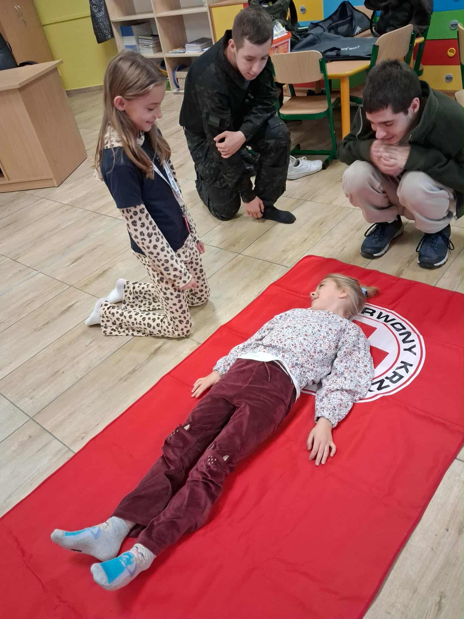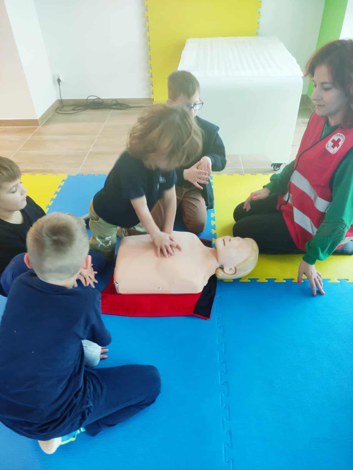 Dzieci z ogromnym zaangażowaniem uczestniczyły w zajęciach i wykonywały wszystkie polecenia bardzo dokładnie. Dowiedziały się między innymi, jak sprawdzić oddech i puls, jak wezwać pomoc, a także jak udzielić pierwszej pomocy w przypadku skaleczeń, zadławienia czy omdlenia, a nawet jak ułożyć osobę w bezpiecznej pozycji do przyjazdu ratowników.