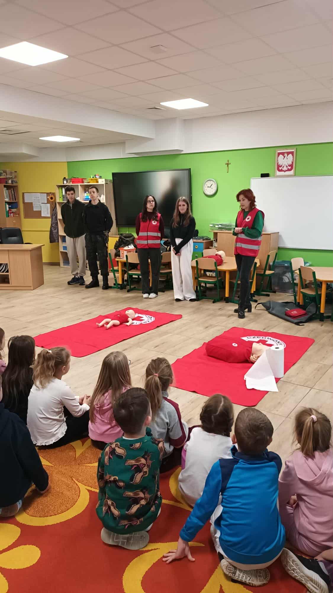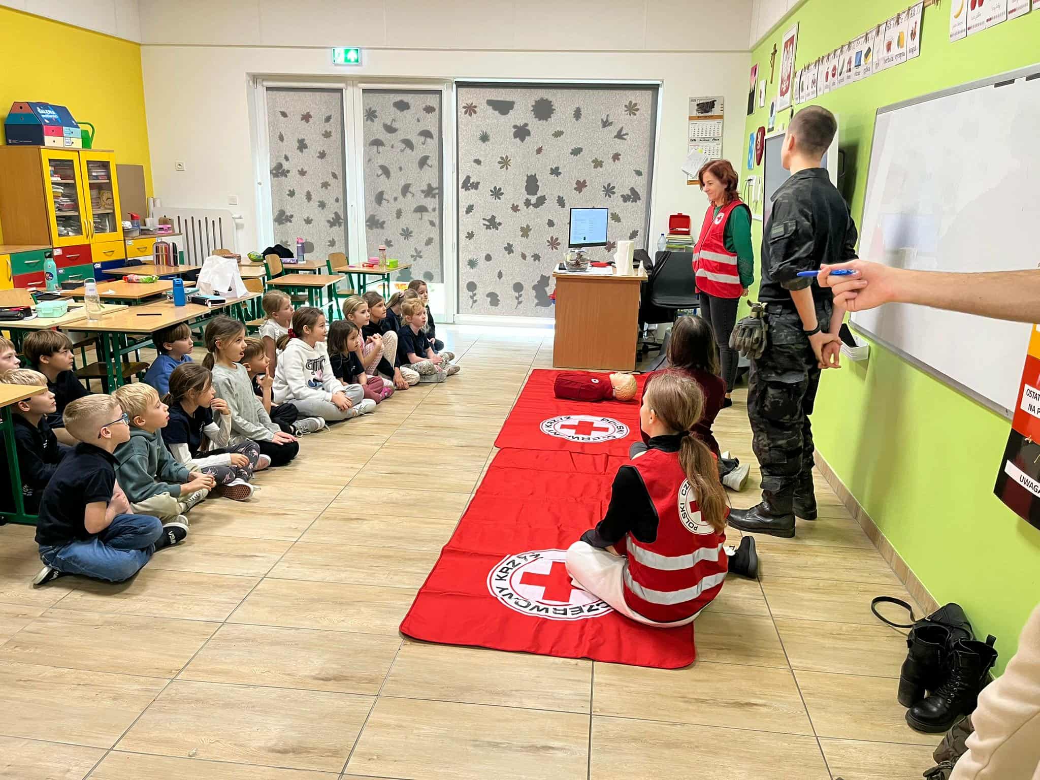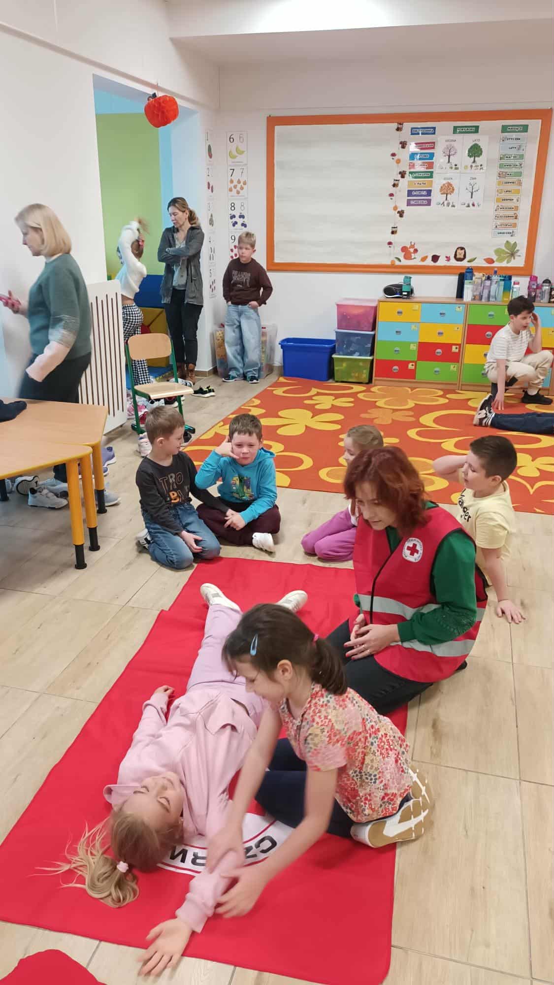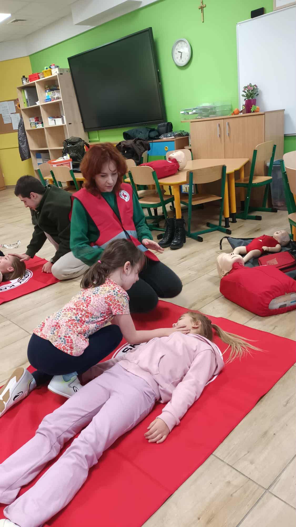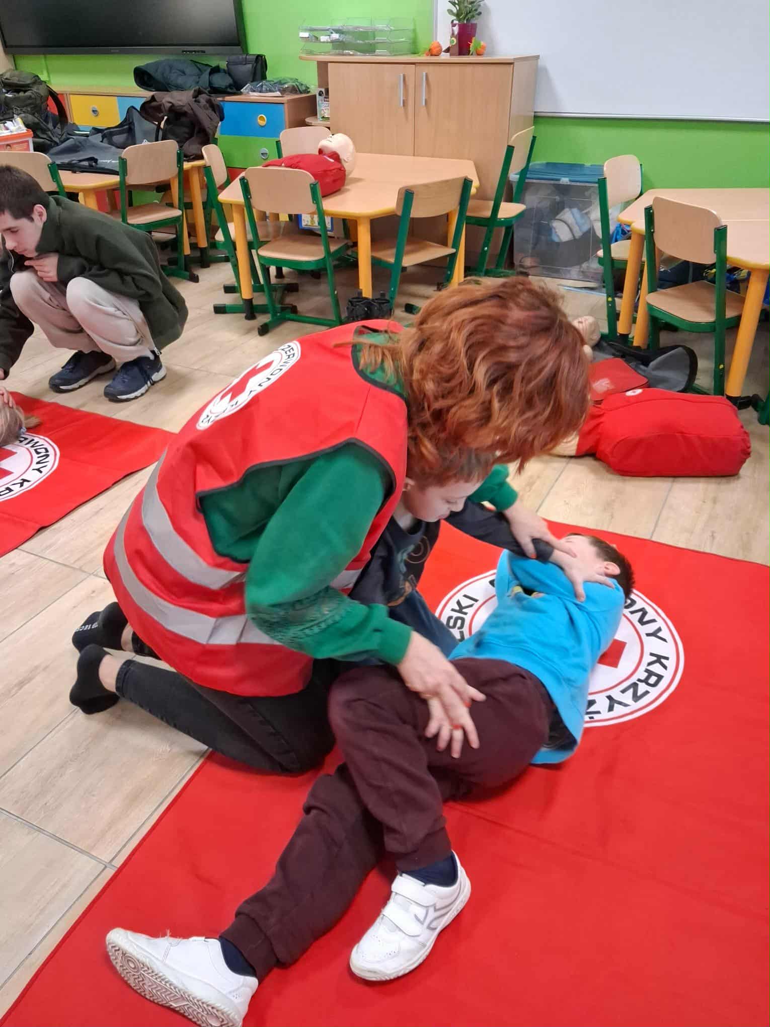 Dzieci z ogromnym zaangażowaniem uczestniczyły w zajęciach i wykonywały wszystkie polecenia bardzo dokładnie. Dowiedziały się między innymi, jak sprawdzić oddech i puls, jak wezwać pomoc, a także jak udzielić pierwszej pomocy w przypadku skaleczeń, zadławienia czy omdlenia, a nawet jak ułożyć osobę w bezpiecznej pozycji do przyjazdu ratowników.