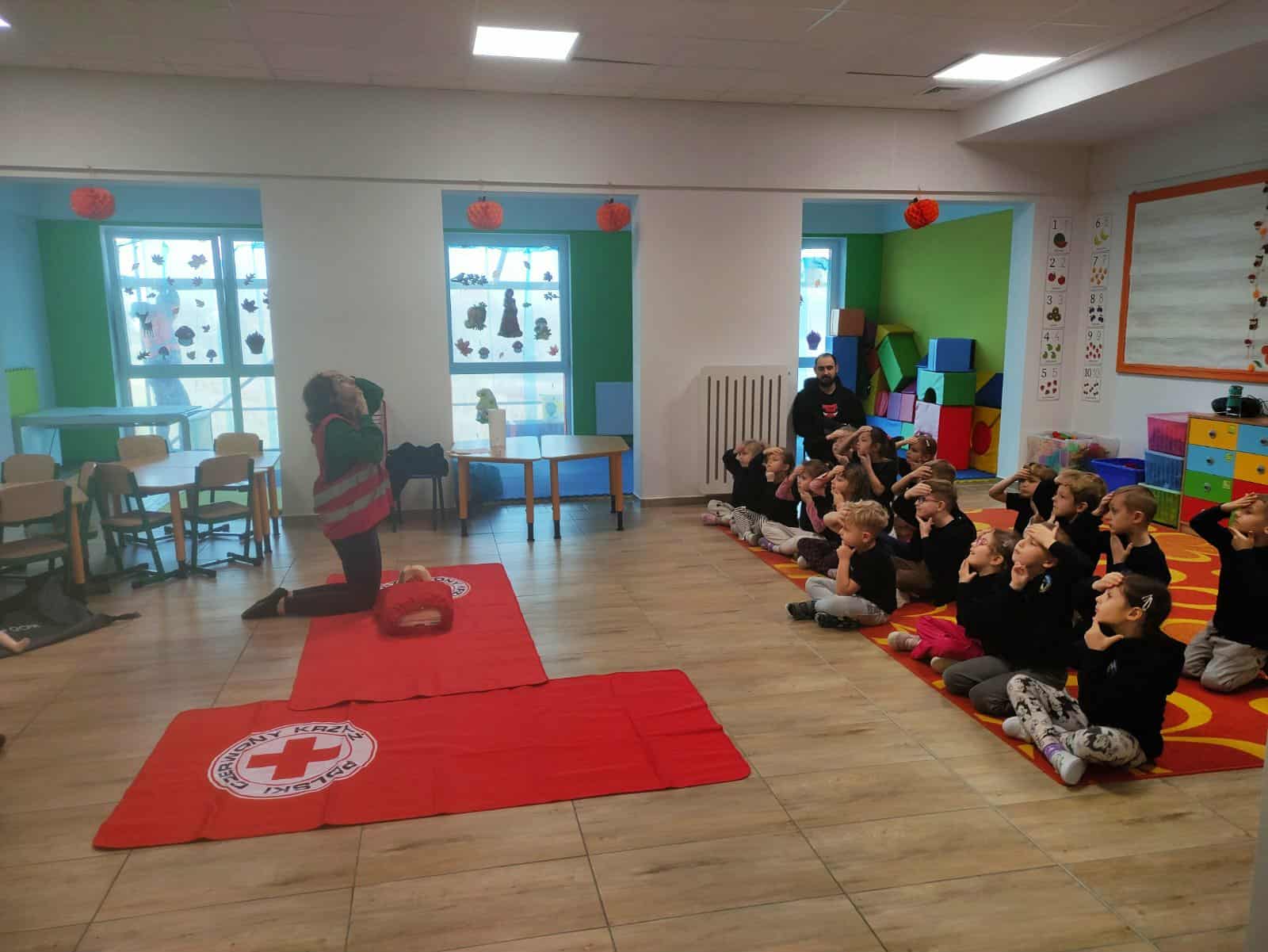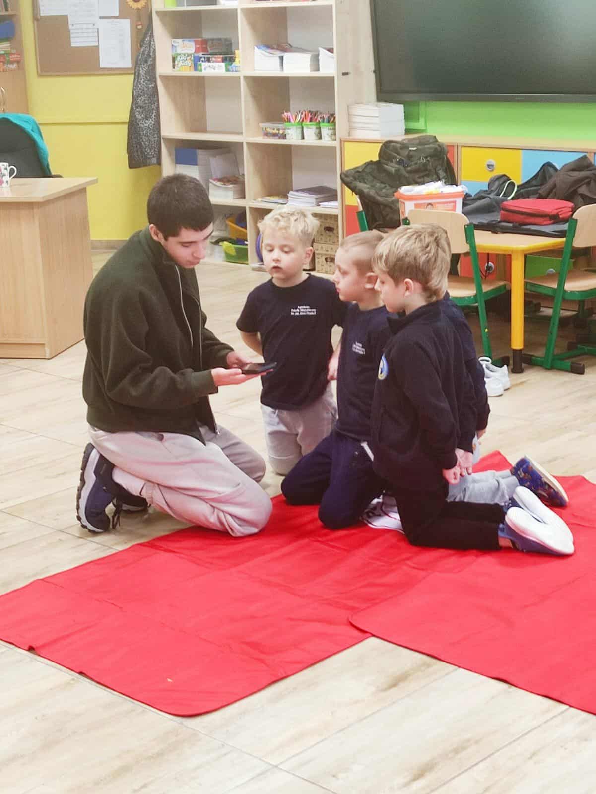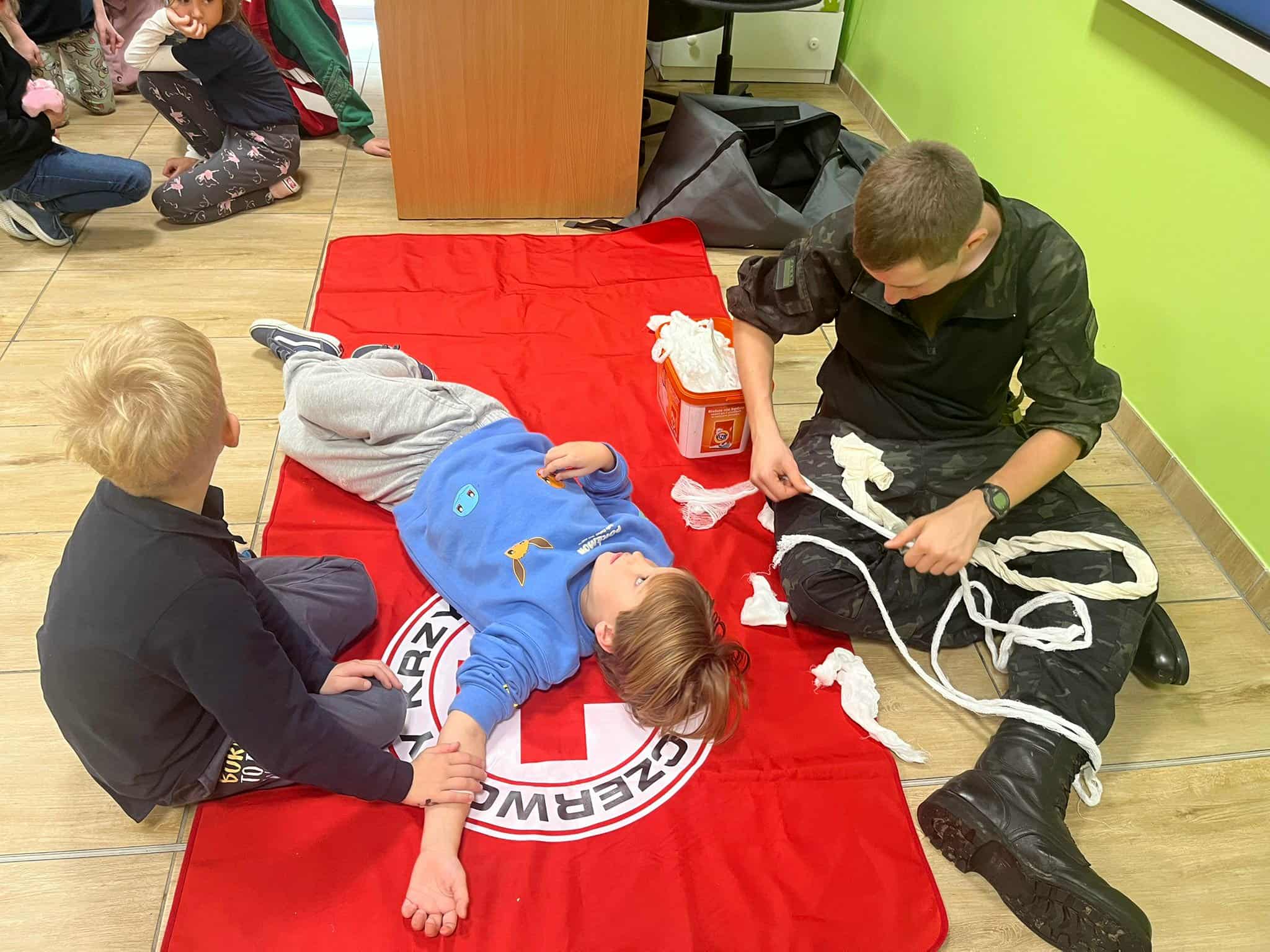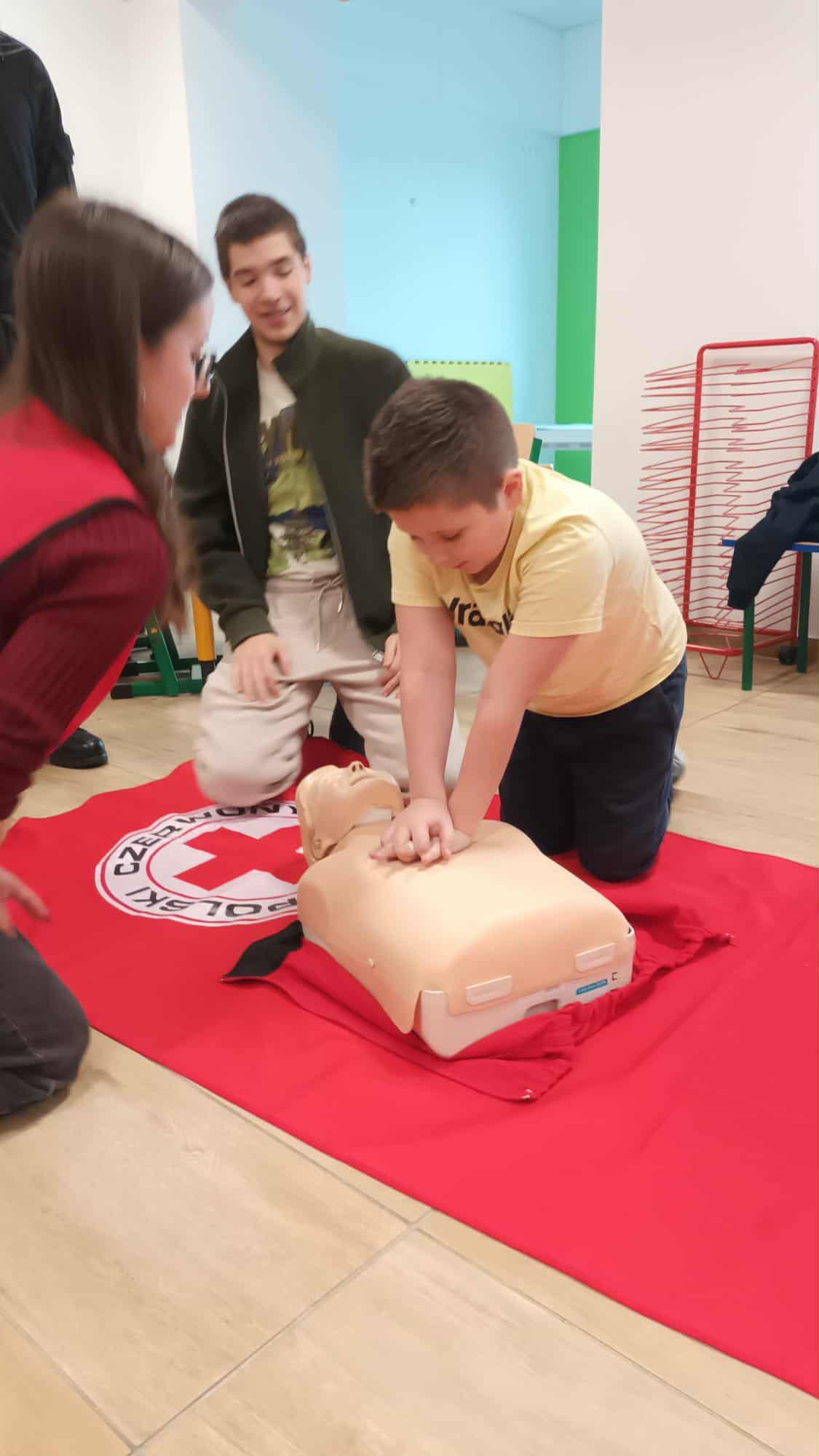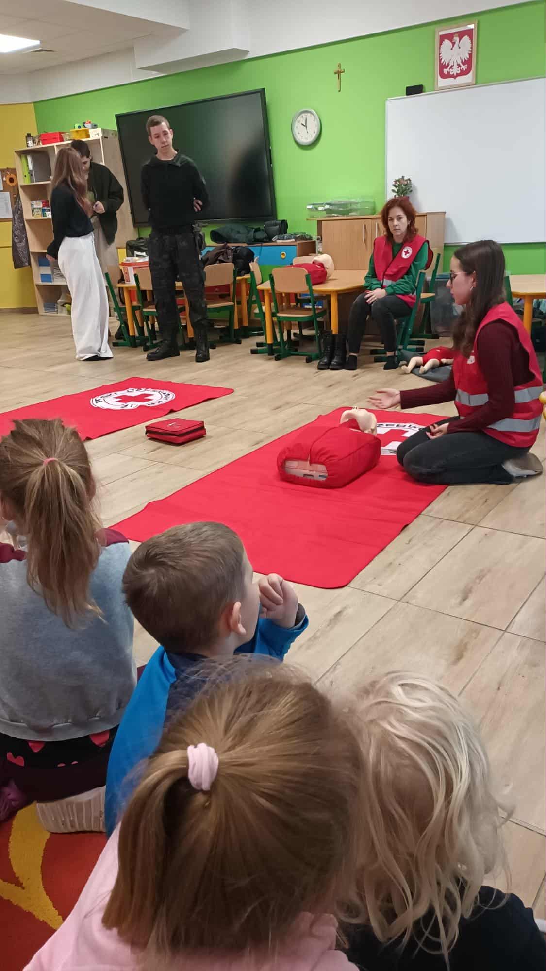 Dzieci z ogromnym zaangażowaniem uczestniczyły w zajęciach i wykonywały wszystkie polecenia bardzo dokładnie. Dowiedziały się między innymi, jak sprawdzić oddech i puls, jak wezwać pomoc, a także jak udzielić pierwszej pomocy w przypadku skaleczeń, zadławienia czy omdlenia, a nawet jak ułożyć osobę w bezpiecznej pozycji do przyjazdu ratowników.