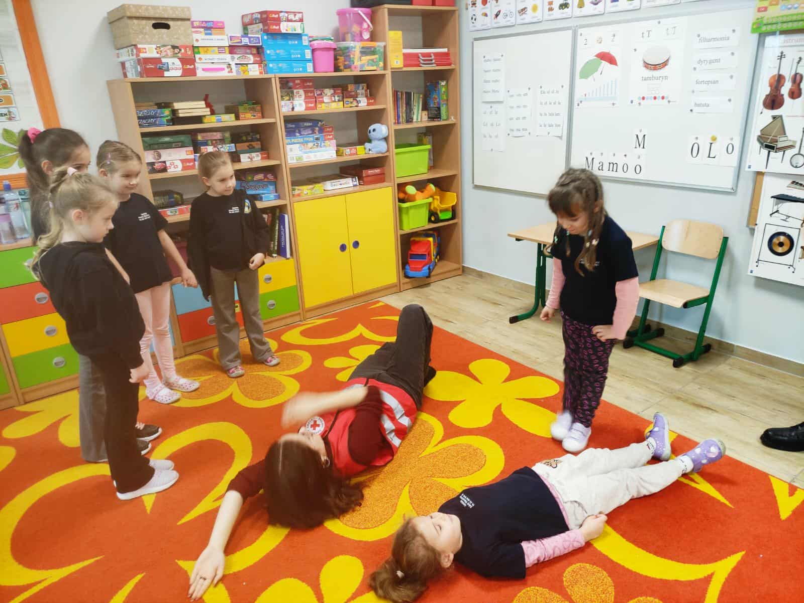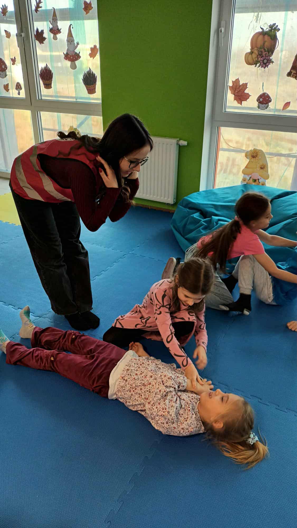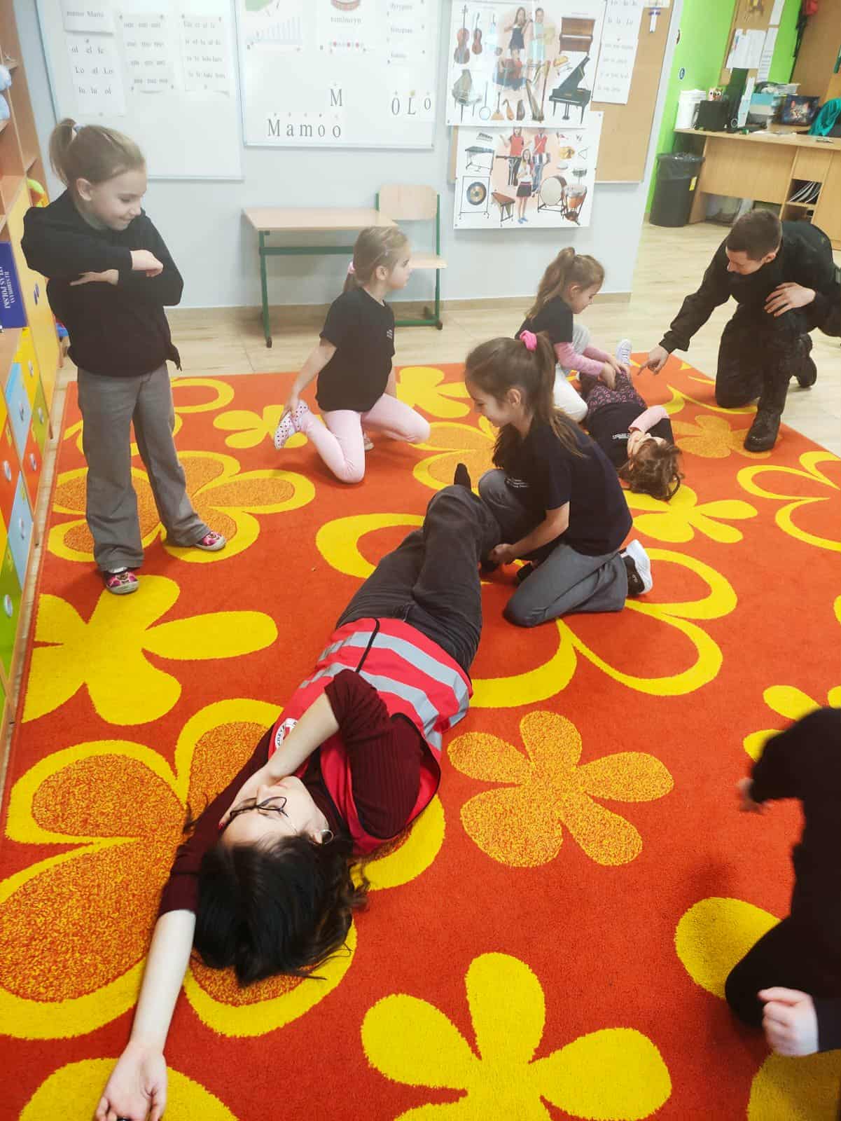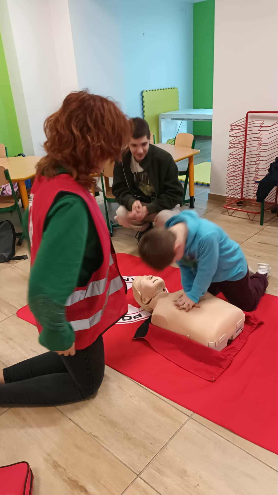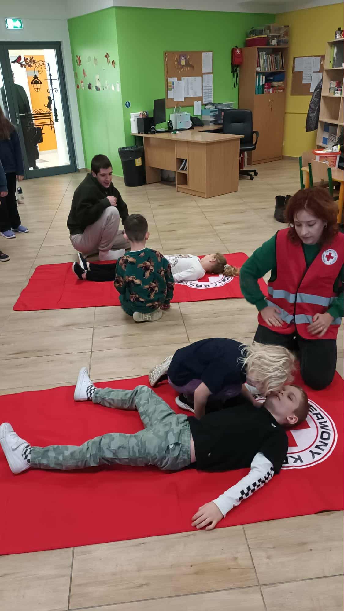 Dzieci z ogromnym zaangażowaniem uczestniczyły w zajęciach i wykonywały wszystkie polecenia bardzo dokładnie. Dowiedziały się między innymi, jak sprawdzić oddech i puls, jak wezwać pomoc, a także jak udzielić pierwszej pomocy w przypadku skaleczeń, zadławienia czy omdlenia, a nawet jak ułożyć osobę w bezpiecznej pozycji do przyjazdu ratowników.